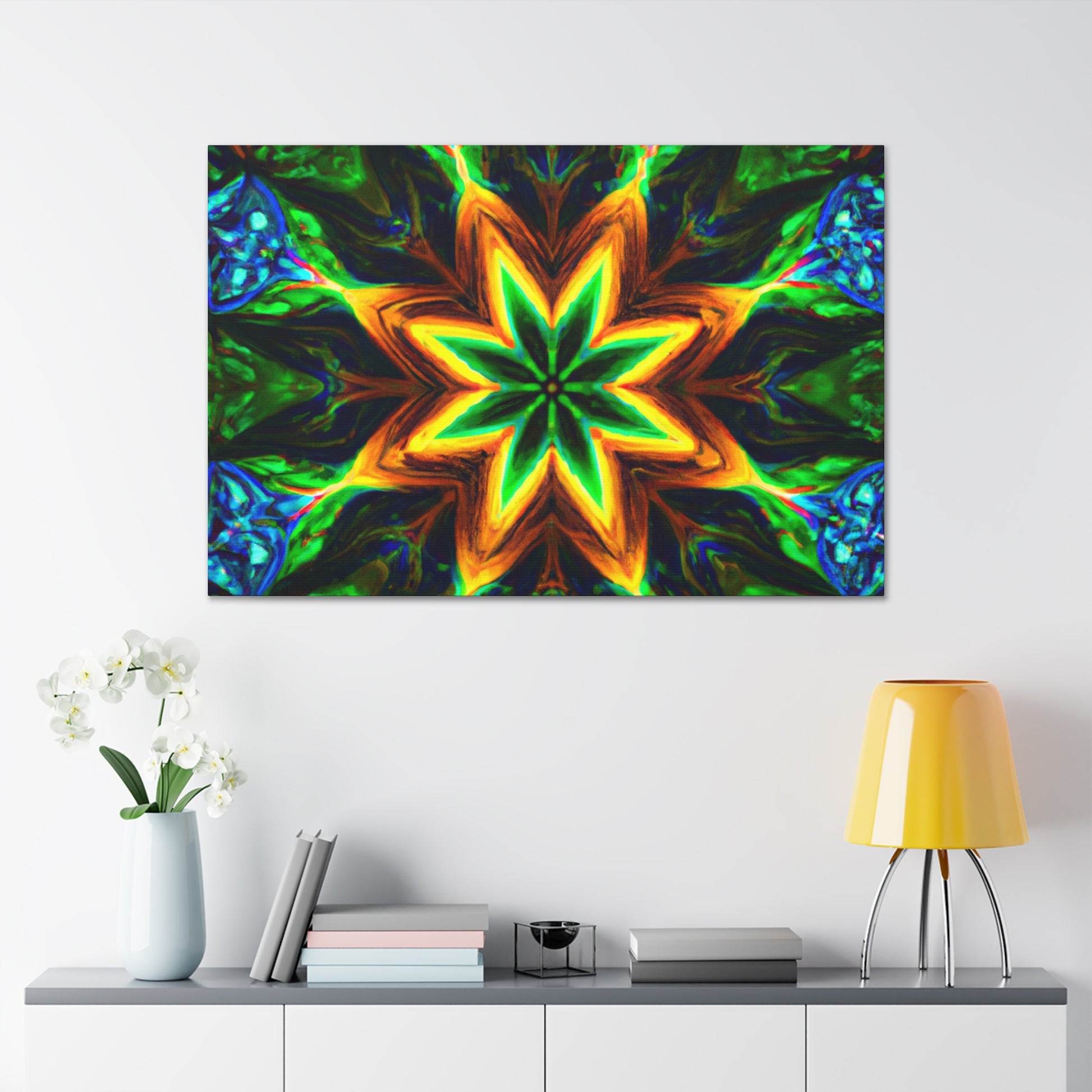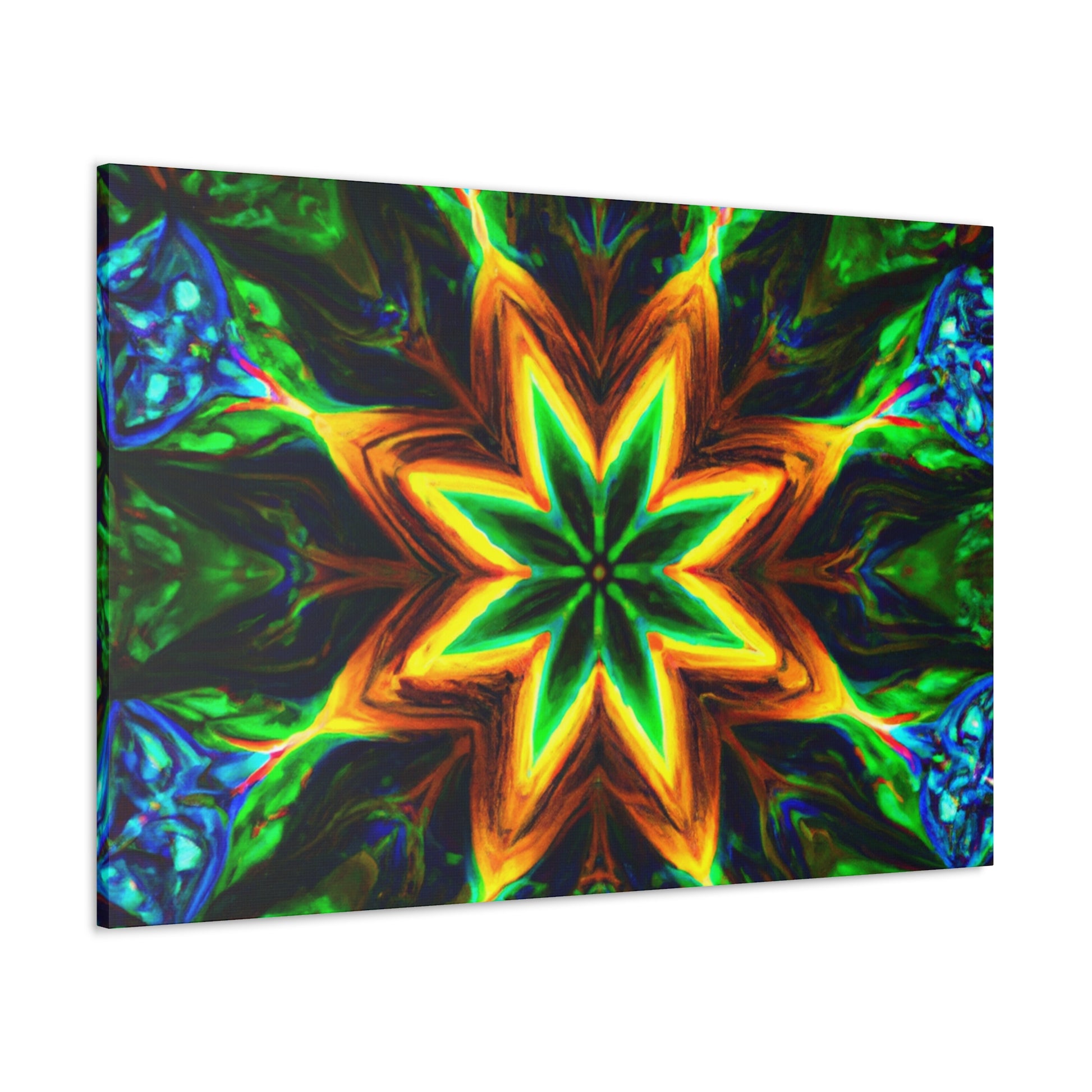 This canvas of vibrant, digital art featuring trippy stars and a kaleidoscope of abstract shapes is a beautiful addition to any wall. The piece is printed on high quality HD paper and arranged in a symmetrical formation. Brighten up your space with this eye-catching and colourful artwork! #canvasart #digitalart #trippystars #kaleidoscope #abstract #vibrantcolors #HD #symmetrical #wallart #artdecor #interiorart
