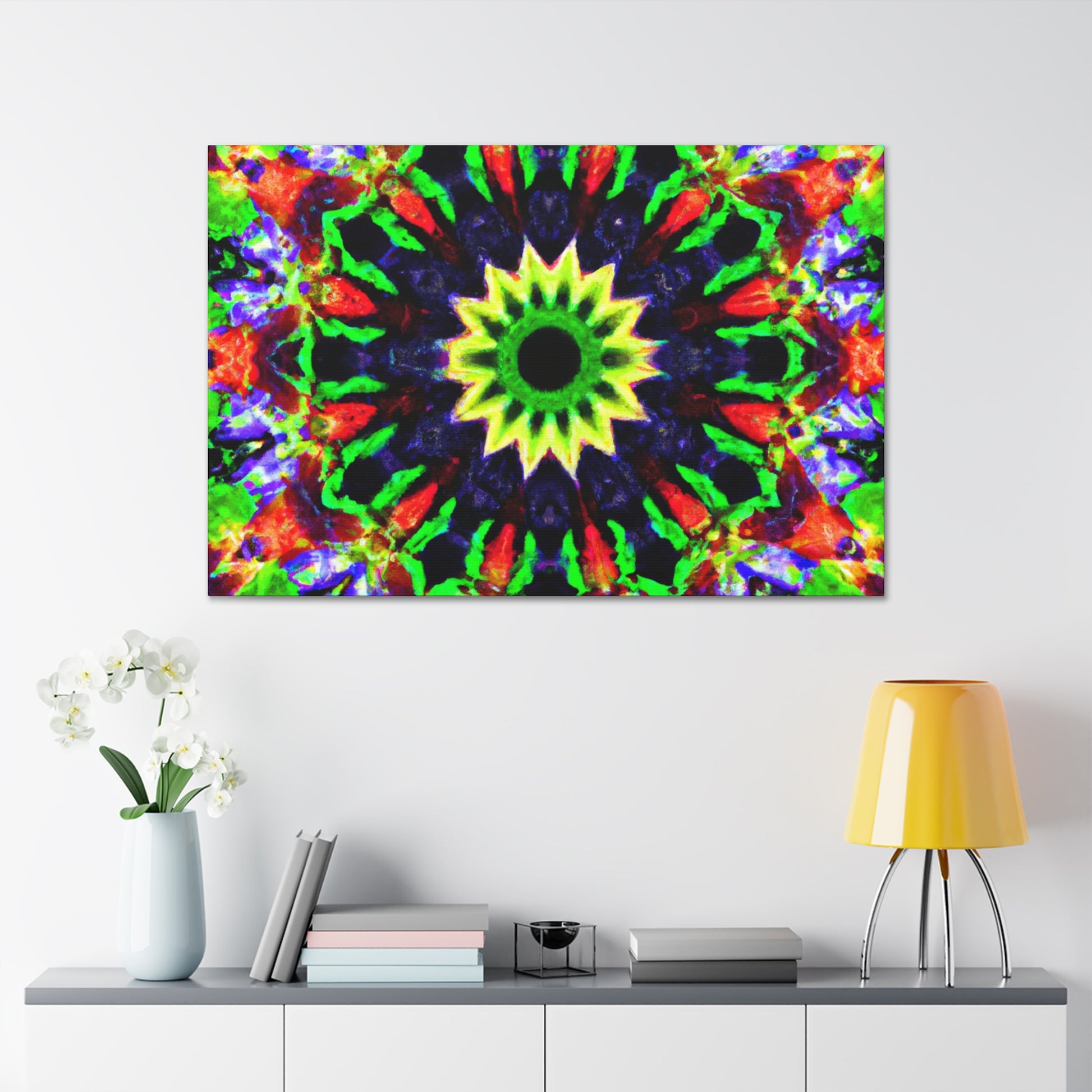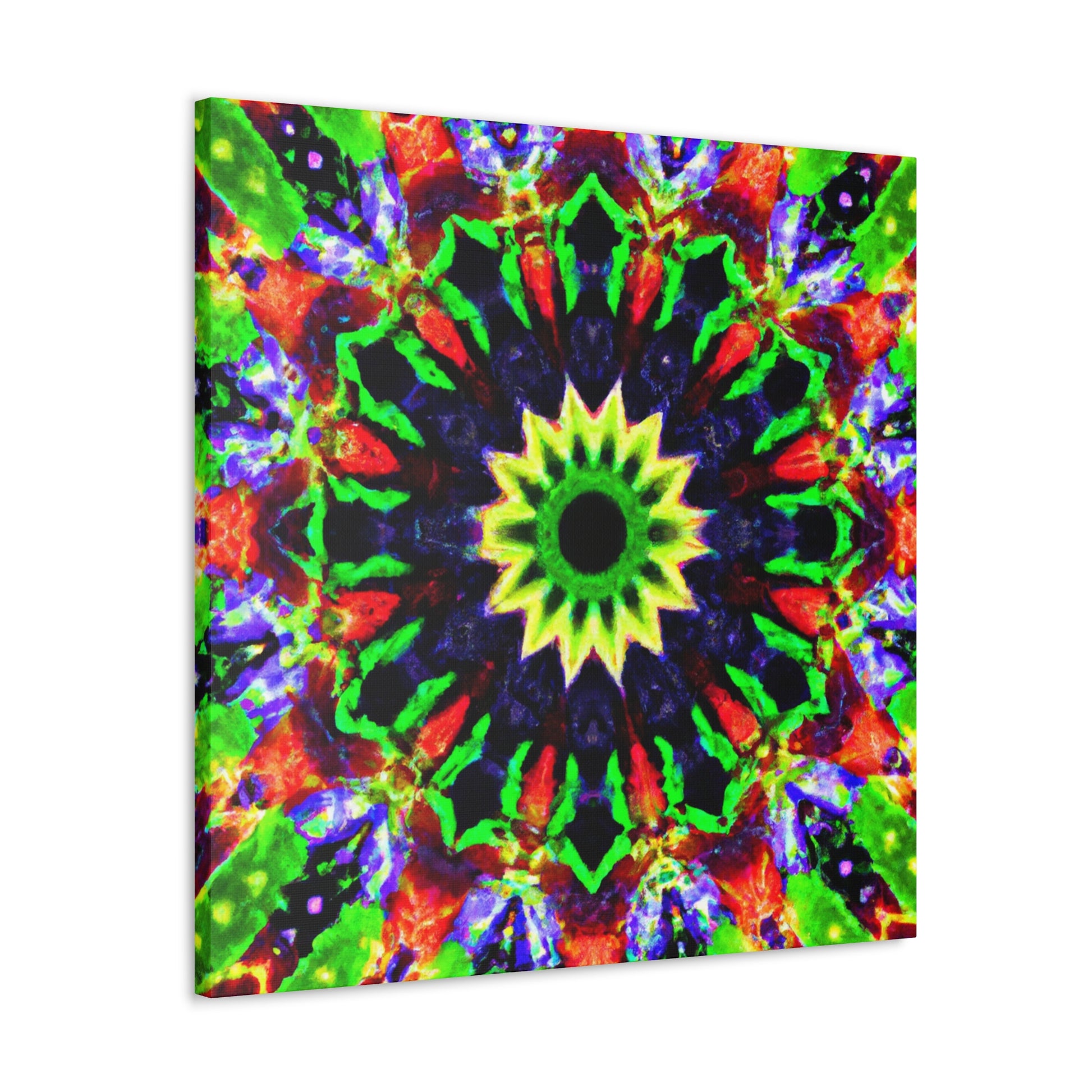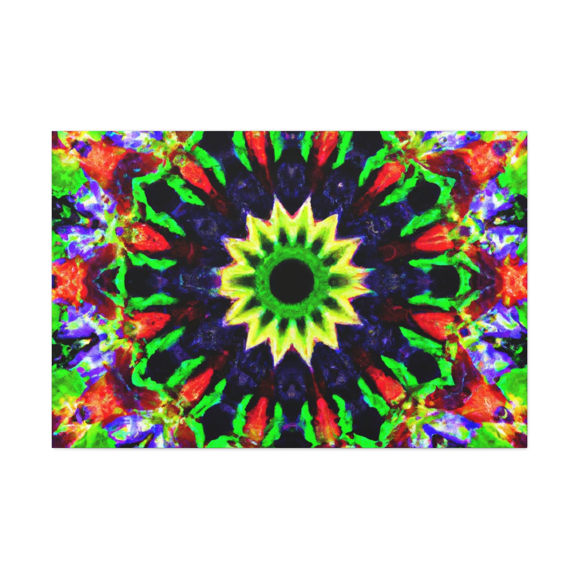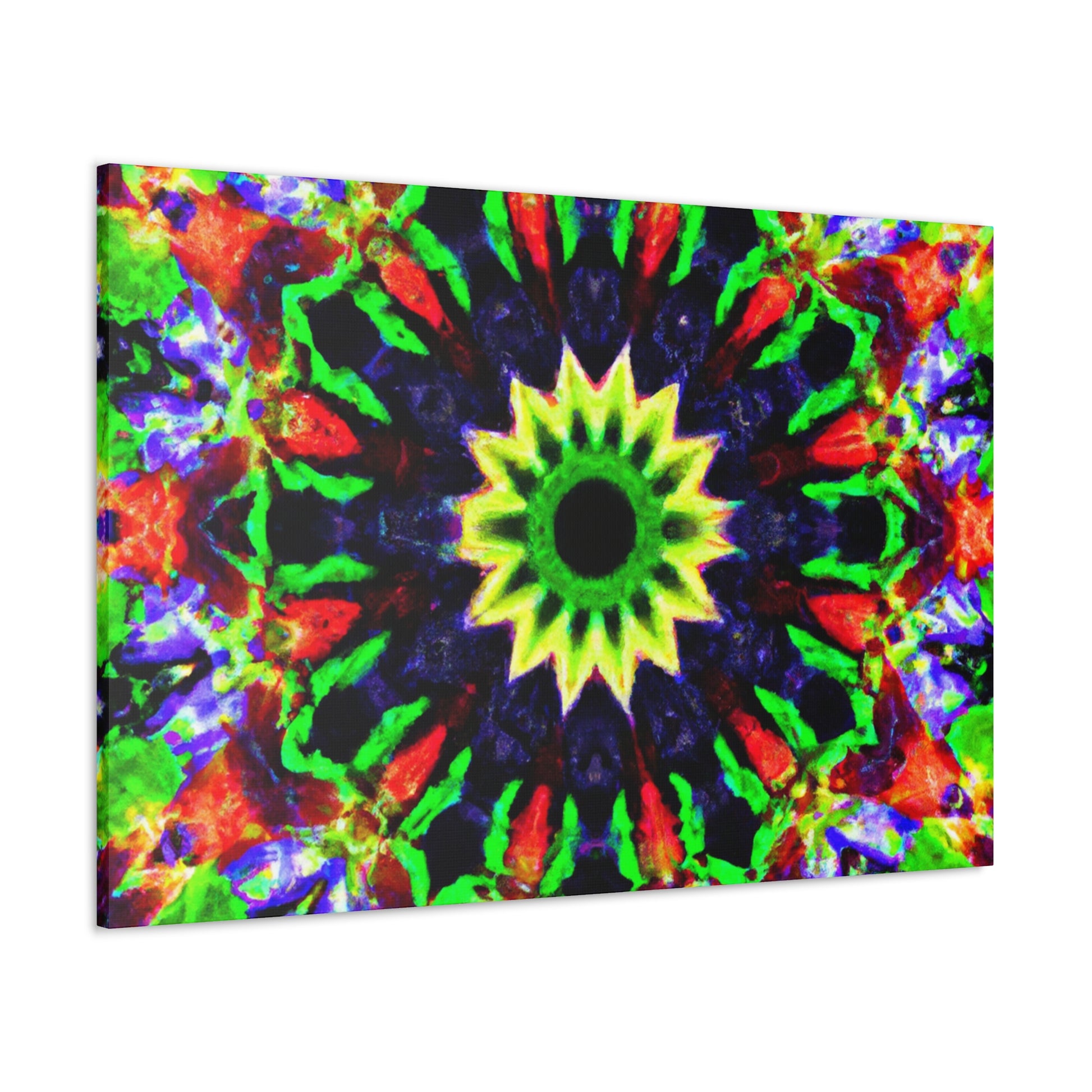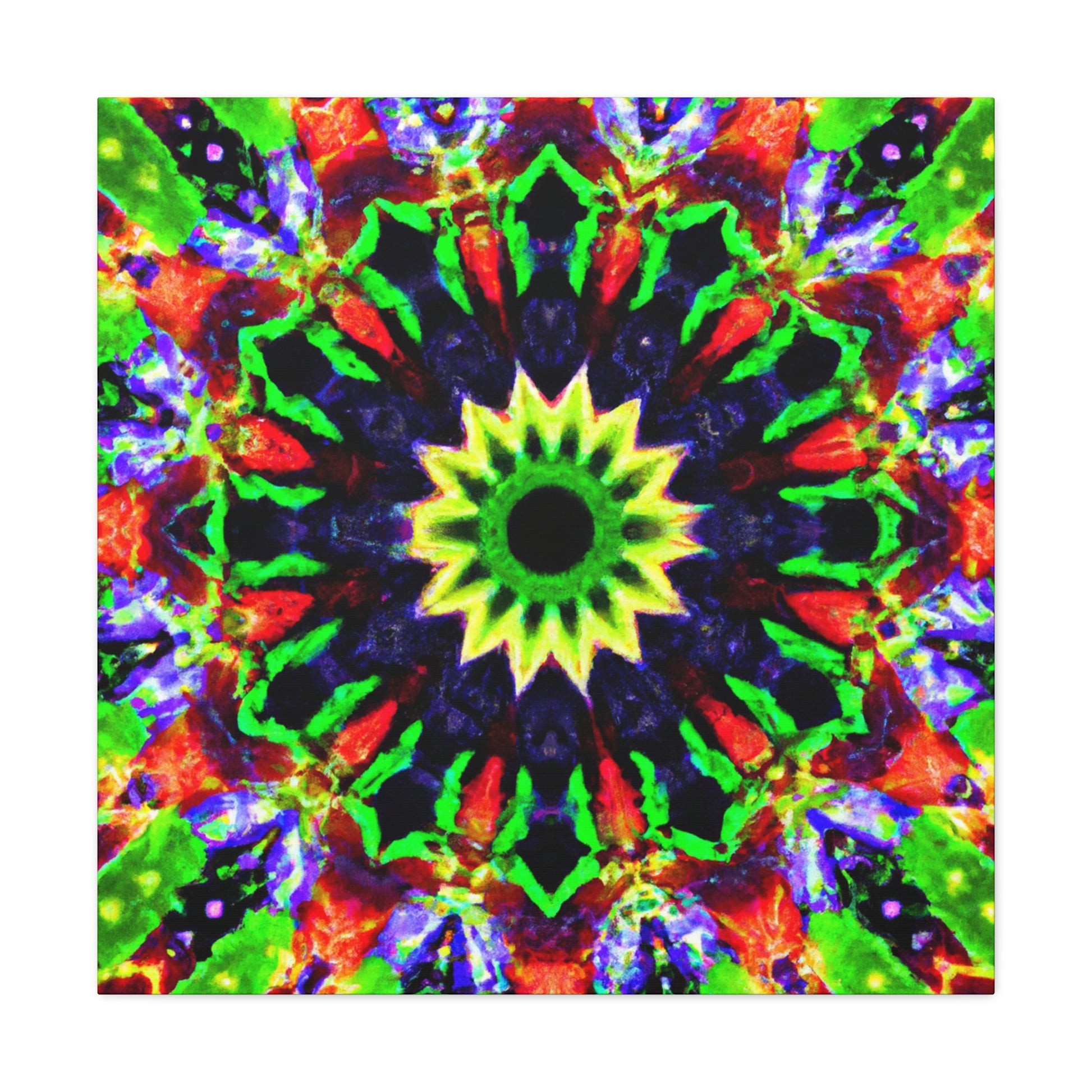 This canvas art features a captivating and vibrant abstract design with trippy stars, kaleidoscope shapes and colorful geometry in high resolution. The symmetrical shapes and calming colors are perfect to decorate any wall. Bring some psychedelic vibes into your home and add a modern twist to your decor with this amazing HD artwork! #canvasart #abstractart #wallart #psychedelicart #trippystars #kaleidoscope #digitalart #vibrantcolors #HD #symmetrical #modernart