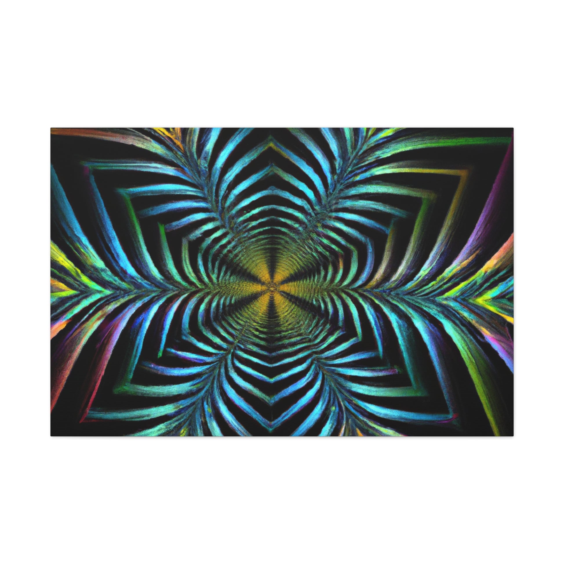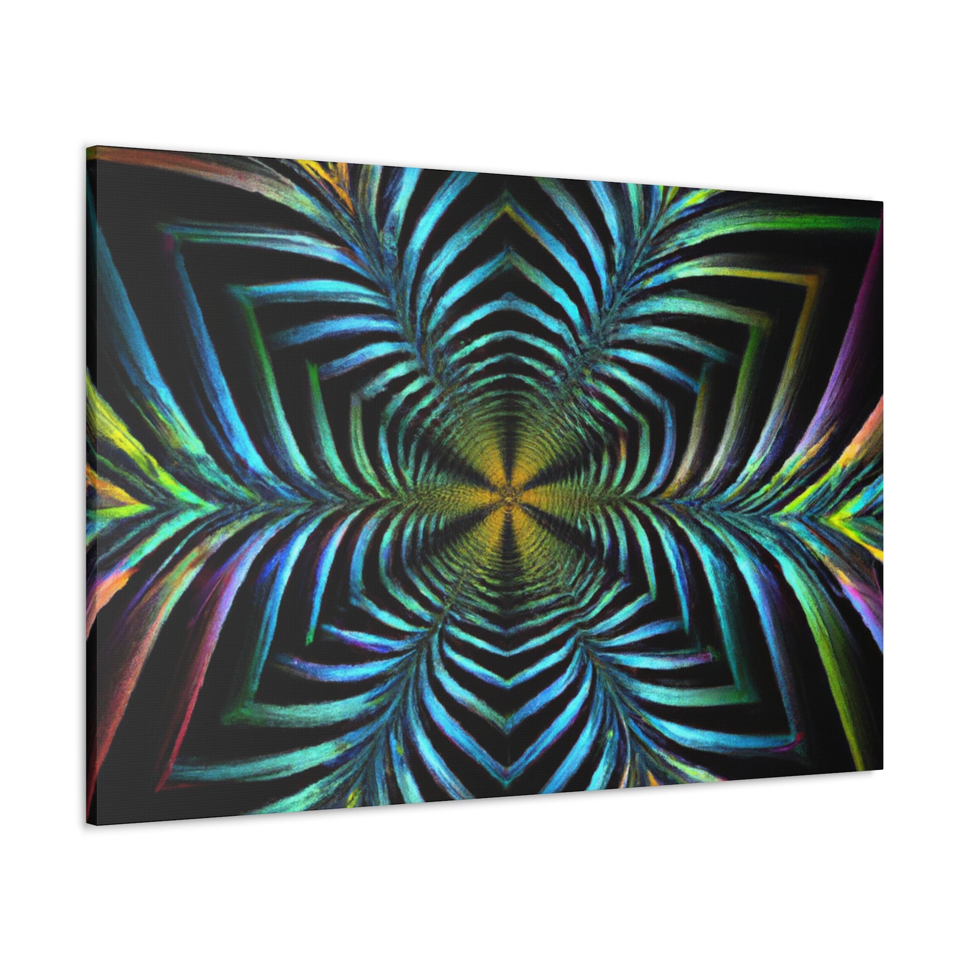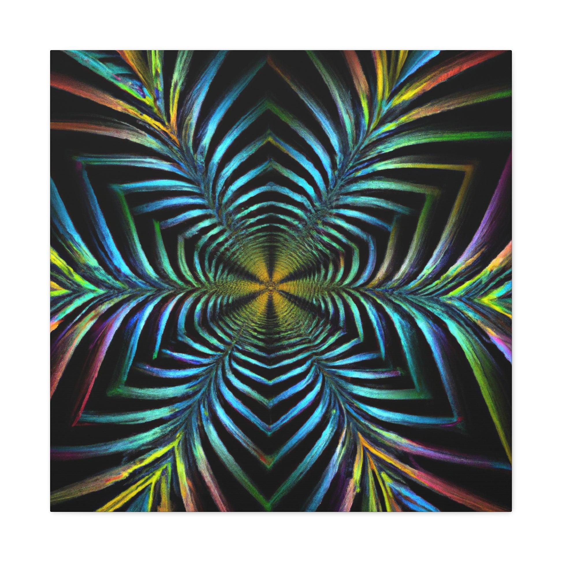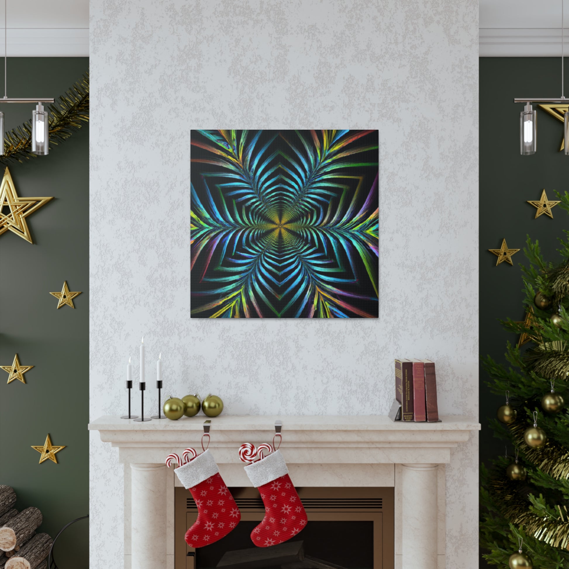This trippy abstract canvas will take you on a journey and mesmerize any wall in your house with its 3D lines and vibrant colors. Featuring geometric palm leaves alongside kaleidoscopic fractals, it is sure to be a conversation starter! Make a statement with this gorgeous digital art and bring life to your home. #AbstractArtist #DigitalArt #GeometricPalmLeaves #Kaleidoscope #Fractals #3DLines #VibrantColors #Canvas #Décor #HomeFashion #ArtStatement