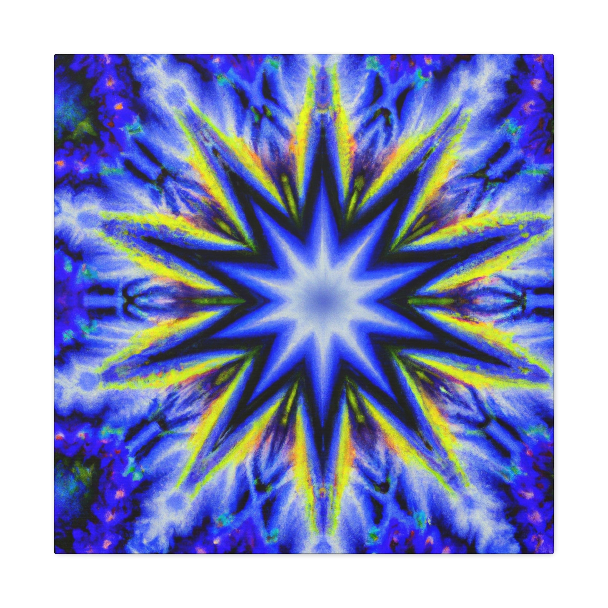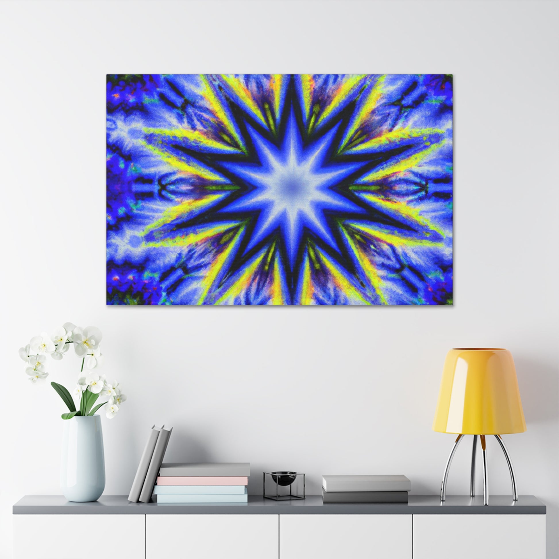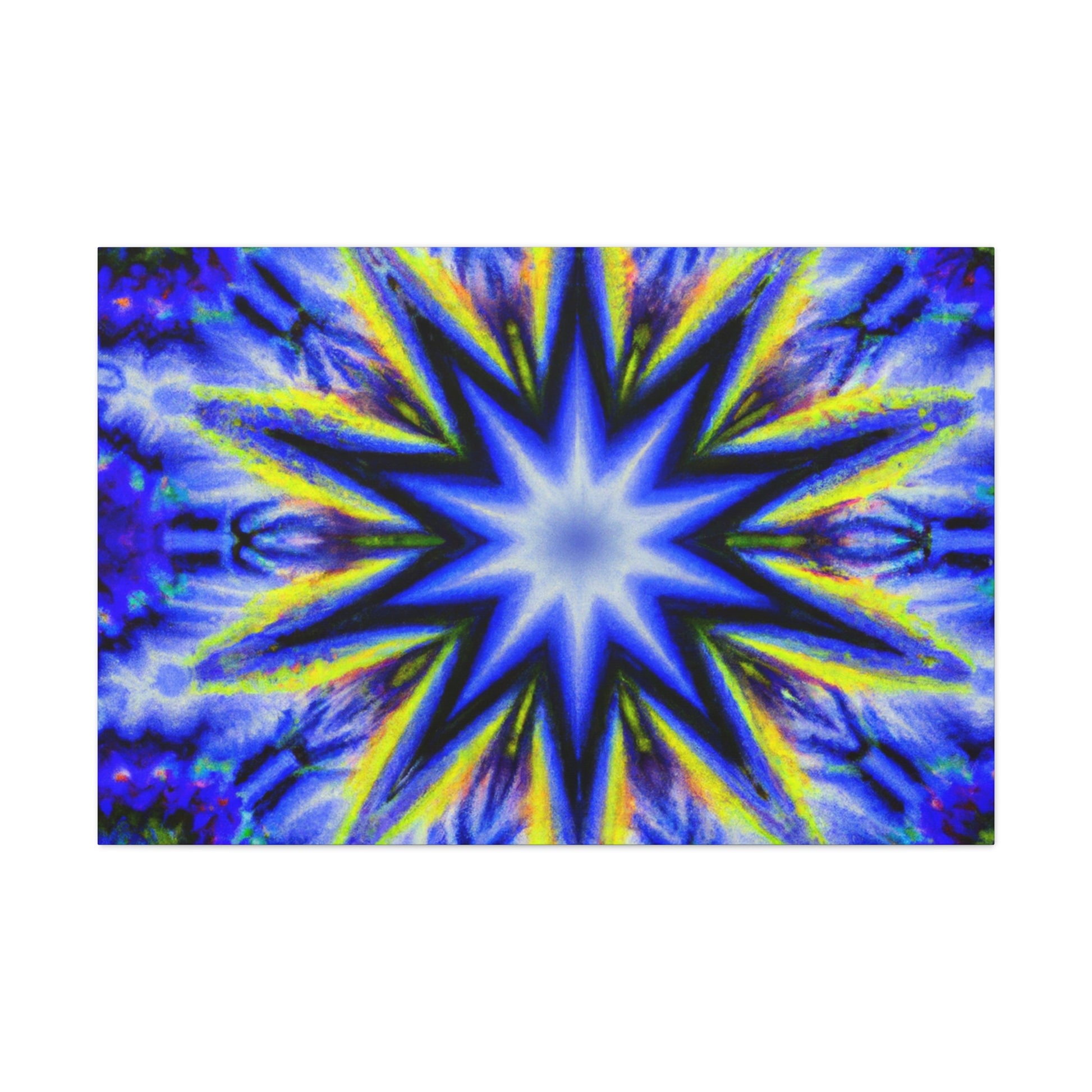This one of a kind hand-painted canvas features a trippy star, kaleidoscope, abstract, digital art scene decorated in vibrant colors produced in ultra-clear HD. The piece is symmetrical and perfect for sprucing up wall decor in any room! #VibrantColors #AbstractArt #HDArt #TrippyStars #Kaleidoscope #DigitalArt #WallDecor #Unique #Symmetrical #StatementPiece #HandPainted