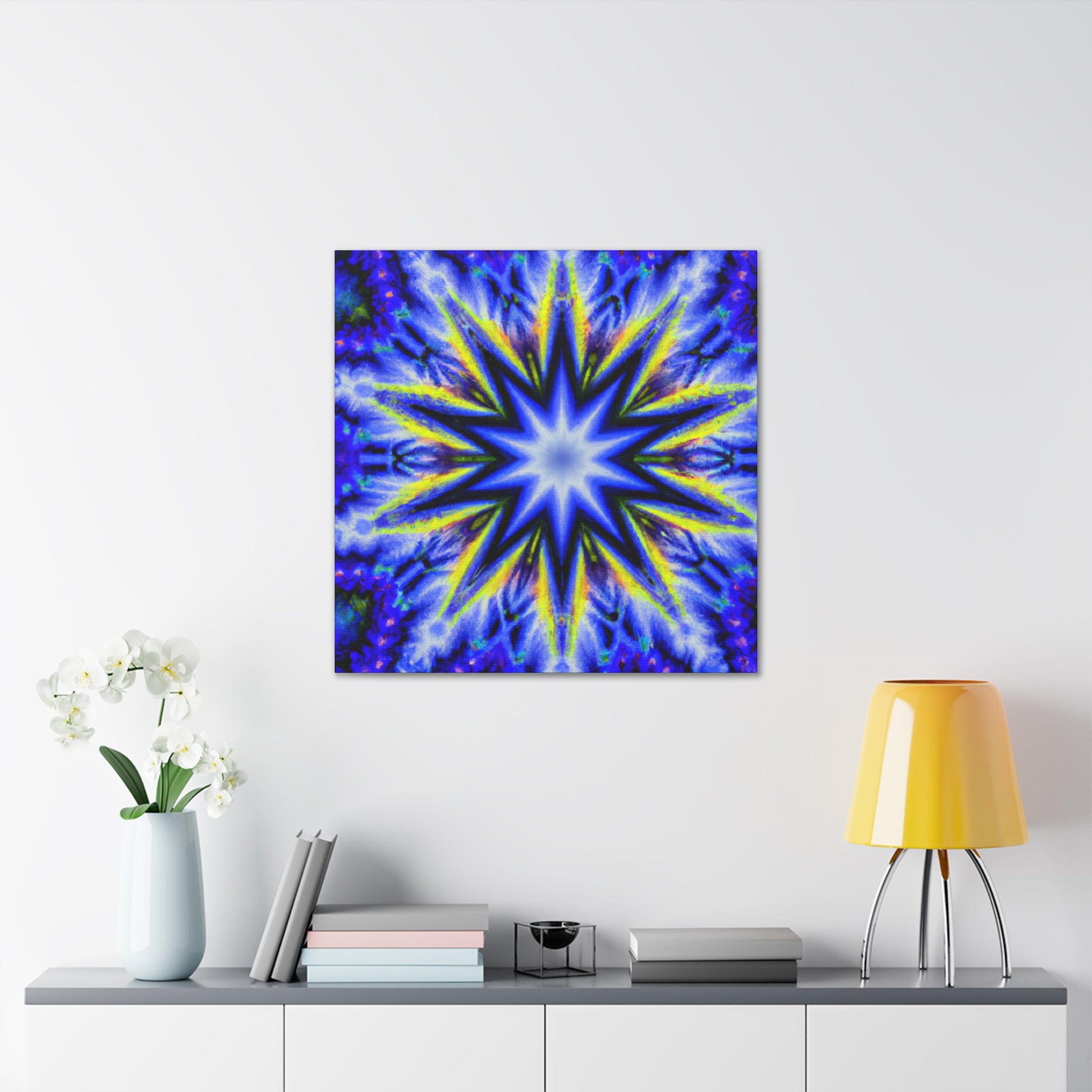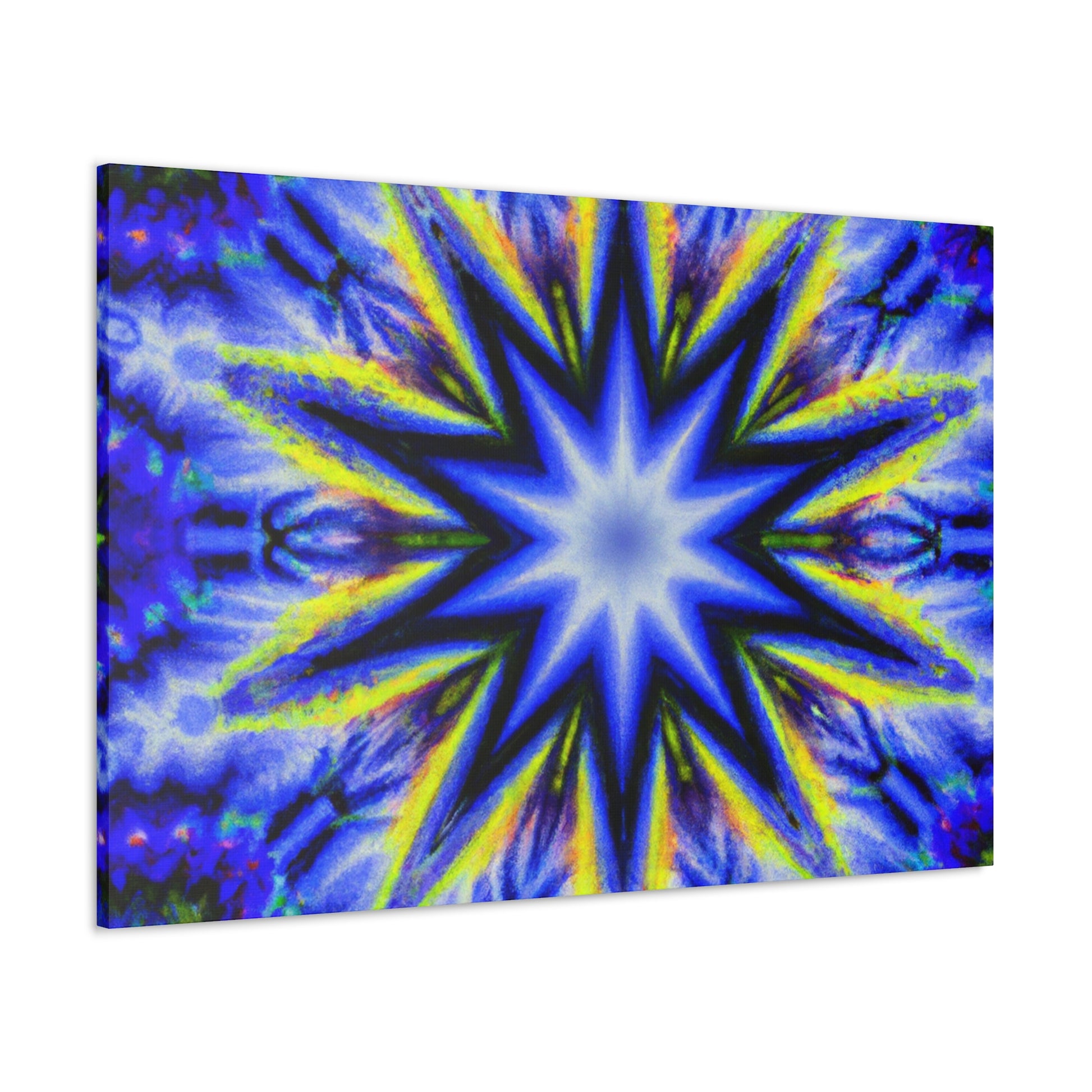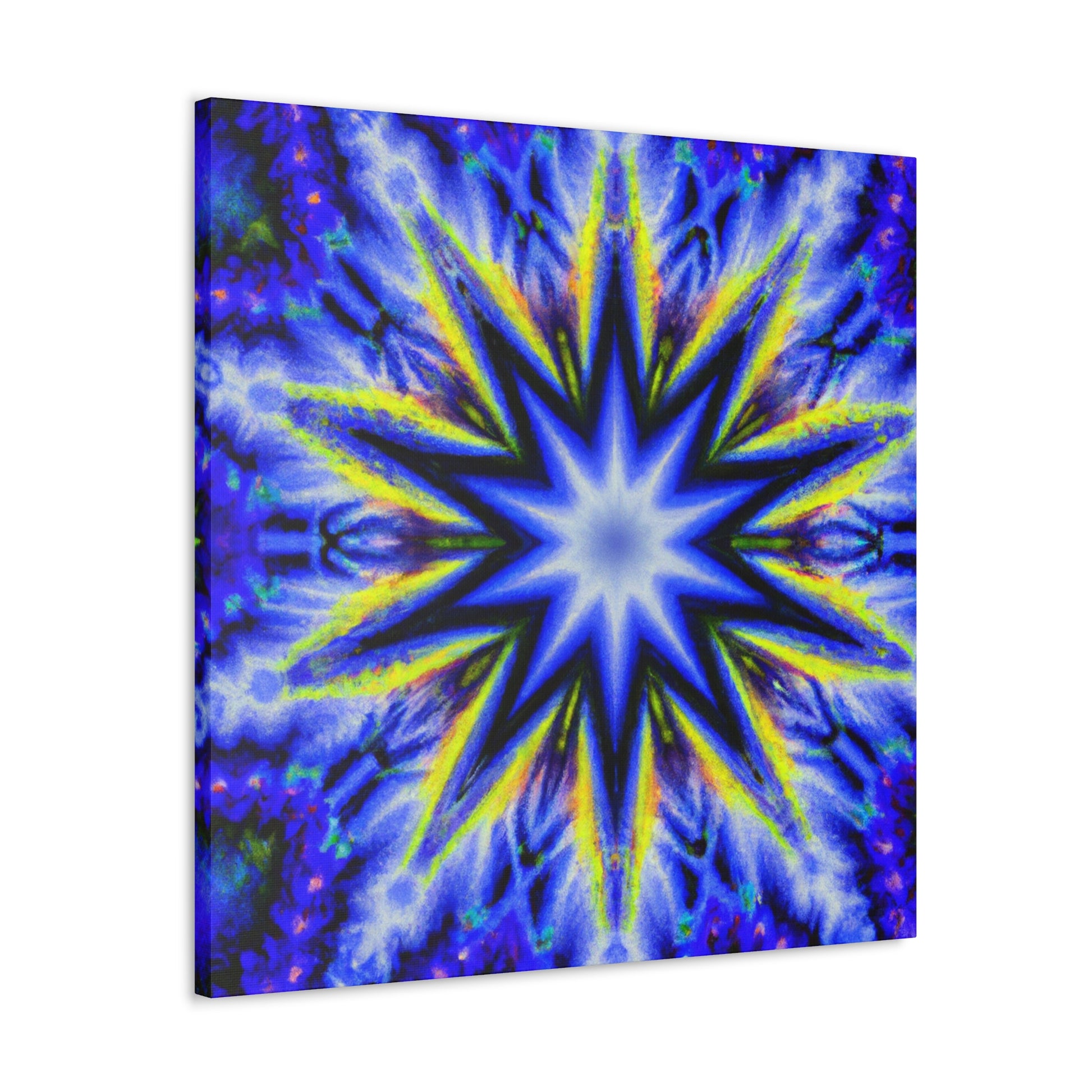 This one of a kind hand-painted canvas features a trippy star, kaleidoscope, abstract, digital art scene decorated in vibrant colors produced in ultra-clear HD. The piece is symmetrical and perfect for sprucing up wall decor in any room! #VibrantColors #AbstractArt #HDArt #TrippyStars #Kaleidoscope #DigitalArt #WallDecor #Unique #Symmetrical #StatementPiece #HandPainted
