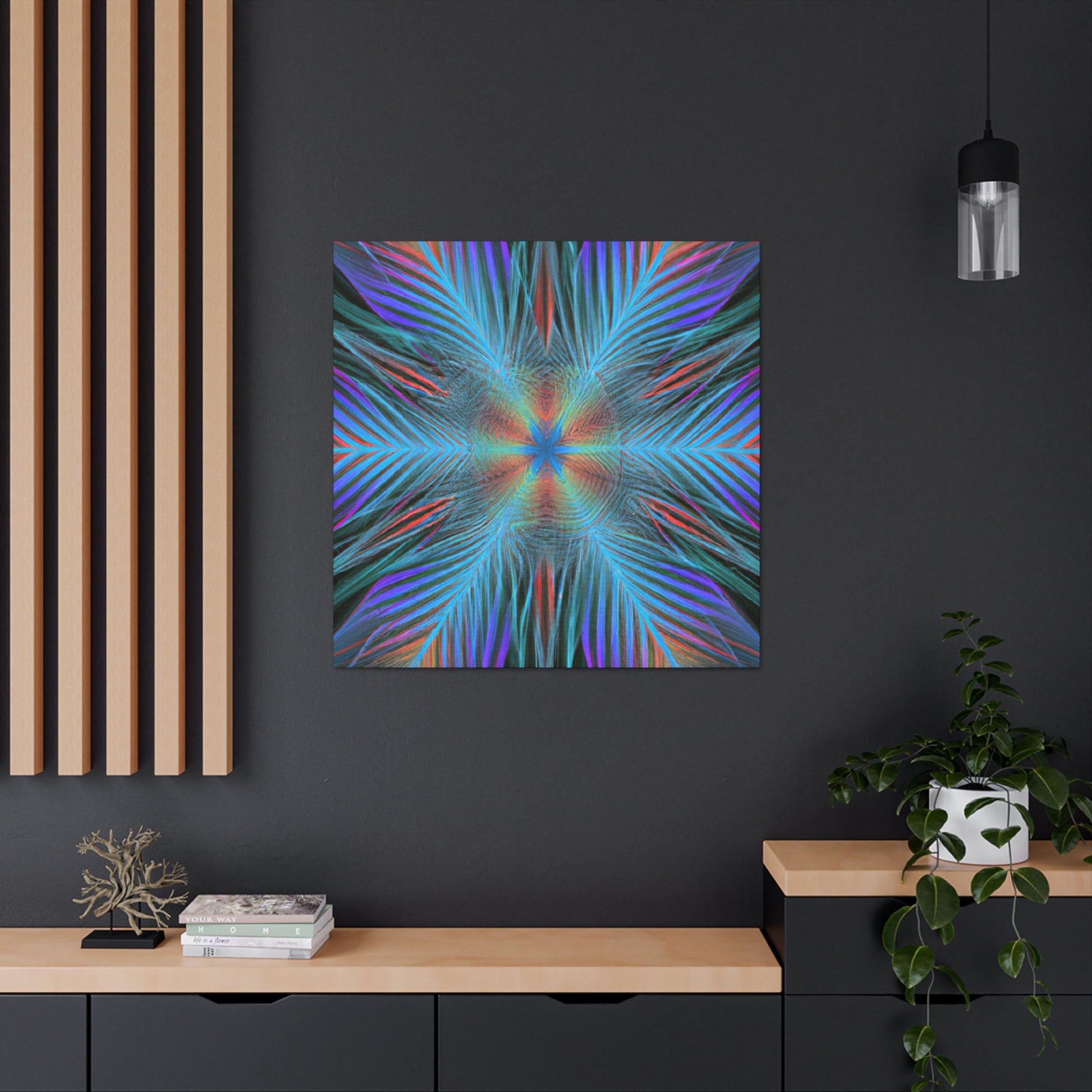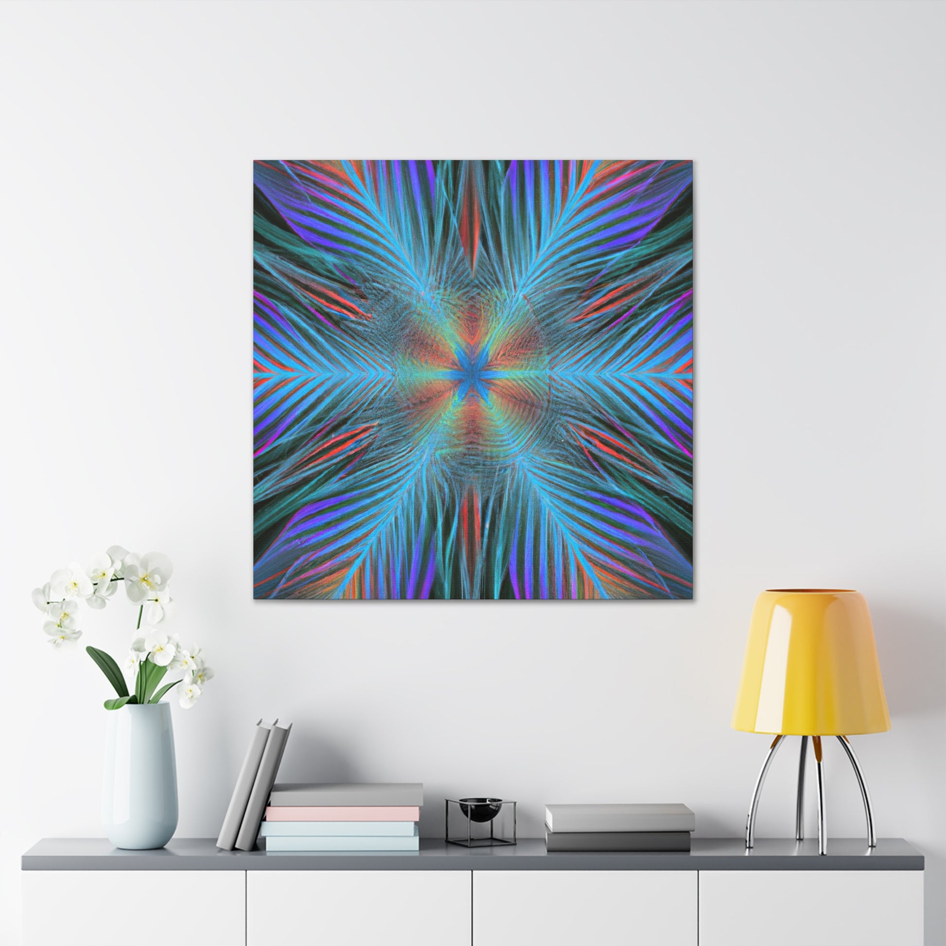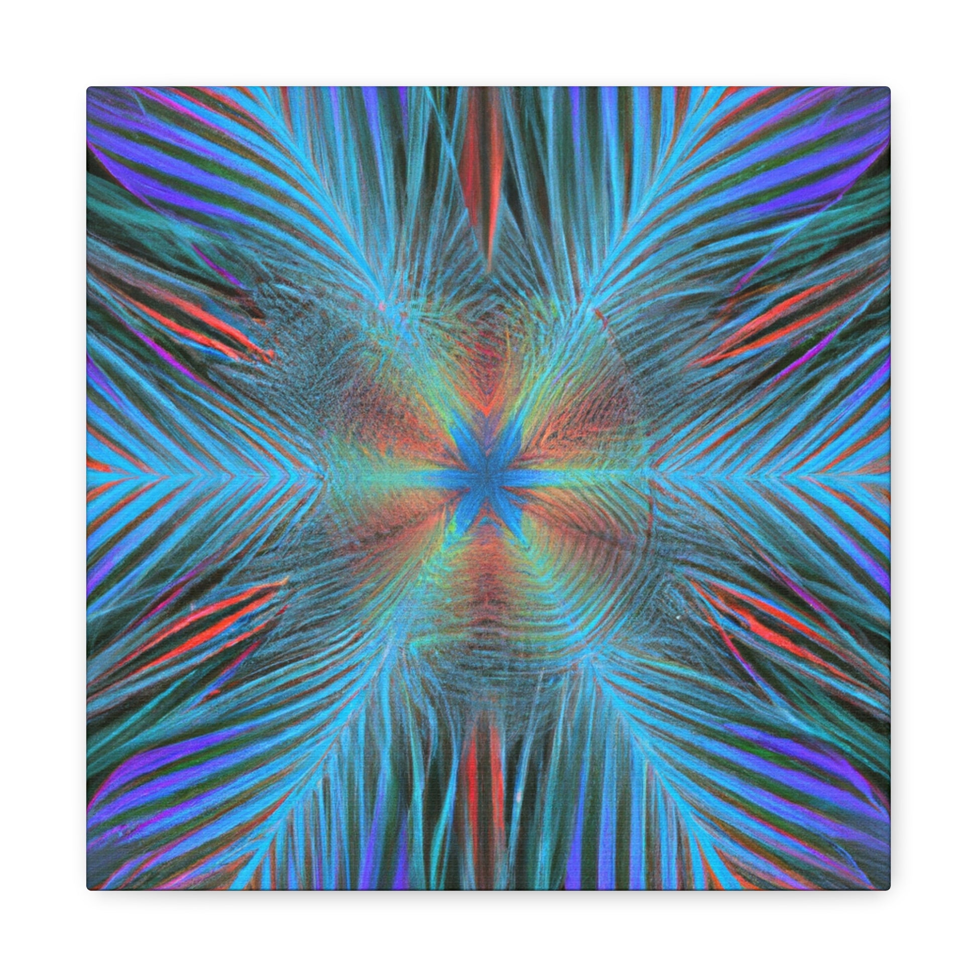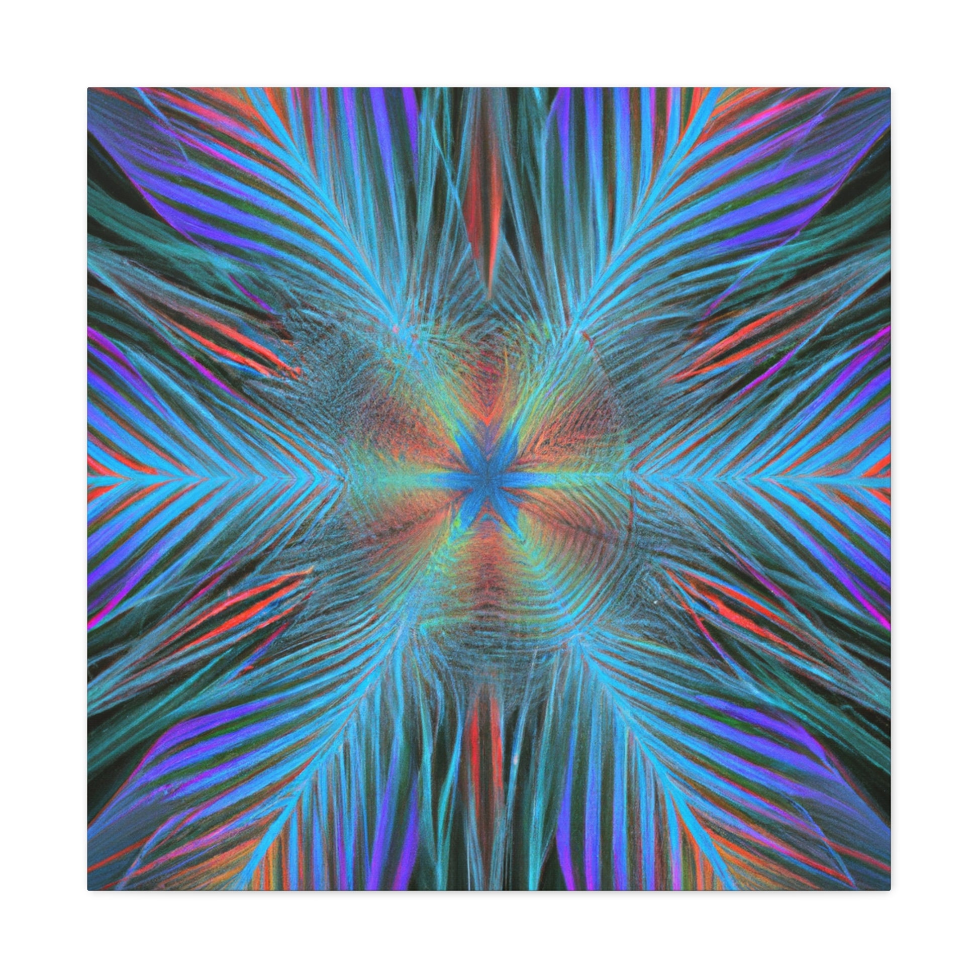 This modern canvas art radiates energy and life! Our Trippy Geometric Palm Leaves has bold, vibrant colors and intricate shapes that create a dynamic 3D effect. A kaleidoscope of abstract digital art comes to life with fractal patterns, 3D lines, and mesmerizing visuals. This piece is sure to draw attention to any room and is the perfect way to inject your space with vibrancy and energy. #art #abstractart #trippyart #geometricart #palmleaves #kaleidoscope #digitalart #vibrantcolors #3dlines #fractal #canvasart #modernart #walldecor #homedecor #interiordesign #contemporaryart #statementpiece #painting #modernpainting #interiorinspo #wallinspo #interiorart #artwork #streetart #decorideas