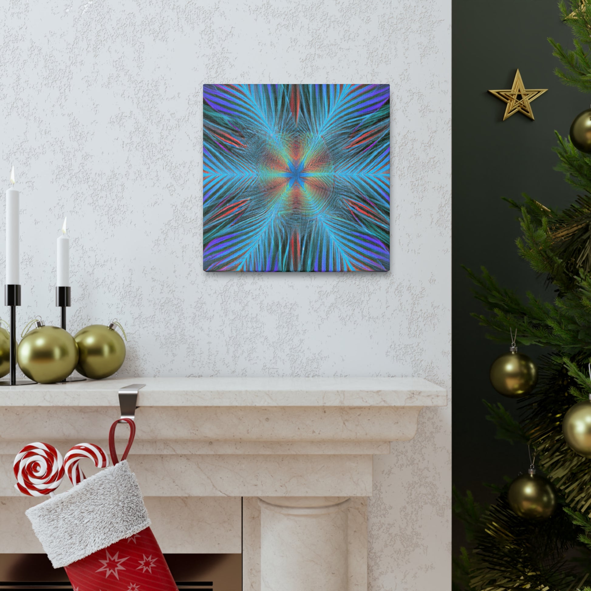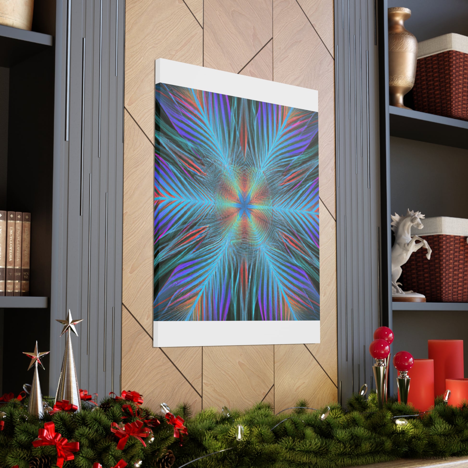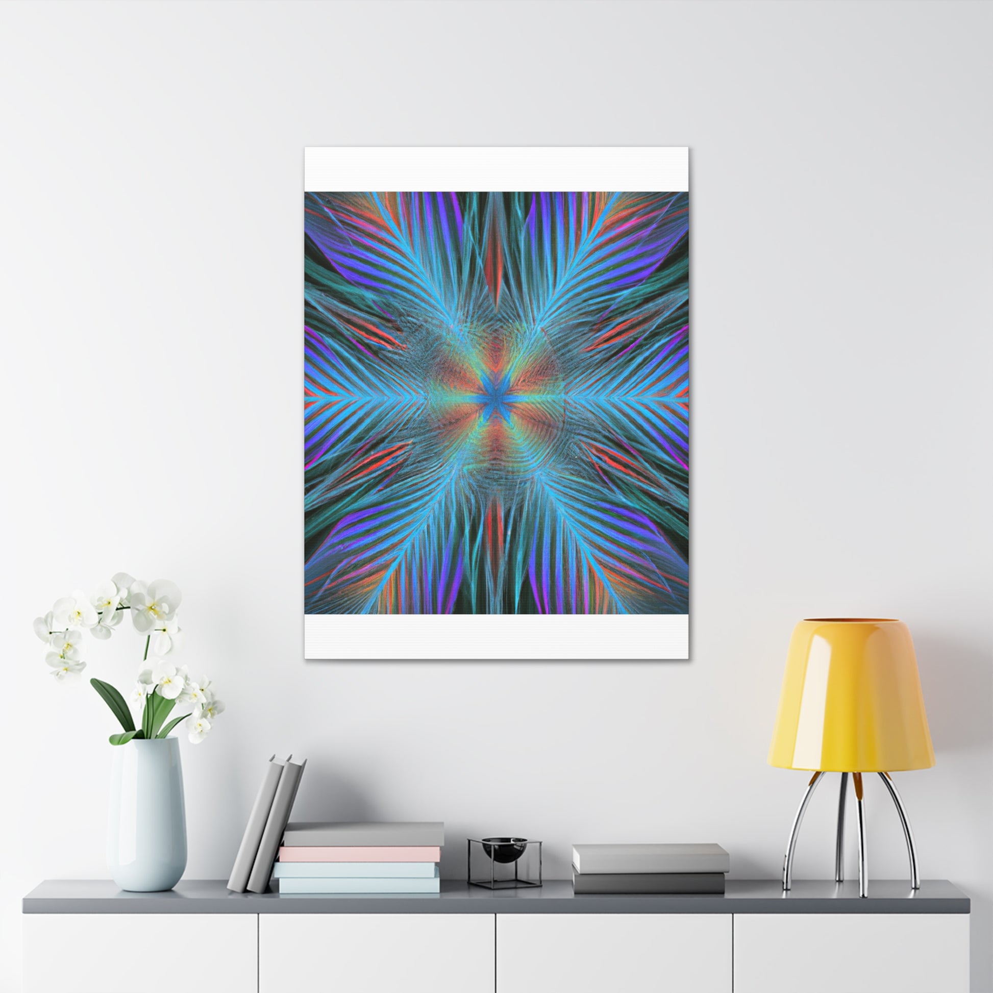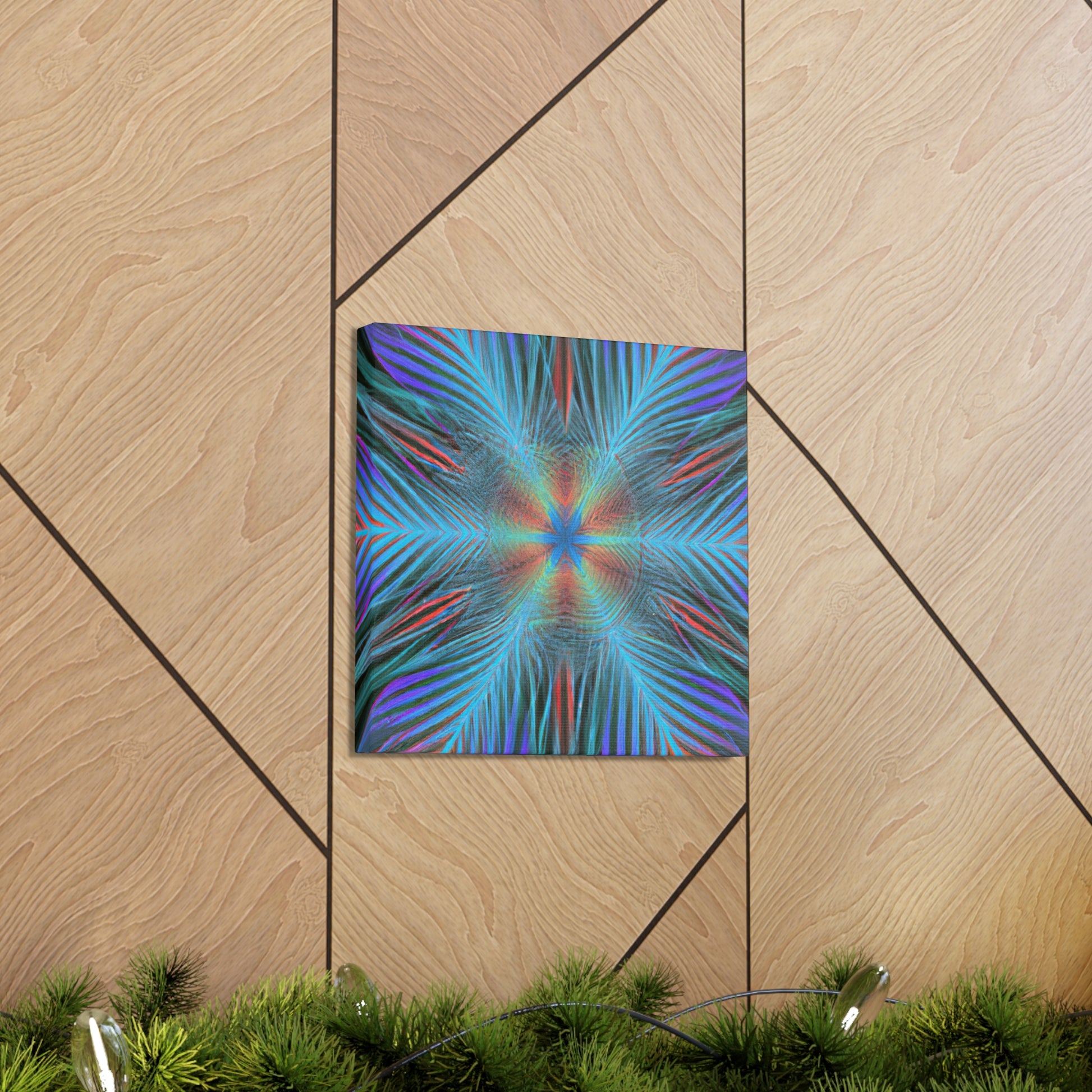 This modern canvas art radiates energy and life! Our Trippy Geometric Palm Leaves has bold, vibrant colors and intricate shapes that create a dynamic 3D effect. A kaleidoscope of abstract digital art comes to life with fractal patterns, 3D lines, and mesmerizing visuals. This piece is sure to draw attention to any room and is the perfect way to inject your space with vibrancy and energy. #art #abstractart #trippyart #geometricart #palmleaves #kaleidoscope #digitalart #vibrantcolors #3dlines #fractal #canvasart #modernart #walldecor #homedecor #interiordesign #contemporaryart #statementpiece #painting #modernpainting #interiorinspo #wallinspo #interiorart #artwork #streetart #decorideas