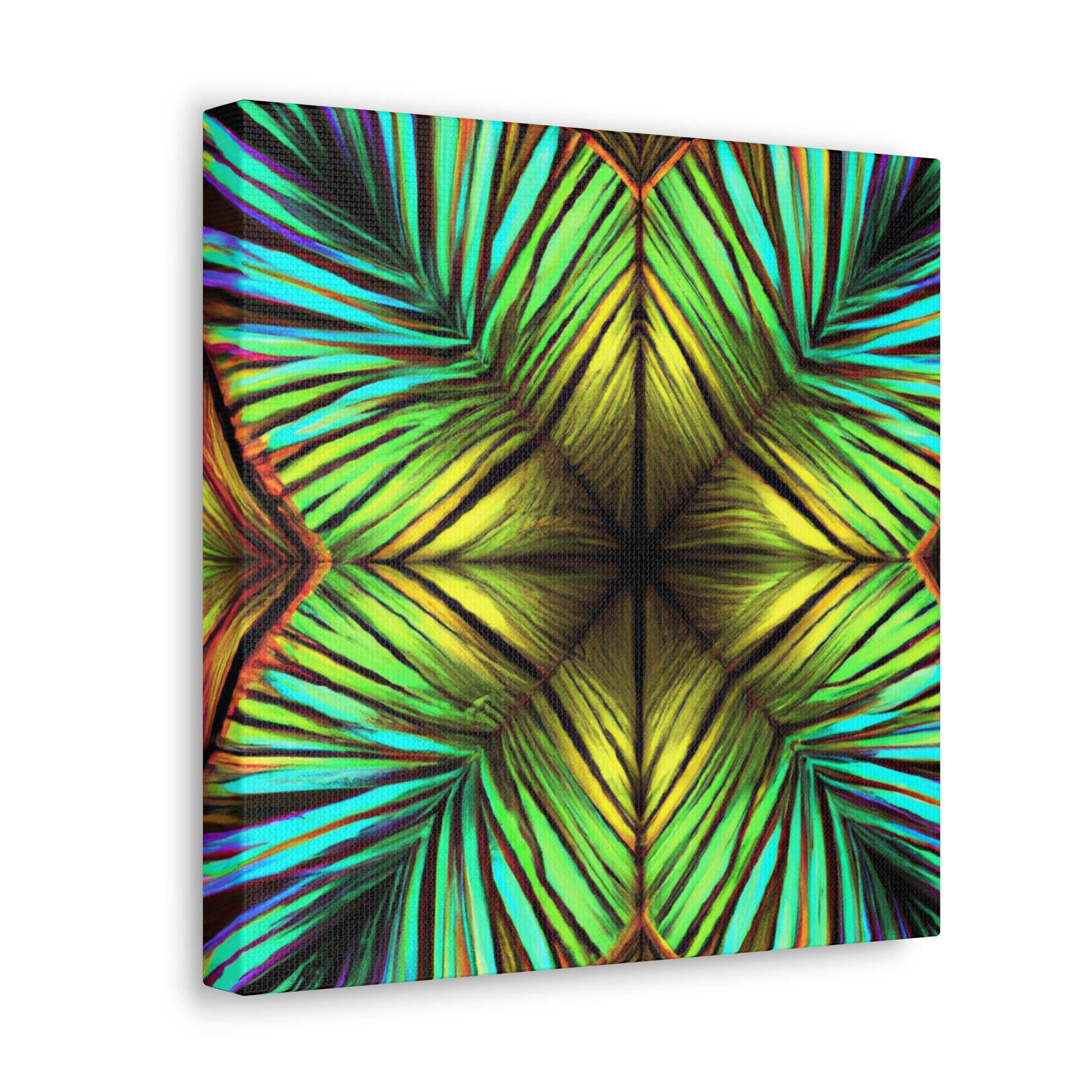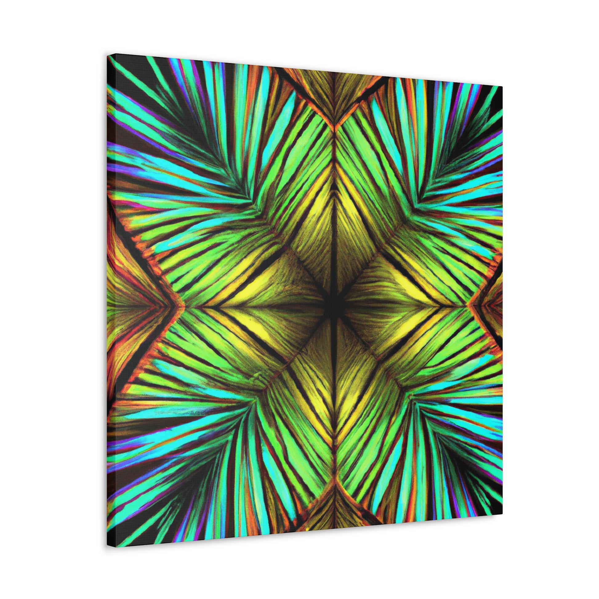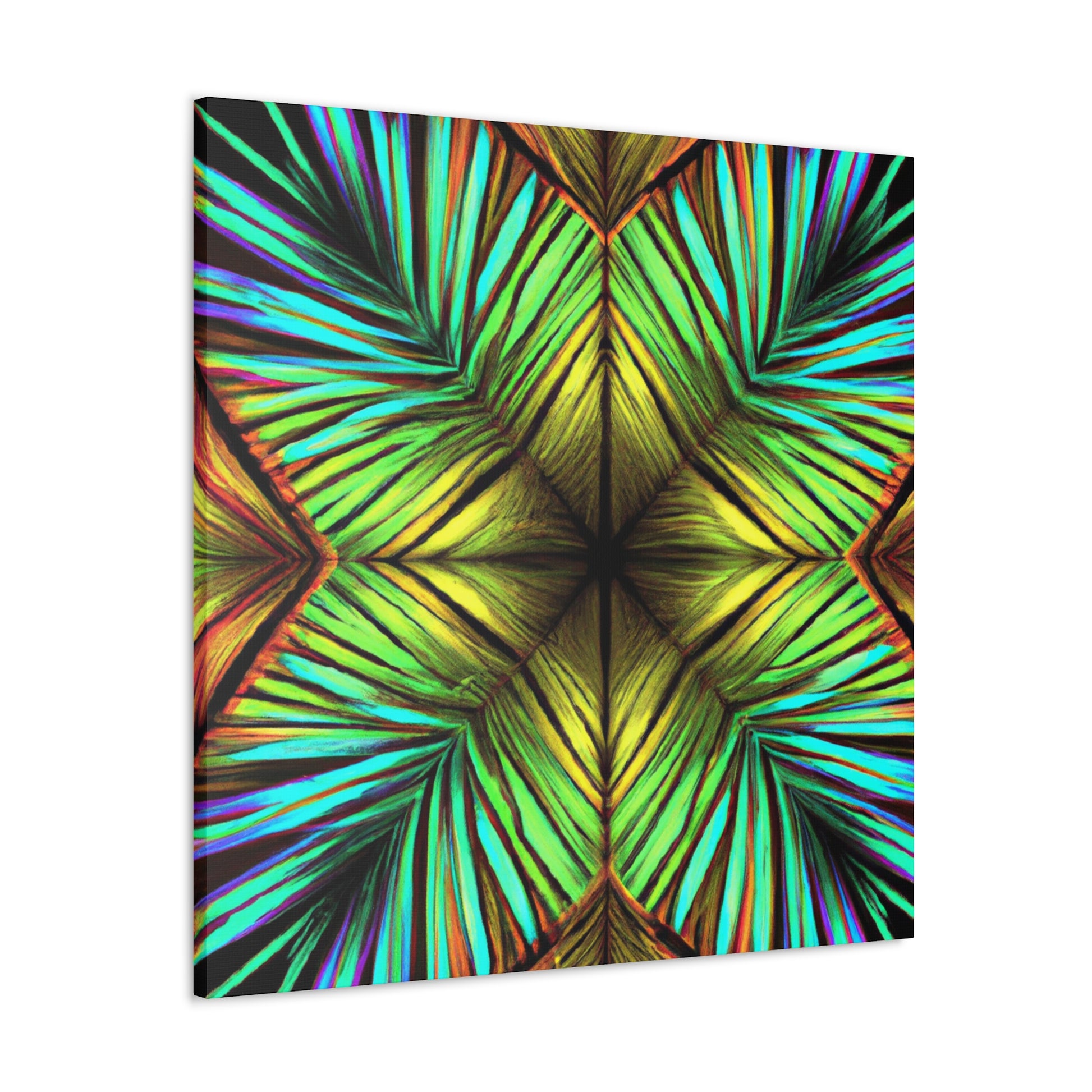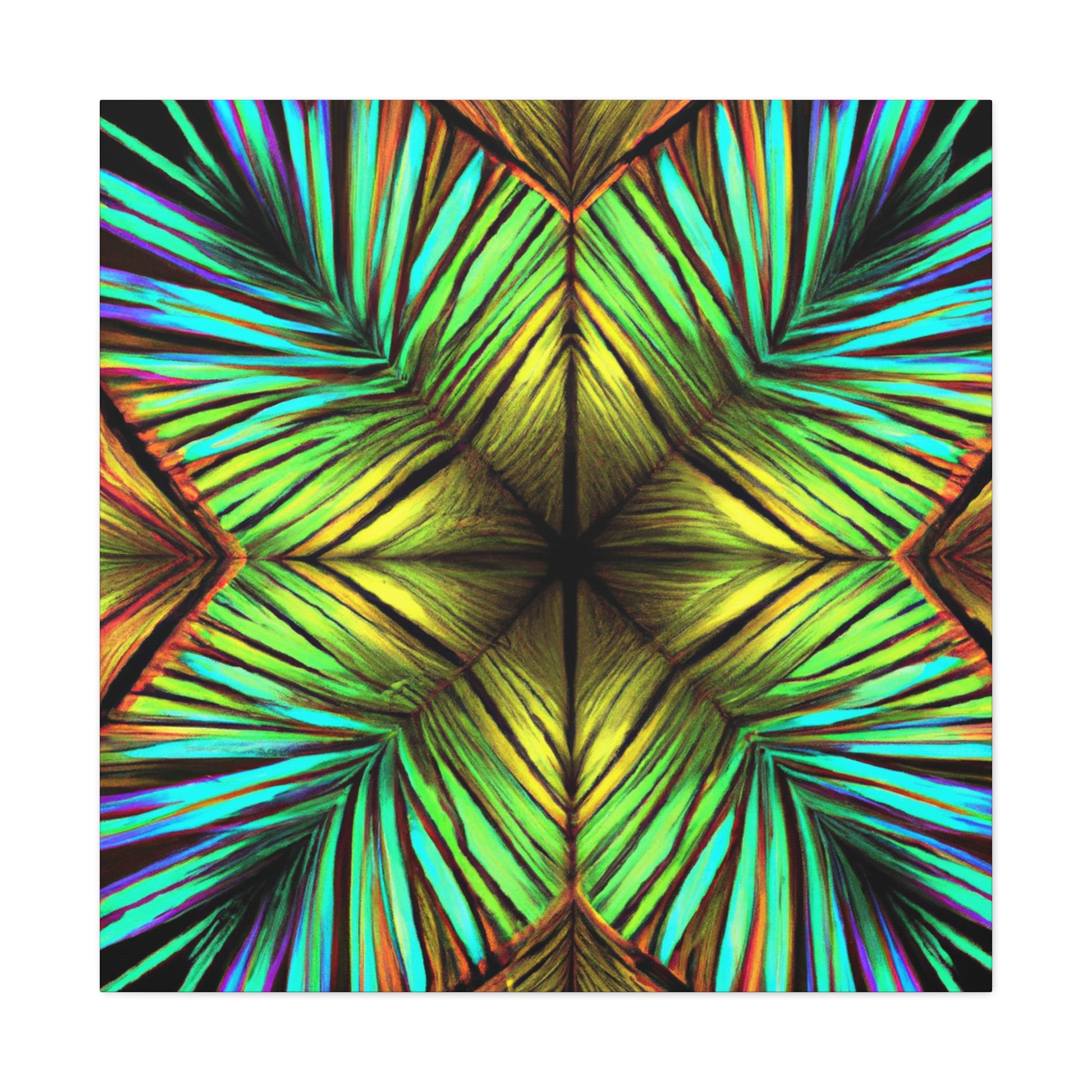 This canvas of Trippy Geometric Palm Leaves is a vibrant and stunning work of art. With kaleidoscope and abstract shapes, bold colors, and 3D lines, this piece creates a captivating blend of design. Fractal patterns emerge from the canvas, creating a mesmerizing effect that will add depth and movement to any wall. And with it's fashionable and refreshing aesthetic, this canvas is sure to make any room stand out. #AbstractArt #AbstractPainting #PalmLeaves #Kaleidoscope #Fractal #3DLines #Geometric #Vibrant #TrippyArt #DigitalArt #VibrantArt #CanvasArt #AbstractDesign #AbstractCanvas #UniquePiece #PalmLeavesArt #TrippyGeometric #AbstractDecor #3DLineDecor #FractalArt #KaleidoscopeDesign #PalmLeavesDesign #GeometricDesign #TrippyDesign #VibrantDesign #DigitalDecor #KaleidoscopeDecor #FractalDesign #AbstractWallArt