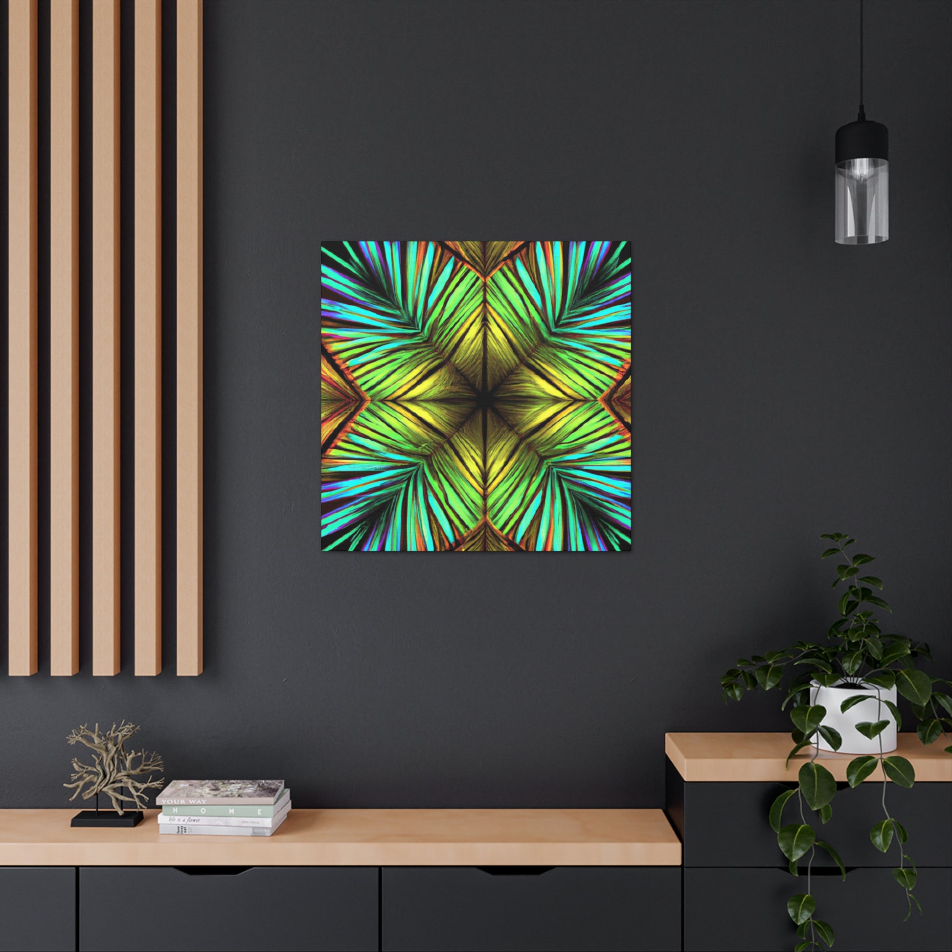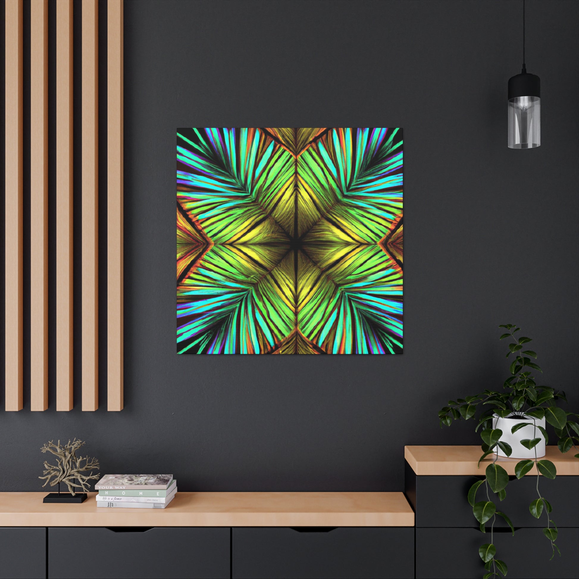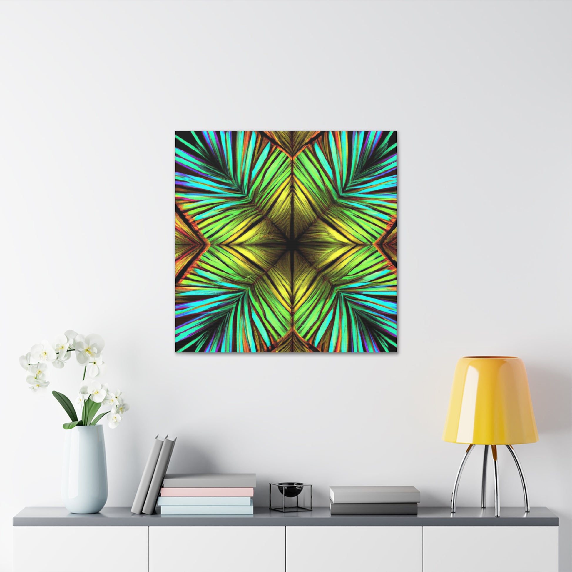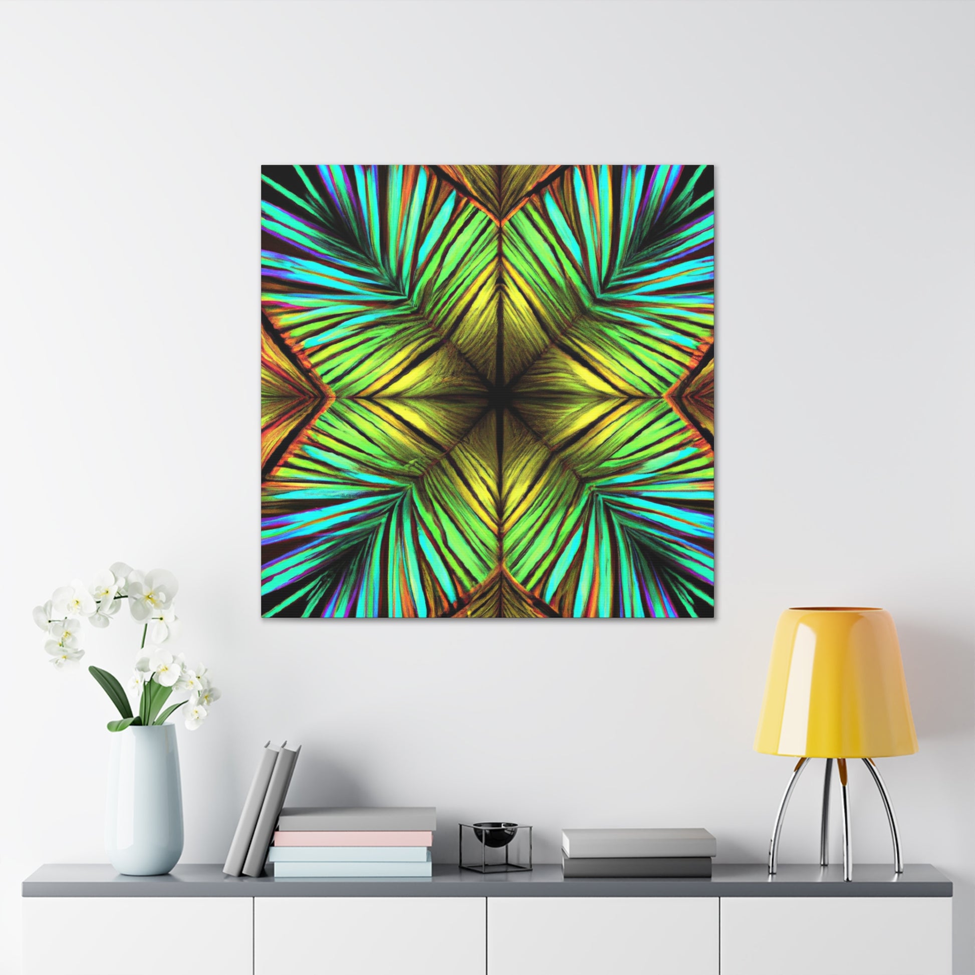 This canvas of Trippy Geometric Palm Leaves is a vibrant and stunning work of art. With kaleidoscope and abstract shapes, bold colors, and 3D lines, this piece creates a captivating blend of design. Fractal patterns emerge from the canvas, creating a mesmerizing effect that will add depth and movement to any wall. And with it's fashionable and refreshing aesthetic, this canvas is sure to make any room stand out. #AbstractArt #AbstractPainting #PalmLeaves #Kaleidoscope #Fractal #3DLines #Geometric #Vibrant #TrippyArt #DigitalArt #VibrantArt #CanvasArt #AbstractDesign #AbstractCanvas #UniquePiece #PalmLeavesArt #TrippyGeometric #AbstractDecor #3DLineDecor #FractalArt #KaleidoscopeDesign #PalmLeavesDesign #GeometricDesign #TrippyDesign #VibrantDesign #DigitalDecor #KaleidoscopeDecor #FractalDesign #AbstractWallArt