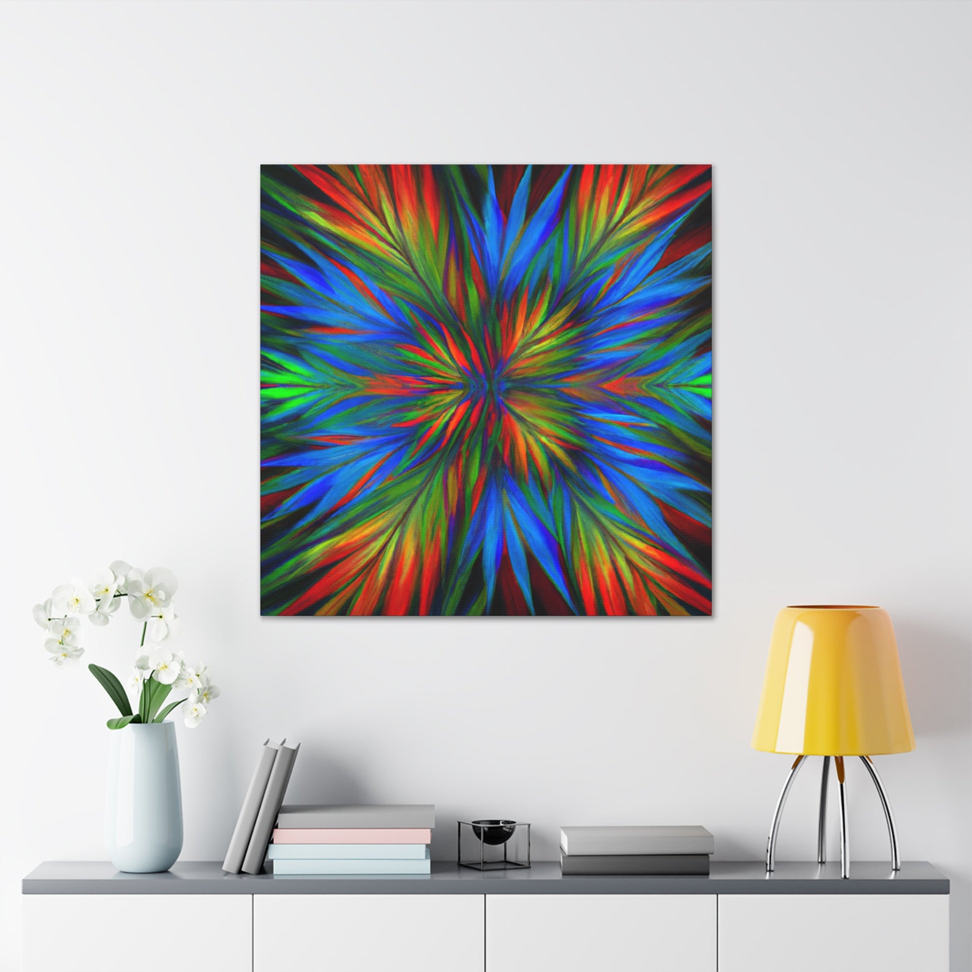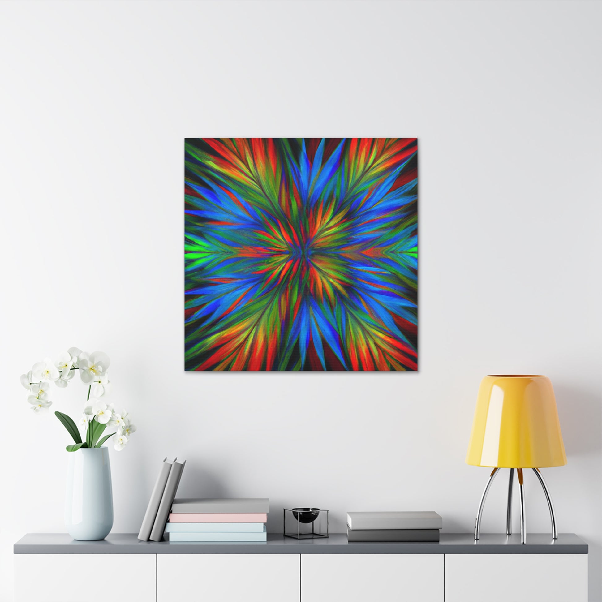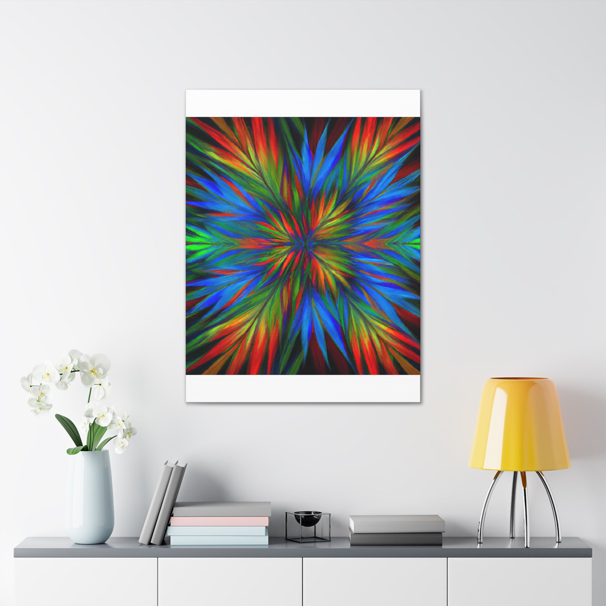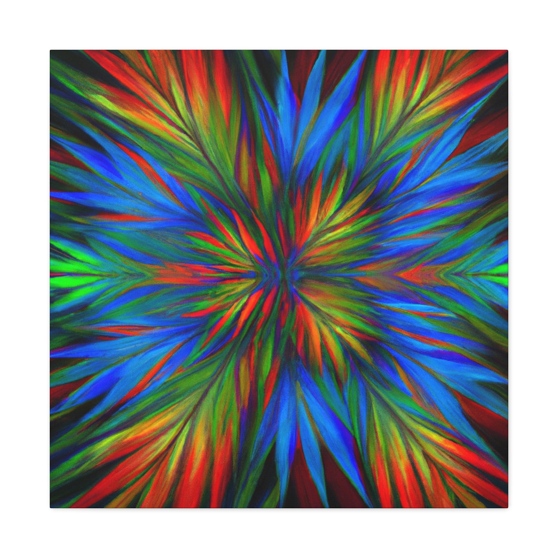 This canvas depicts modern art with its mix of geometric palm leaves, kaleidoscope, abstract, digital art, vibrant colors, 3D lines and fractal. Add a pop of color to your wall with this eye-catching piece of art. Bring a sense of style and vibrancy to your home. #art #modernart #palmleaves #geometricart #kaleidoscope #abstractart #digitalart #colorfulart #vibrantcolors #3Dlines #fractal #canvas #ModernWallArt #KaleidoscopePainting #3dPainting #AbstractPaintings #FractalWallArt #PolygonArt #GeometricPainting #PalmLeavesPaintings #DigitalArtCanvas #GeometricCanvas #PalmLeavesCanvas #KaleidoscopeCanvas #FractalCanvas #CanvasArt #AbstractCanvas