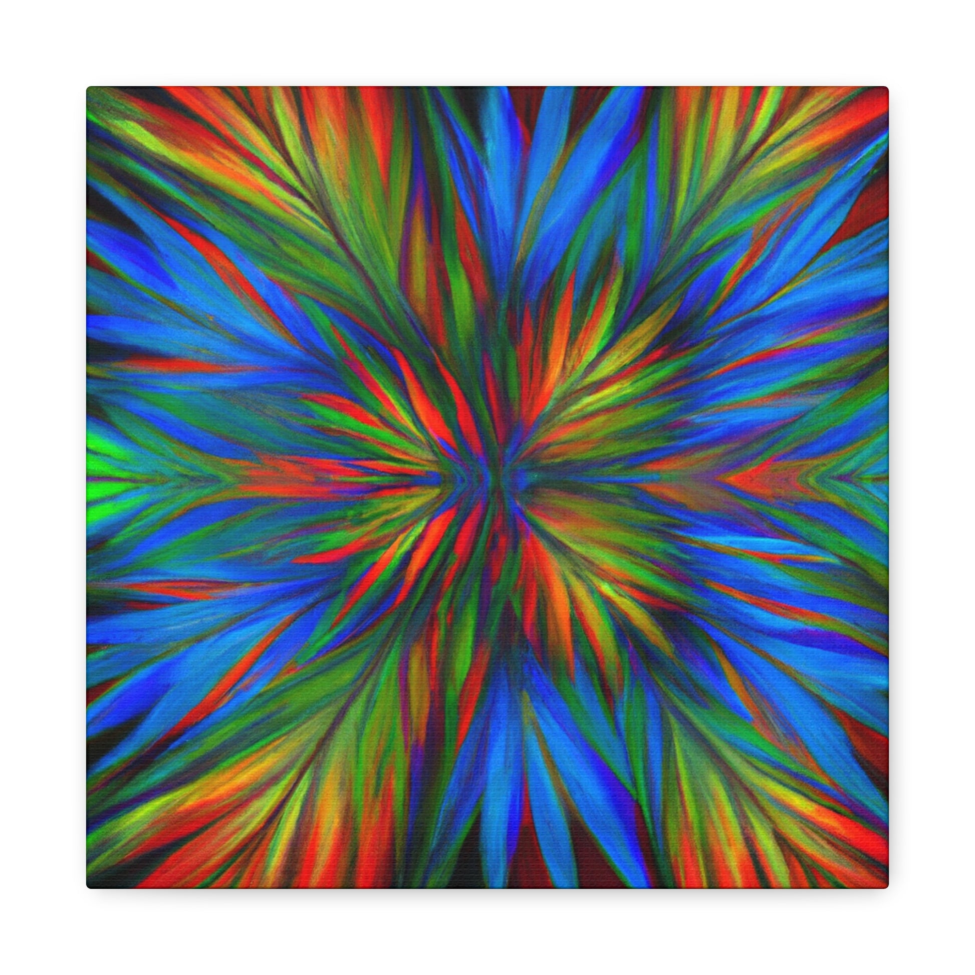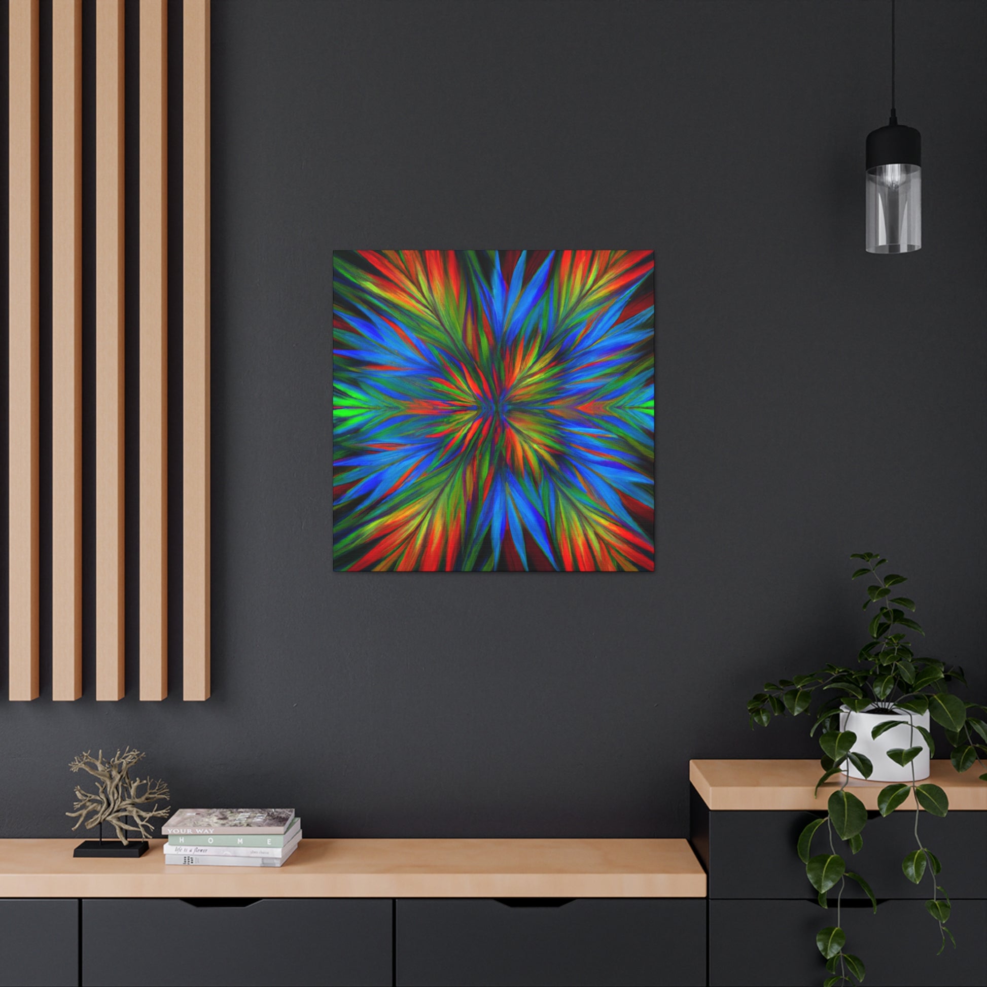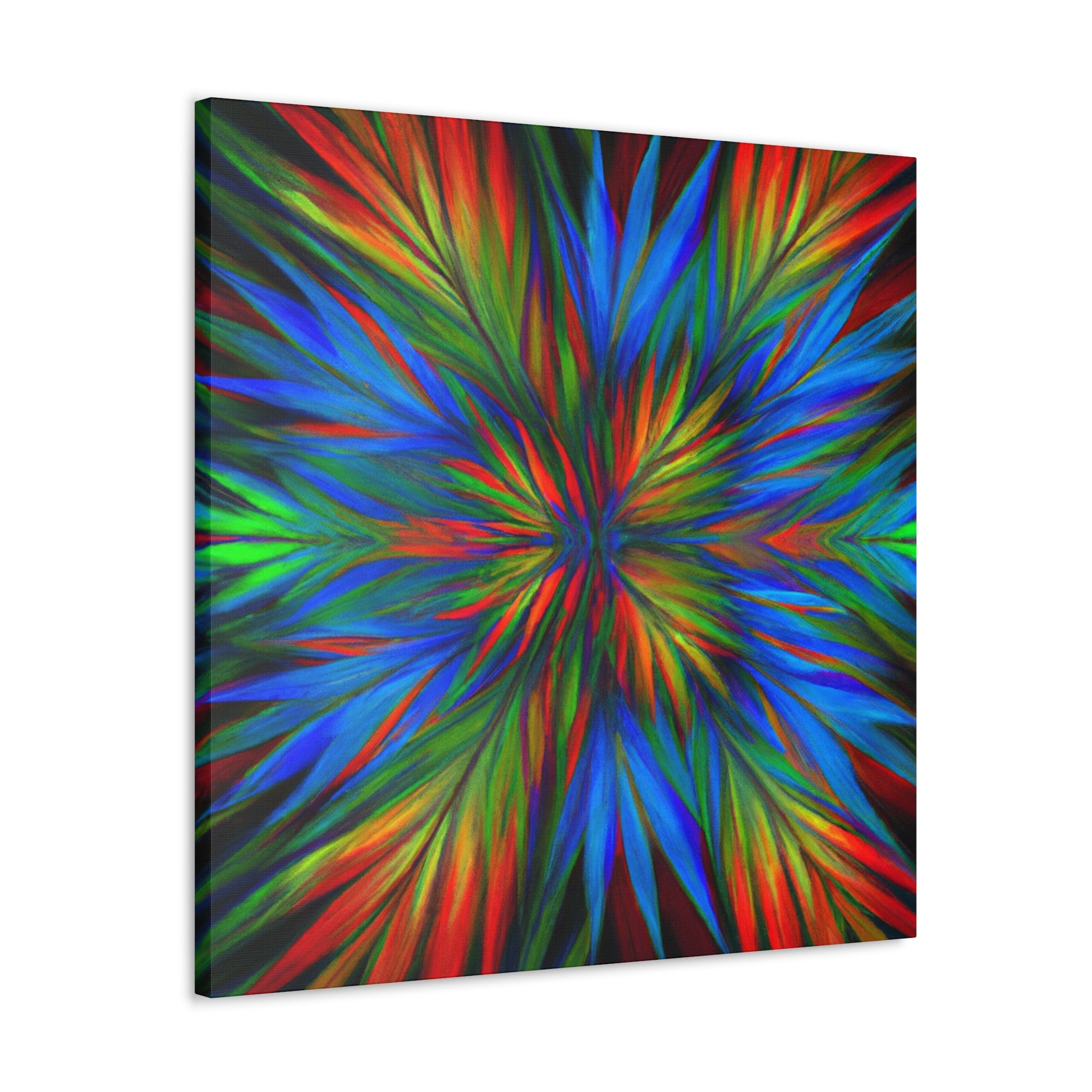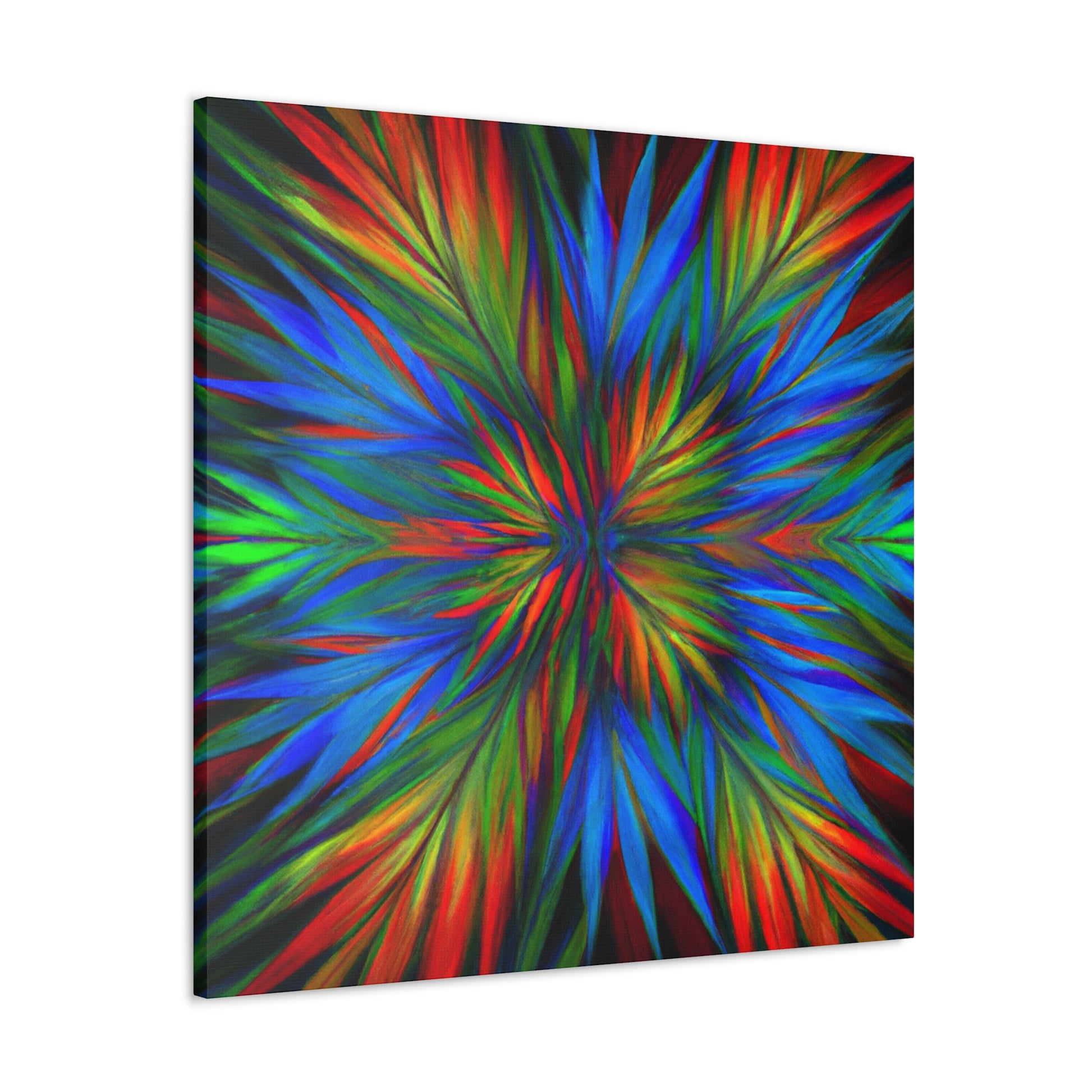 This canvas depicts modern art with its mix of geometric palm leaves, kaleidoscope, abstract, digital art, vibrant colors, 3D lines and fractal. Add a pop of color to your wall with this eye-catching piece of art. Bring a sense of style and vibrancy to your home. #art #modernart #palmleaves #geometricart #kaleidoscope #abstractart #digitalart #colorfulart #vibrantcolors #3Dlines #fractal #canvas #ModernWallArt #KaleidoscopePainting #3dPainting #AbstractPaintings #FractalWallArt #PolygonArt #GeometricPainting #PalmLeavesPaintings #DigitalArtCanvas #GeometricCanvas #PalmLeavesCanvas #KaleidoscopeCanvas #FractalCanvas #CanvasArt #AbstractCanvas