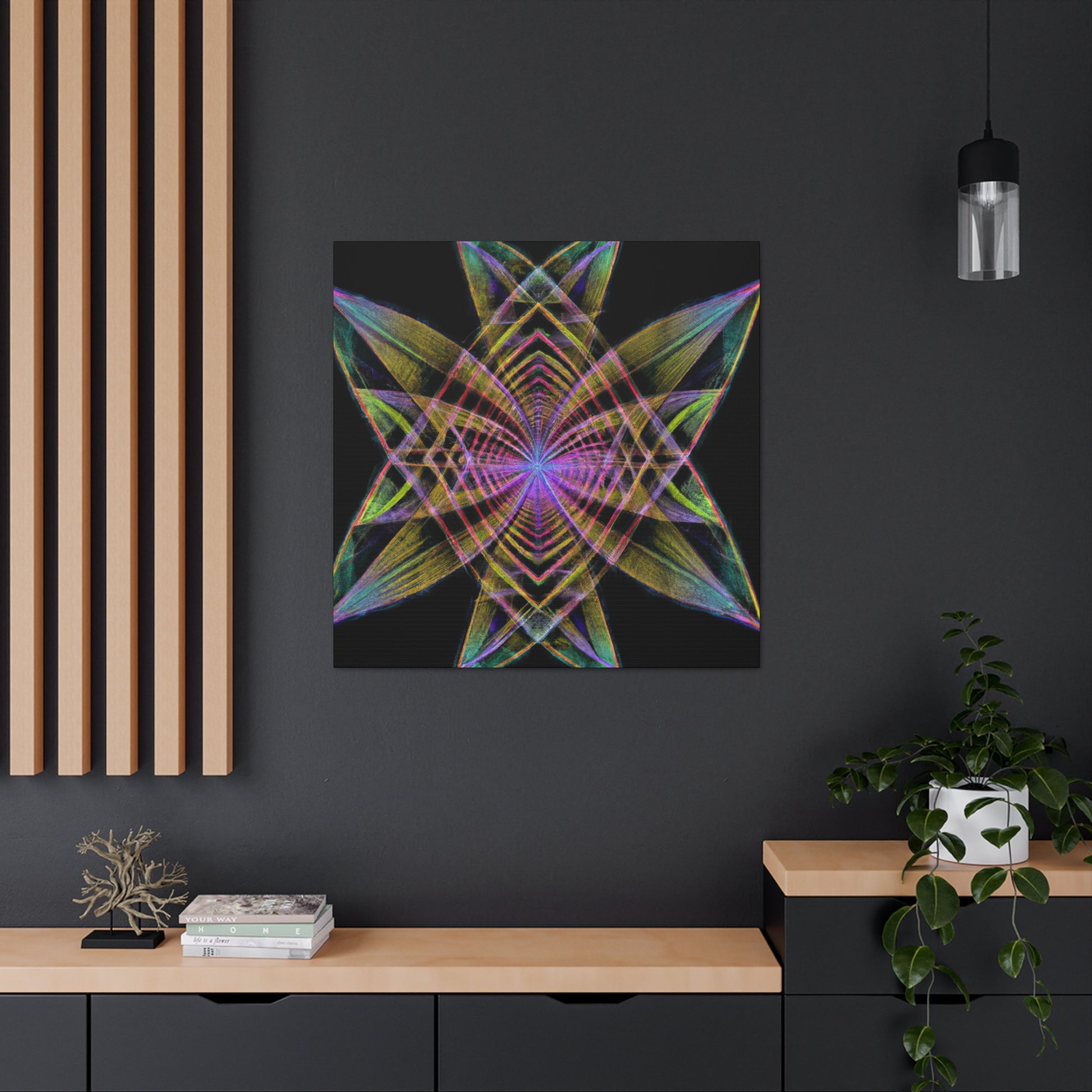 This trippy and abstract canvas is the perfect addition to any decor. Featuring a unique geometric design with kaleidoscope abstracts, vibrant colors, and 3D lines, it will surely transform the room to a stylish and unique space. Plus, the fractal design looks different from every angle. Make a statement in any room with this canvas - it is sure to turn heads and excite the senses! #TrippyArt #AbstractArt #DigitalArt #VibrantColors #3DLines #Fractal #Kaleidoscope #PalmLeaves #CanvasArt #HomeDecor #InteriorDesign #Geometric #TrippyGeometric #PalmLeavesArt #InteriorDecor #UniqueDecor #KaleidoscopeArt #FractalArt #AbstractPainting #CanvasPainting #ModernArt #VibrantCANVAS #3DArt #WallDecor #UniqueArt #ArtLovers #HomeDesign #Aesthetic #ModernDecor #FractalPainting