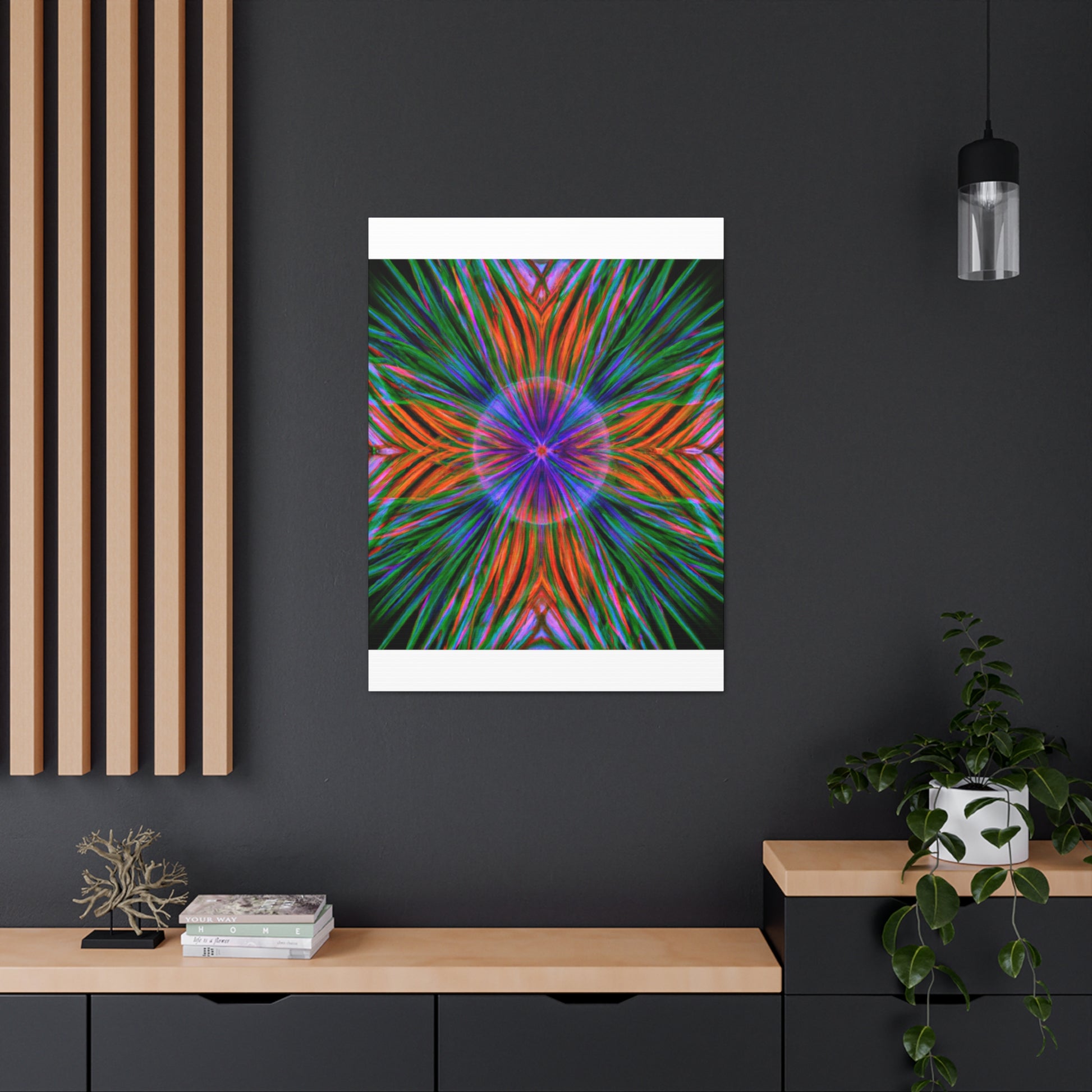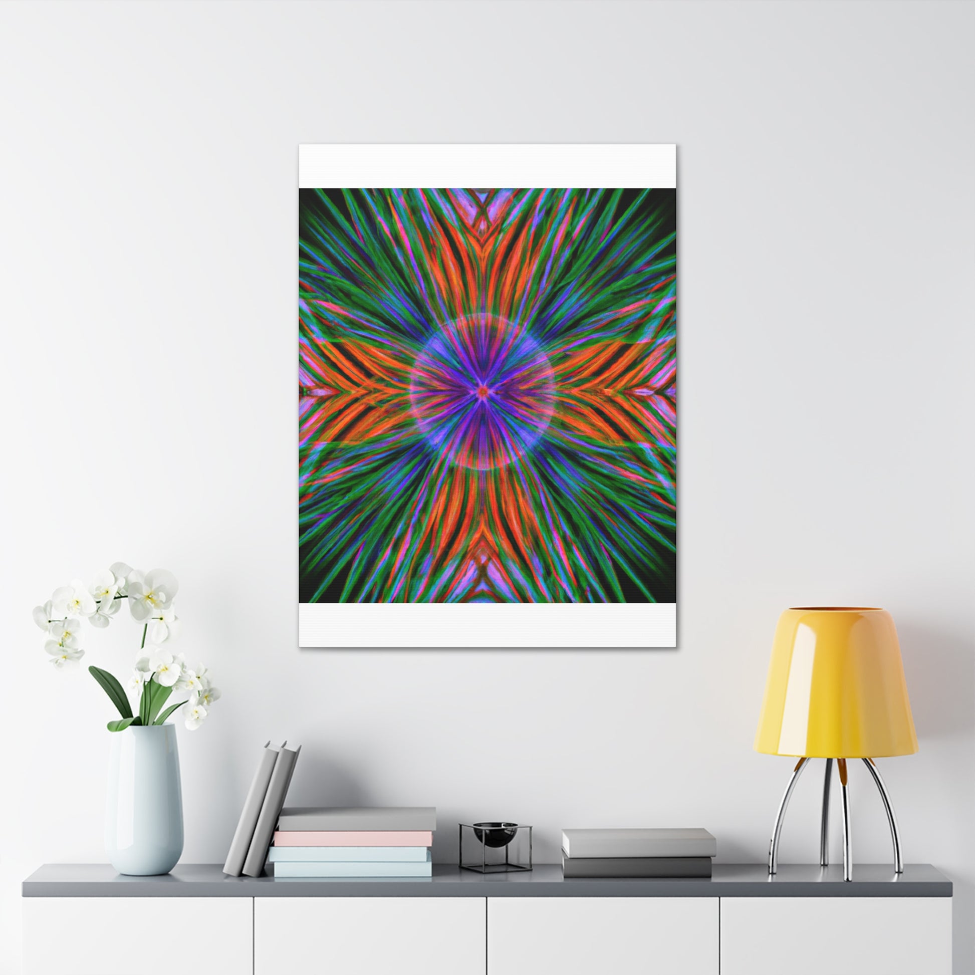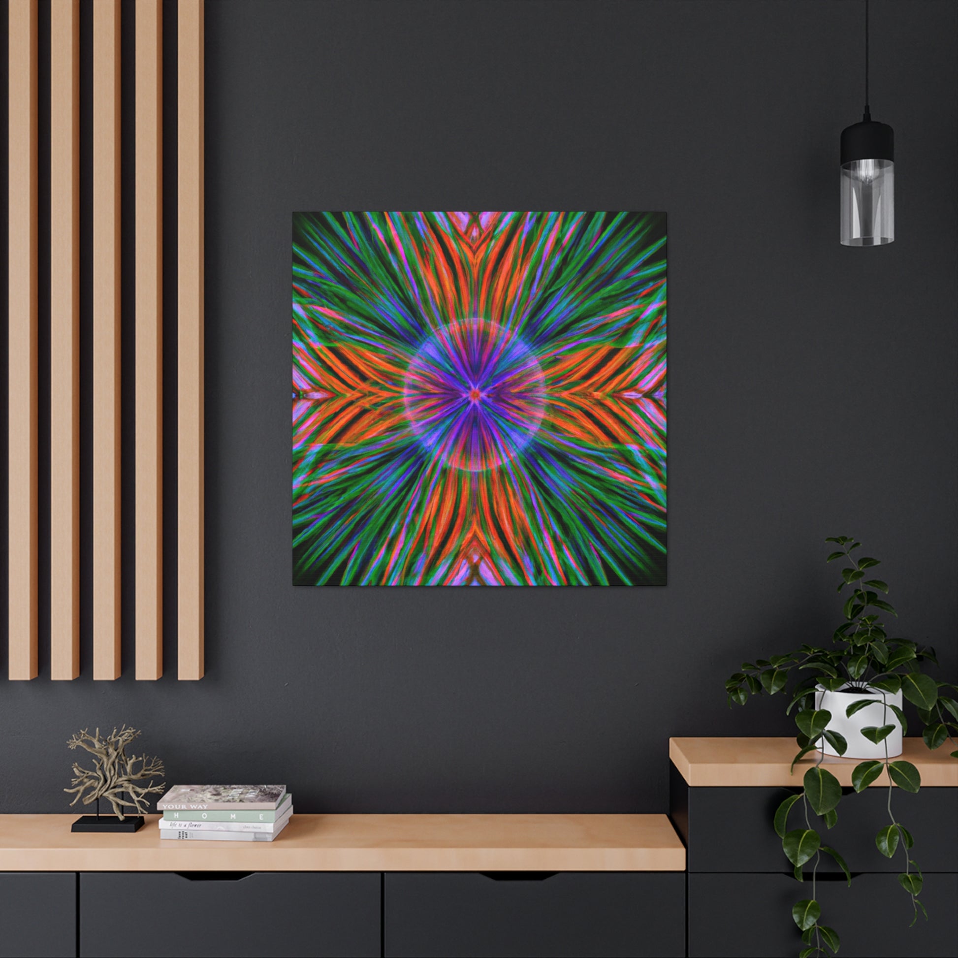 This one-of-a-kind, Trippy Geometric Palm Leaves Canvas will enliven your living space with its colourful, abstract vibes! Each vibrant 3D line, kaleidoscope element and psychedelic fractal will add texture and depth to your decor. Make a statement with this digitally printed art piece and be ready to dazzle your guests! #trippy #geometric #palmleaves #kaleidoscope #abstract #digitalart #vibrantcolors #3dlines #fractals #artwork #statementpiece #psychedelic #decorative #homedecor #interiordesign #wallart #unique #boldbolds #colorful #interiordesigner #happydecor #printartwork #3dpainting #canvasprint #fantasticwallart #yellowlivingroom #astoundingart #wowfactorart #vibrantcolors