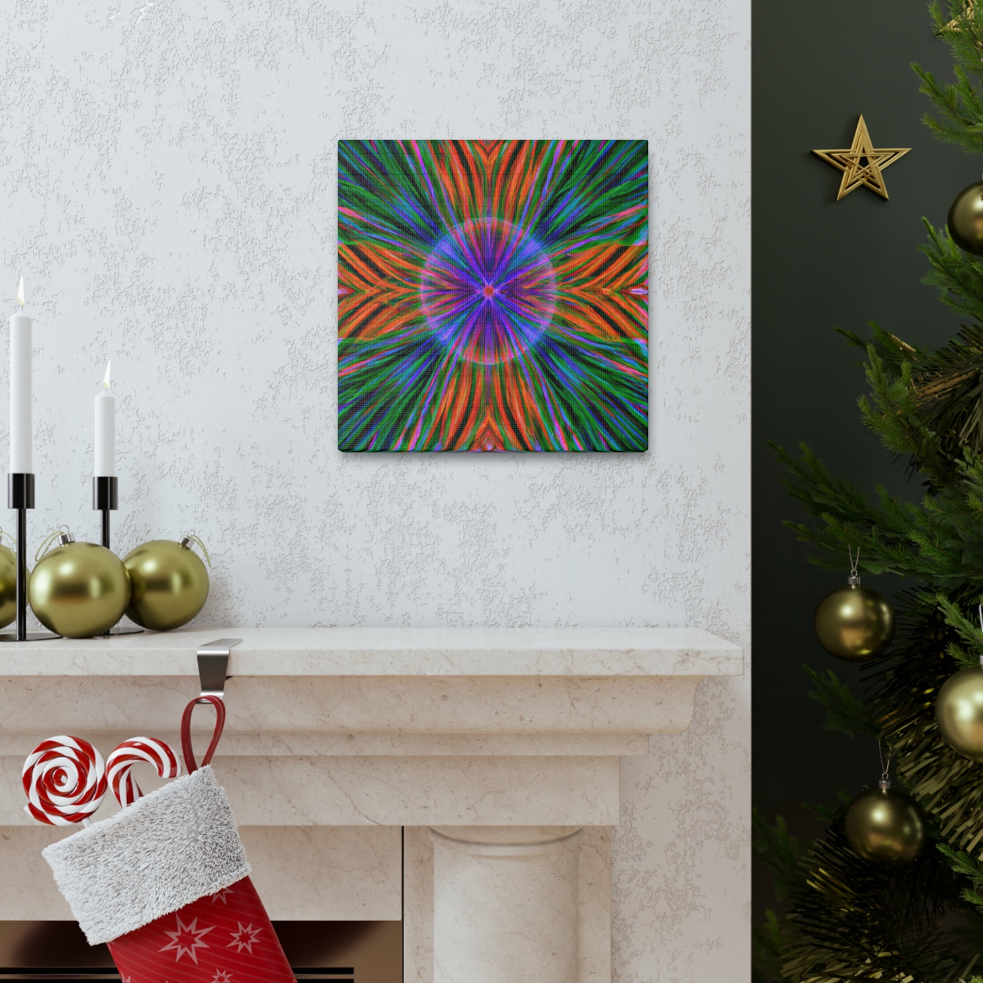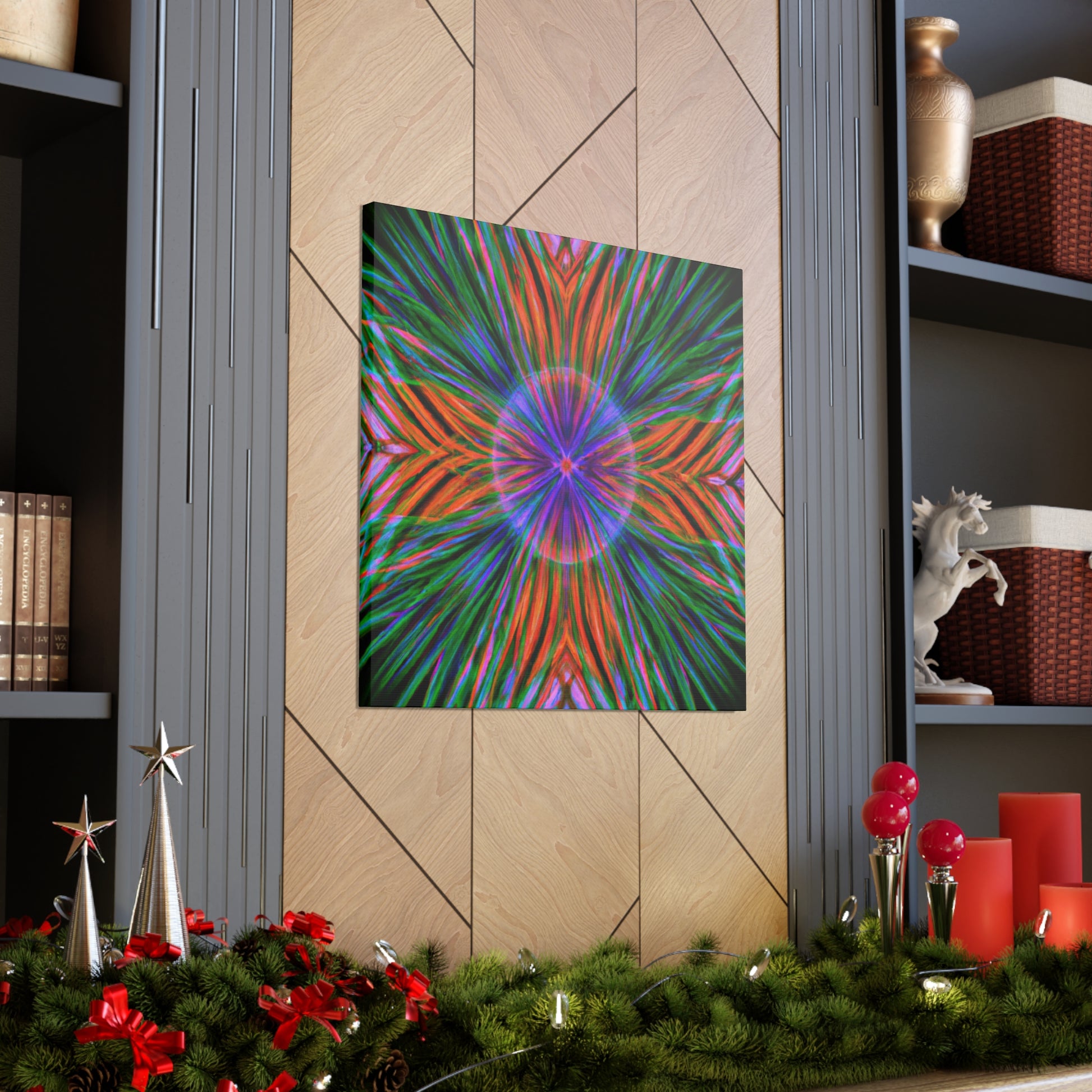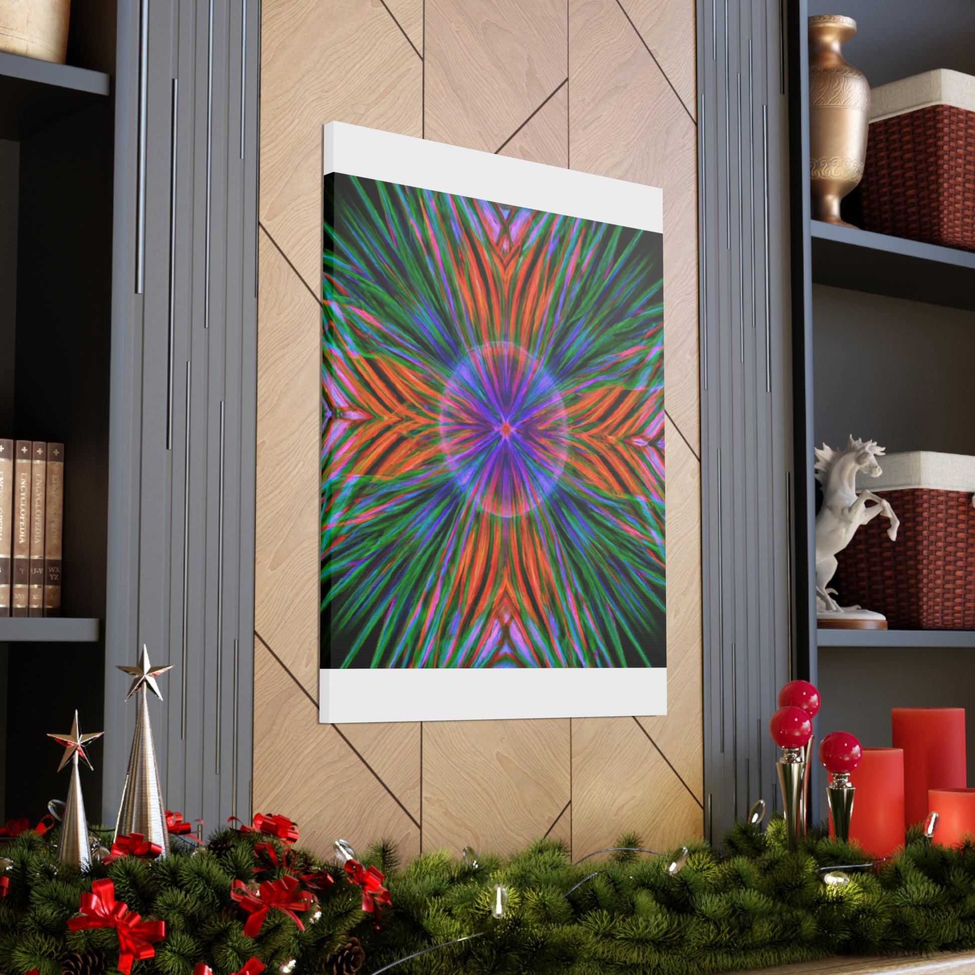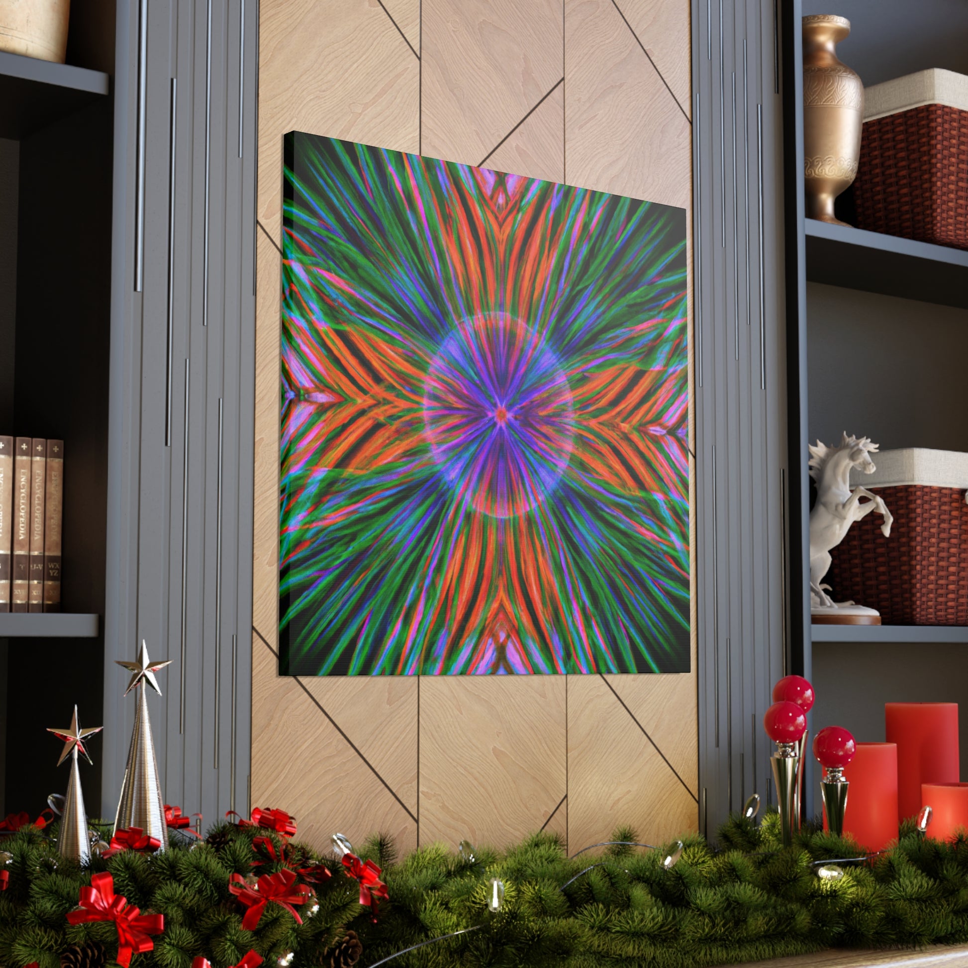 This one-of-a-kind, Trippy Geometric Palm Leaves Canvas will enliven your living space with its colourful, abstract vibes! Each vibrant 3D line, kaleidoscope element and psychedelic fractal will add texture and depth to your decor. Make a statement with this digitally printed art piece and be ready to dazzle your guests! #trippy #geometric #palmleaves #kaleidoscope #abstract #digitalart #vibrantcolors #3dlines #fractals #artwork #statementpiece #psychedelic #decorative #homedecor #interiordesign #wallart #unique #boldbolds #colorful #interiordesigner #happydecor #printartwork #3dpainting #canvasprint #fantasticwallart #yellowlivingroom #astoundingart #wowfactorart #vibrantcolors