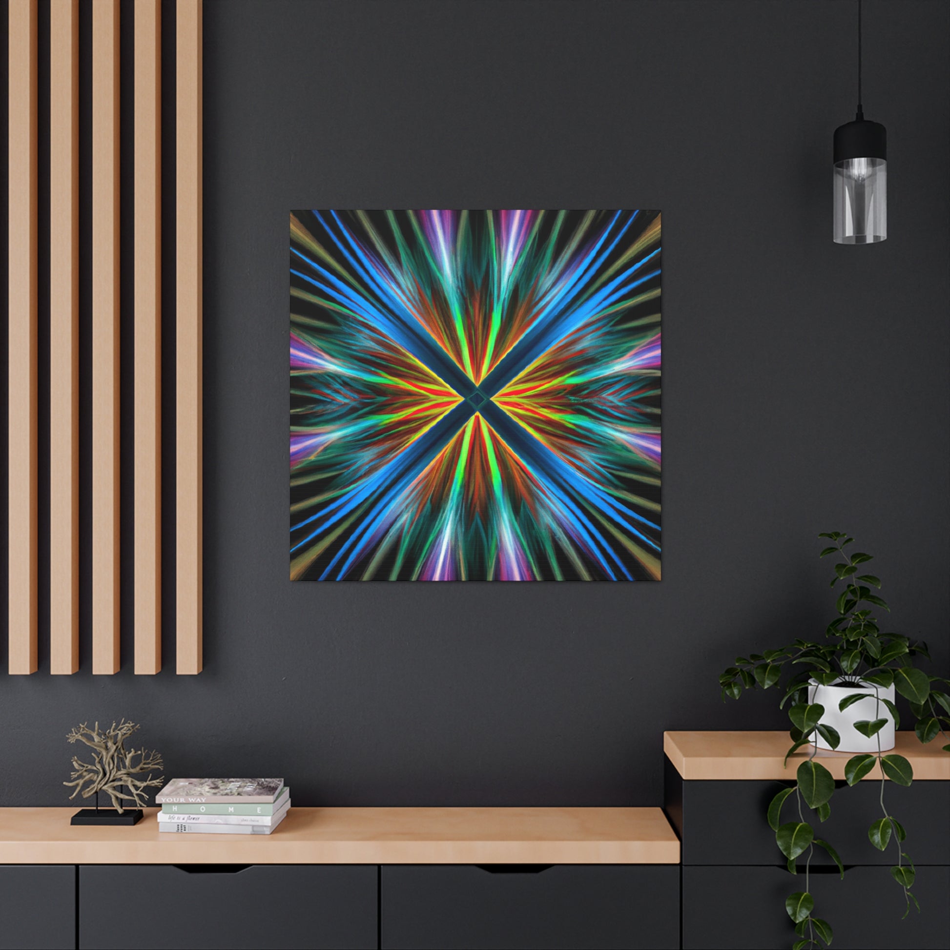 This vibrant digital art canvas is for the ones who loves abstract art! Featuring trippy geometric palm leaves, kaleidoscope, 3D lines, and fractal designs, this work of art is sure to bring life to any living space. The blend of rich, dynamic colours are sure to captivate all eyes. Let your walls tell your story and get this unique art today! #abstractart #digitalart #vibrantcolors #3Dlines #fractal #kaleidoscope #geometric #palmleaves #canvas #trippy #art #dynamic #colours #story #wallart #vibes #poster #beautiful #colourful #roomdecor #homeaccessories #homedecor #livevibrantly #designs #artist #unique #original #bold #modernart #adddimension