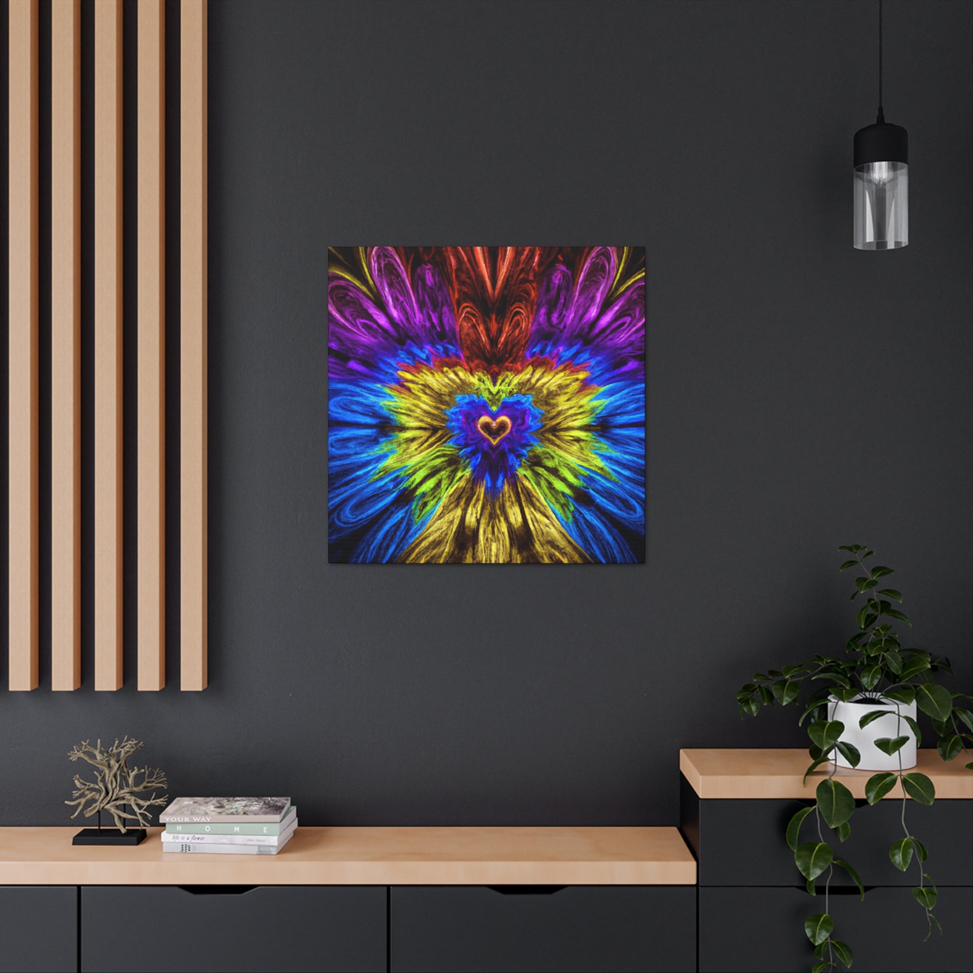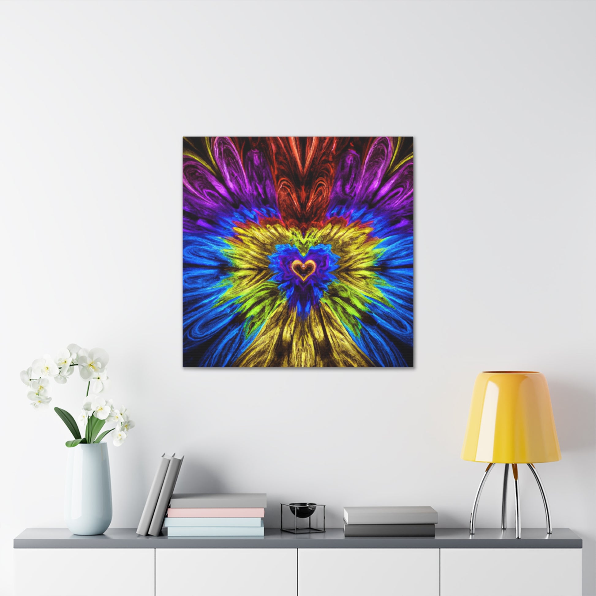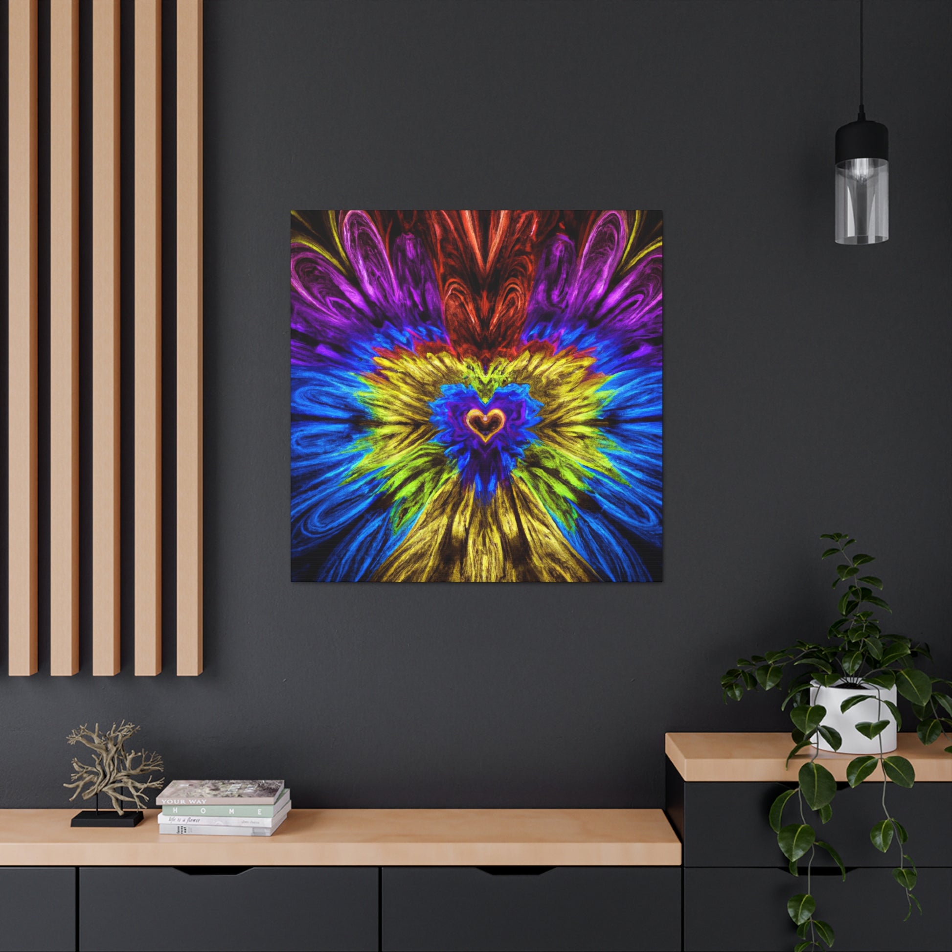 This one-of-a-kind canvas is sure to be the centerpiece of any wall! Featuring trippy geometric shapes, kaleidoscope art, abstract design, and digital 3D lines in vibrant colors, this bold piece will bring life to any space. The fractal-inspired visuals will keep you captivated and bring a unique energy to any room. Size and colors tailored to your preferences. #art #canvas #wallart #uniqueart #trippy #kaleidoscope #abstract #digitalart #fractal #vibrantcolors #3Dlines #decor #interiordesign #geometric #newart #modernart #heartart #boldart #interiorinspo #contemporaryart #homedecor #colourpalette #statementpiece #designinspo #designerart #homedecoration #housestyle #interiorlovers