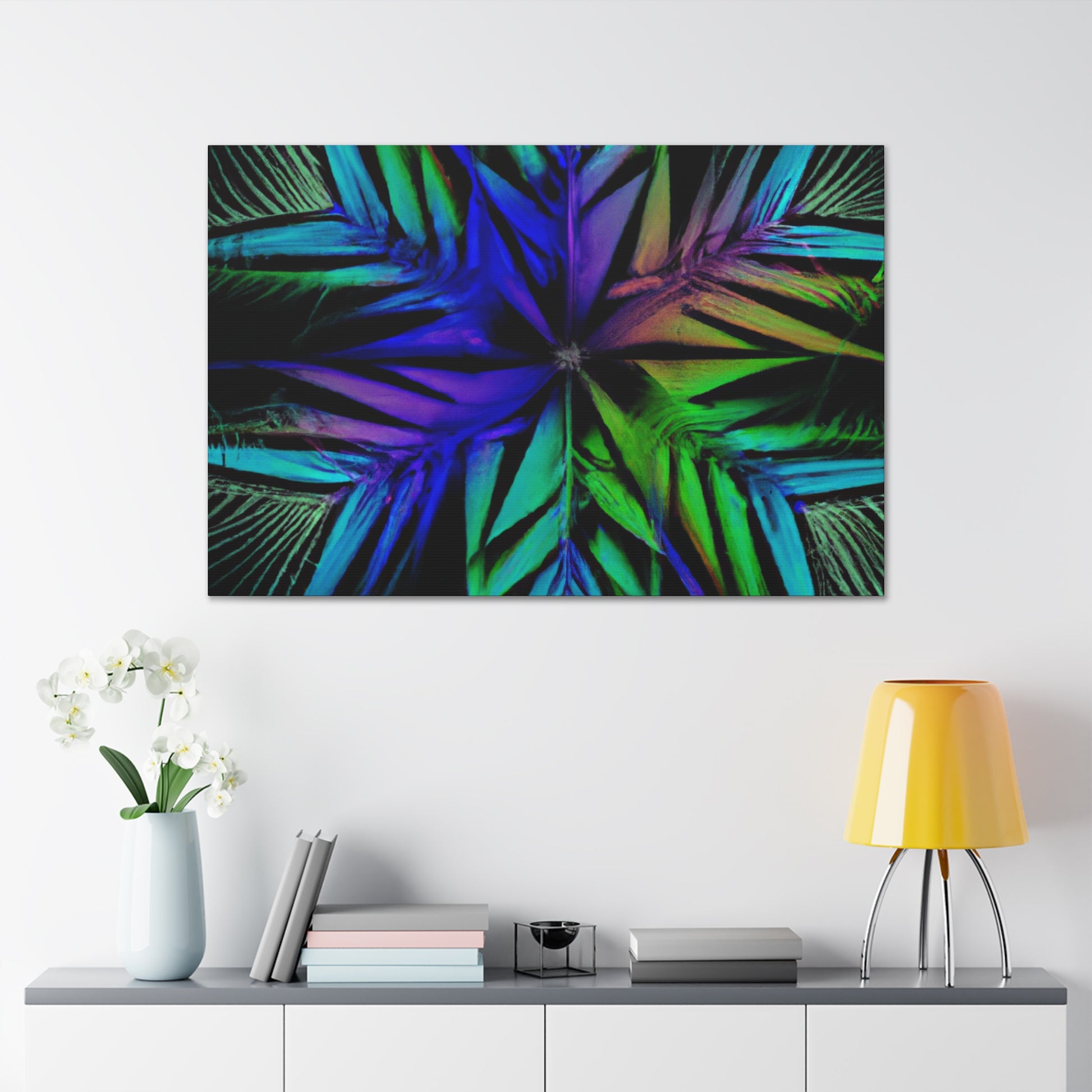 This stunning canvas is the perfect way to enrich any wall with its captivating blend of abstract, geometric, and kaleidoscope designs. The vivid colors create a 3D effect and the fractal design adds dimension to the spirited design. Make sure to hang this canvas in a place of prominence: it's sure to be the center of attention! #abstractart #geometricart #digitalart #colorfulart #canvasart #kaleidoscopeart #3Dlines #fractal #vibrantcolors #palmleaves #trippyart