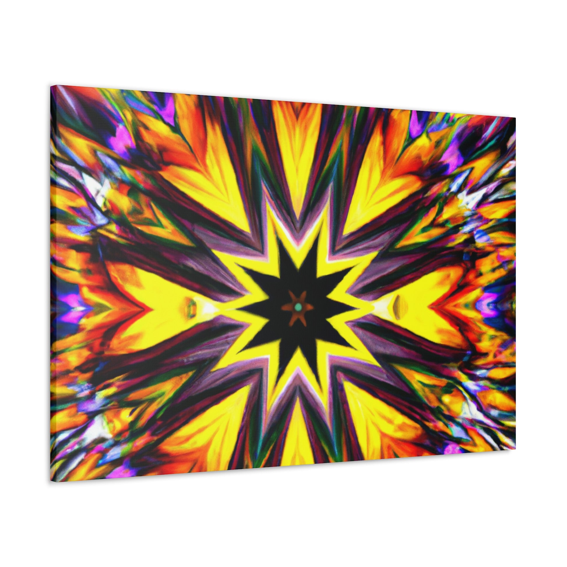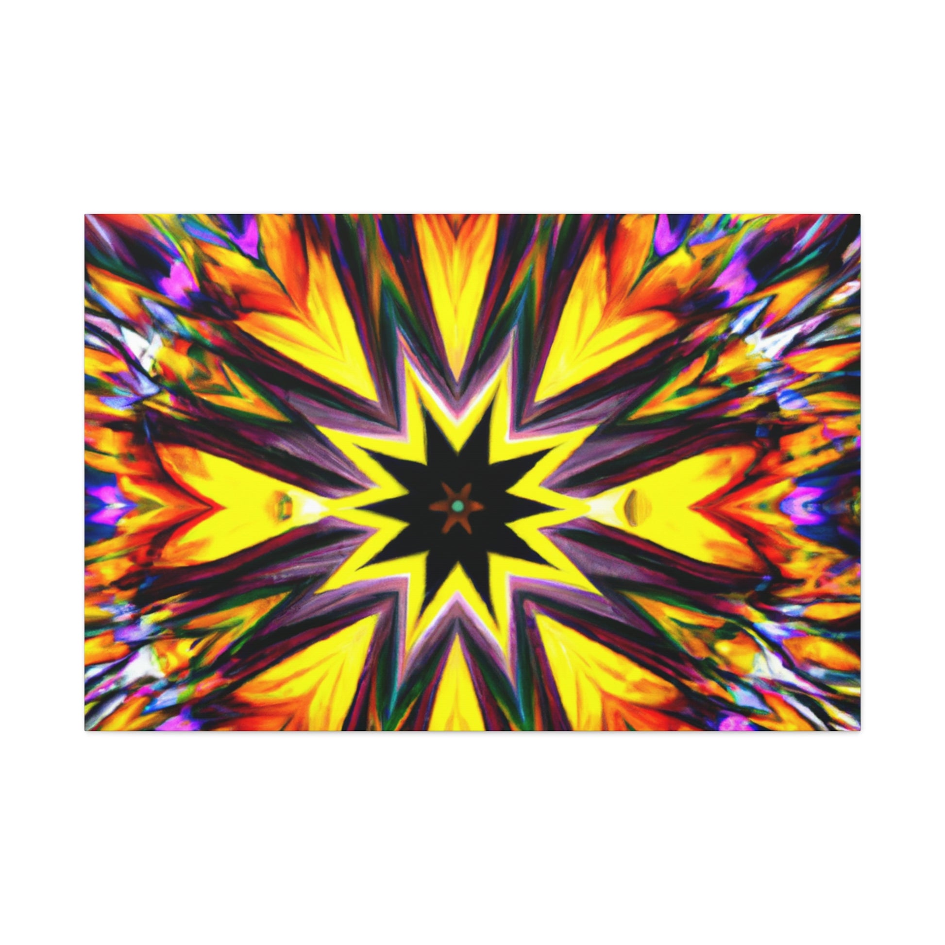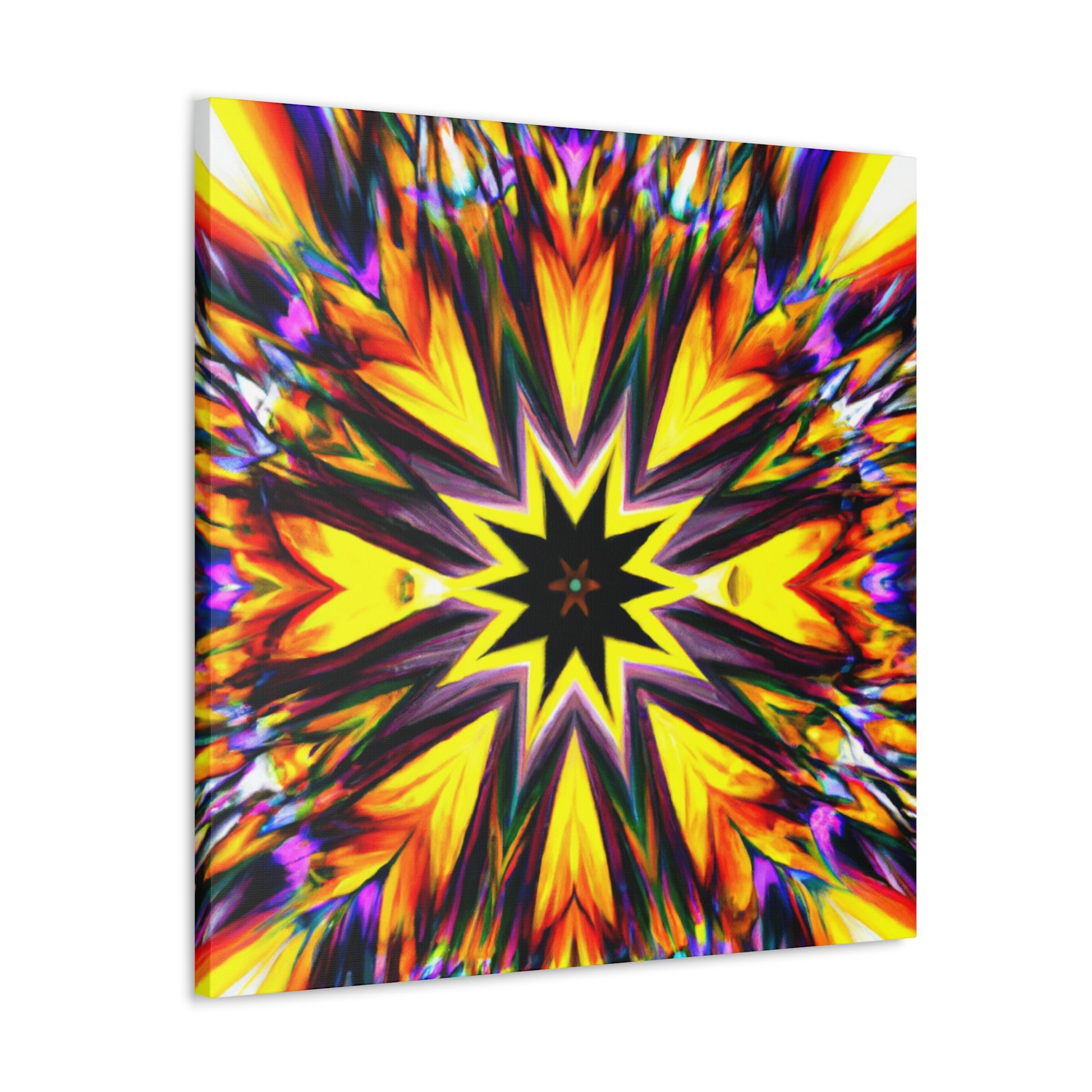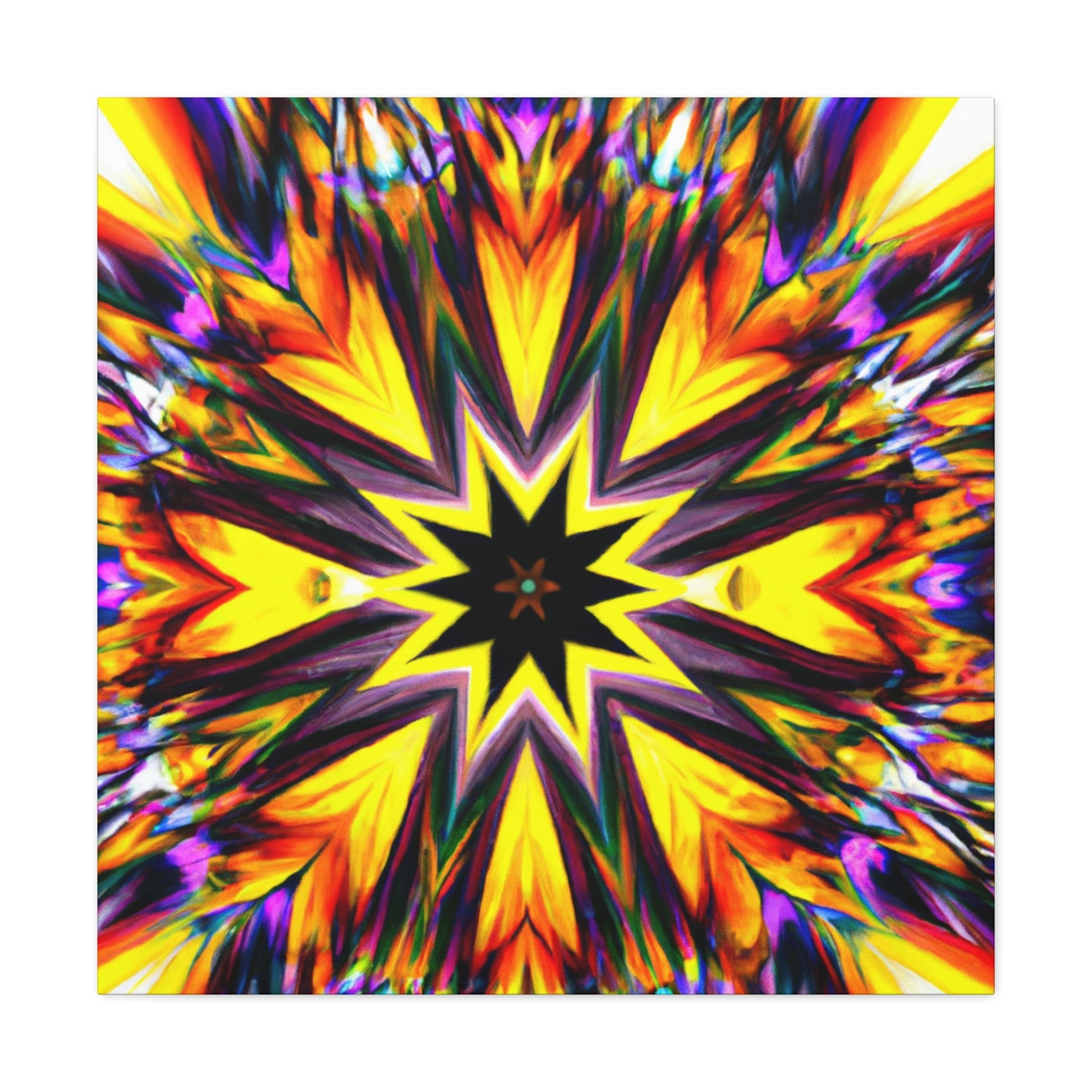 Spruce up your space with this eye-catching canvas featuring trippy stars, kaleidoscope, abstract, digital art, and vibrant colors! This HD, symmetrical art is sure to be the perfect centerpiece of any room. #abstract #digitalart #vibrantcolors #HD #trippystars #art #kaleidoscope #decor #centerpiece #symmetrical #abstractart