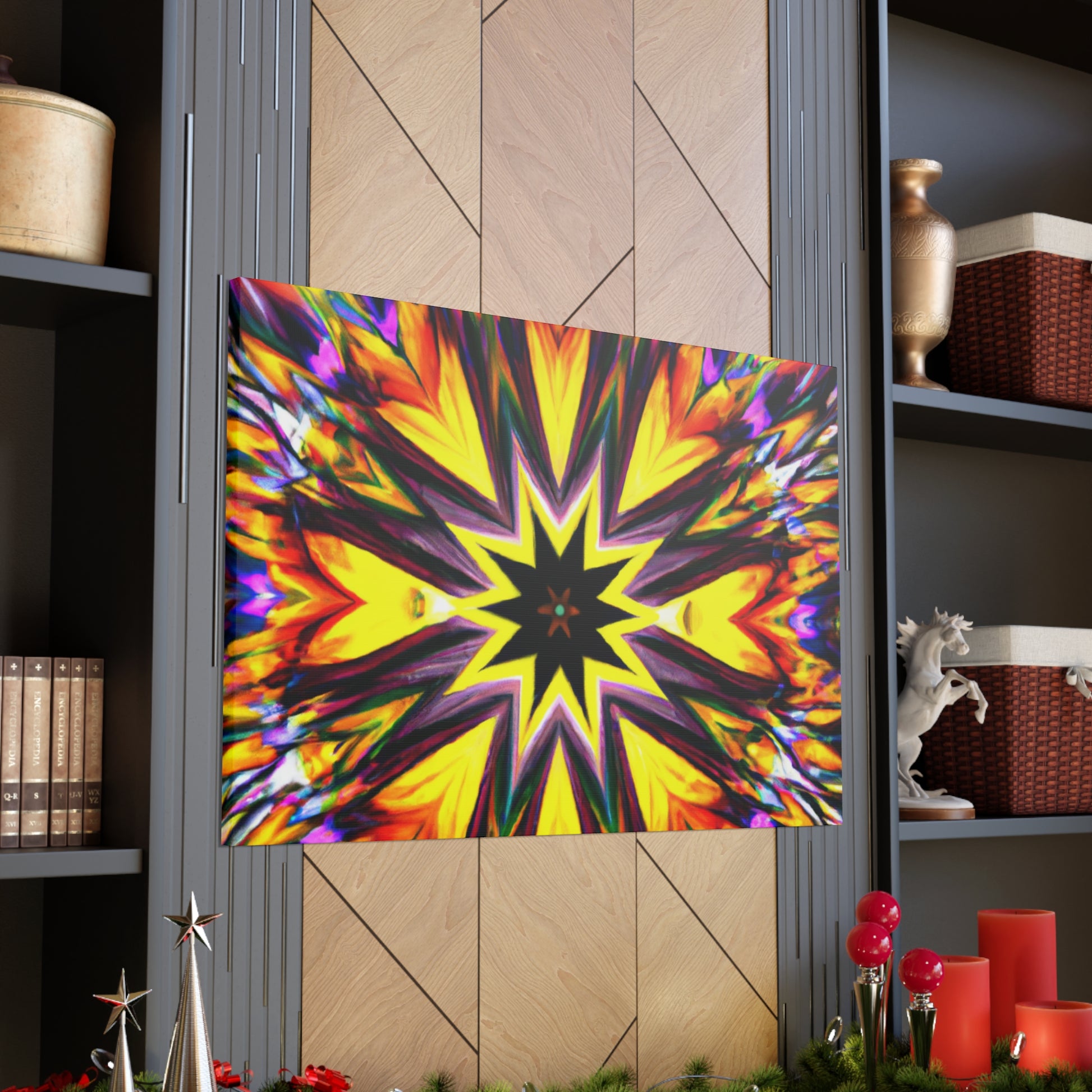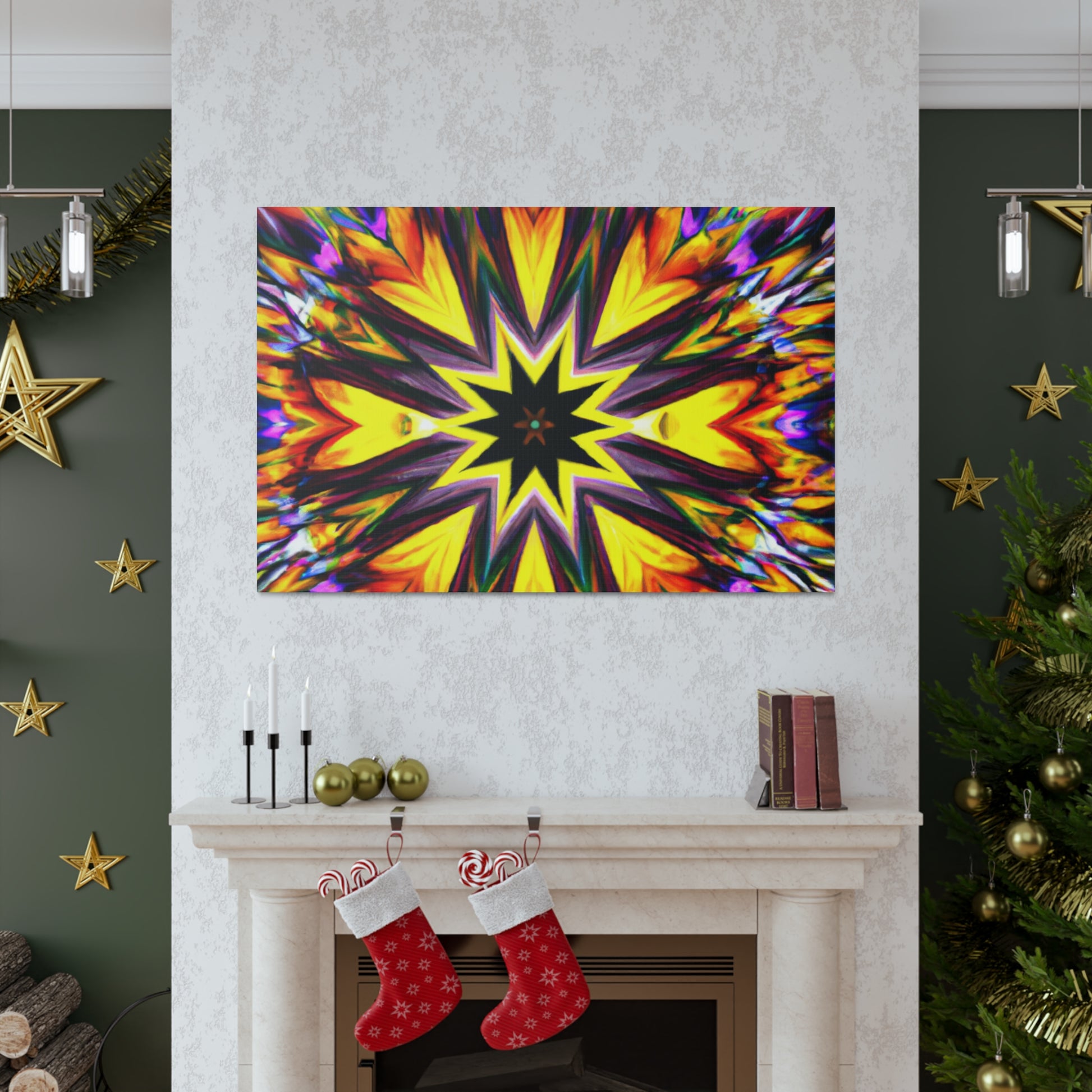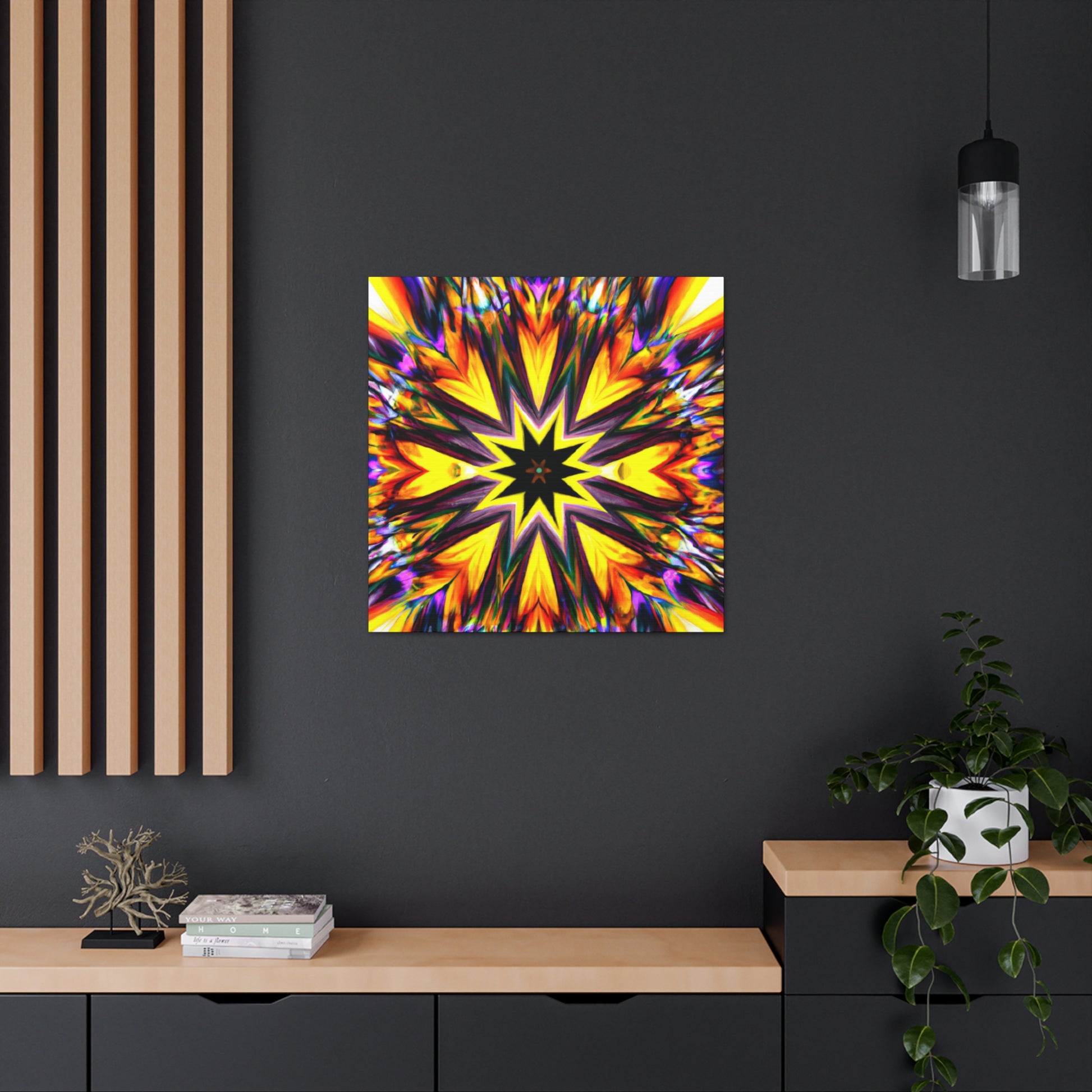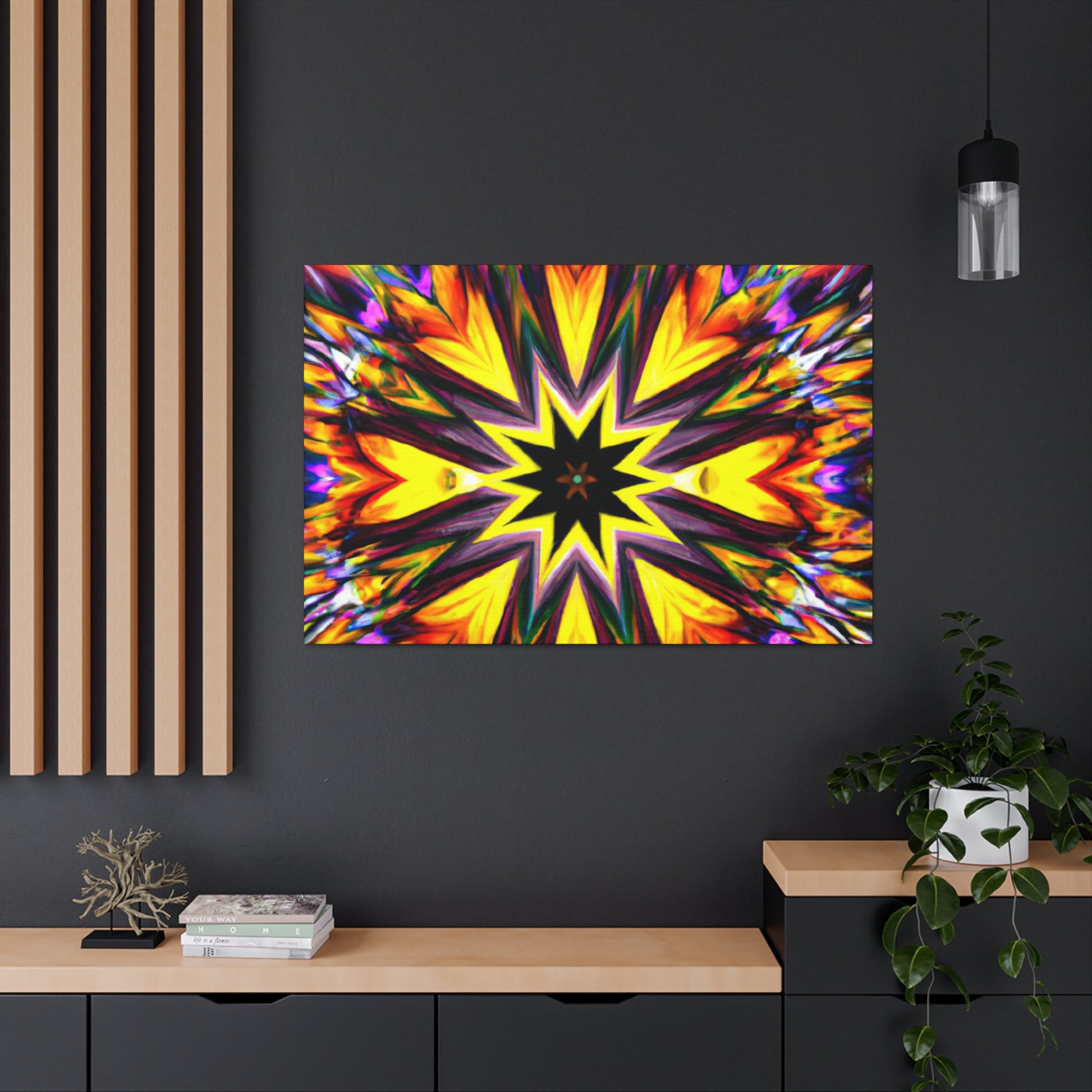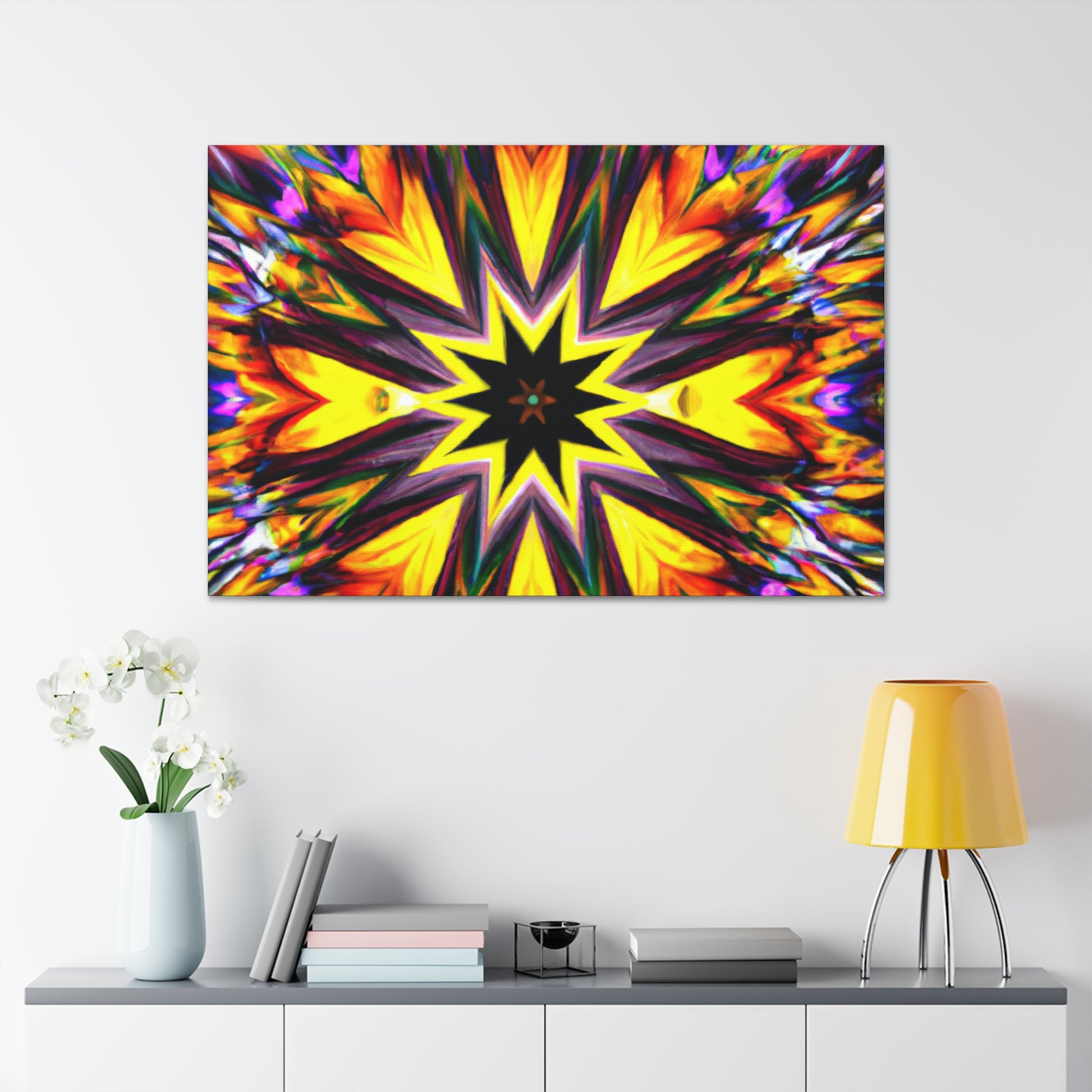 Spruce up your space with this eye-catching canvas featuring trippy stars, kaleidoscope, abstract, digital art, and vibrant colors! This HD, symmetrical art is sure to be the perfect centerpiece of any room. #abstract #digitalart #vibrantcolors #HD #trippystars #art #kaleidoscope #decor #centerpiece #symmetrical #abstractart