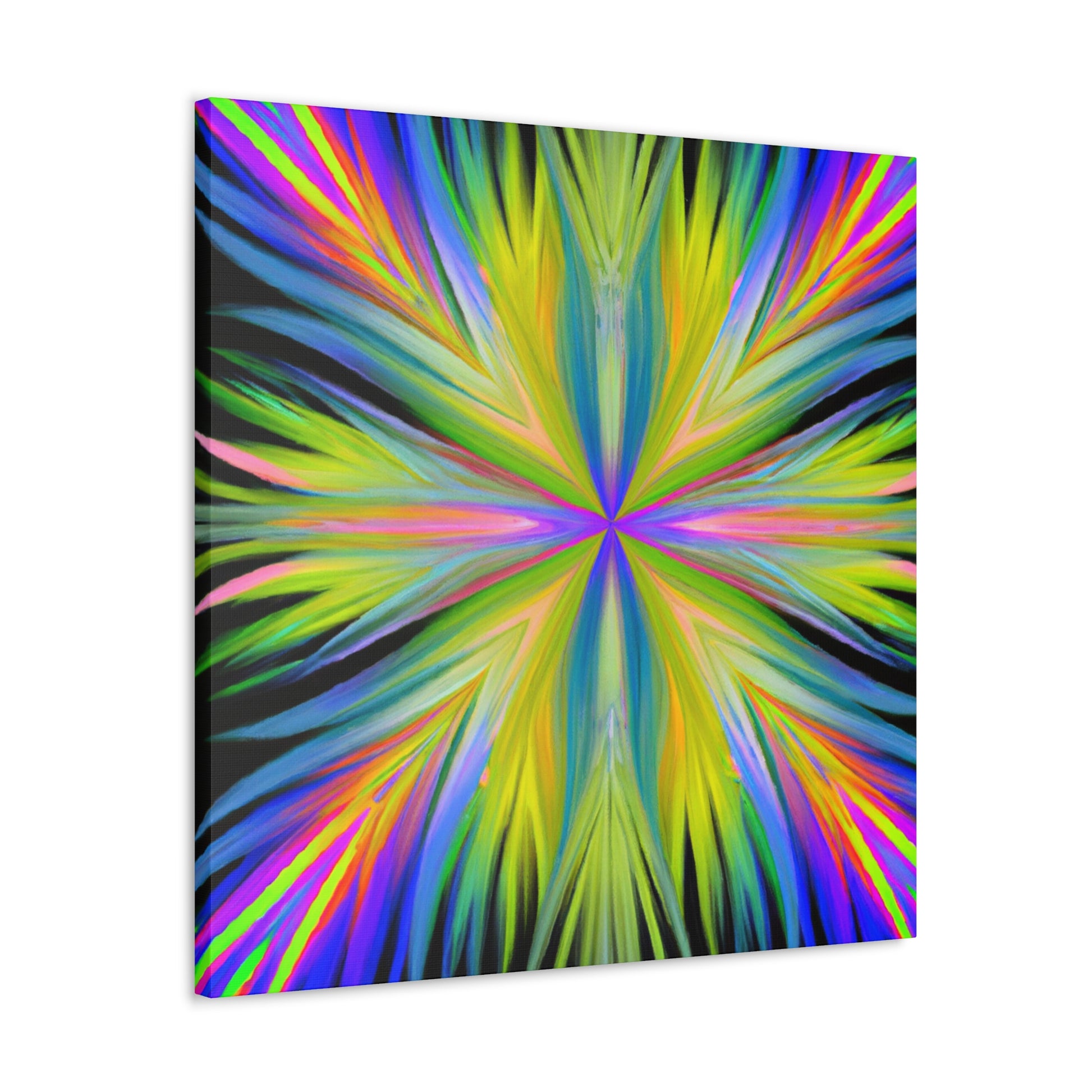 This vibrant digital art on a canvas brings the beauty of kaleidoscopic geometry and fractal line work to life. Trippy lines and abstract shapes burst with color and texture, and the vibrant 3D depth of the piece adds an extra element of beauty that will captivate you. A unique and eye-catching wall-art for any space, the geometric palm leaves of this canvas are sure to bring a sense of joy and relaxation to your home. #trippygeometric #palmleaves #kaleidoscope #abstractart #digitalart #vibrantcolors #3Dlines #fractal #wallart #homedecor #abstractdesign #teal #greens #blues #orange #yellow #vibrant #adornyourwalls #roomdecor #roominspo #designinspo #homedecorinspo #roomtransformation #transformyourroom #decorateyourroom #housedecoration