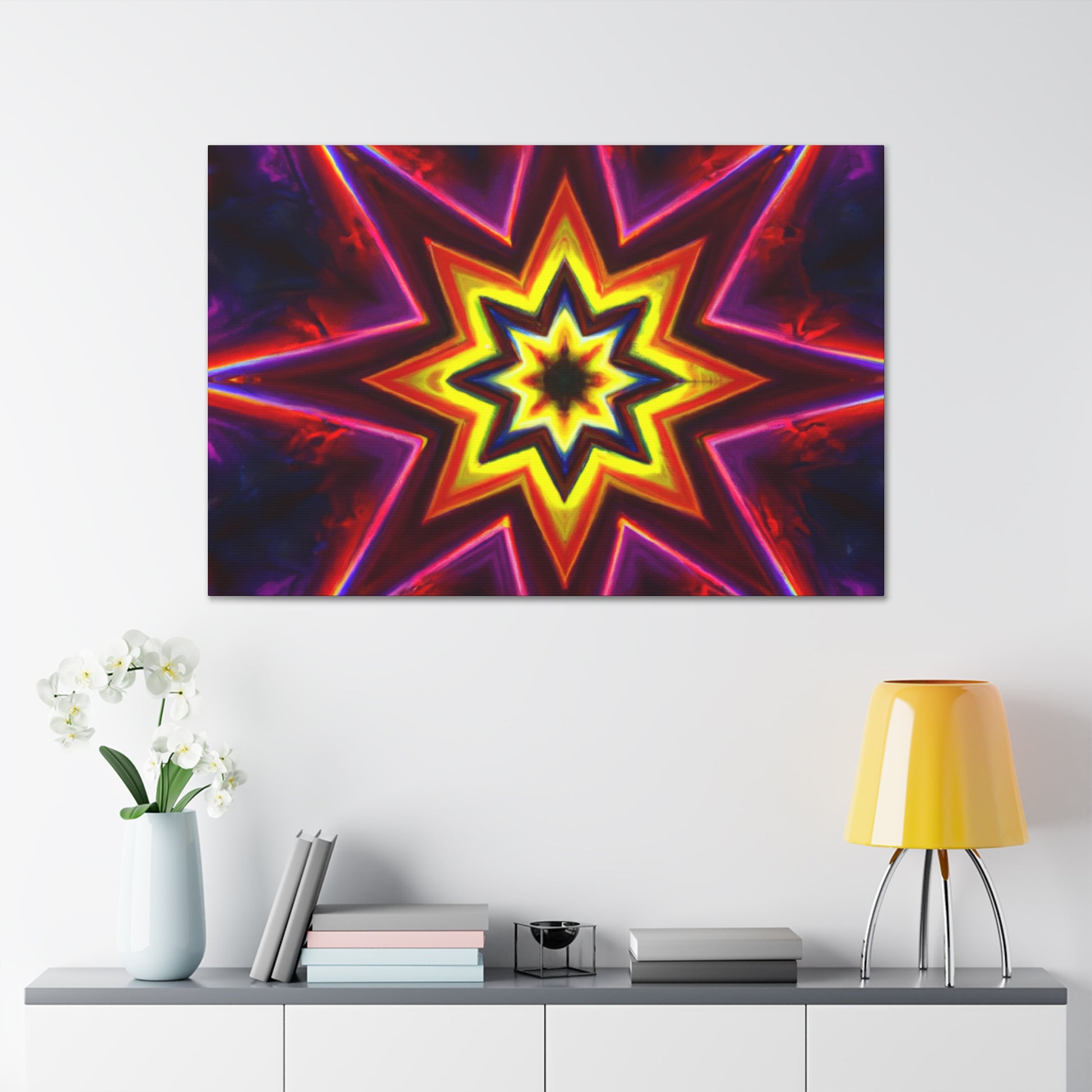 This vibrant and eye catching Trippy Stars canvas is truly one of a kind! It's abstract digital art combined of kaleidoscope and symmetrical shapes, featuring bold and bright colors. With its HD resolution, this canvas will be the centrepiece of any room. #TrippyStars #Kaleidoscope #WallArt #AbstractDesign #DigitalArt #VibrantColors #HDResolution #Symmetrical #ModernDecor #WallDecor #CanvasPrint