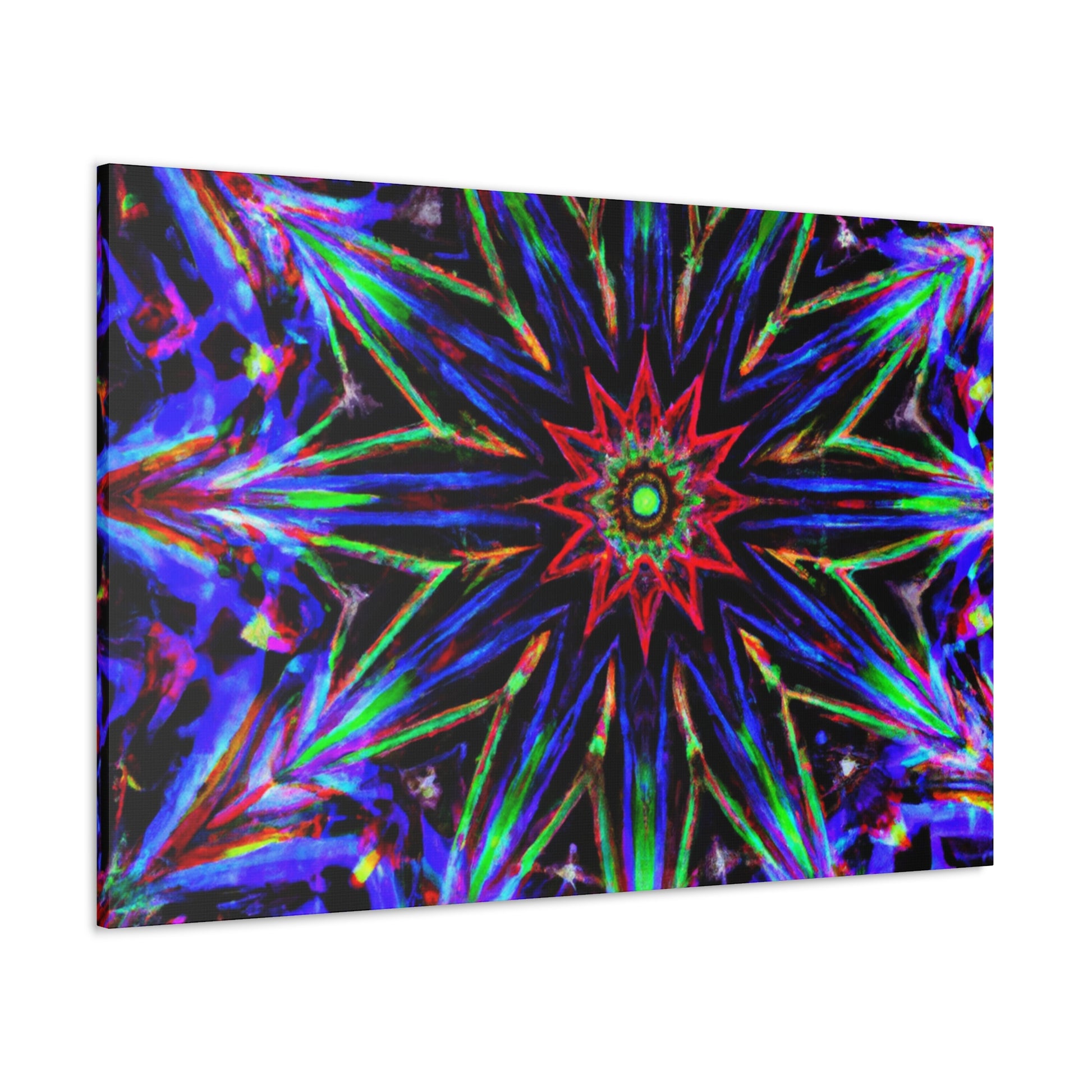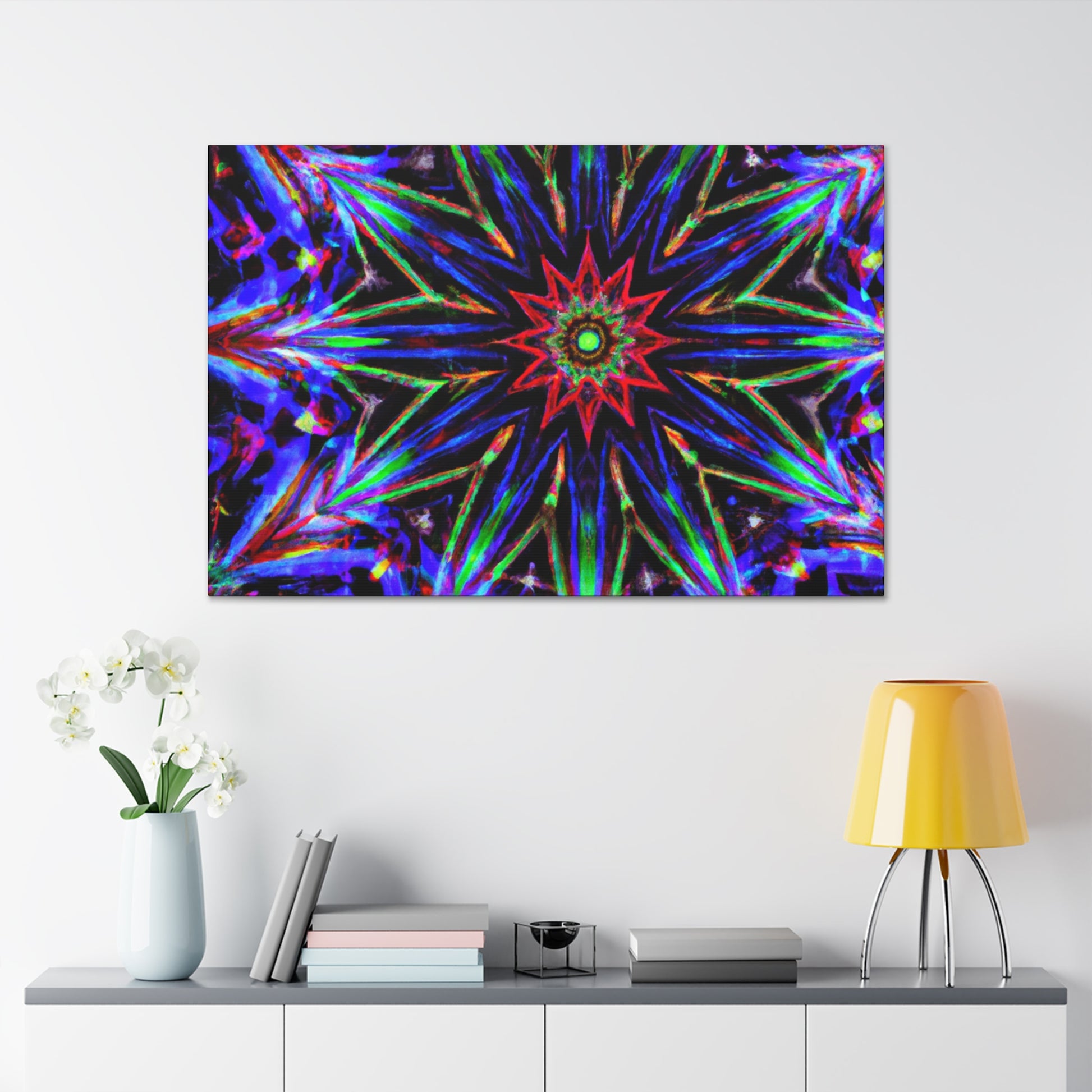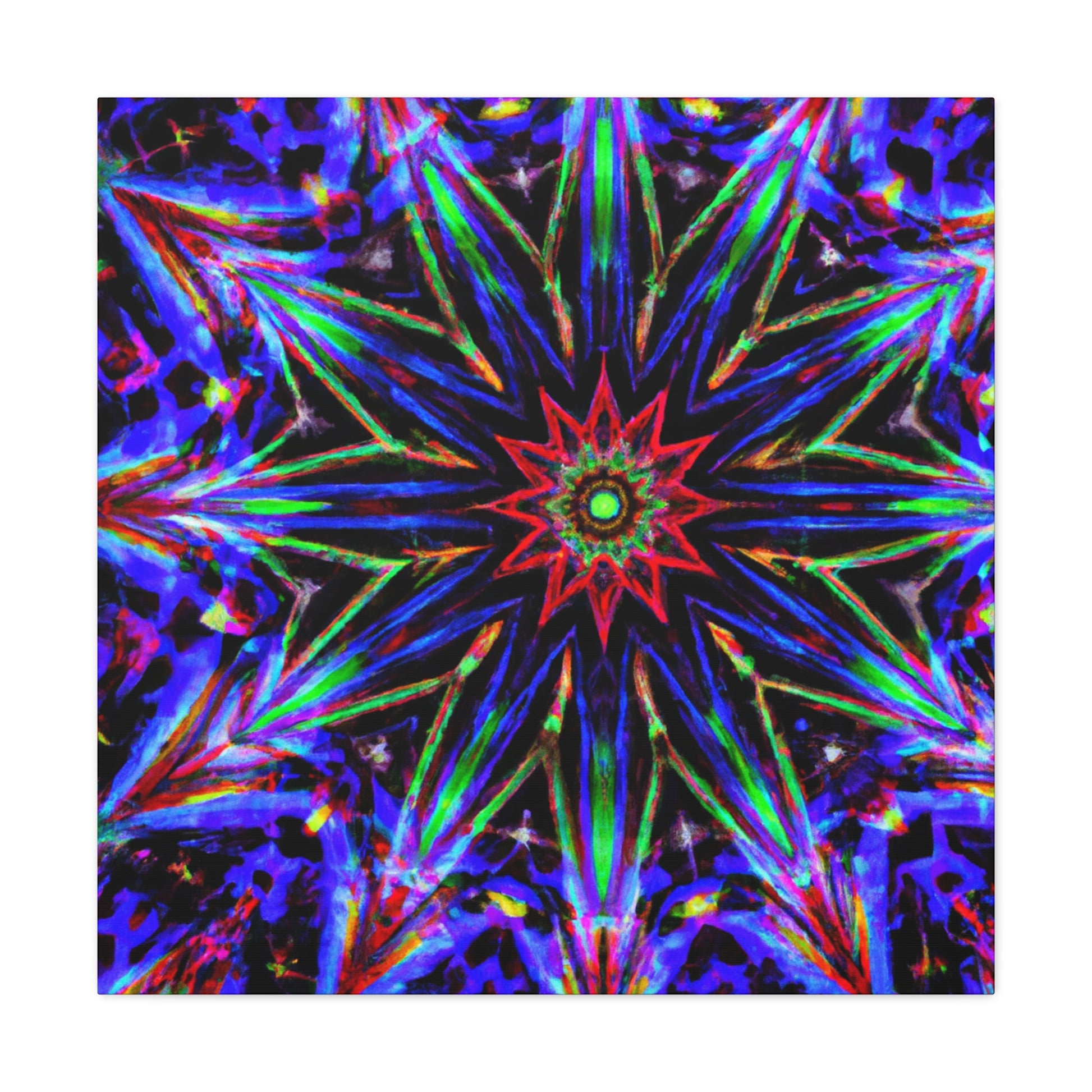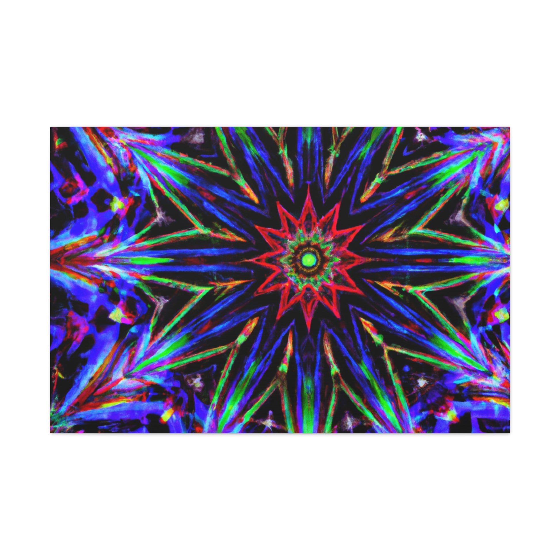 This high definition canvas of colorful digital art showcases a trippy stars kaleidoscope, symmetrical and abstract shapes. With its vibrant colors and bold patterns, this artwork is sure to be a bold and beautiful statement piece to any room. #trippystars #kaleidoscope #abstract #digitalart #vibrantcolors #HD #canvas #colorful #bold #statementpiece #beautiful