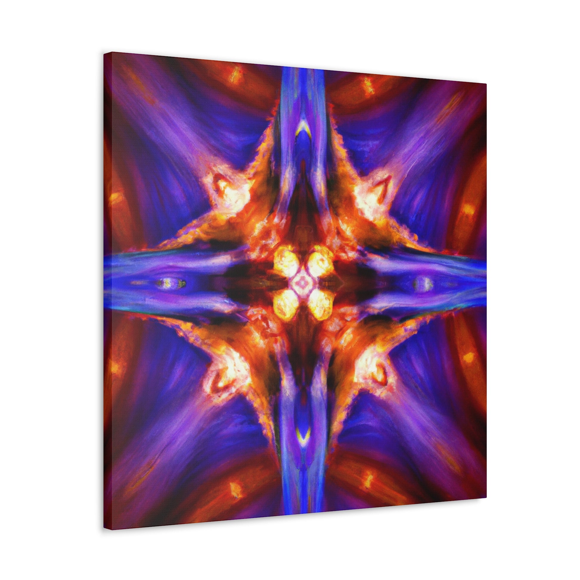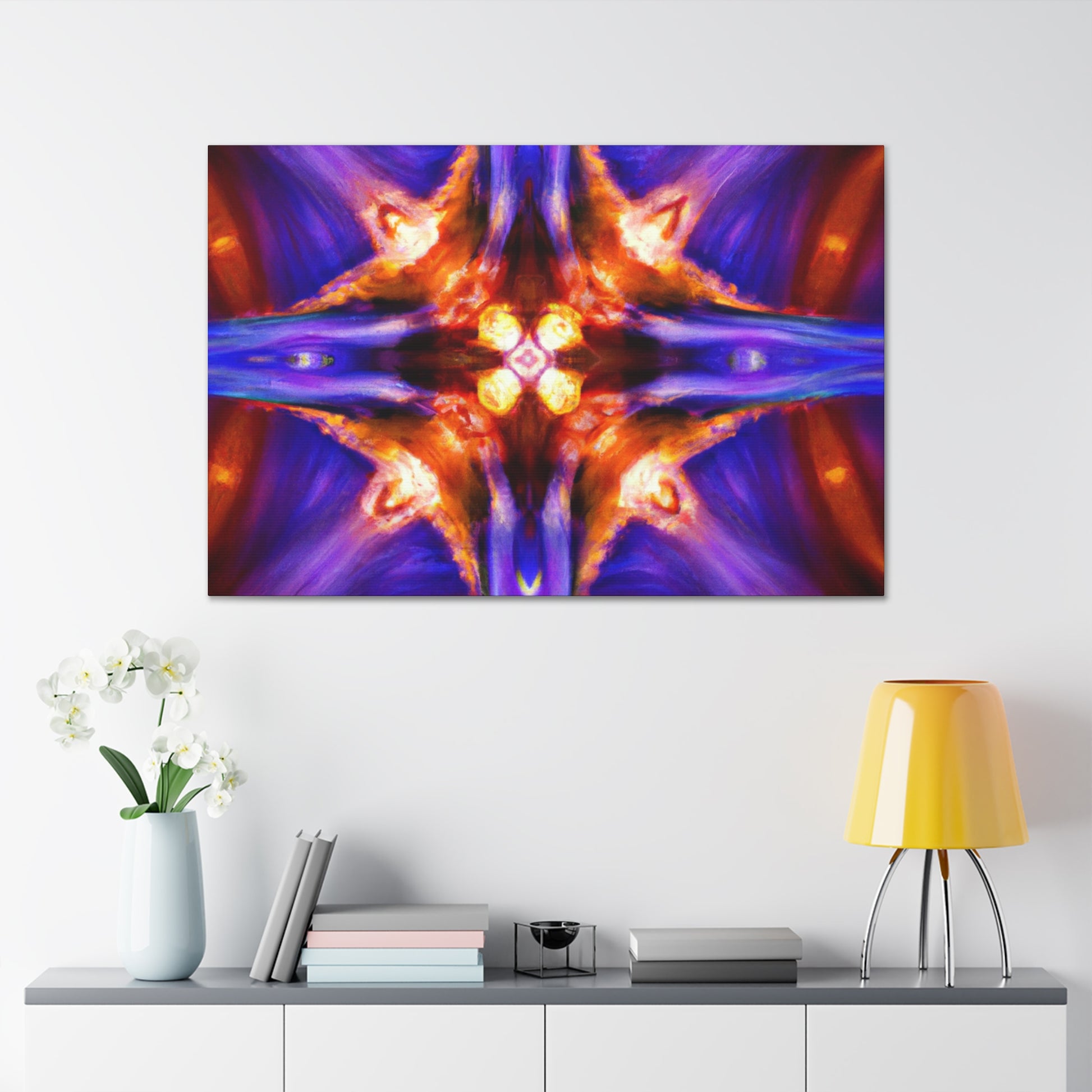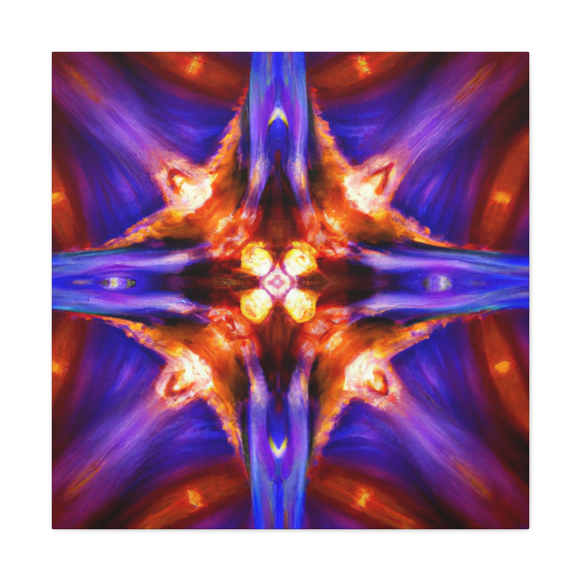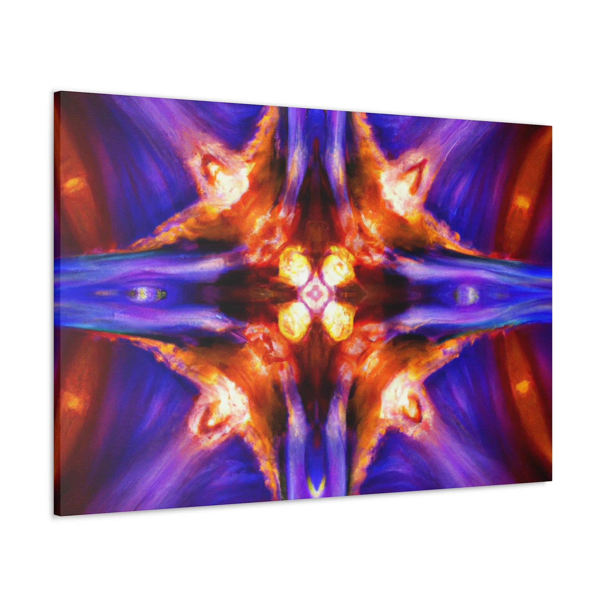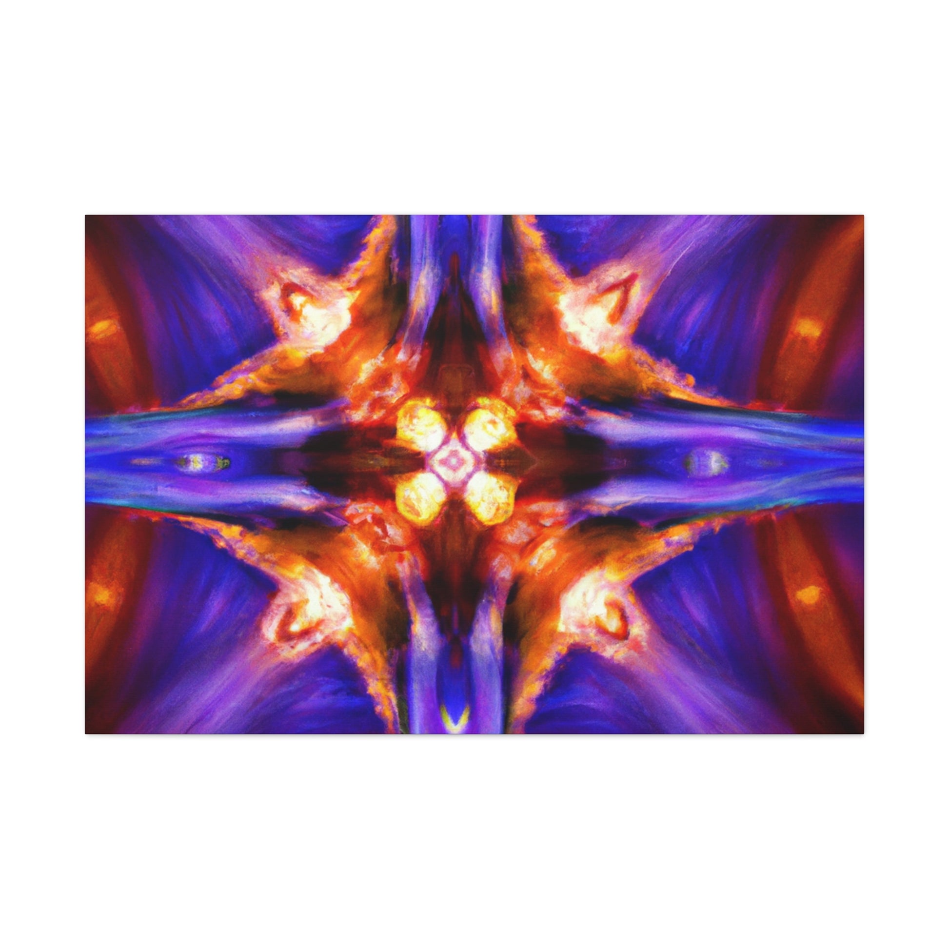 This trippy star canvas will take you on an amazing journey with its abstract, digital art design and vibrant colors. Printed in HD and displayed on canvas, the kaleidoscopic symmetry and symmetry will create a magical atmosphere in any room. Bring a unique, eye-catching piece to your home. #trippystars #kaleidoscope #abstractart #digitalart #vibrantcolors #HD #symmetrical #canvasart #magicalatmosphere #eye-catching #uniqueart