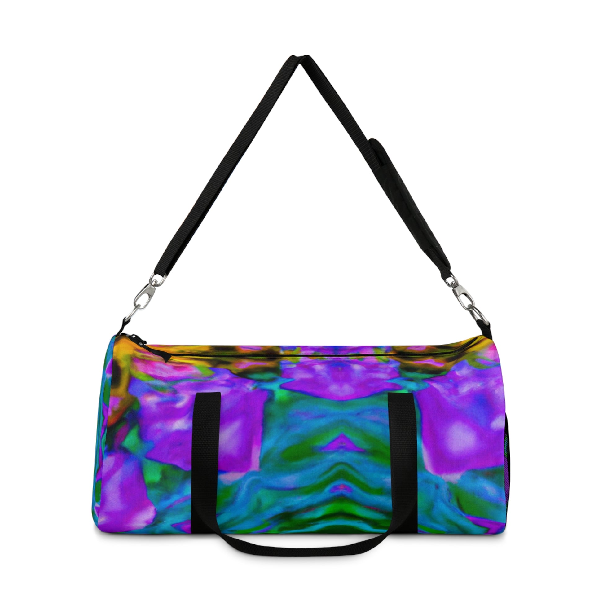 This stylish, eye-catching dufflebag is sure to turn heads. Featuring trippy pineapple, kaleidoscope, abstract, digital art and neon colors, this HD design is sure to make a statement. Perfect for any age, style or occasion, you'll show up in style with this unique bag. #dufflebag #fashion #style #hd #abstractart #trippy #pineapple #kaleidoscope #digital #neoncolors #graphicdesign #art #hdart #design #uniquedesign #bag #travelbag #trippybag #pineapplebag #kaleidoscopebag #statementbag #unique #style #and #neonbags