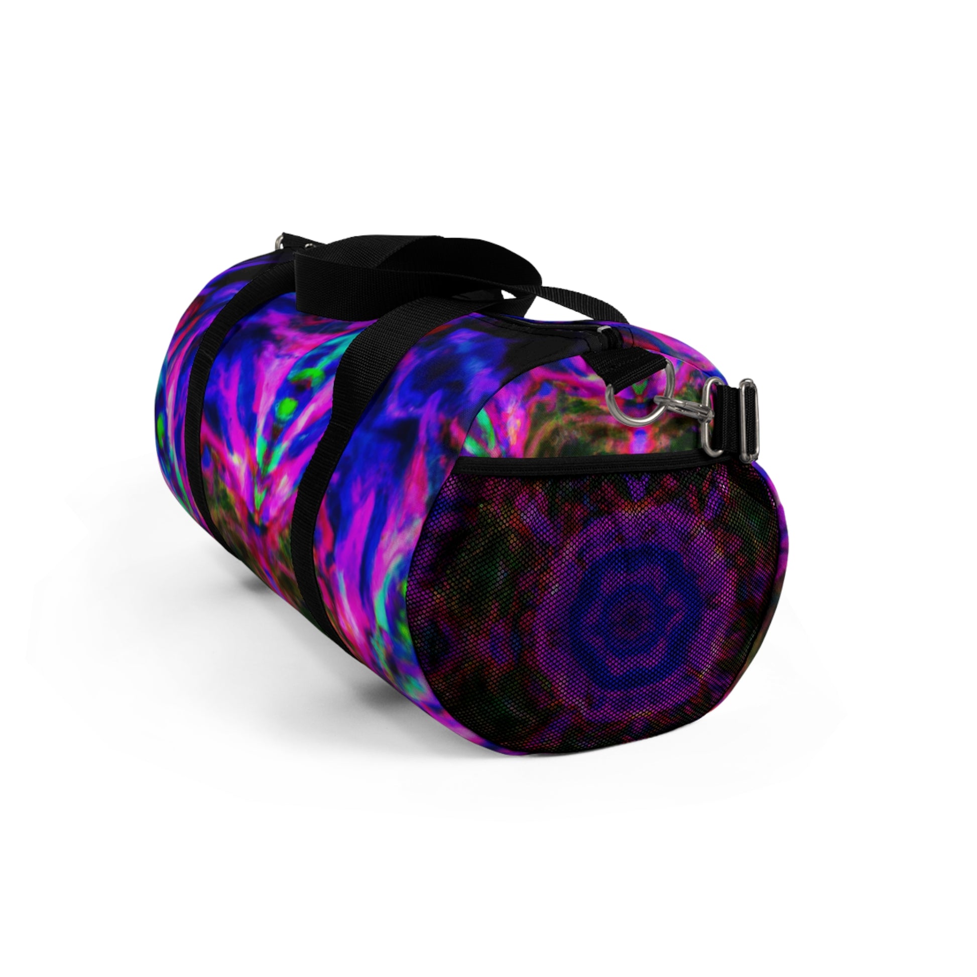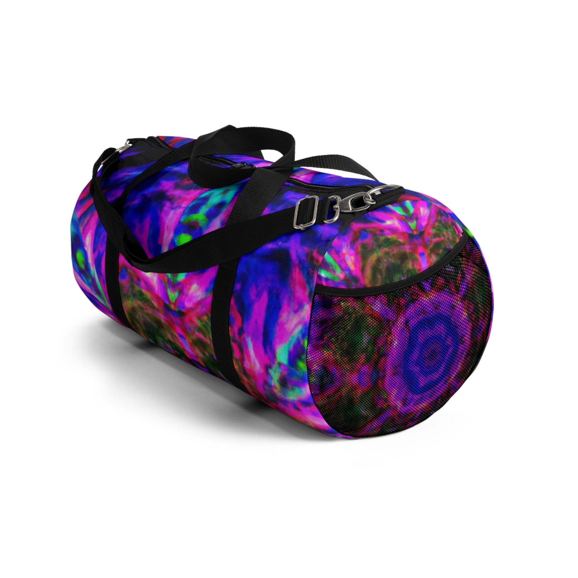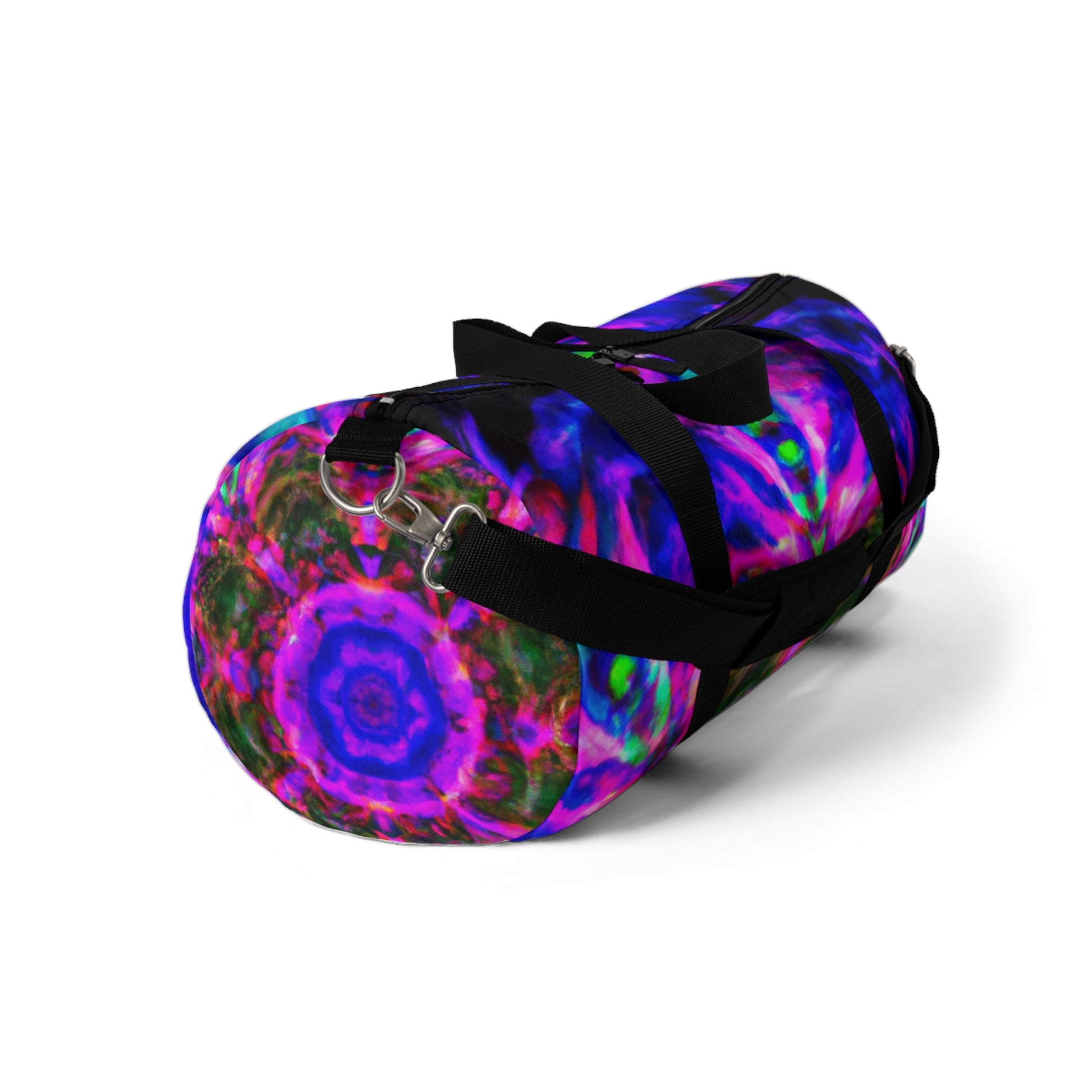 This vibrant, retro-styled dufflebag uses digital art and neon colors to create a wild, trippy kaleidoscope! Intricate details and neon hues make for a psychedelic pineapple design that will stand out wherever you go! Experience this HD design up close and personal with this luxurious piece. #trippy #pineapple #kaleidoscope #abstract #digitalart #neoncolors #HD #designs #bright #bold #fashion #style #bag #travel #dufflebag #pink #purple #mint #luxury #accessory #unique #vibrant #retro #details #graphic #culture #styleinspo #trendy