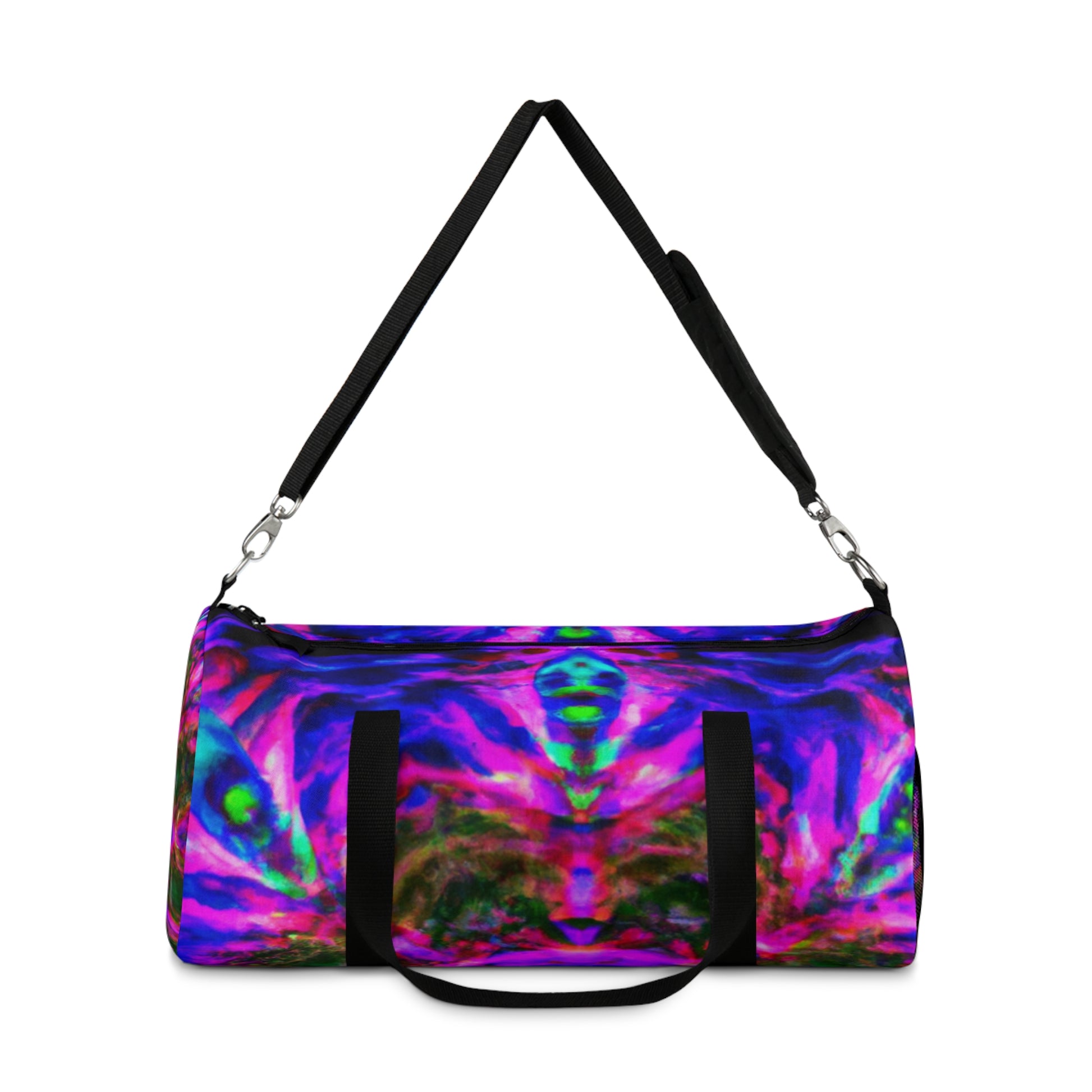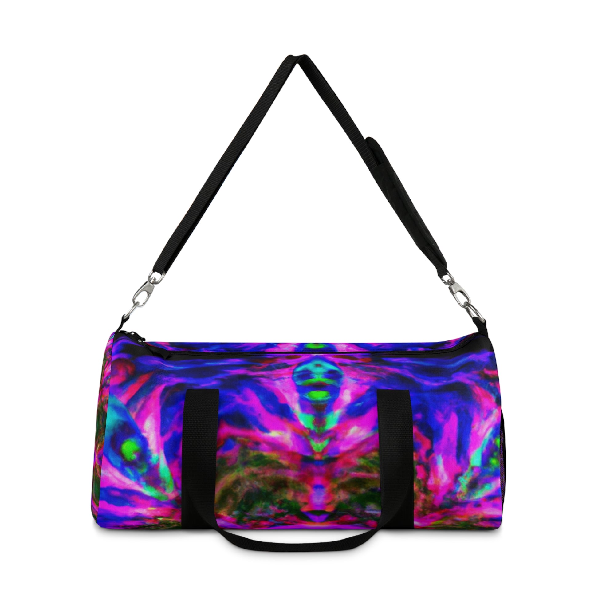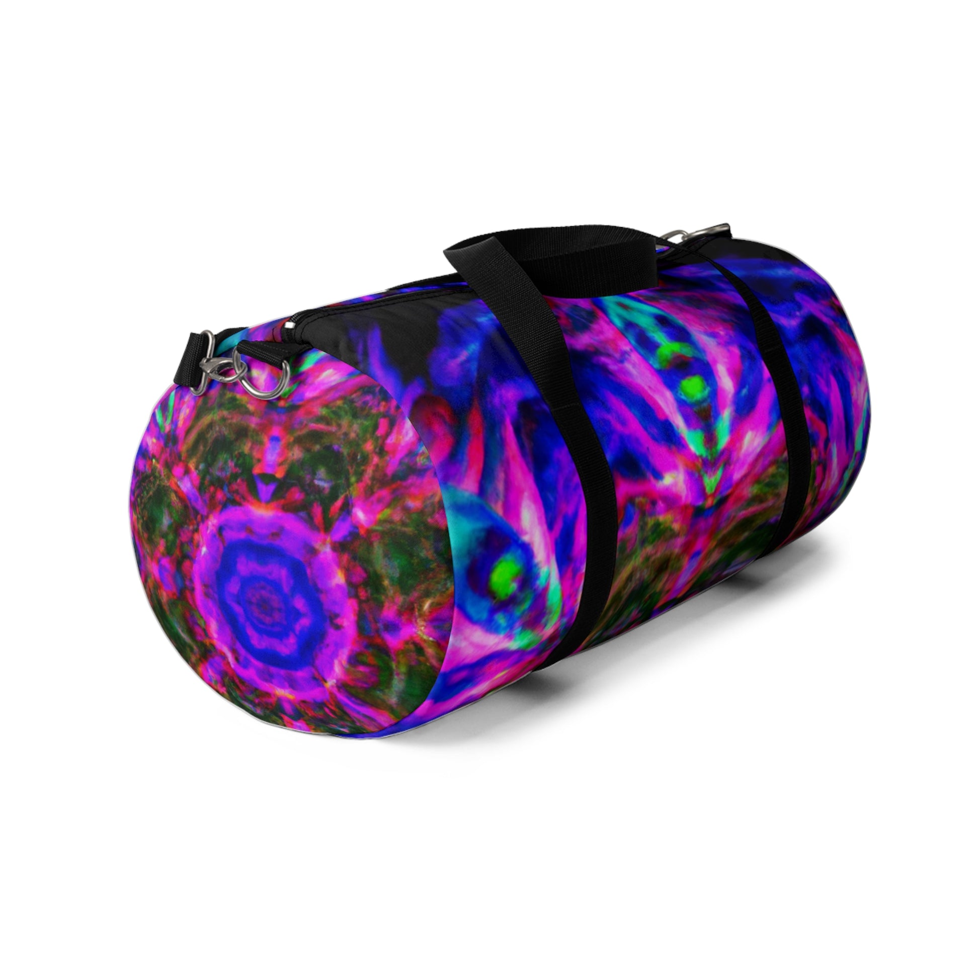 This vibrant, retro-styled dufflebag uses digital art and neon colors to create a wild, trippy kaleidoscope! Intricate details and neon hues make for a psychedelic pineapple design that will stand out wherever you go! Experience this HD design up close and personal with this luxurious piece. #trippy #pineapple #kaleidoscope #abstract #digitalart #neoncolors #HD #designs #bright #bold #fashion #style #bag #travel #dufflebag #pink #purple #mint #luxury #accessory #unique #vibrant #retro #details #graphic #culture #styleinspo #trendy