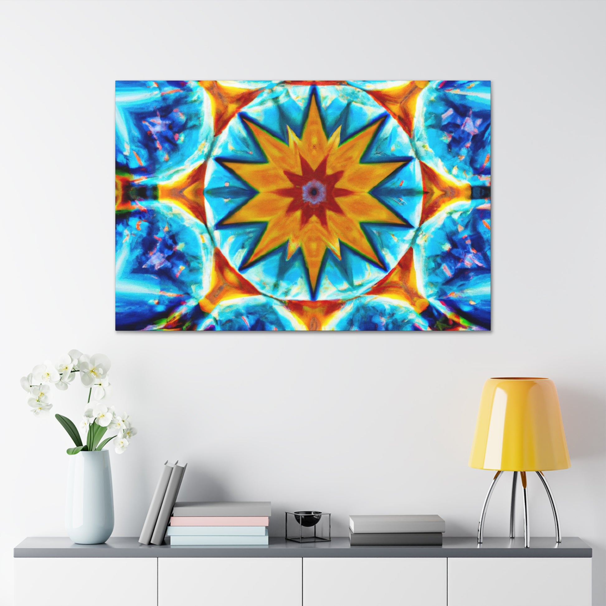 This canvas of vibrant and abstract digital art is sure to bring life to any space! Trippy stars, kaleidoscopic shapes, and symmetrical designs come together in this stunning, one of a kind HD print. Brighten up your walls with this unique piece and inject a touch of color to any room! #abstractart #digitalart #vibrantcolors #hd #kaleidoscope #trippystars #symmetrical #canvas #wallart #homedecor #interiordesign