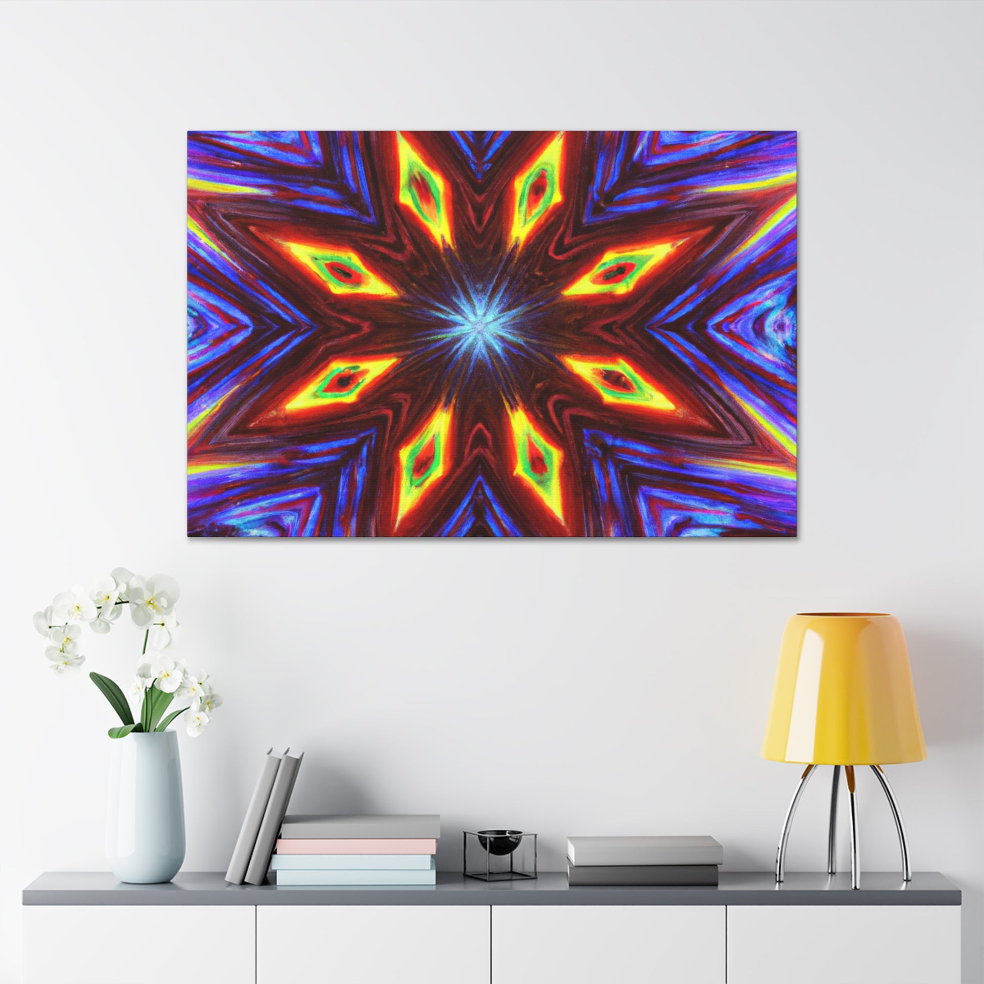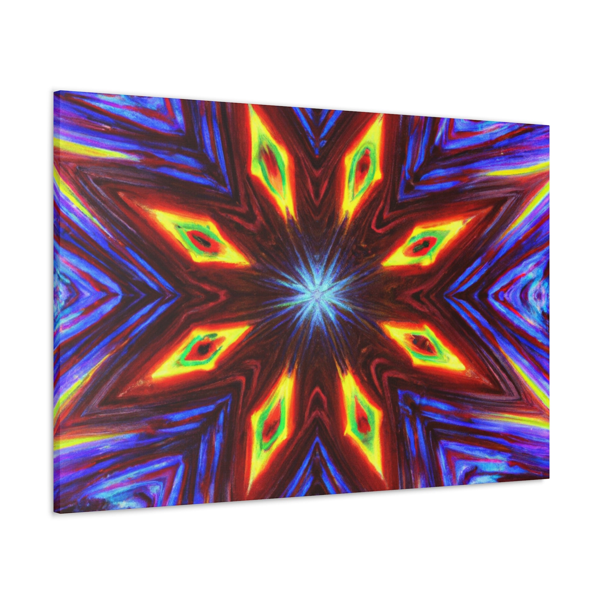 This canvas is sure to make an eye-catching addition to any home or office! Featuring trippy stars, kaleidoscope, abstract, digital art, and vibrant colors in HD with a symmetrical design, this piece is sure to draw the eye and create a conversation piece. #canvas #art #trippy #stars #kaleidoscope #abstract #digitalart #vibrantcolors #HD #symmetrical #statementpiece