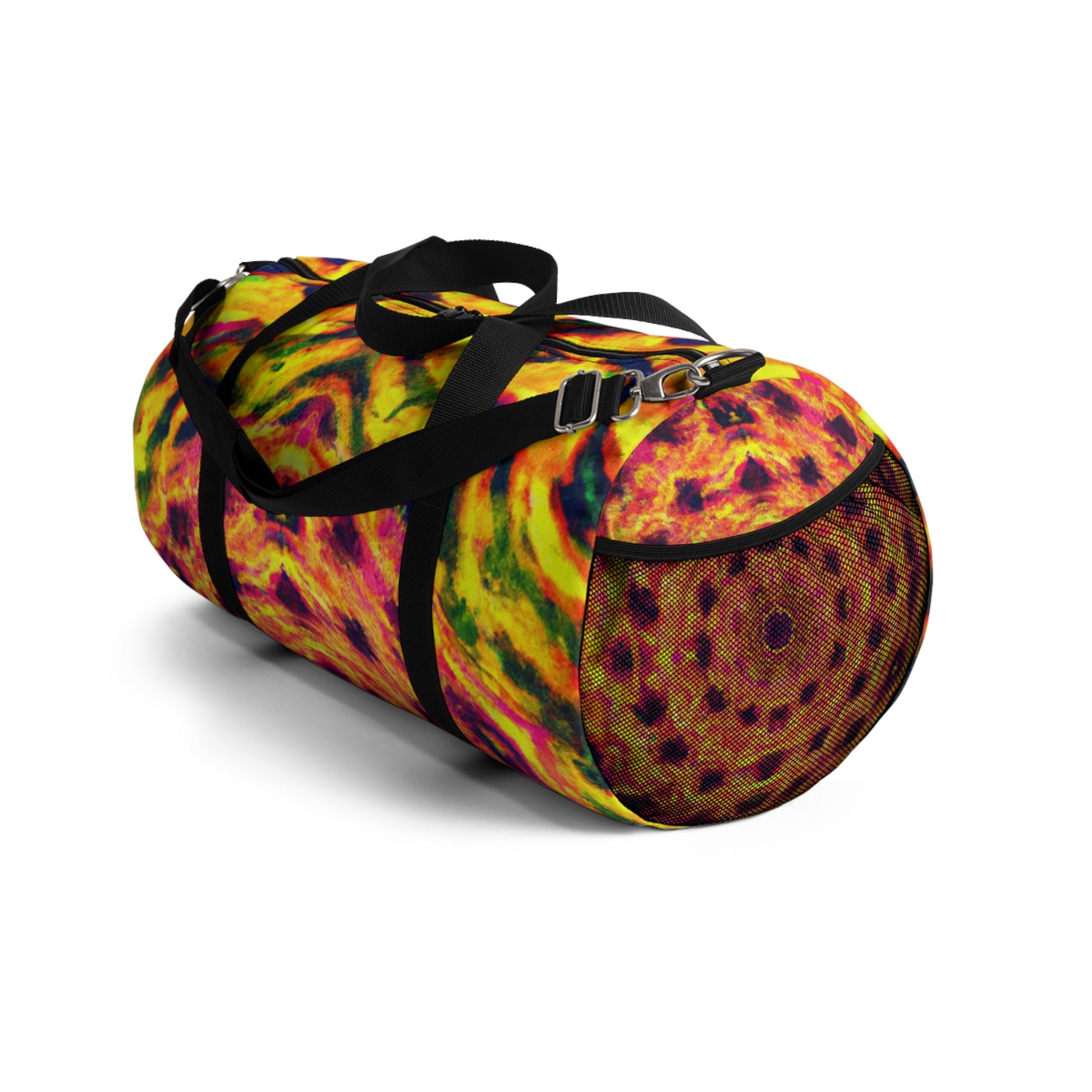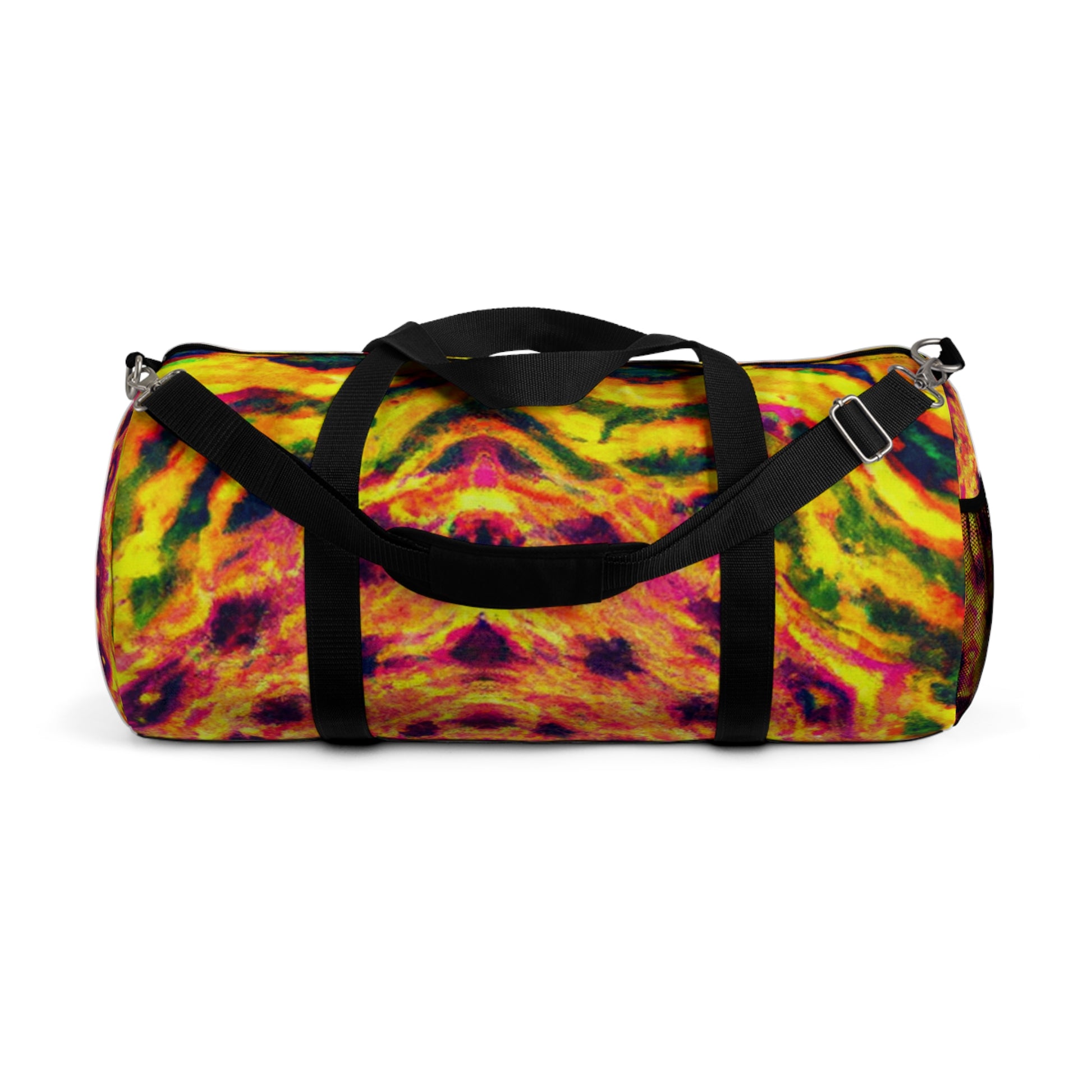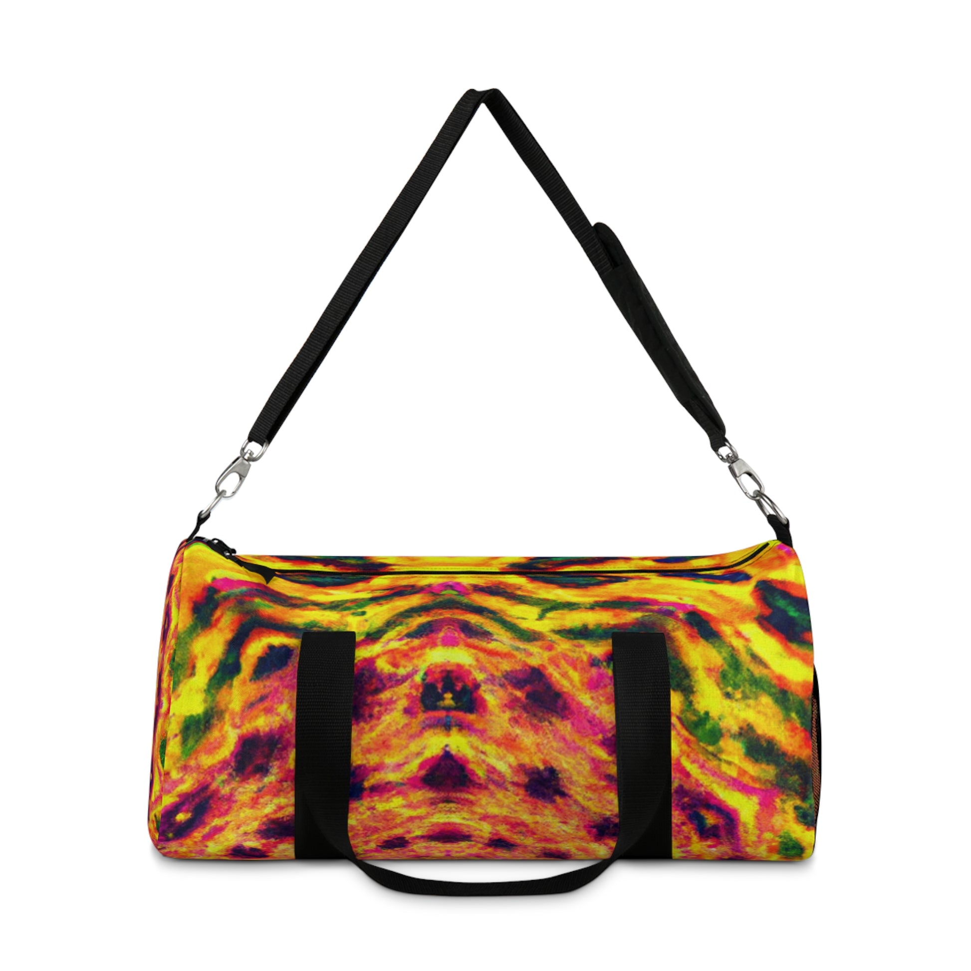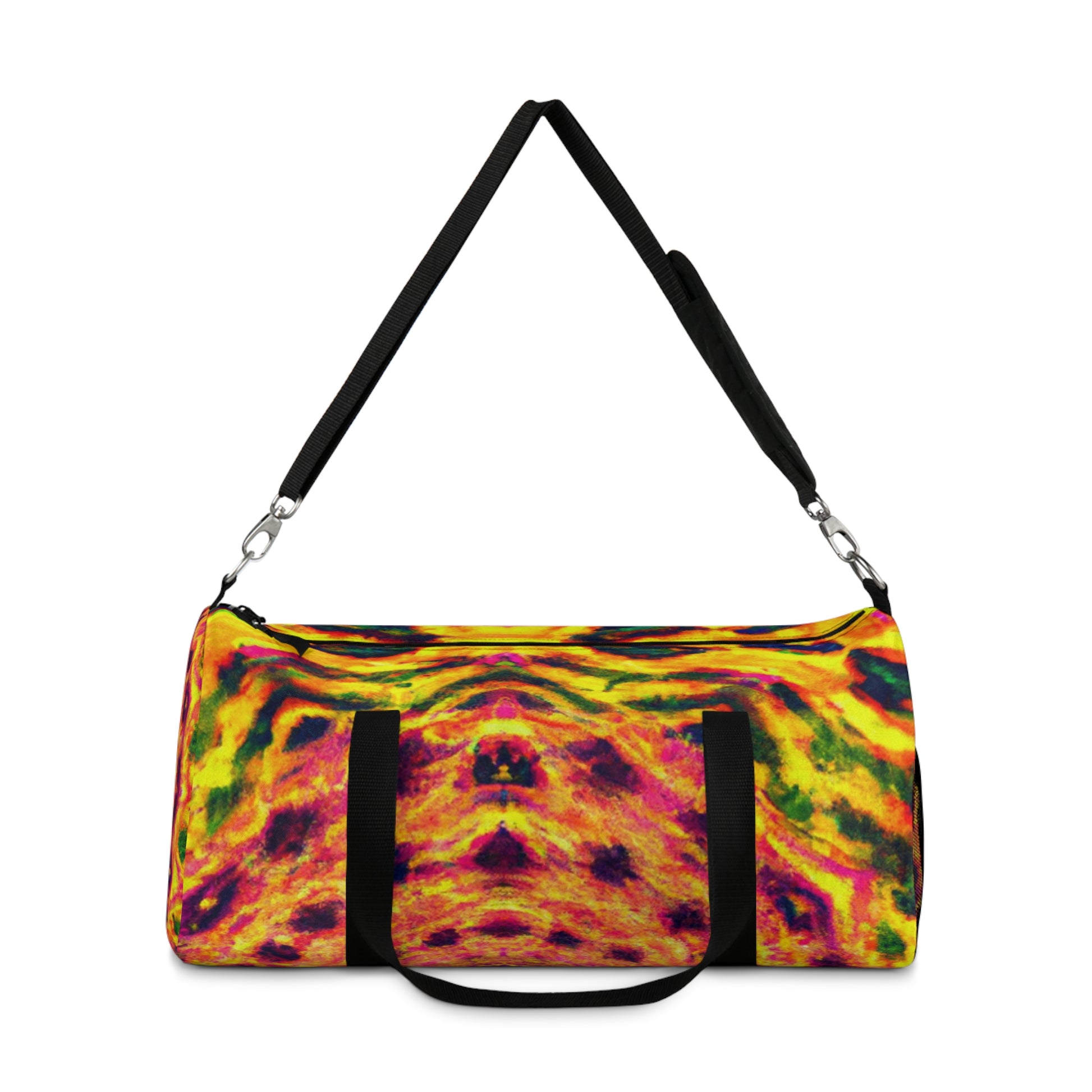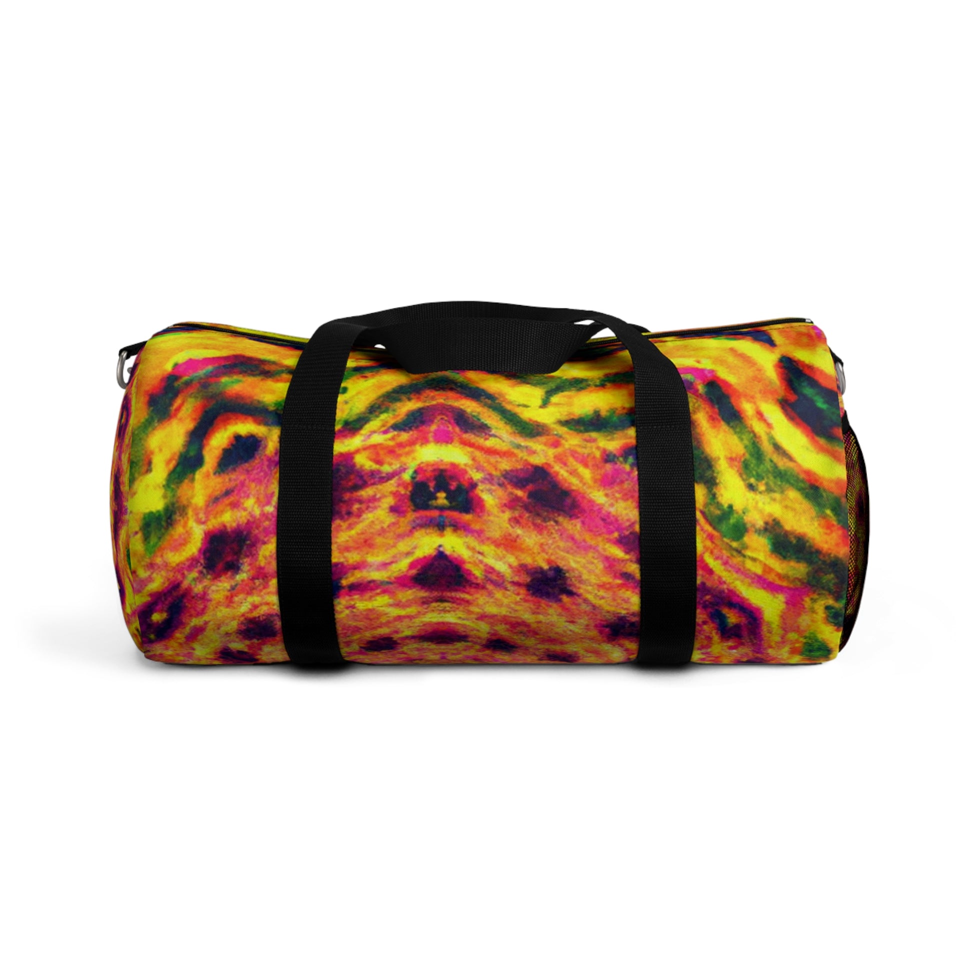 This dufflebag is an explosive collage of trippy pineapple, kaleidoscope, abstract, and digital art in vivid neon colors. It features HD, eye-popping designs that are sure to stand out from the rest. #trippyart #pineapple #kaleidoscope #neonstyle #abstract #digitalart #HD #vibrantcolors #dufflebag #highquality #unique #bold #standout #travelbag #exoticdesign #statementbag #statementpiece #musthave #travelstyle #fashionista #neonpalette #tropicalstyle #neonlife #90sstyle #funtek #sickstyle #bagsaddict #trippypineapple #kaleidoscopepatterns