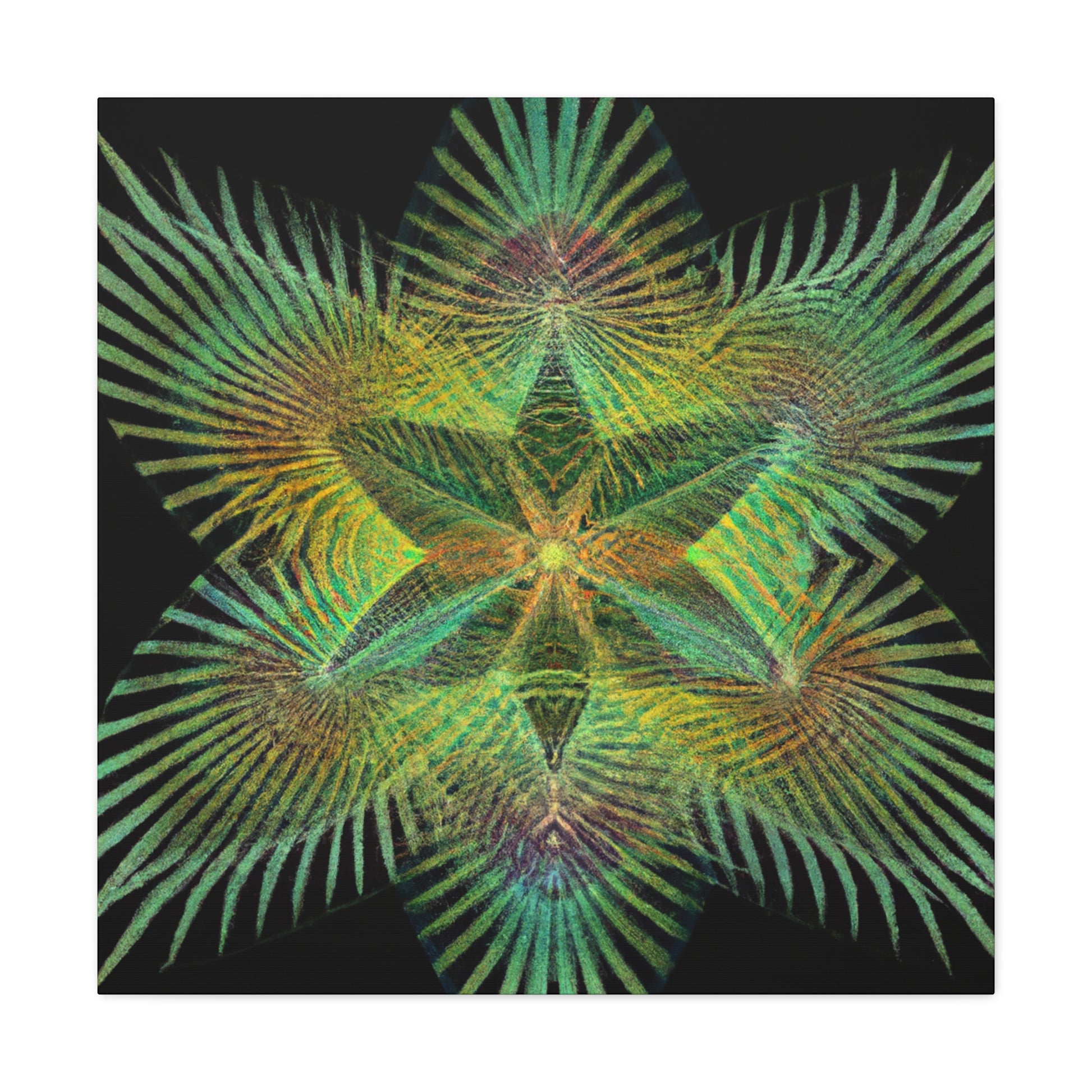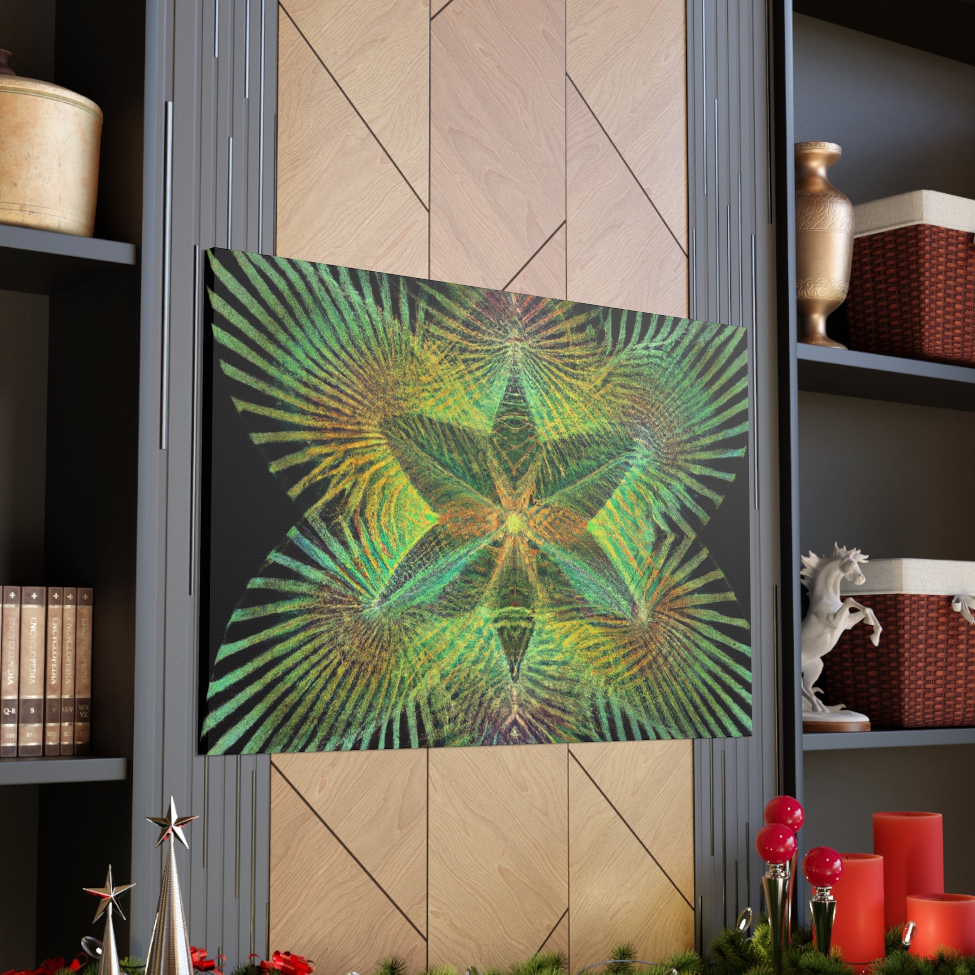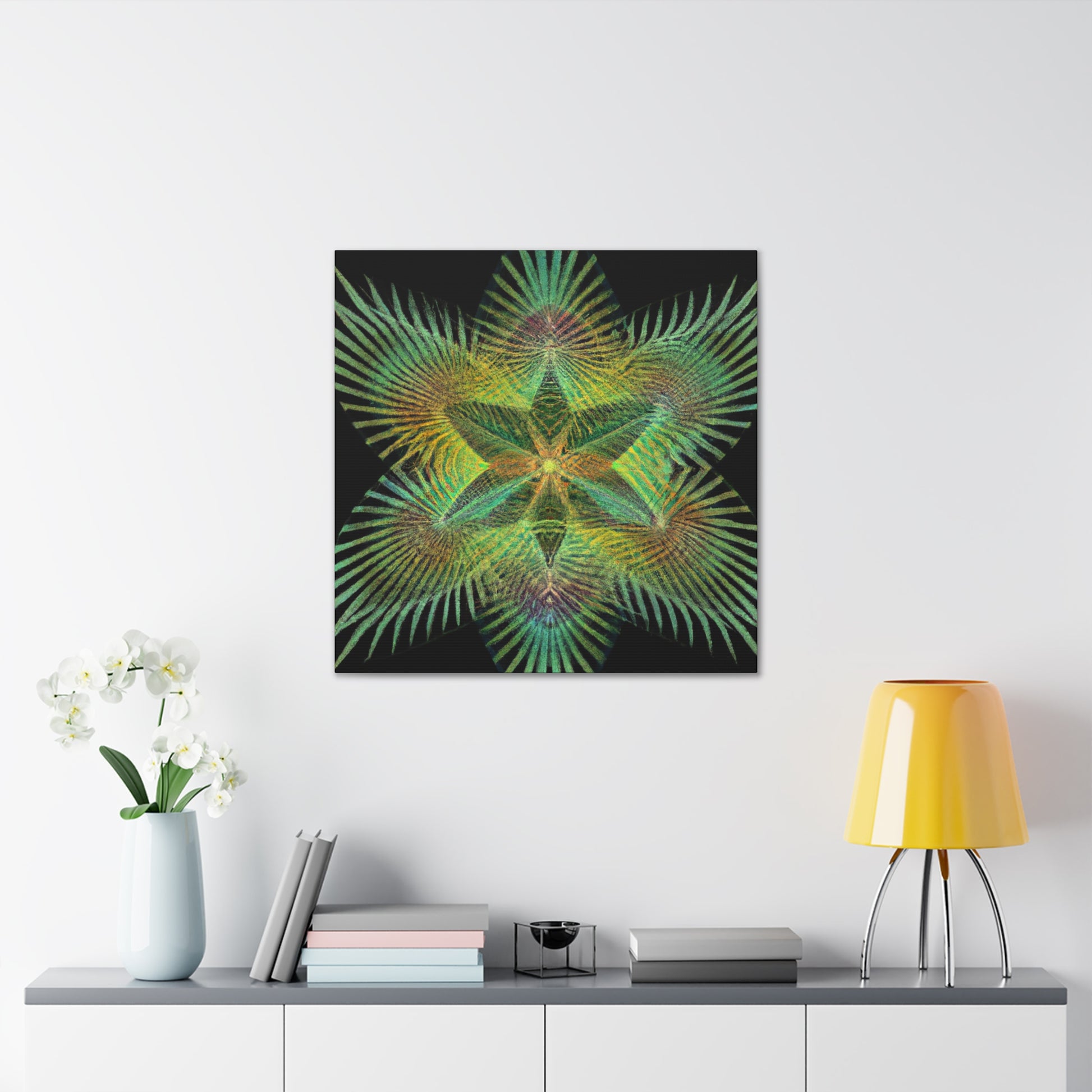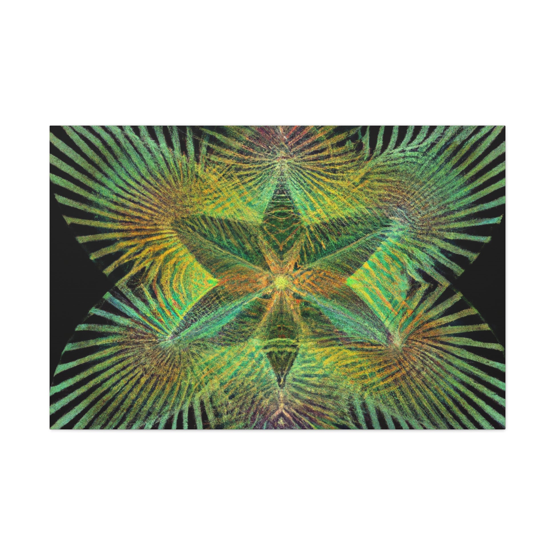 This unique canvas art depicts trippy geometric palm leaves, using a kaleidoscope of abstract digital art with vibrant colors and 3D lines. Combining fractal patterns, it creates an eye-catching visual experience. Perfect for adding a splash of color and fun to any room! #digitalart #canvasart #kaleidoscope #3Dlines #fractal #trippy #geometric #palmleaves #abstract #vibrantcolors #elteardesigns