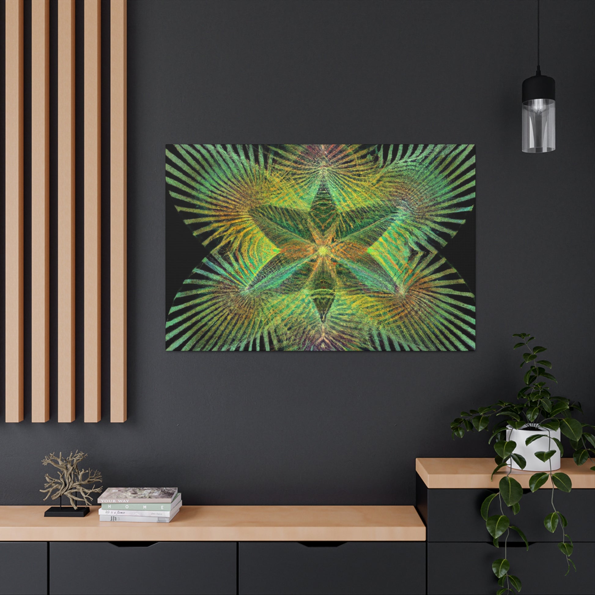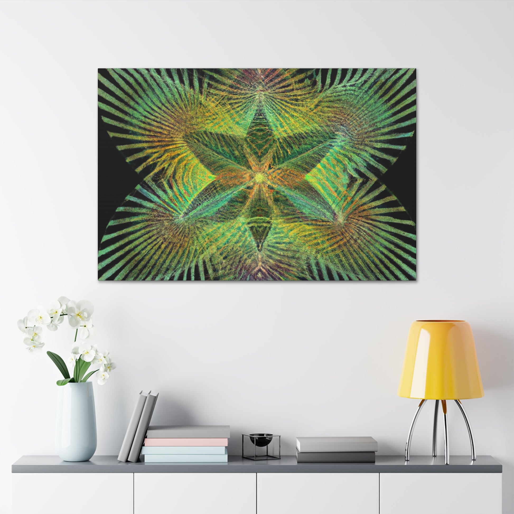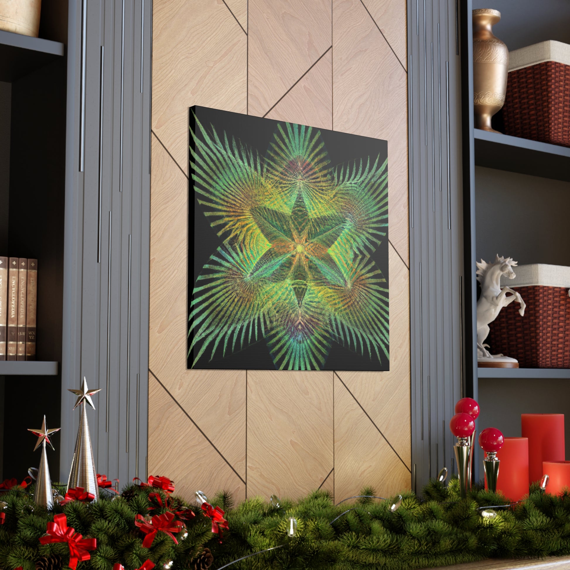 This unique canvas art depicts trippy geometric palm leaves, using a kaleidoscope of abstract digital art with vibrant colors and 3D lines. Combining fractal patterns, it creates an eye-catching visual experience. Perfect for adding a splash of color and fun to any room! #digitalart #canvasart #kaleidoscope #3Dlines #fractal #trippy #geometric #palmleaves #abstract #vibrantcolors #elteardesigns