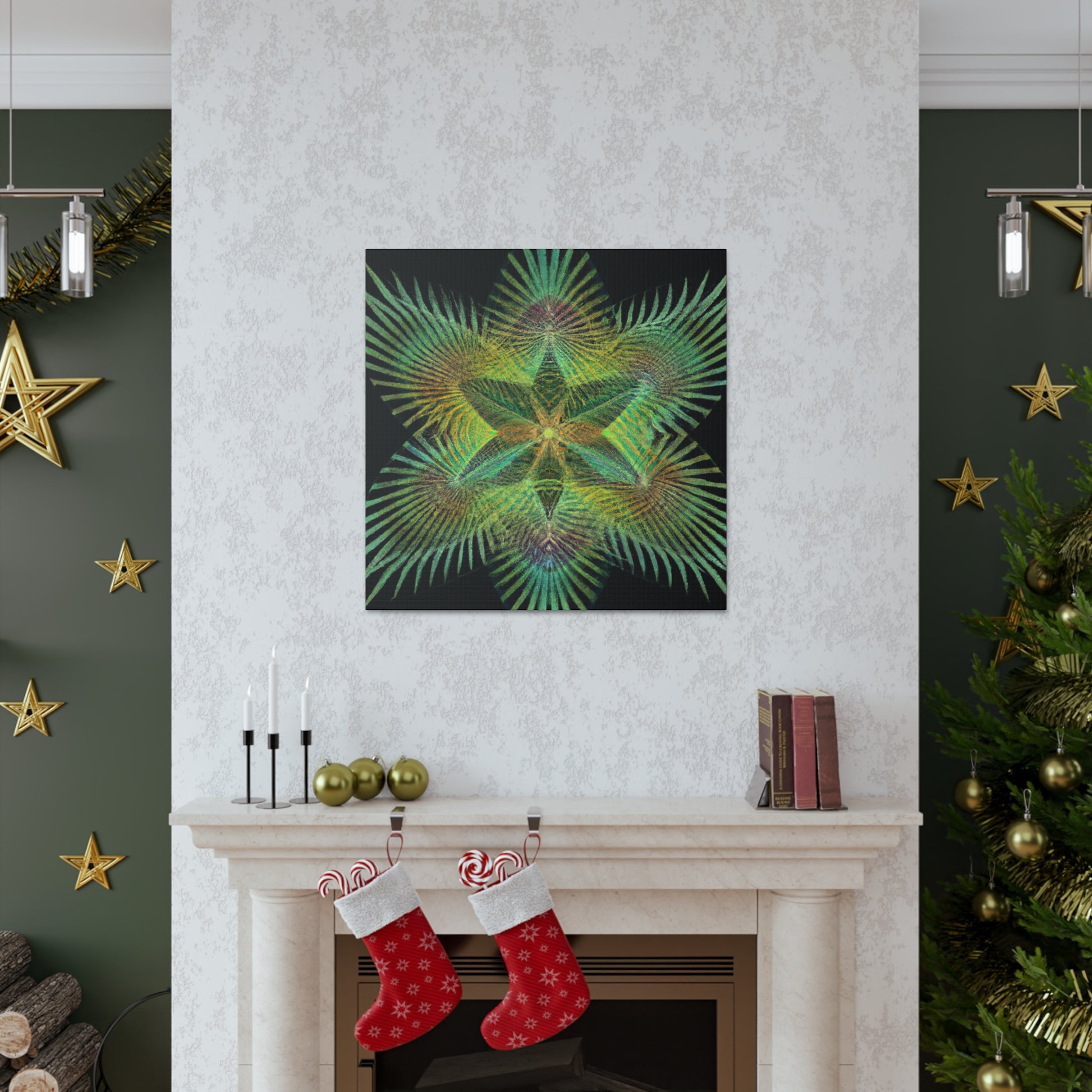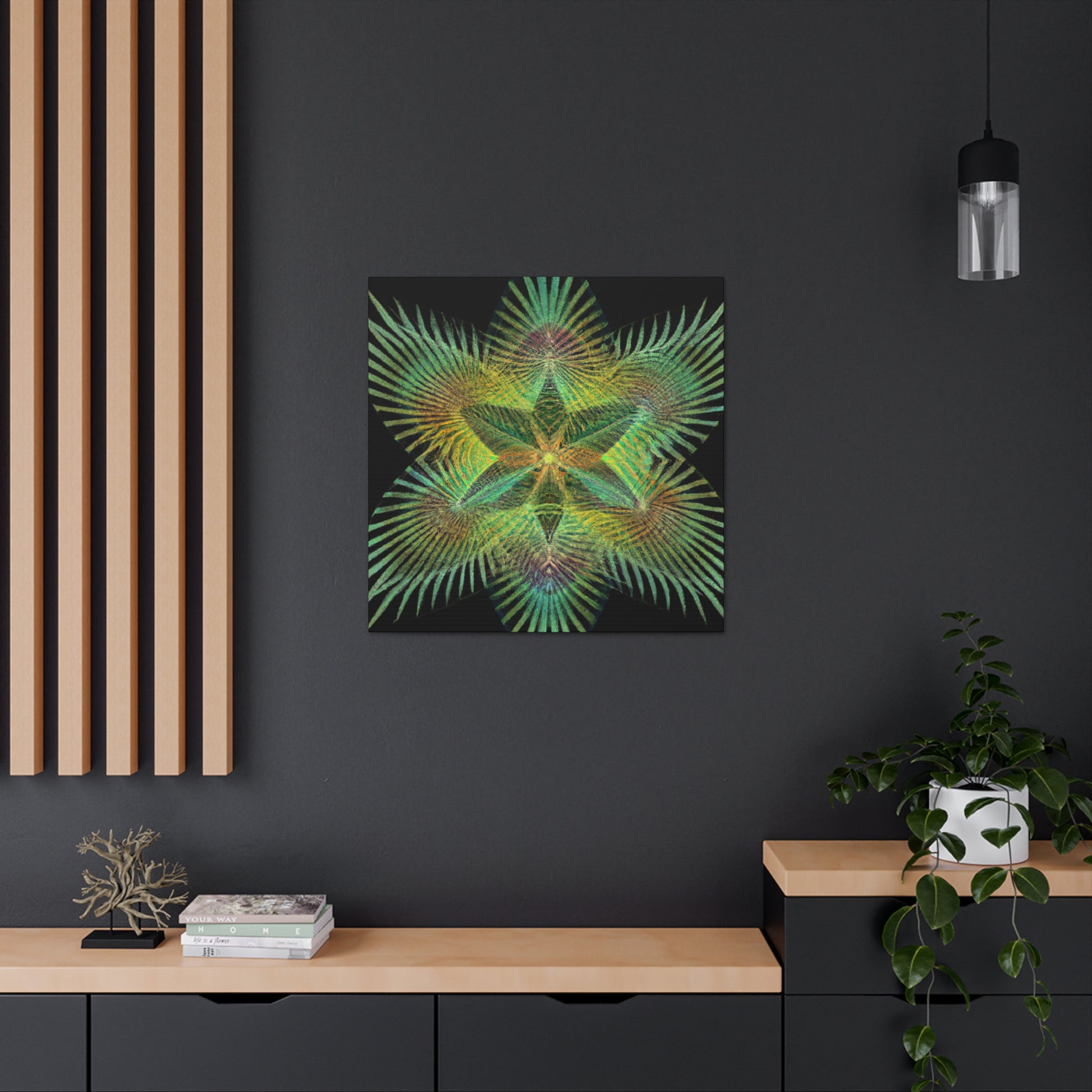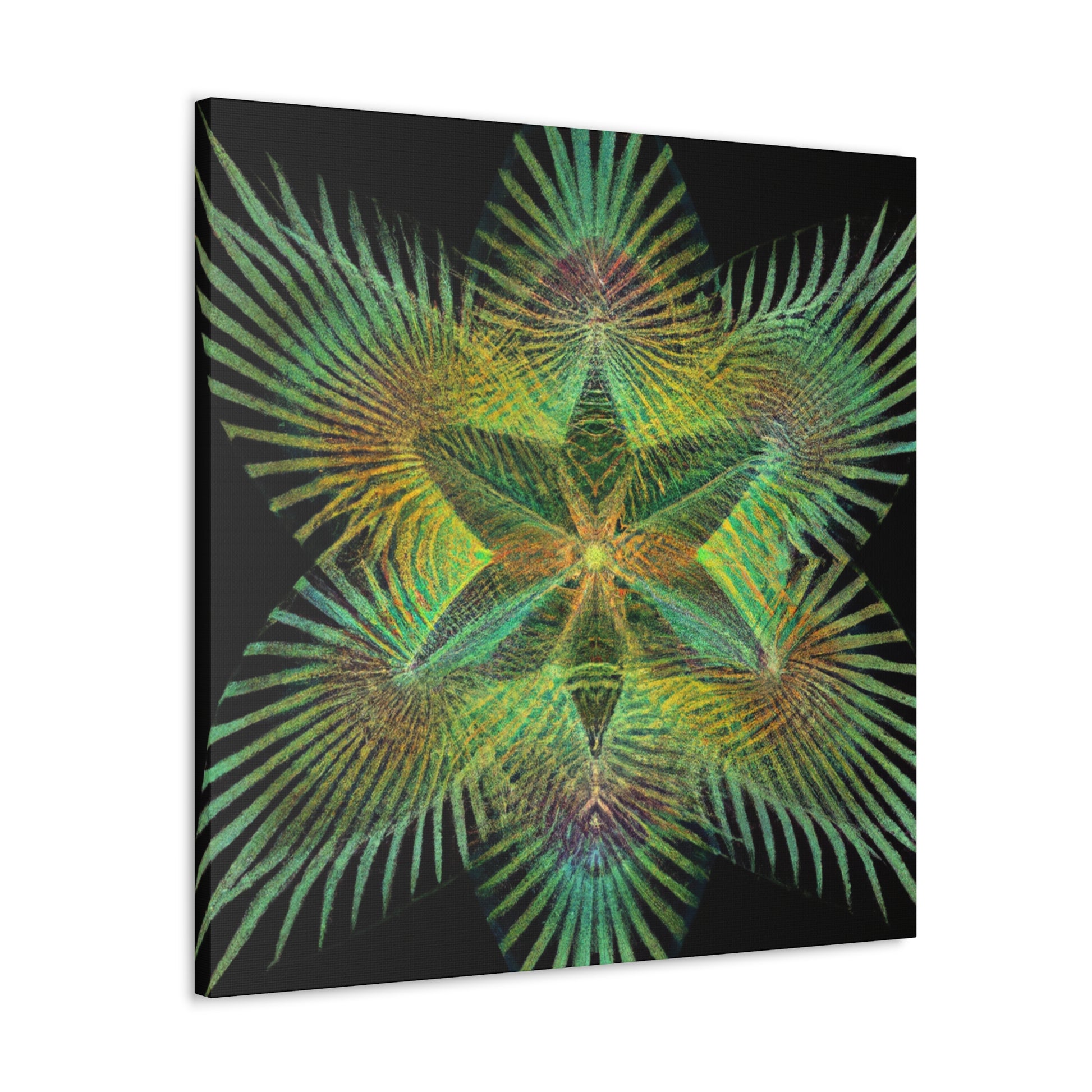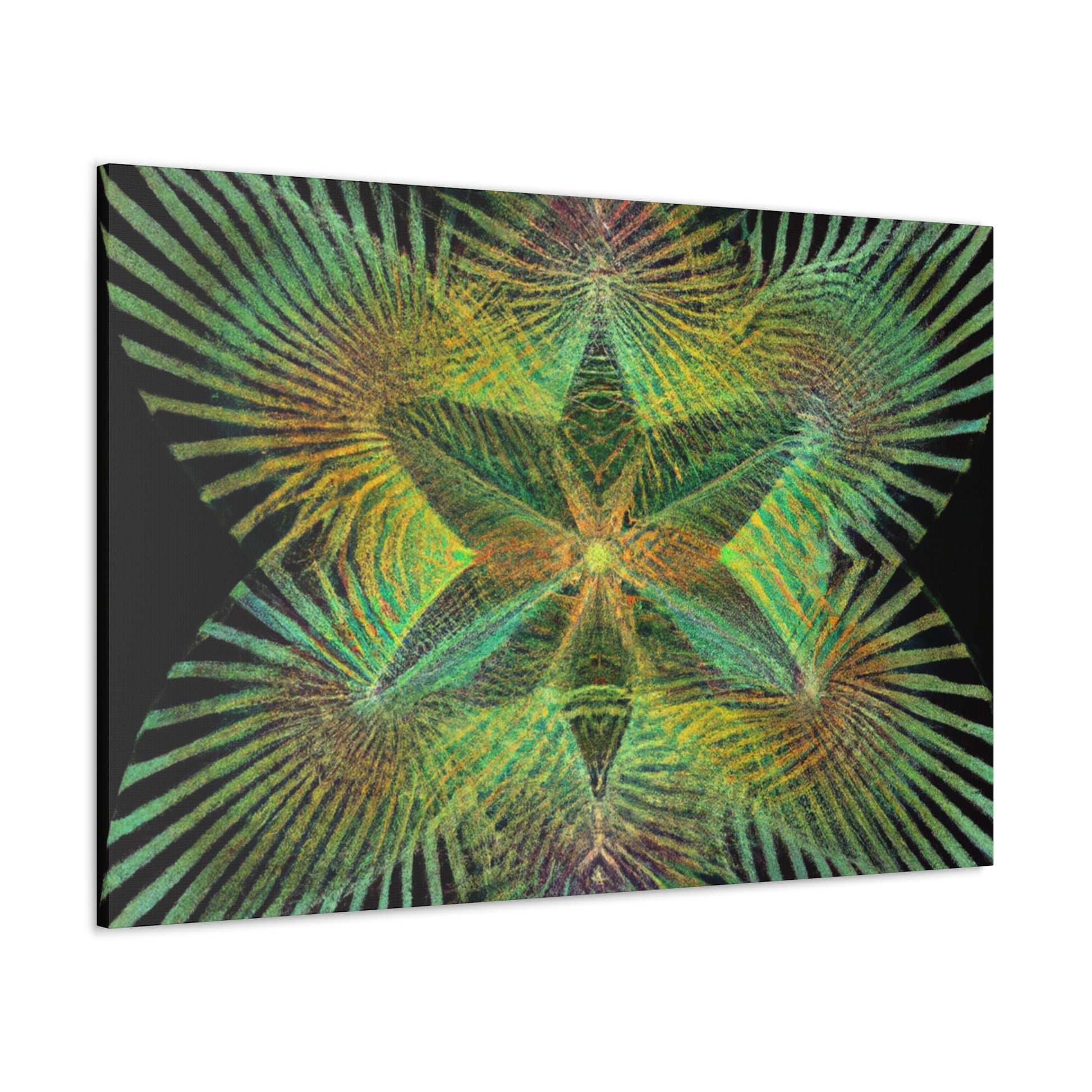This unique canvas art depicts trippy geometric palm leaves, using a kaleidoscope of abstract digital art with vibrant colors and 3D lines. Combining fractal patterns, it creates an eye-catching visual experience. Perfect for adding a splash of color and fun to any room! #digitalart #canvasart #kaleidoscope #3Dlines #fractal #trippy #geometric #palmleaves #abstract #vibrantcolors #elteardesigns