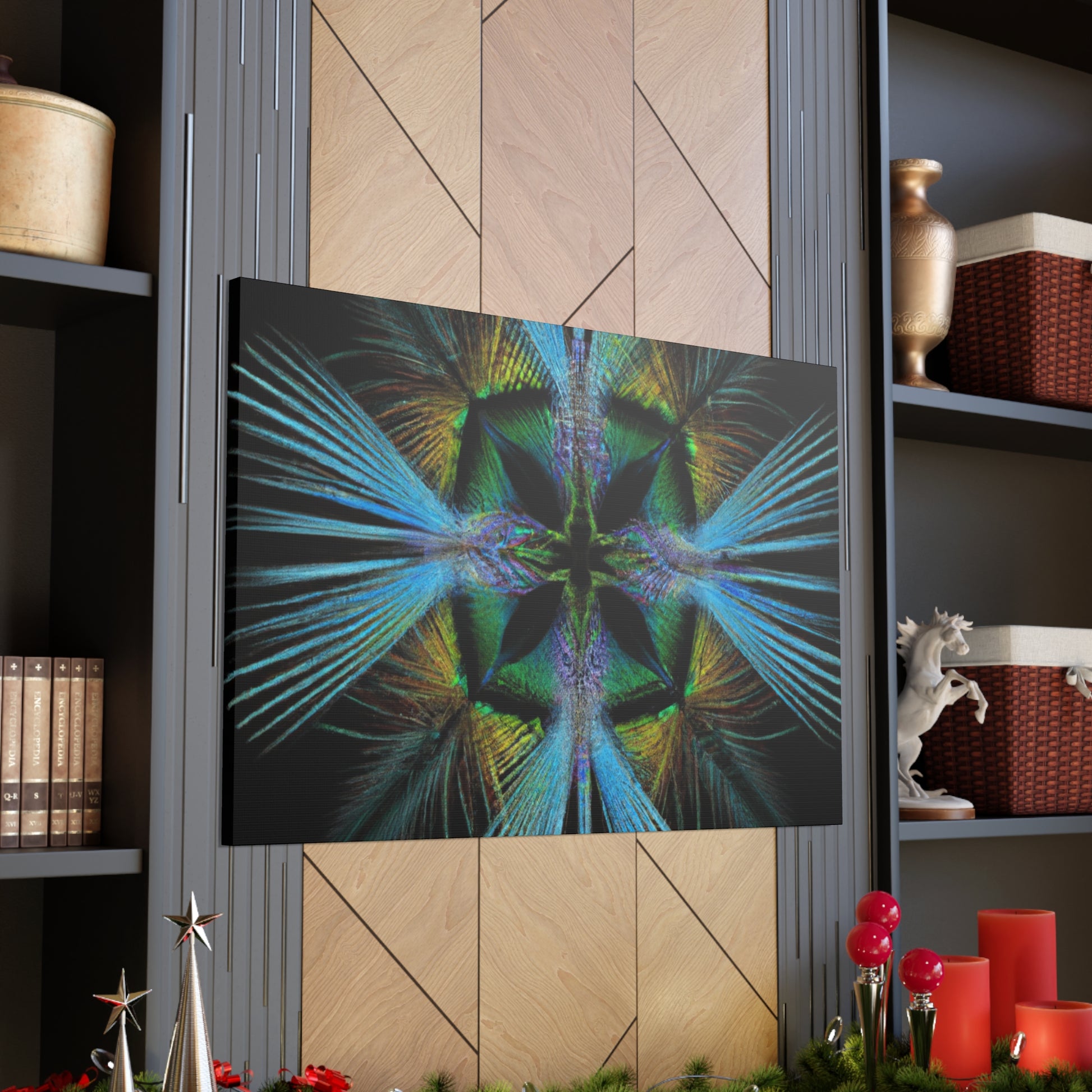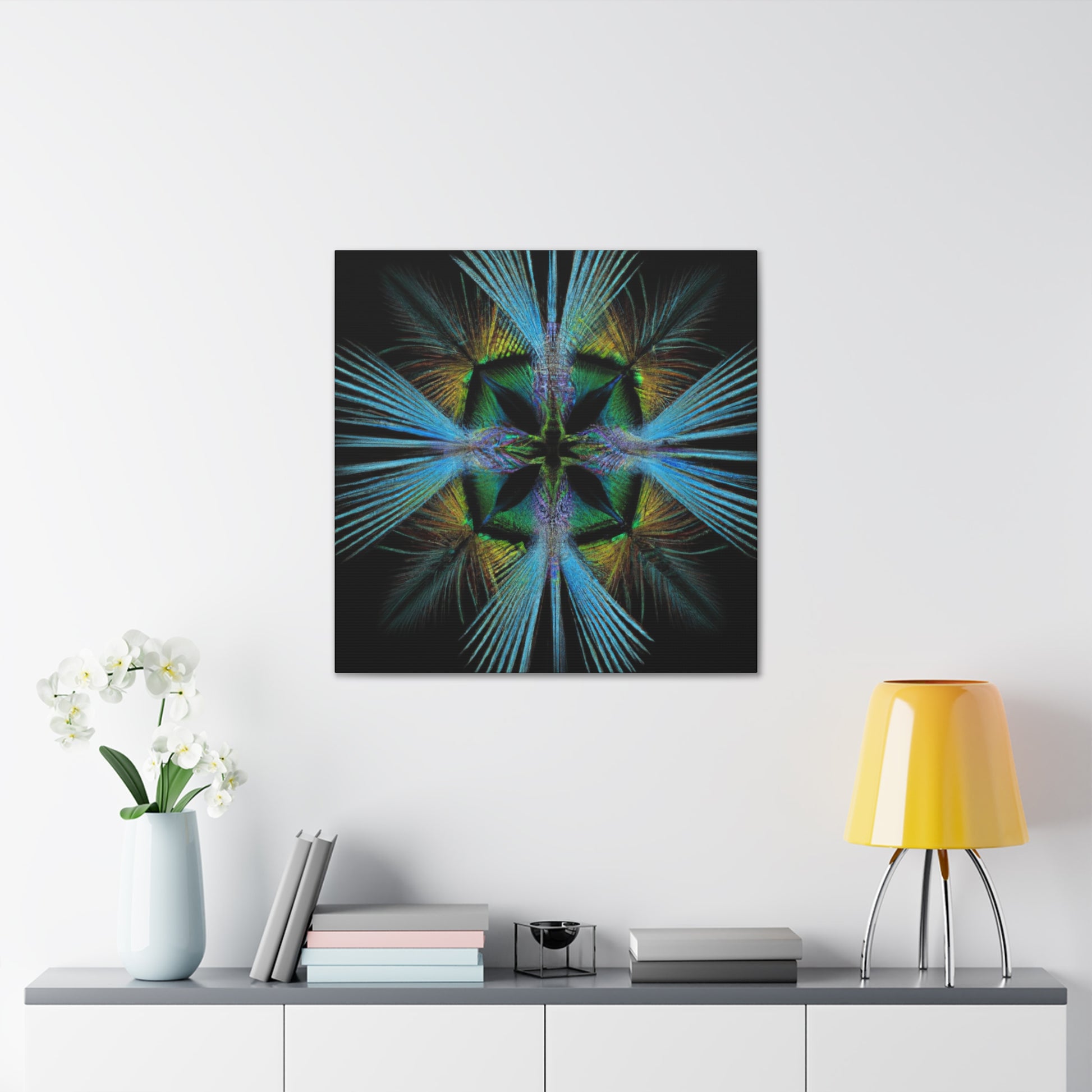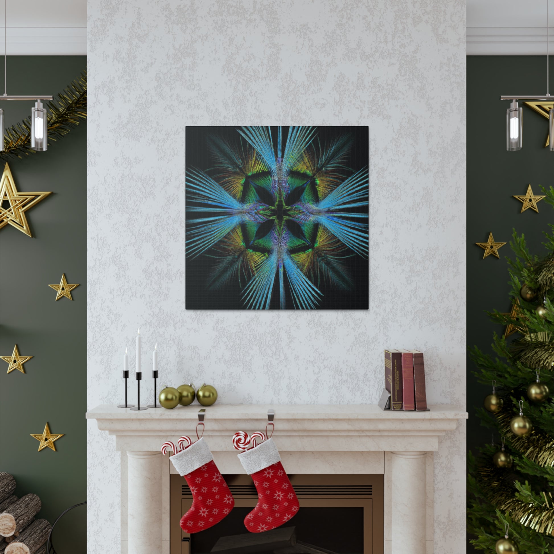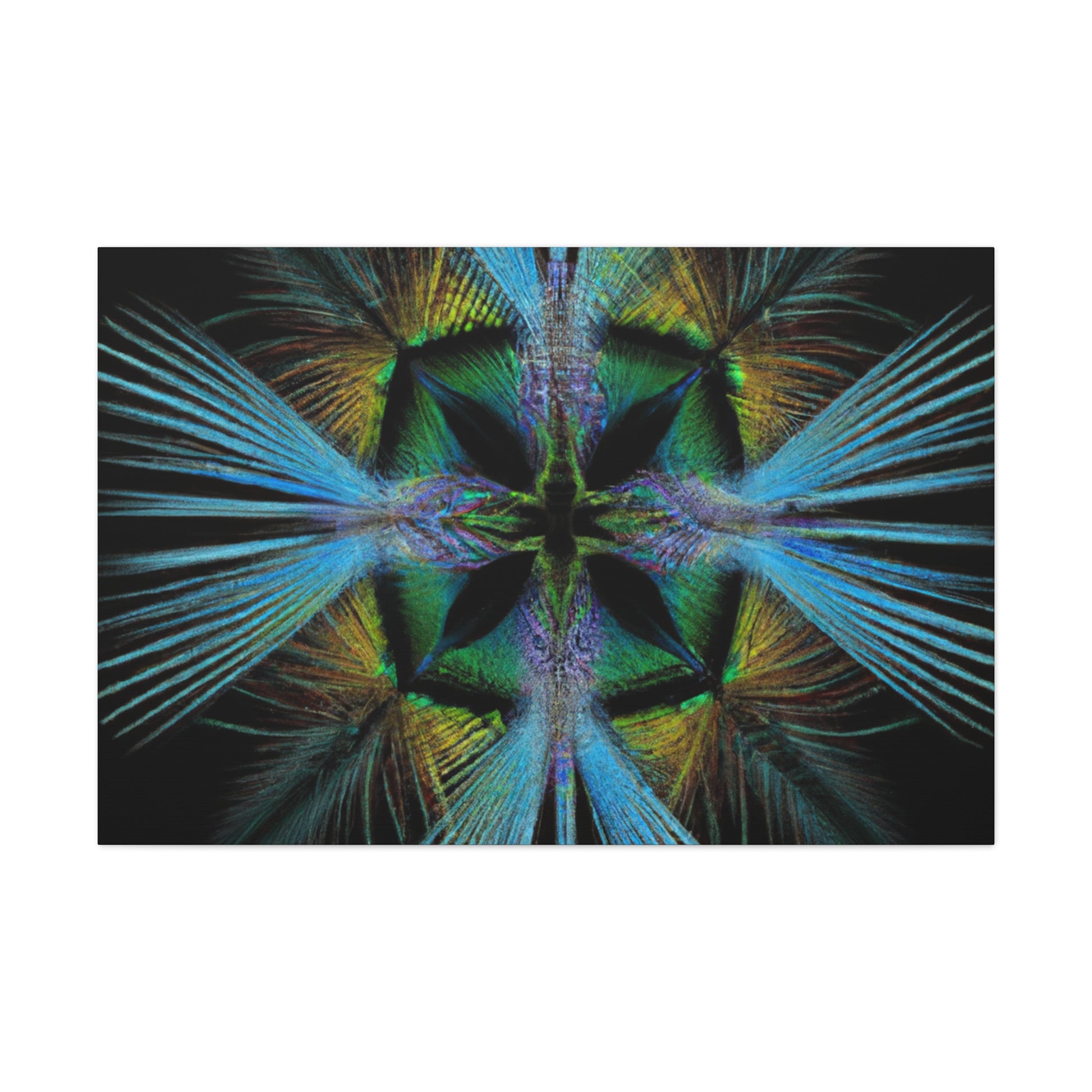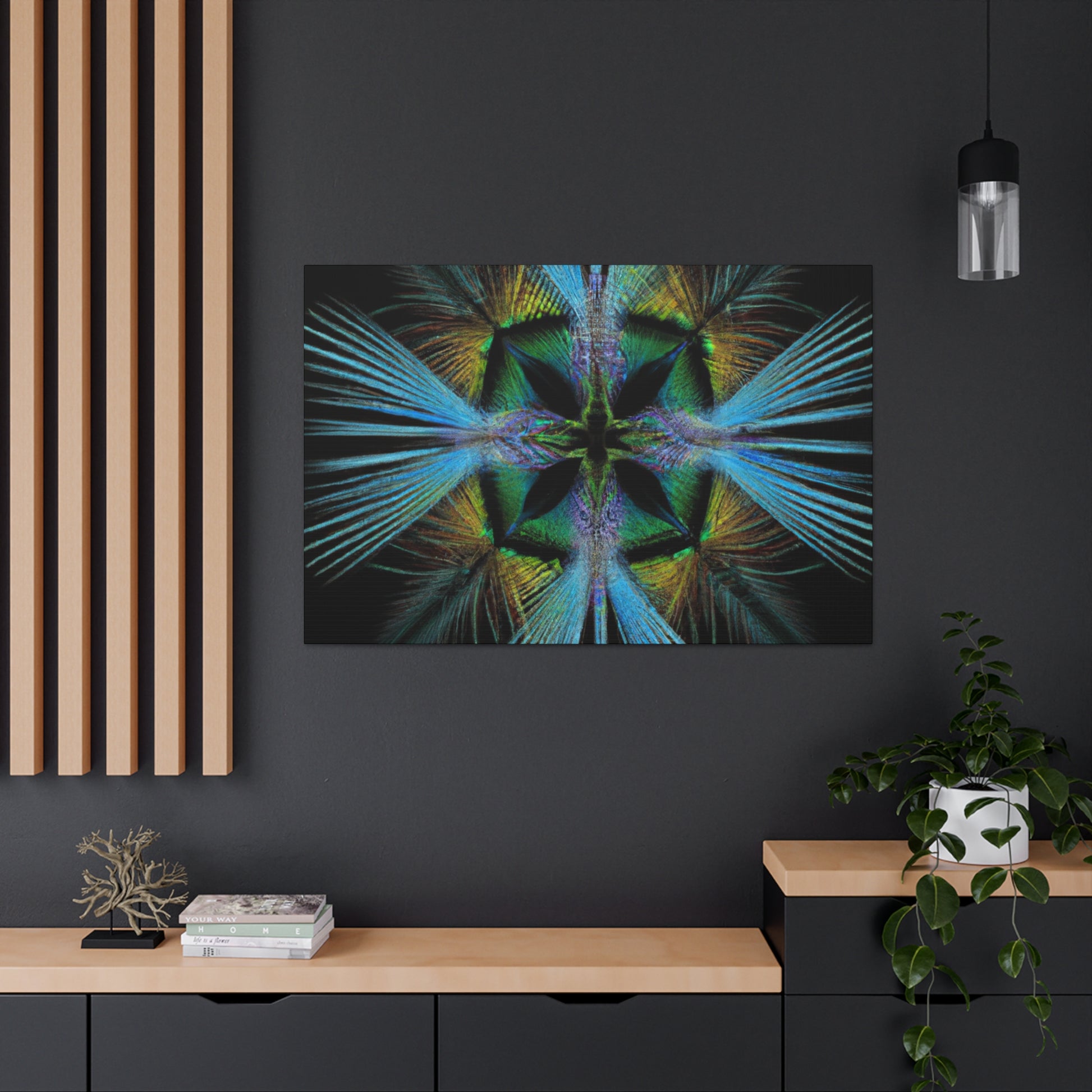 This mesmerizing canvas features an abstract digital art of trippy geometric palm leaves. The kaleidoscope colors blend together and create a vibrant, almost magical effect. The detailed patterns are created with 3D lines and fractals, making it an eye-catching piece of art. Bring a unique energy to your walls with this abstract digital print. #digitalart #3dlines #fractal #kaleidoscope #palmleaves #abstract #vibrant #elegant #beautiful #wallart #canvasart