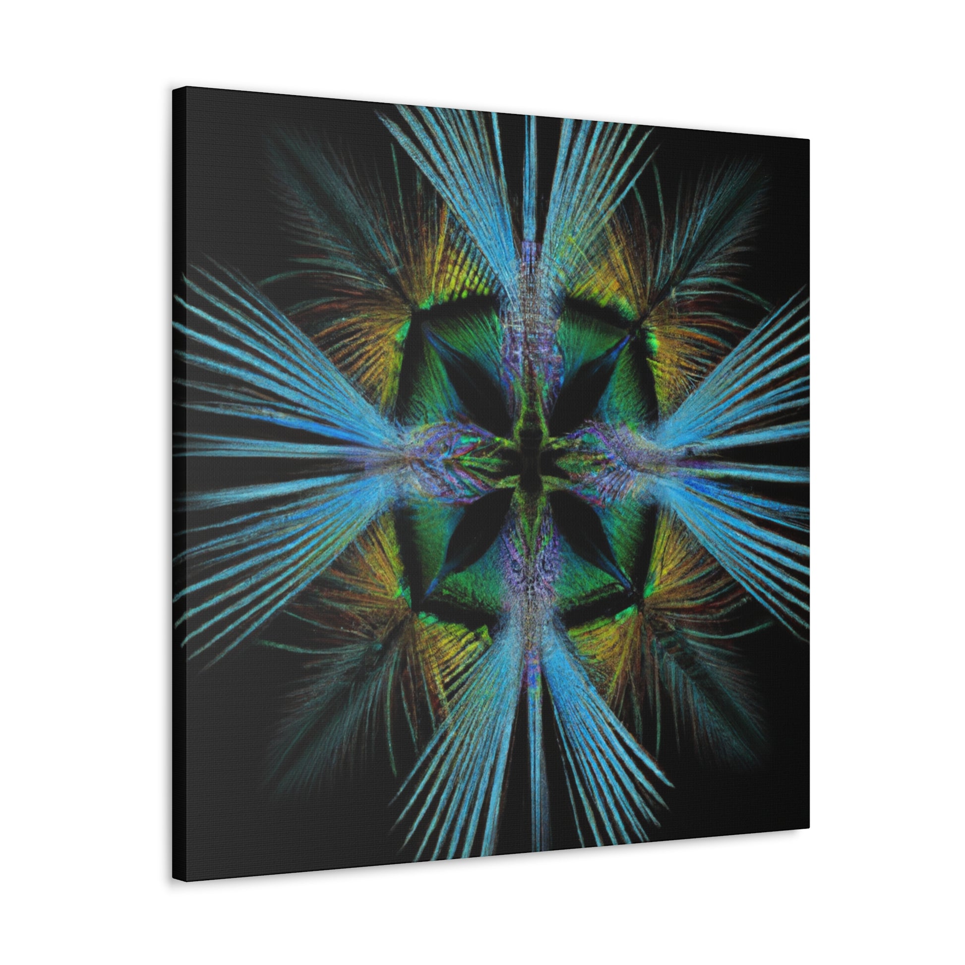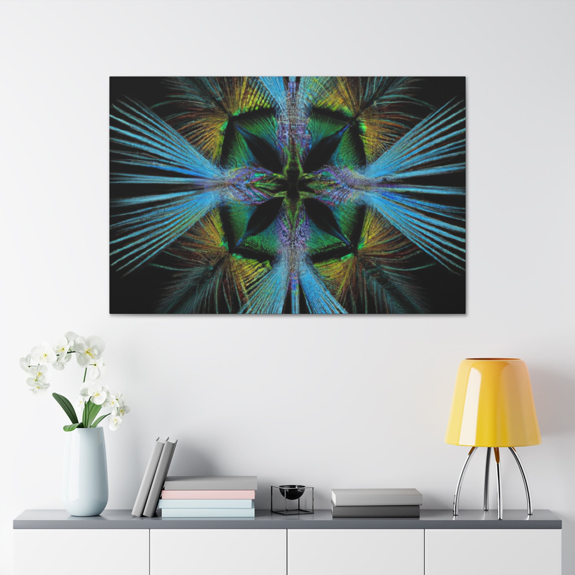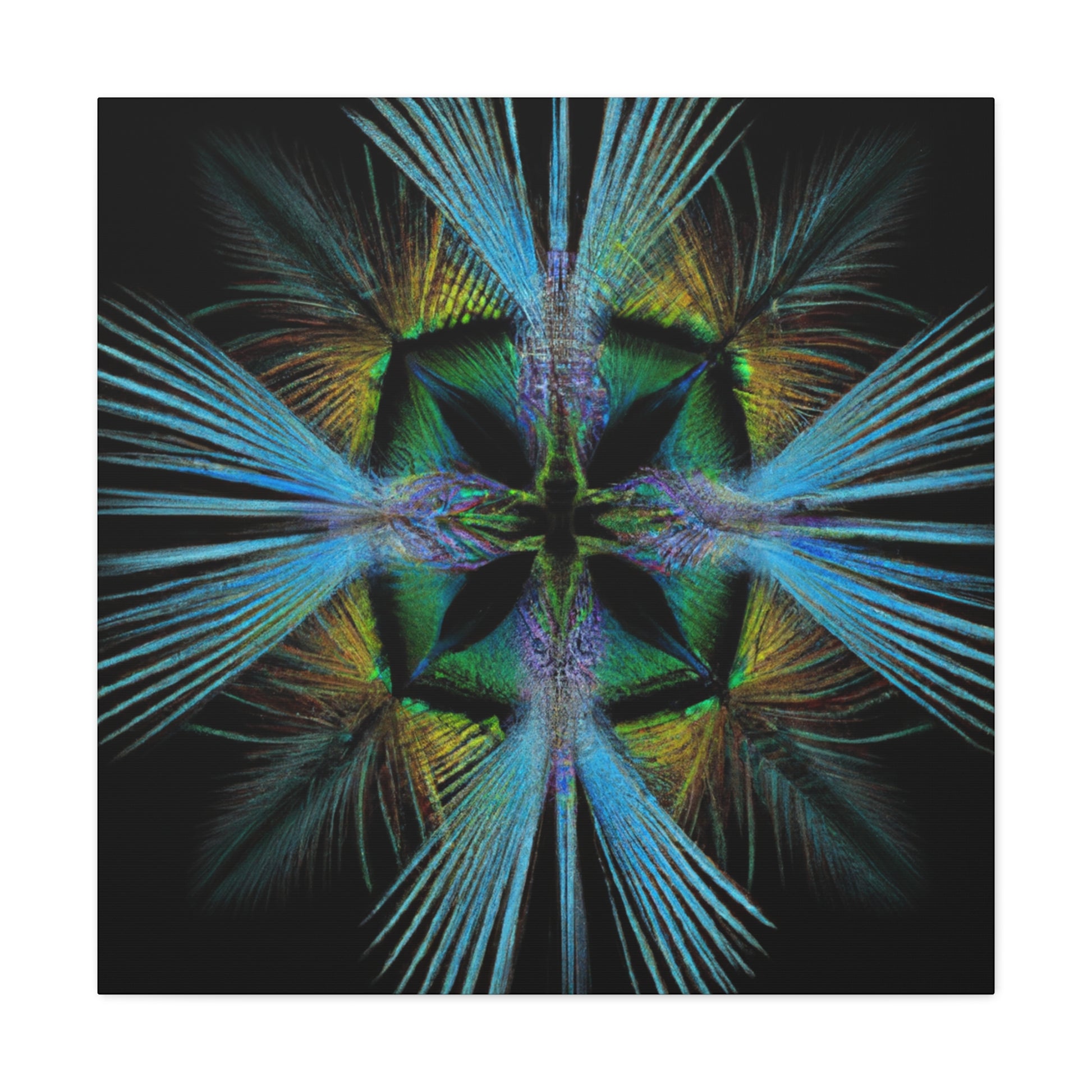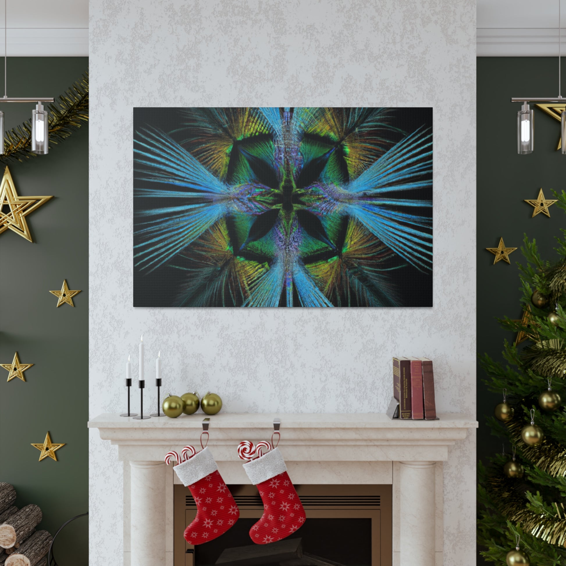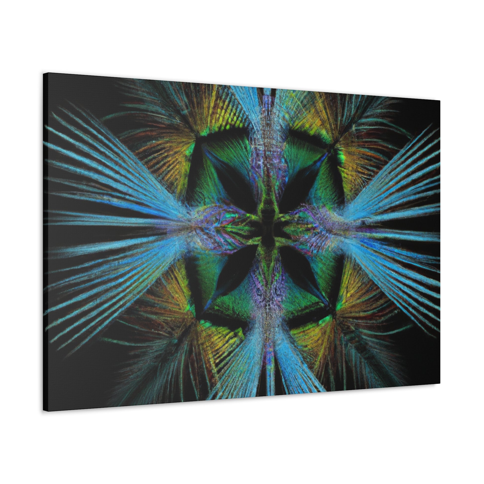This mesmerizing canvas features an abstract digital art of trippy geometric palm leaves. The kaleidoscope colors blend together and create a vibrant, almost magical effect. The detailed patterns are created with 3D lines and fractals, making it an eye-catching piece of art. Bring a unique energy to your walls with this abstract digital print. #digitalart #3dlines #fractal #kaleidoscope #palmleaves #abstract #vibrant #elegant #beautiful #wallart #canvasart