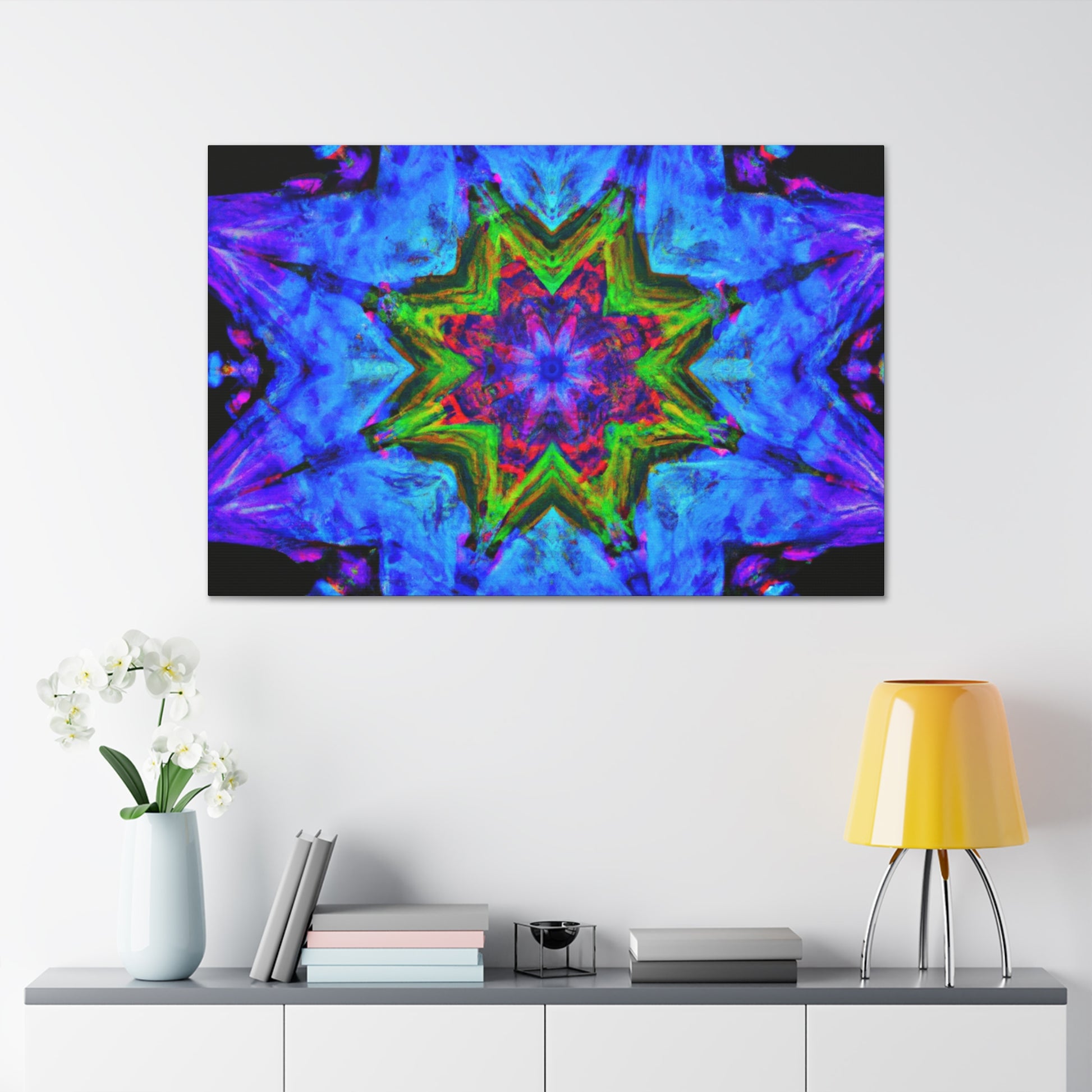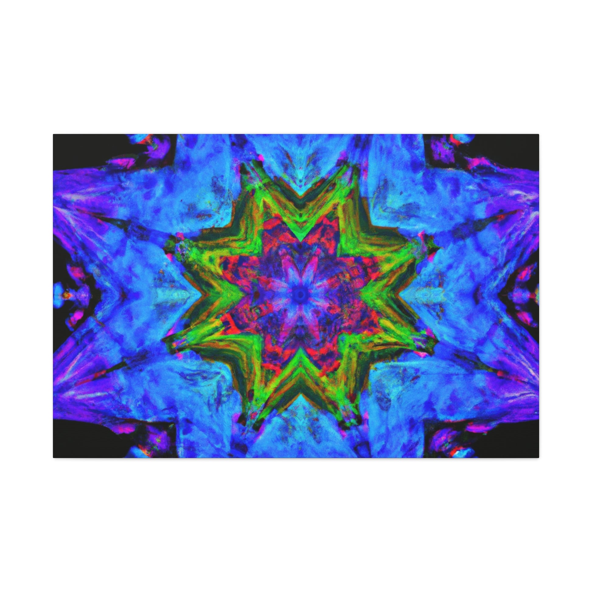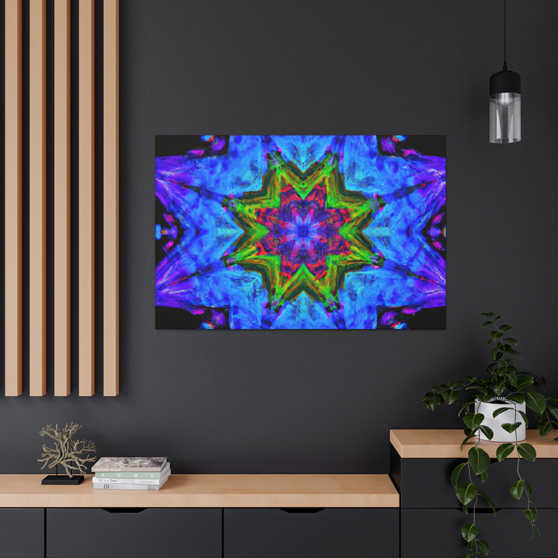 This bold canvas is a perfect mix of trippy stars, kaleidoscope, abstract, digital art, and vibrant colors. The canvas is printed in HD, making sure each intricate detail is brought to life, and its symmetrical centrepiece will leave you in awe. This canvas is the perfect addition to any modern home - experience technicolor art in your own home. #trippyart #kaleidoscopeart #abstractart #modernart #vibrantcolors #homedecor #canvasart #wallartdecor #digitalart #hdprint #colourfulart