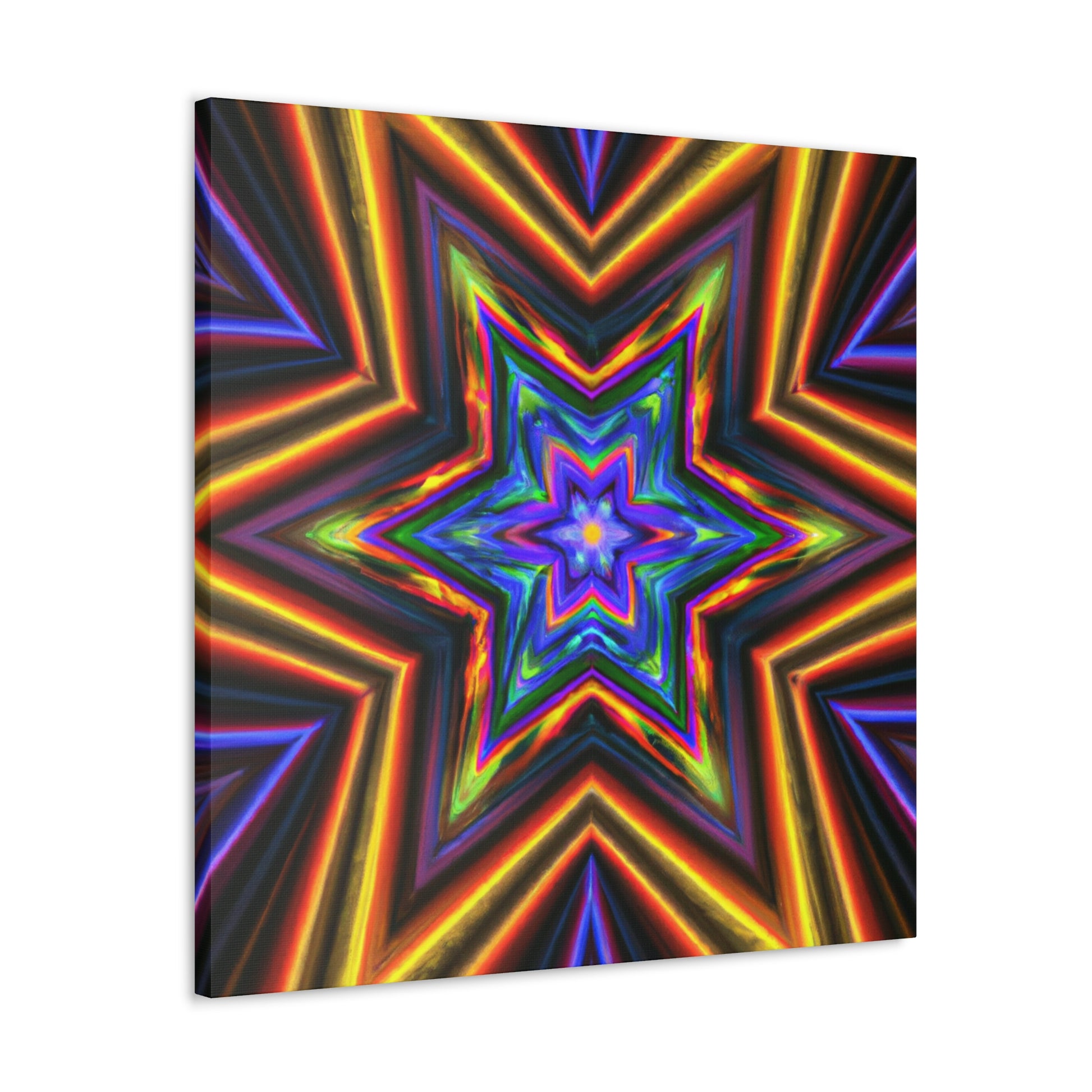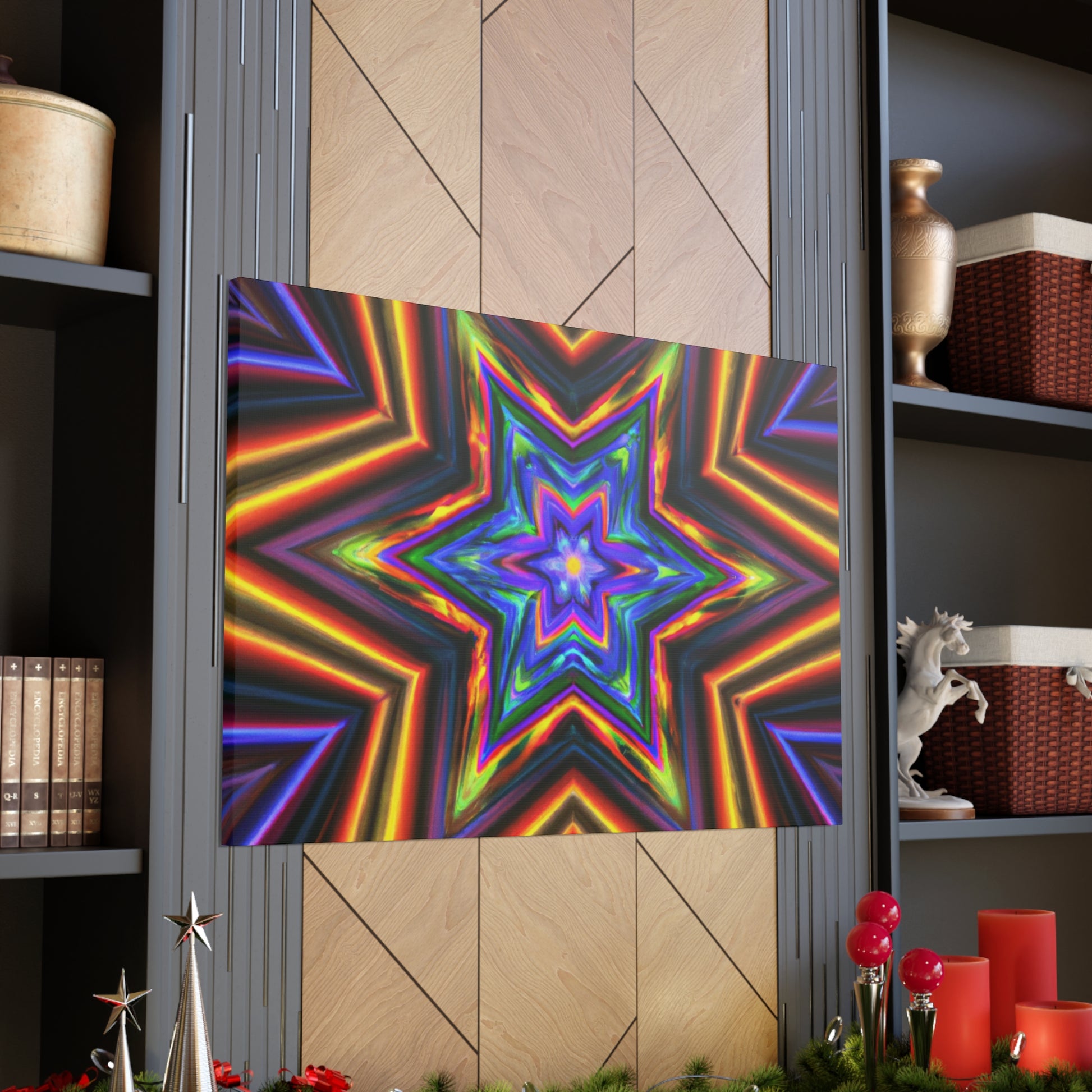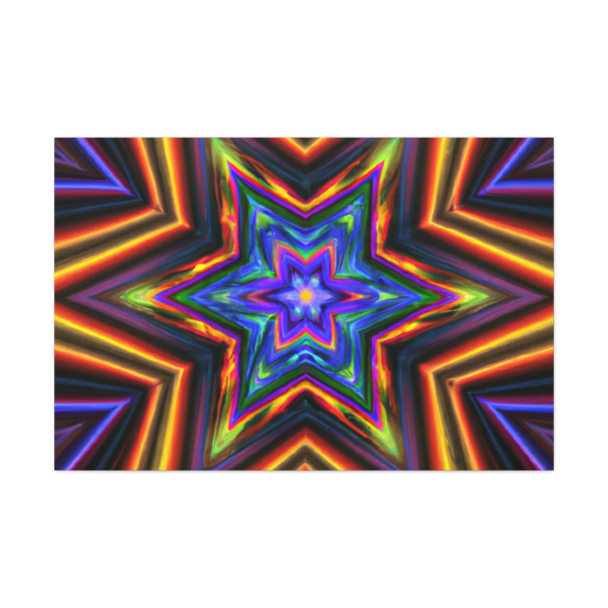 Our canvas includes a trippy star, kaleidoscope, and abstract-style design that radiates with vibrant colors and is printed in HD for maximum impact. Its symmetrical appearance ensures it will draw the eye and command attention wherever it is placed. #HD #vibrant #star #kaleidoscope #abstract #digitalart #symmetrical #canvas #artwork #wallart #style