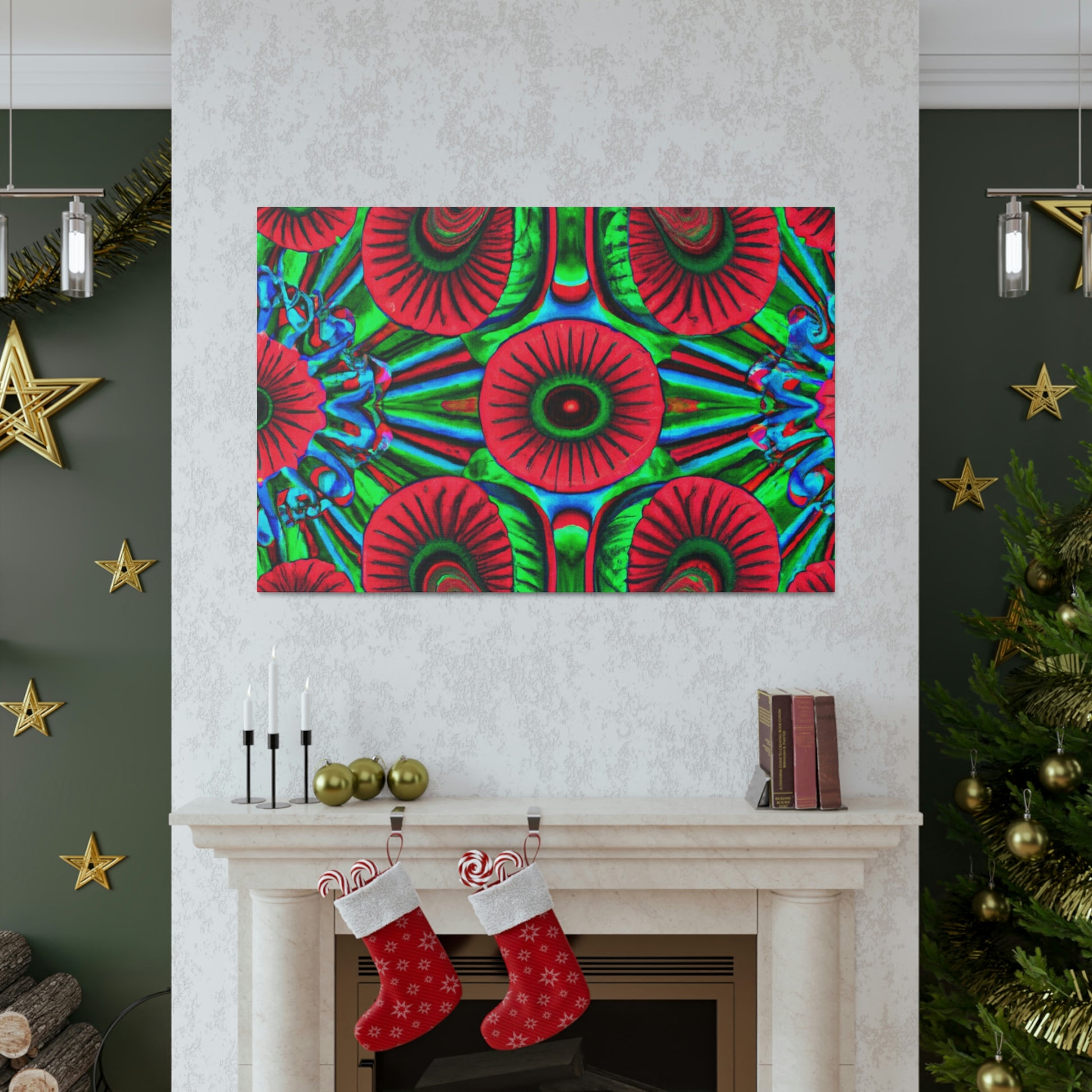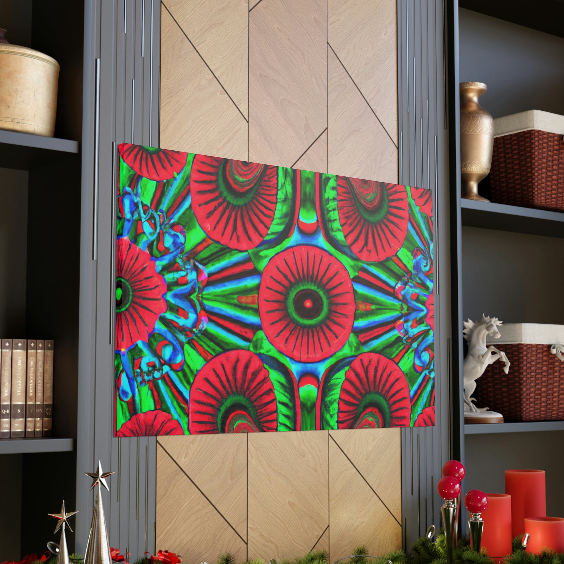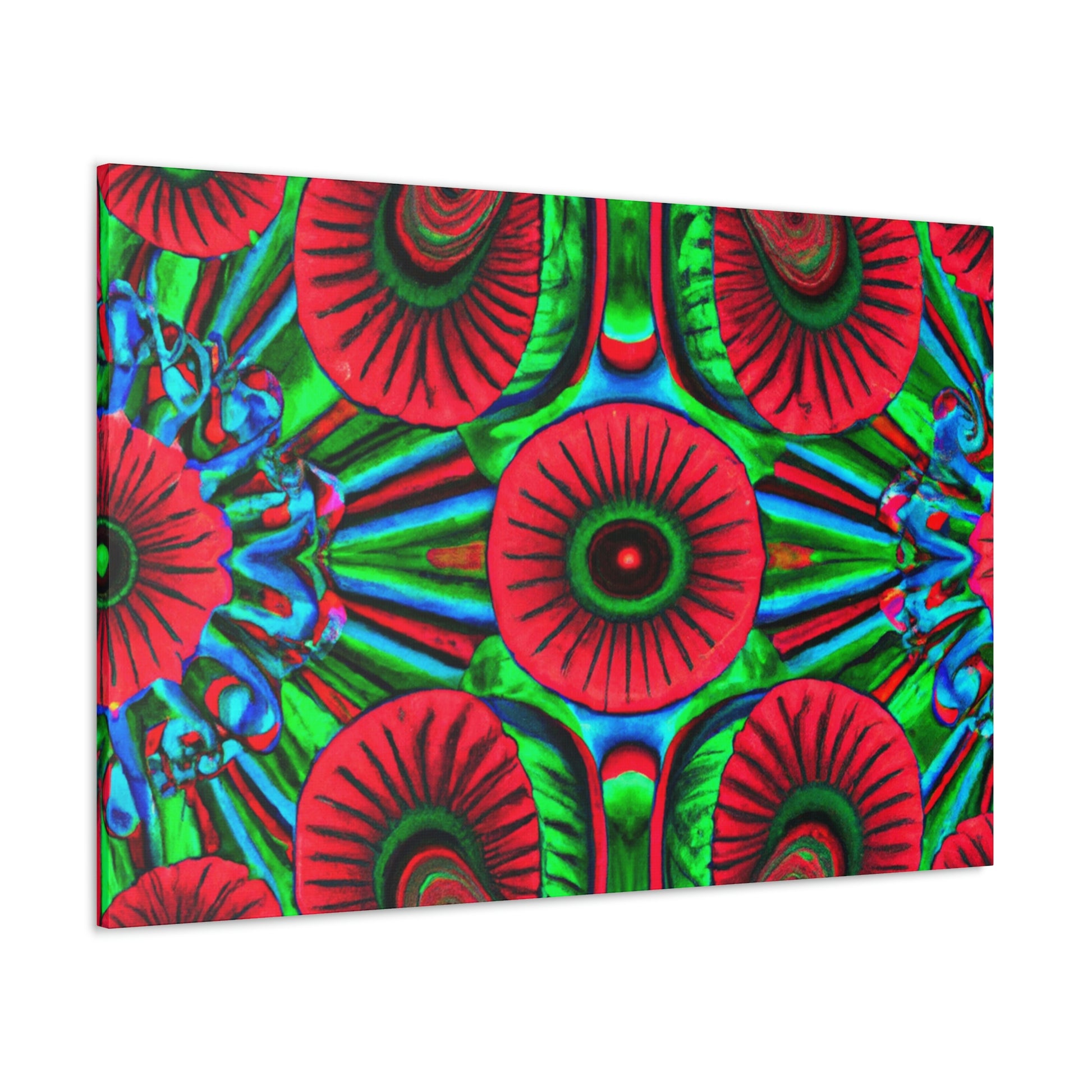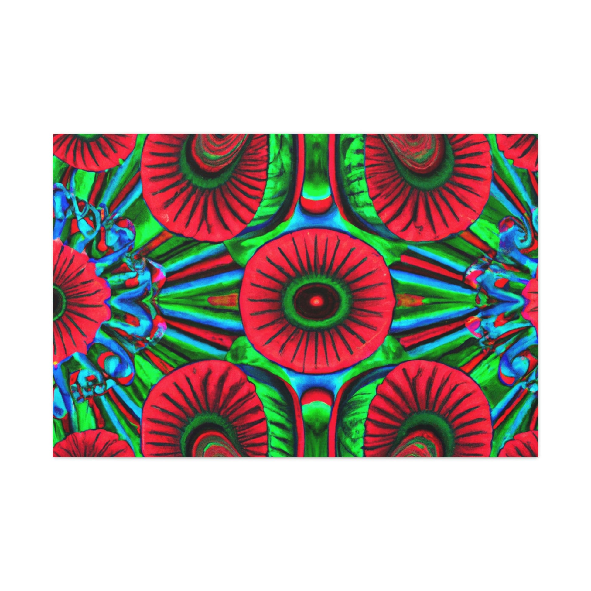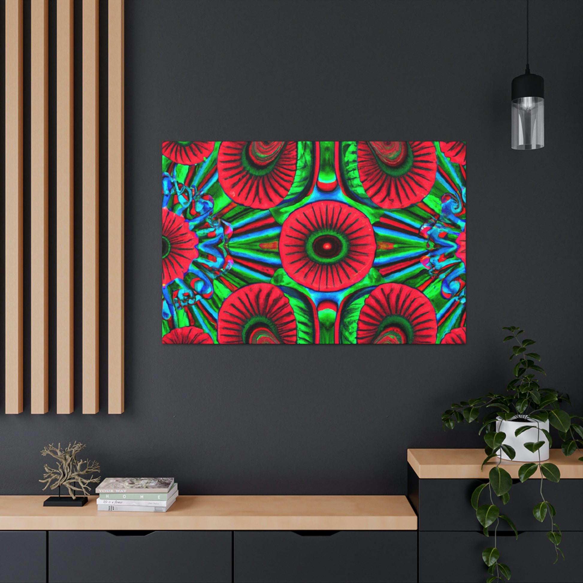 This vibrant canvas of trippy mushrooms, kaleidoscope, abstract, digital art, and 3D lines is sure to brighten your living space. The canvas has multi-coloured 3D lines, giving depth to this unique art piece. The generous use of vibrant colours add a splash of fun and energy to any room. This abstract canvas is sure to stand out and be the perfect statement piece. #mushrooms #kaleidoscope #3Dlines #abstractart #digitalart #canvasart #canvas #vibrantcolours #statementpiece #trippy #energy