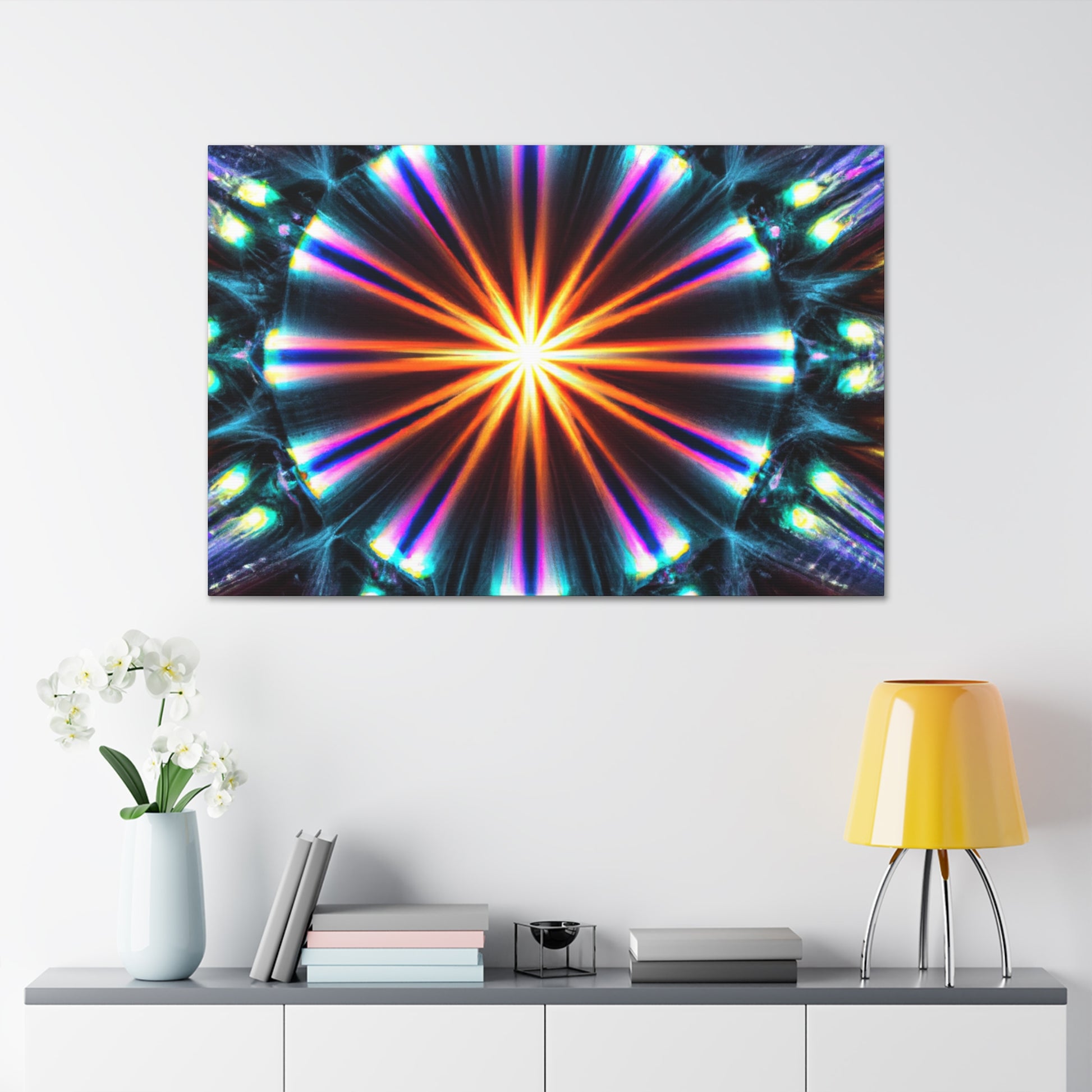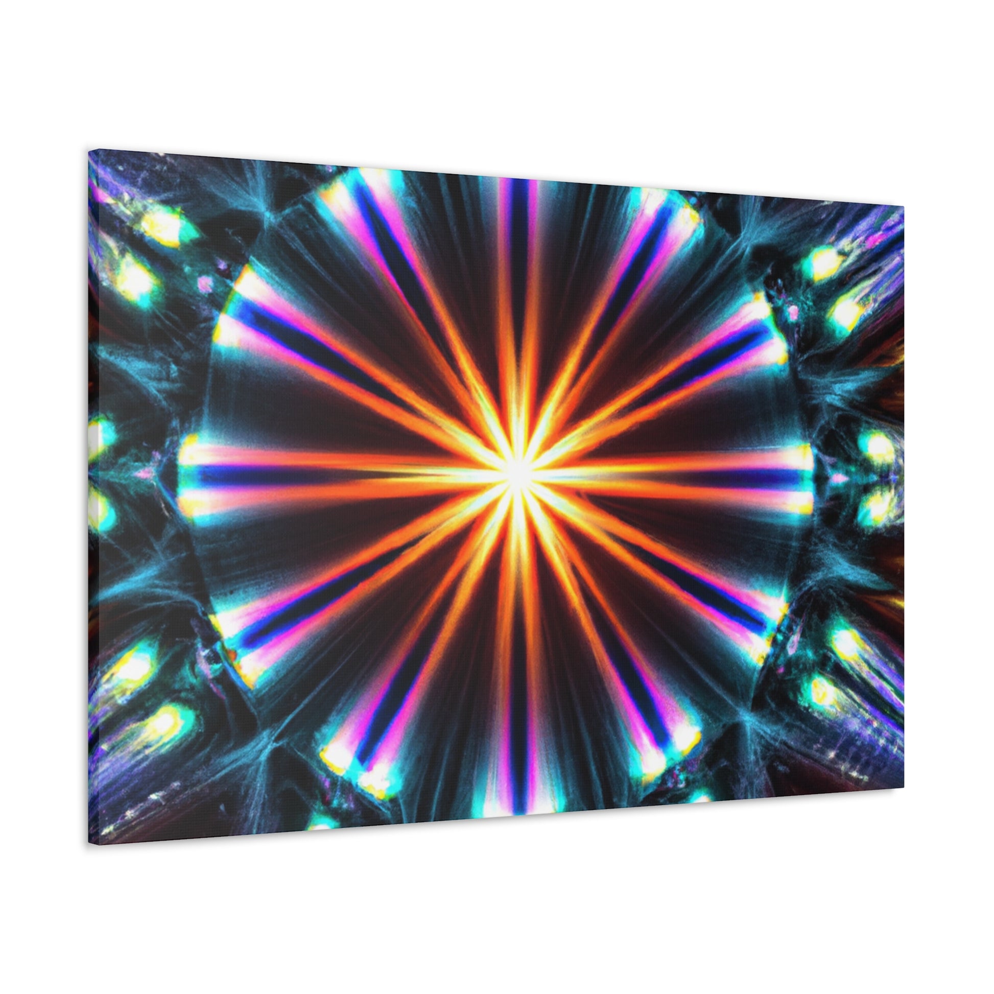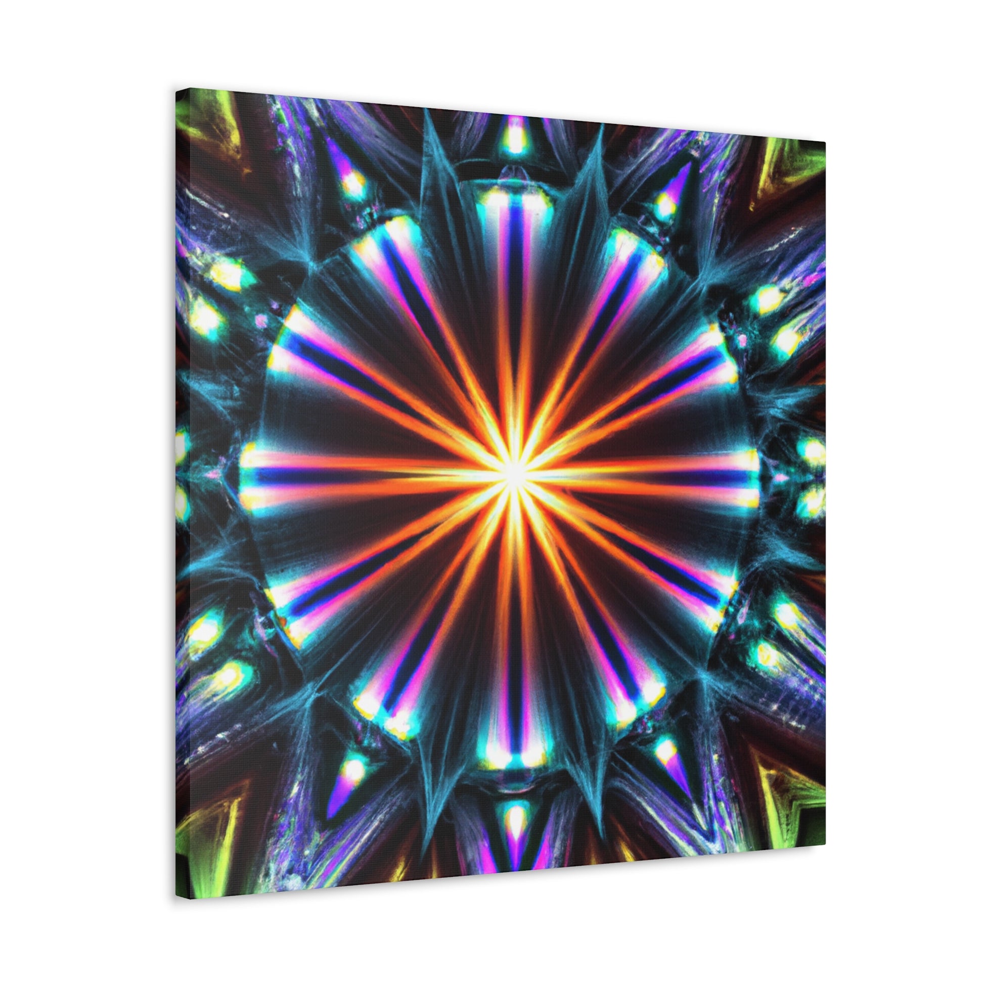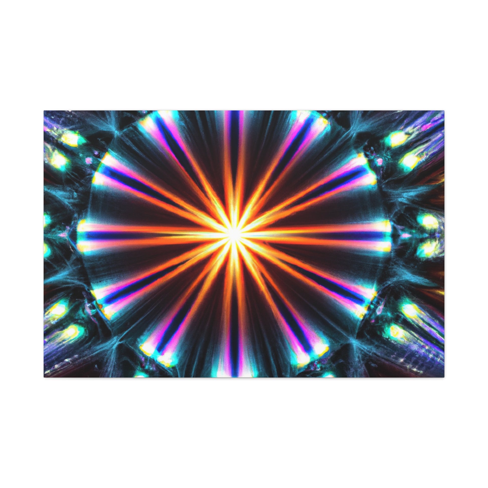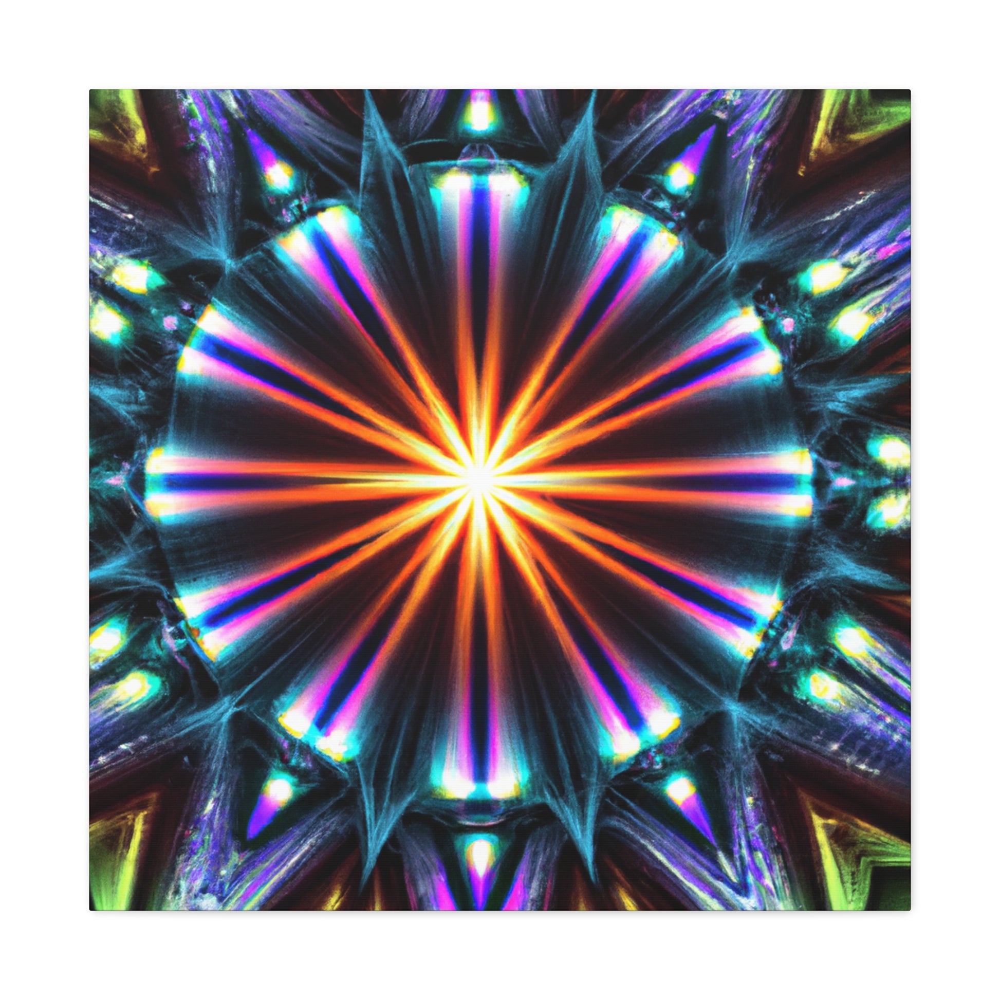 This top-of-the-line canvas art will bring a unique touch to any space. Featuring digitally-created abstract shapes of color and light that glow with vibrant, HD clarity, this stunning artwork will bring new life to any wall. Symmetrical and trippy stars in a kaleidoscopic design produces a stunning and unforgettable display. Bring comfort and beauty together in one piece with this dynamic and eye-catching canvas. #kaleidoscope #trippy #hd #art #canvas #digitalart #symmetry #abstract #colors #vibrant #trippystars
