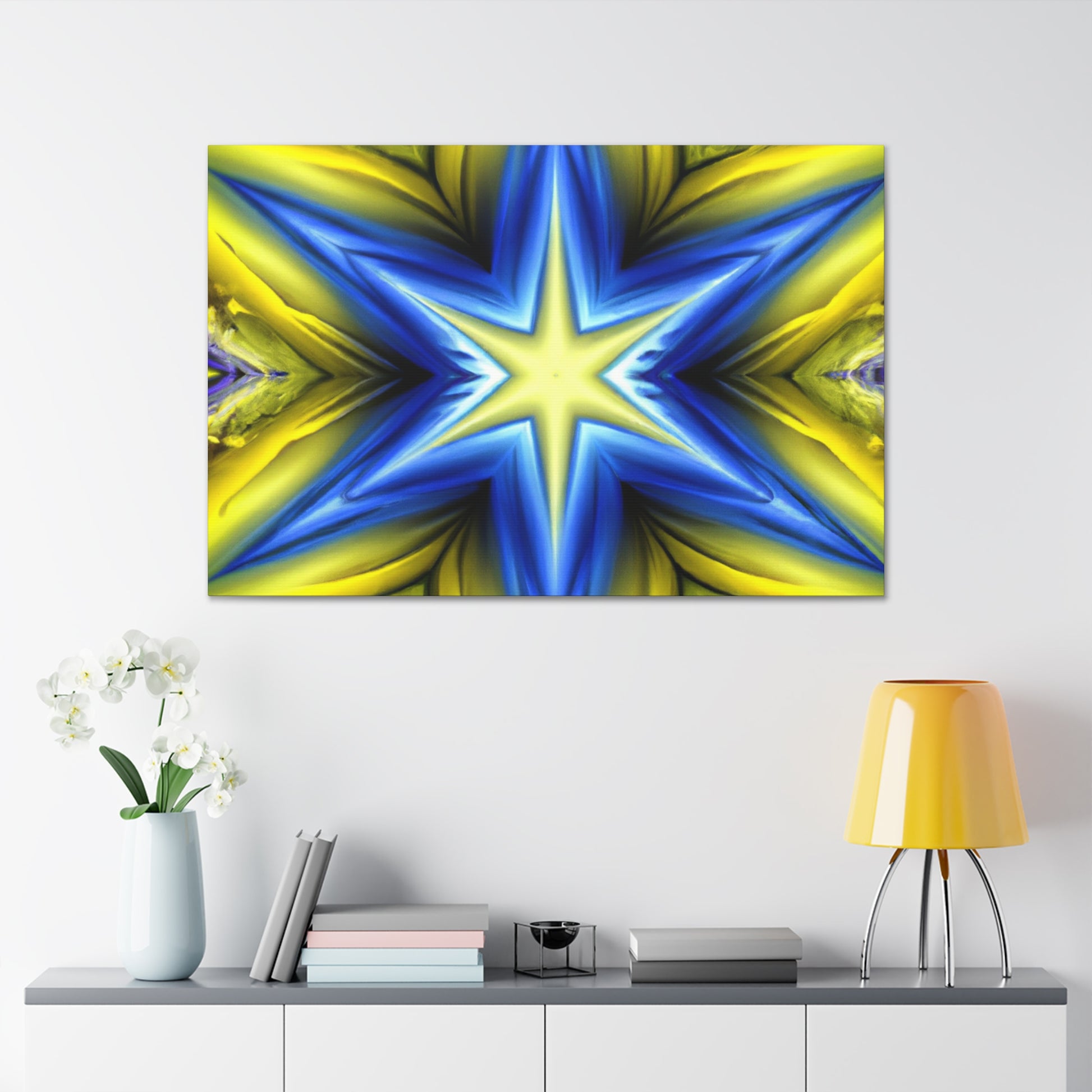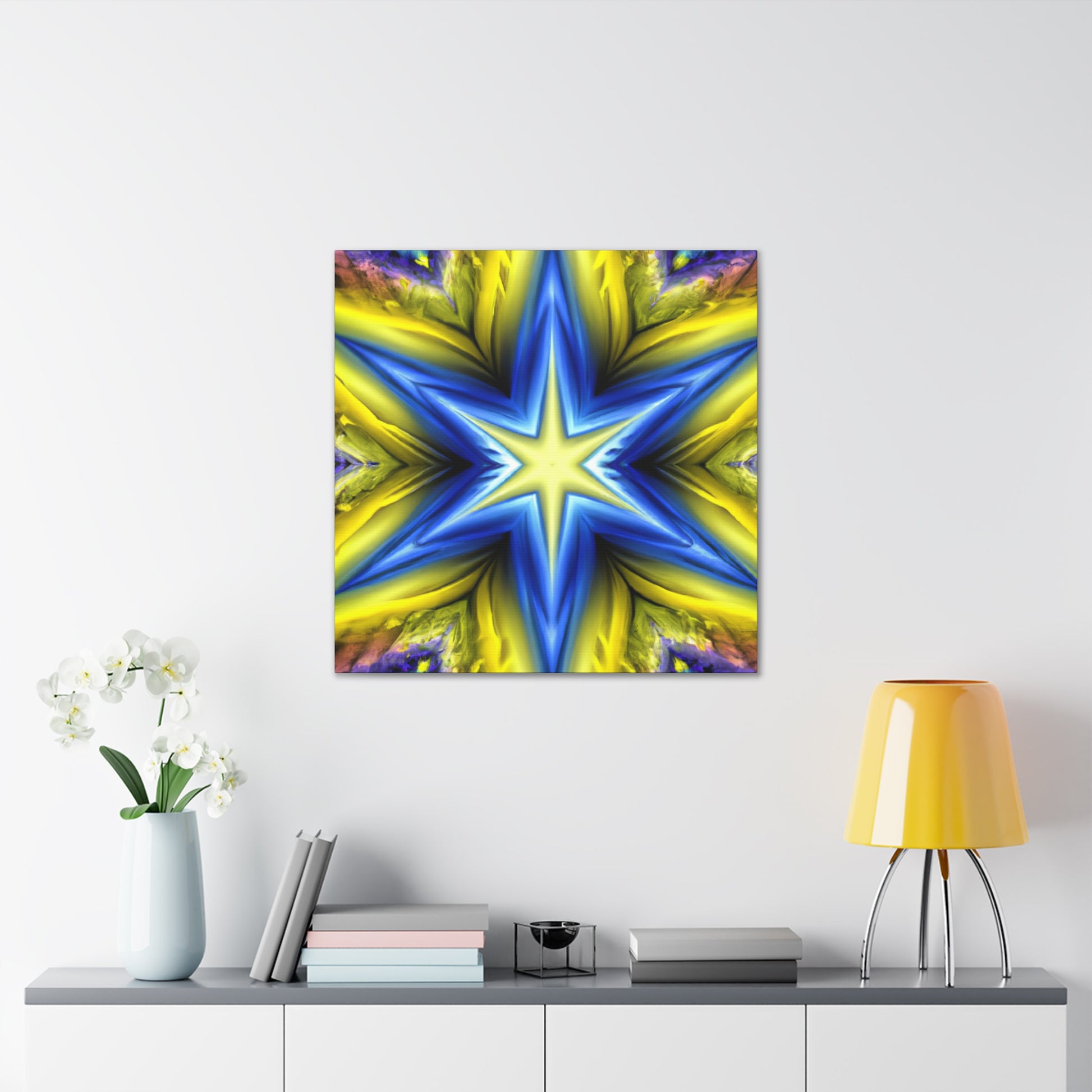 This magnificent canvas of Trippy Stars, Kaleidoscope, Abstract, Digital Art brings vibrant colors and symmetrical patterns to any room. Custom printed to HD finish and ready to hang, your friends and family will adore the eye-catching look of this wall art! #trippystars #kaleidoscope #abstractart #digitalart #vibrantcolors #HD #wallart #roomdecor #magnificentart #canvas #symmetricalpatterns