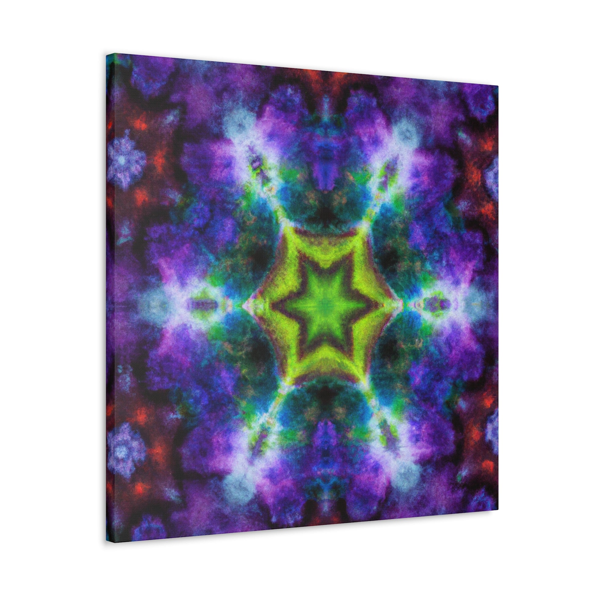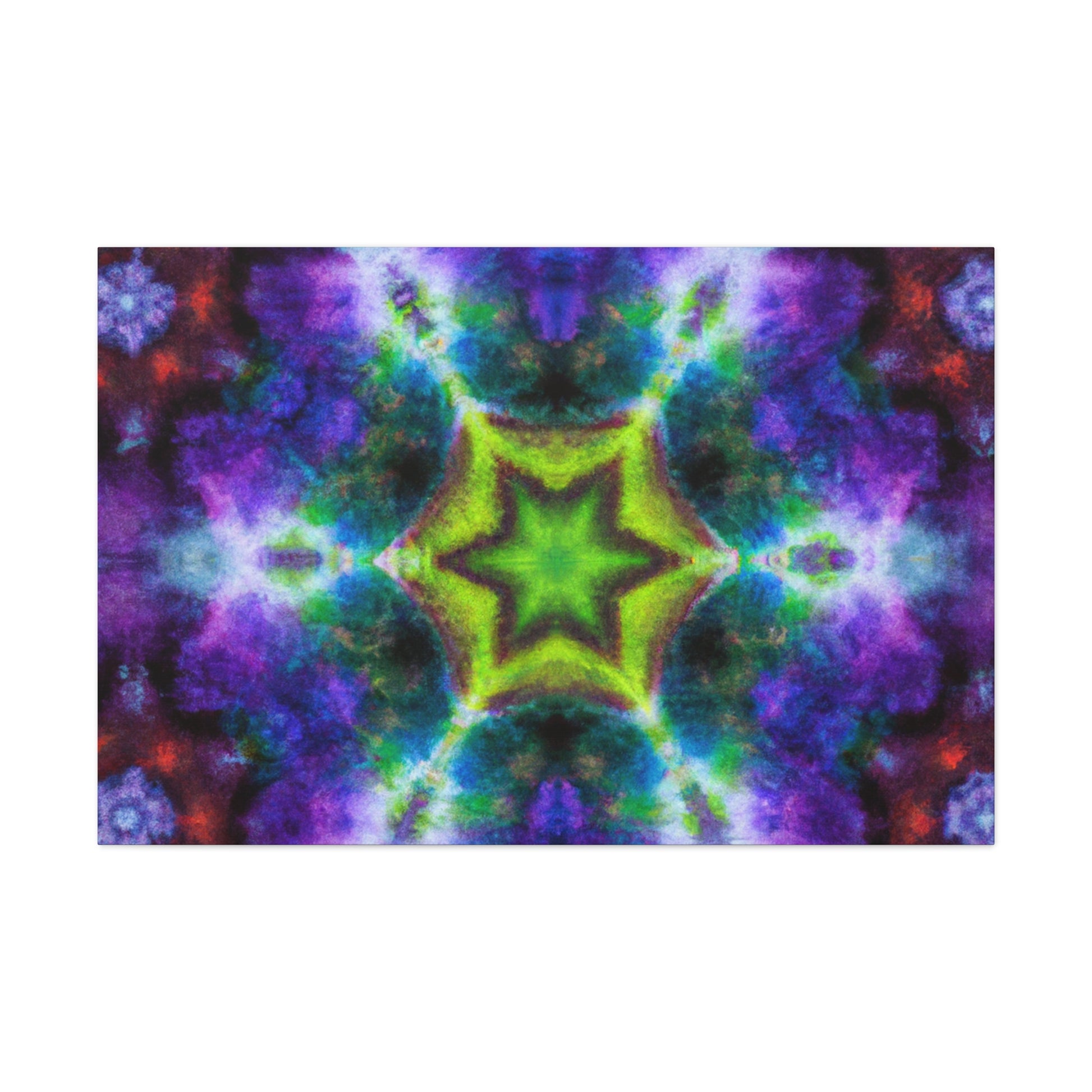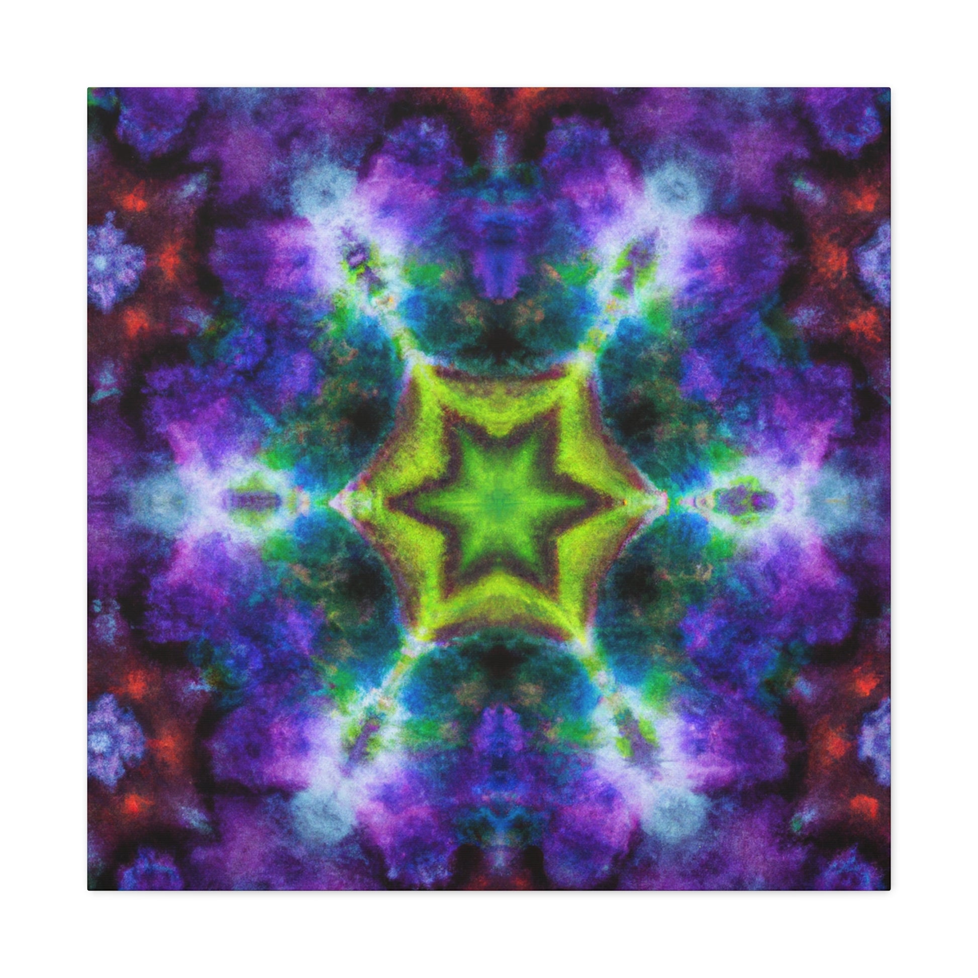 This one-of-a-kind canvas of digital artisty features colorful and trippy stars, kaleidoscope, and abstract shapes. With its bright, vibrant colors and HD design, this artwork is sure to draw attention in any home. The beautiful symmetrical canvas will take center stage in any room. #trippystars #kaleidoscope #abstractart #digitalart #vibrantcolors #HD #symmetrical #canvasart #wallart #artwork #homeart