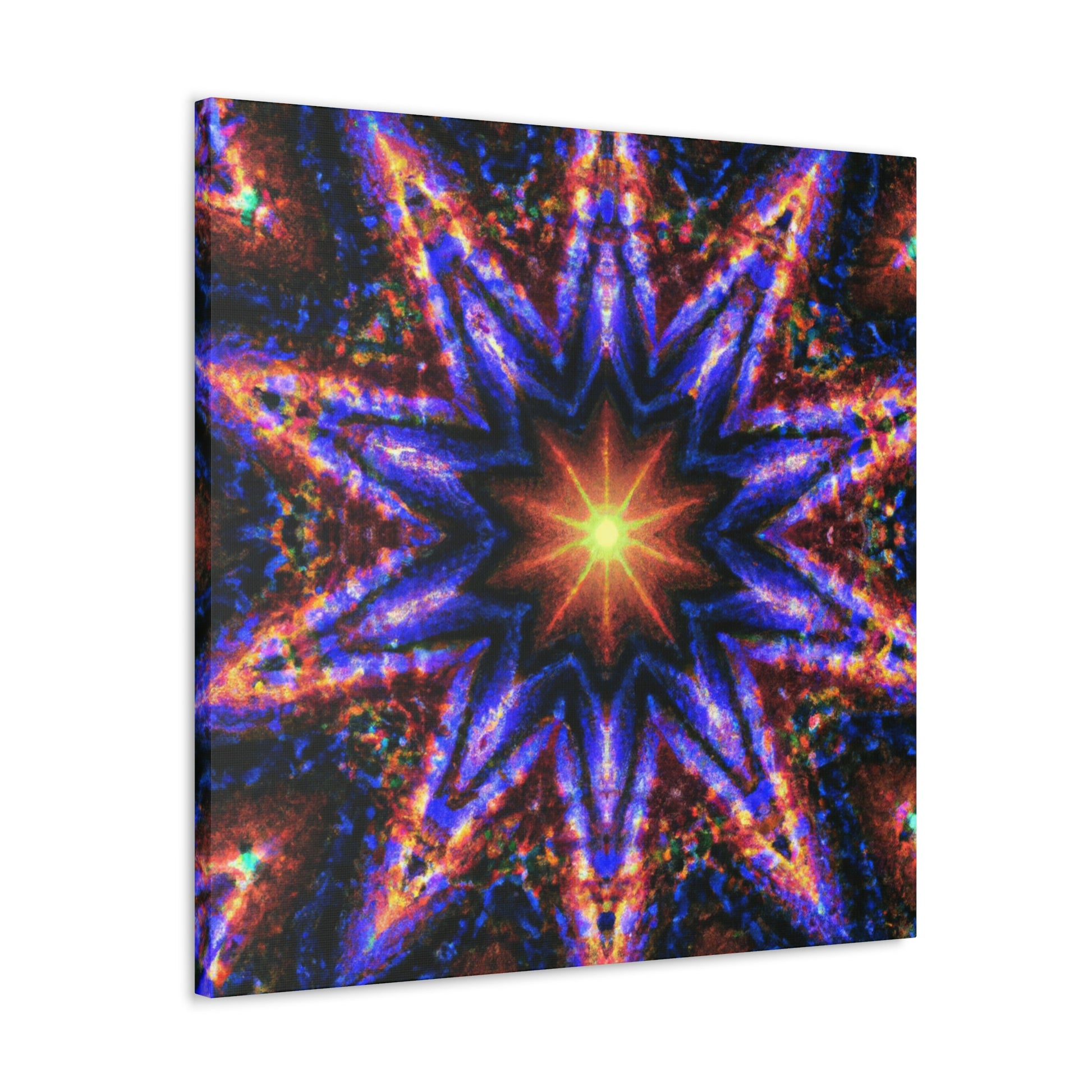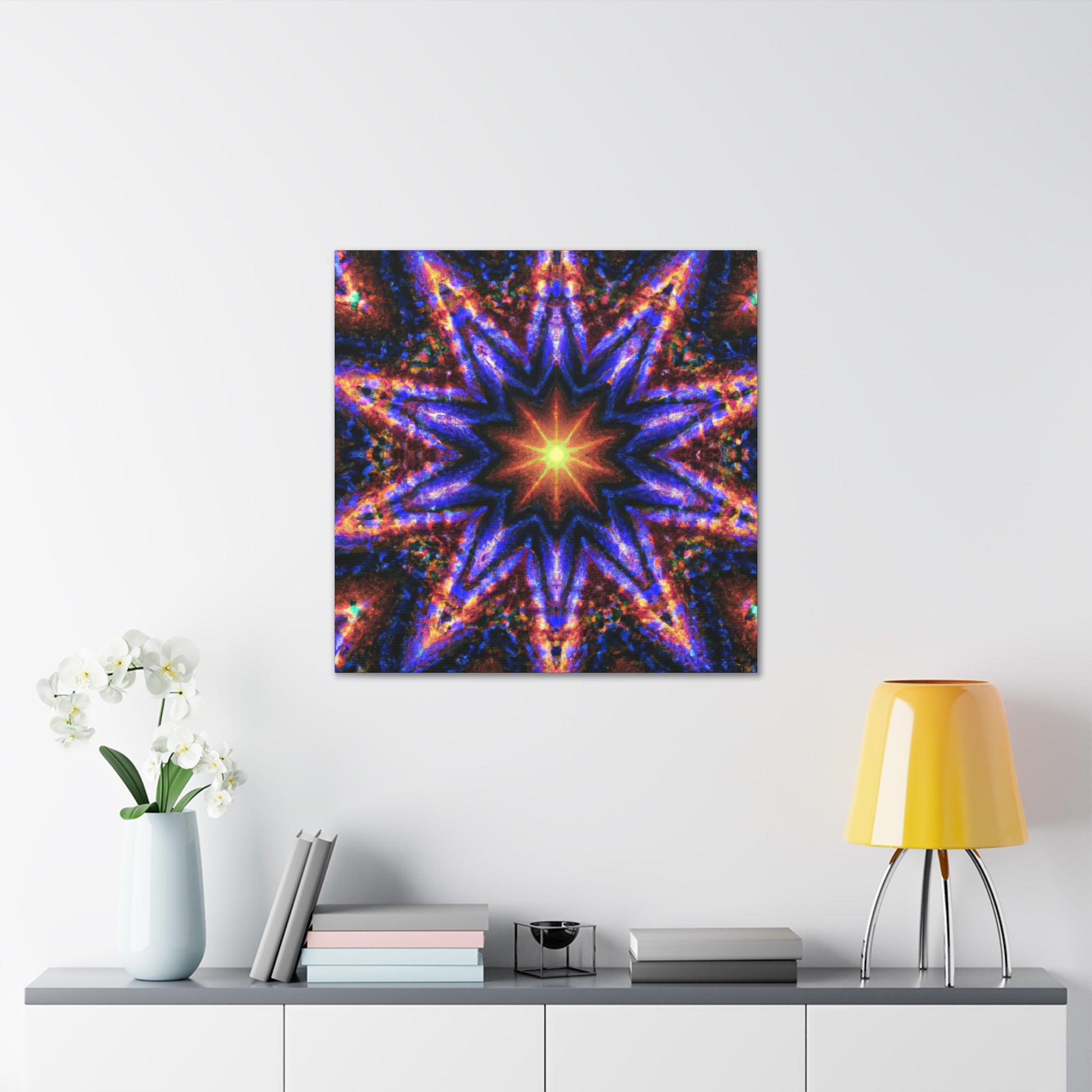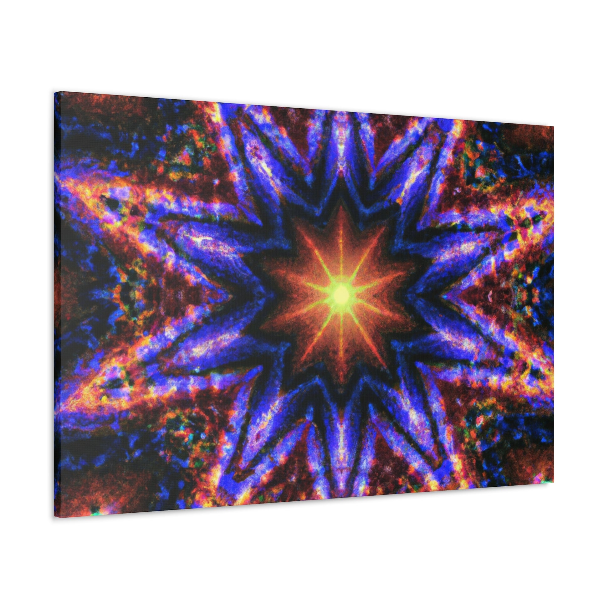 This gorgeous abstract art will add energy and color to any space! This canvas of Trippy stars, kaleidoscope, and symmetrical digital art is printed with vibrant colors in HD for great clarity. It will add an uplifting feel to any room! #canvas #art #digitalart #kaleidoscope #symmetry #stars #abstract #artdecor #trippy #vibrant #hd