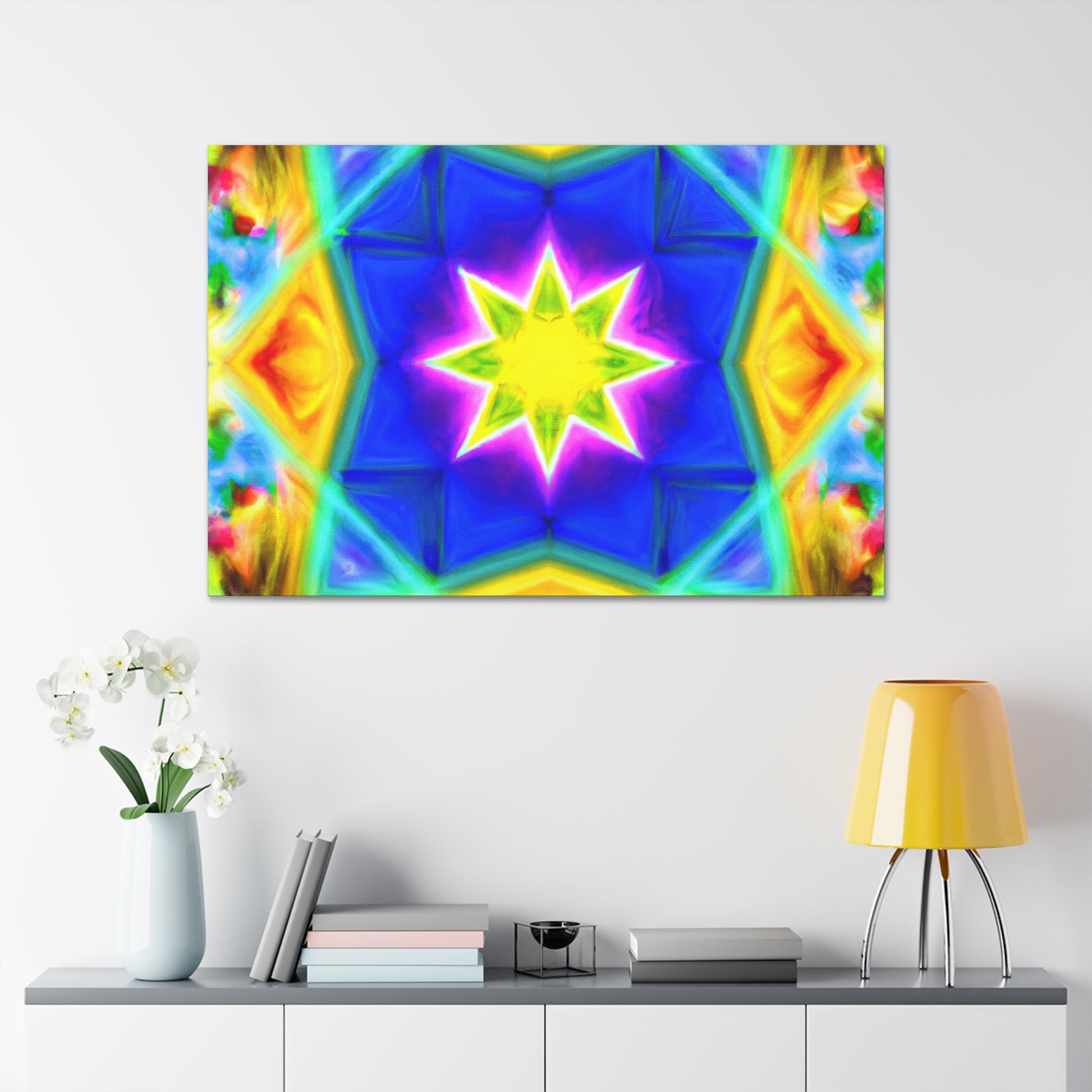 This canvas of Trippy Stars, Kaleidoscope, Abstract, Digital Art, and Vibrant Colors is made with High-Definition technology and Symmetrical lines, perfect for adding an accent to your wall. Enjoy bold colors that seem to come alive in this unique and statement piece for your home. #HDWallArt #AbstractArt #Kaleidoscope #TrippyStars #HighDefinition #VibrantColors #Symmetrical #DigitalArt #CanvasPrint #StatementPiece #HomeDecor