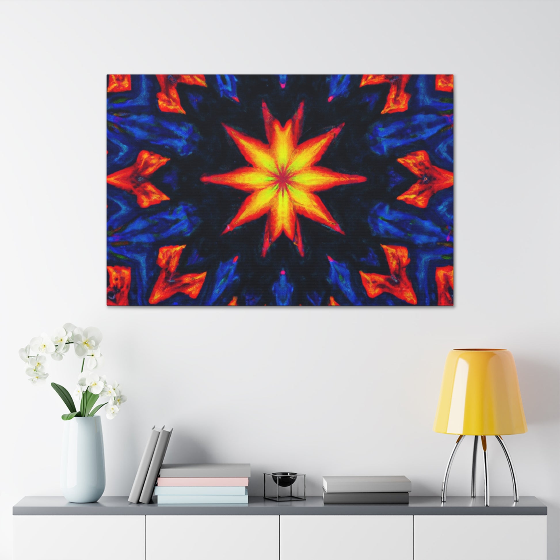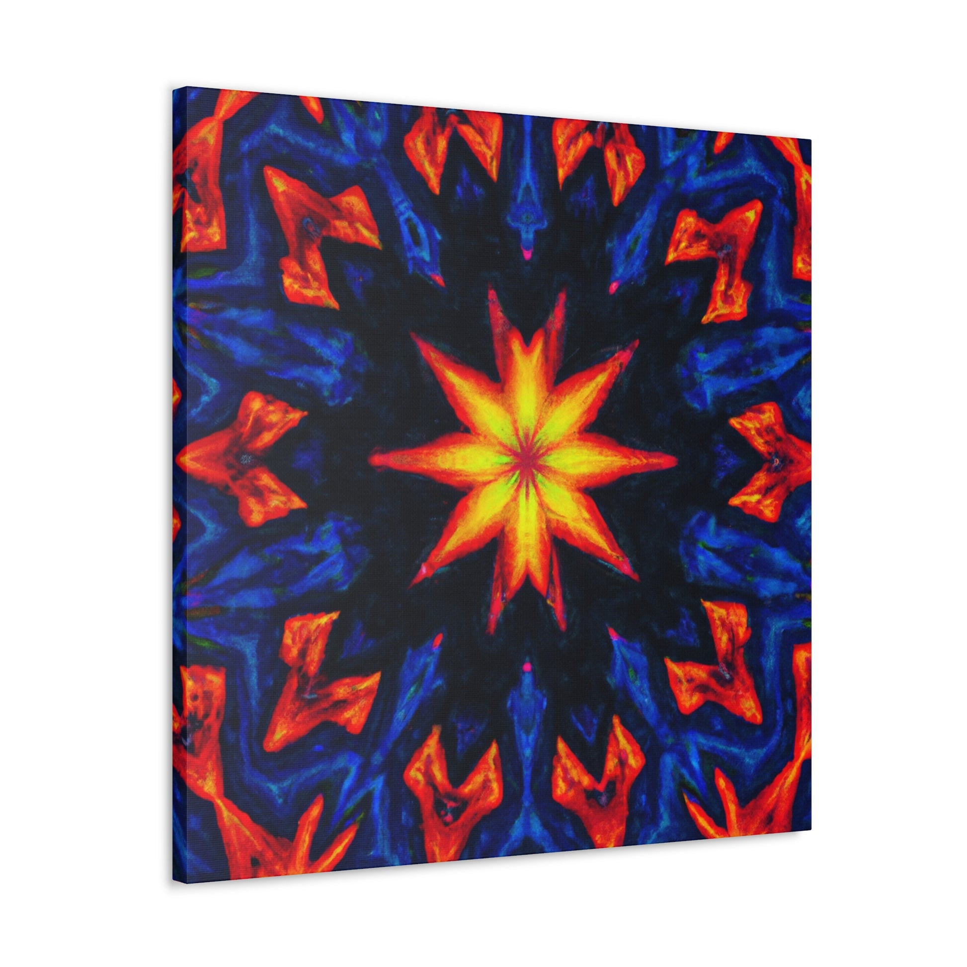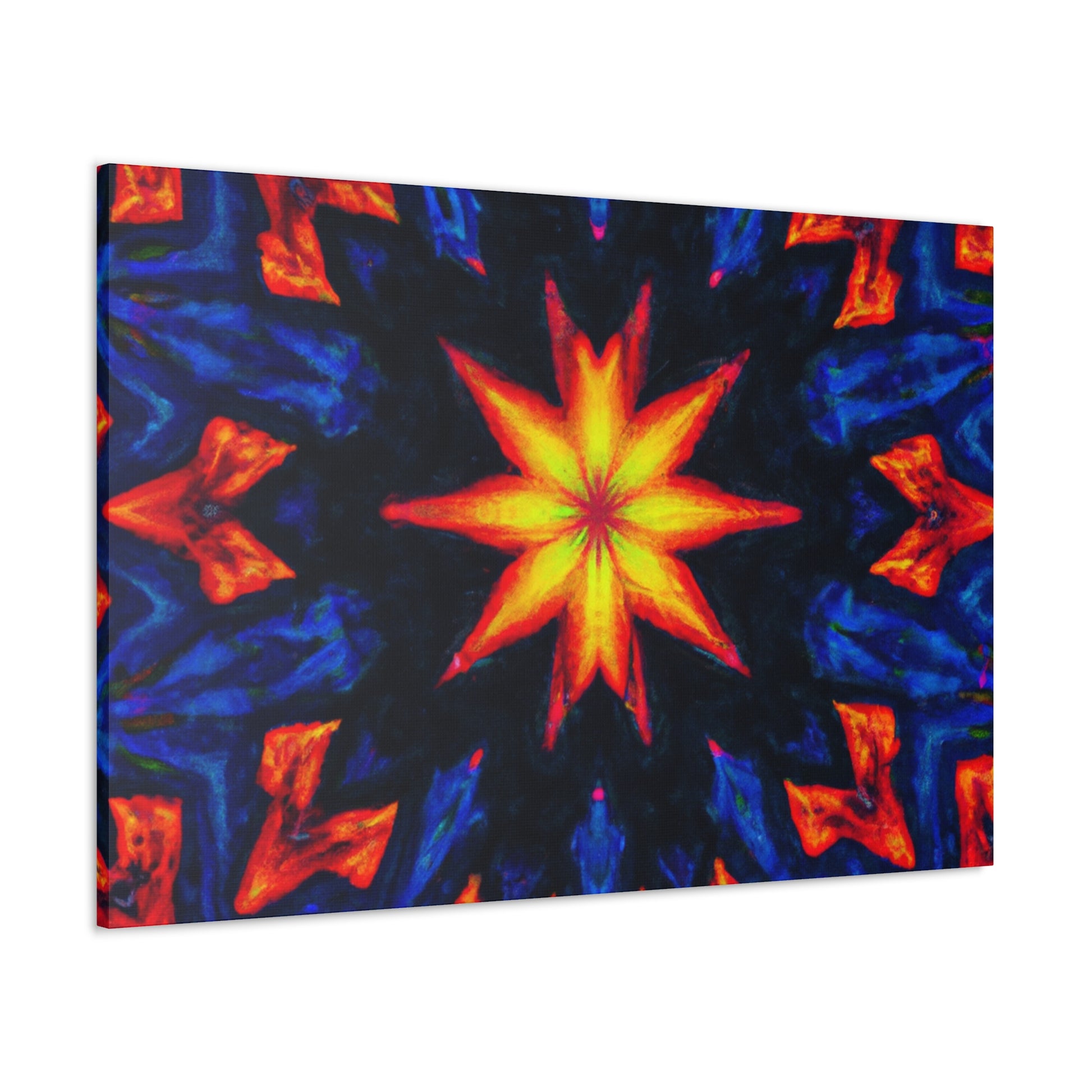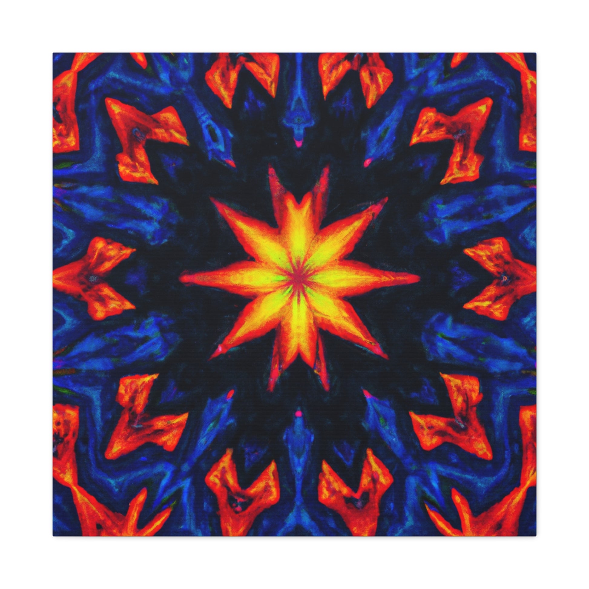 This canvas art is an explosion of vibrant colors and unique design! Fun and trippy stars, a kaleidoscope of abstract designs and digital elements come together in startling symmetry, like nothing you've ever seen! Printed in vivid HD quality, this art is sure to complete any room. #vibrant #stars #kaleidoscope #abstract #digital #art #HD #symmetrical #unique #home #style