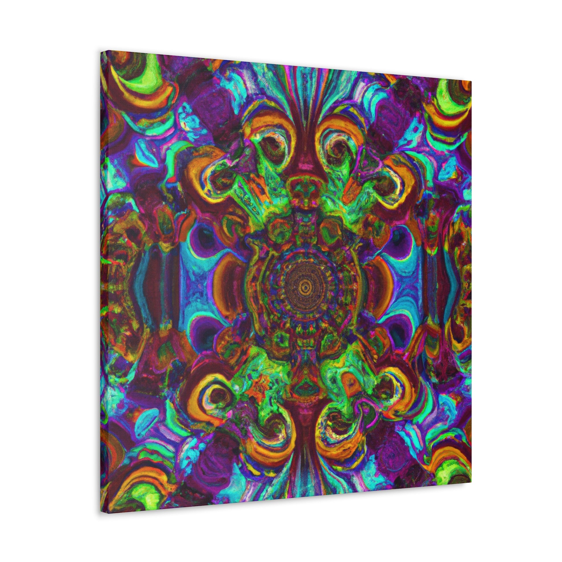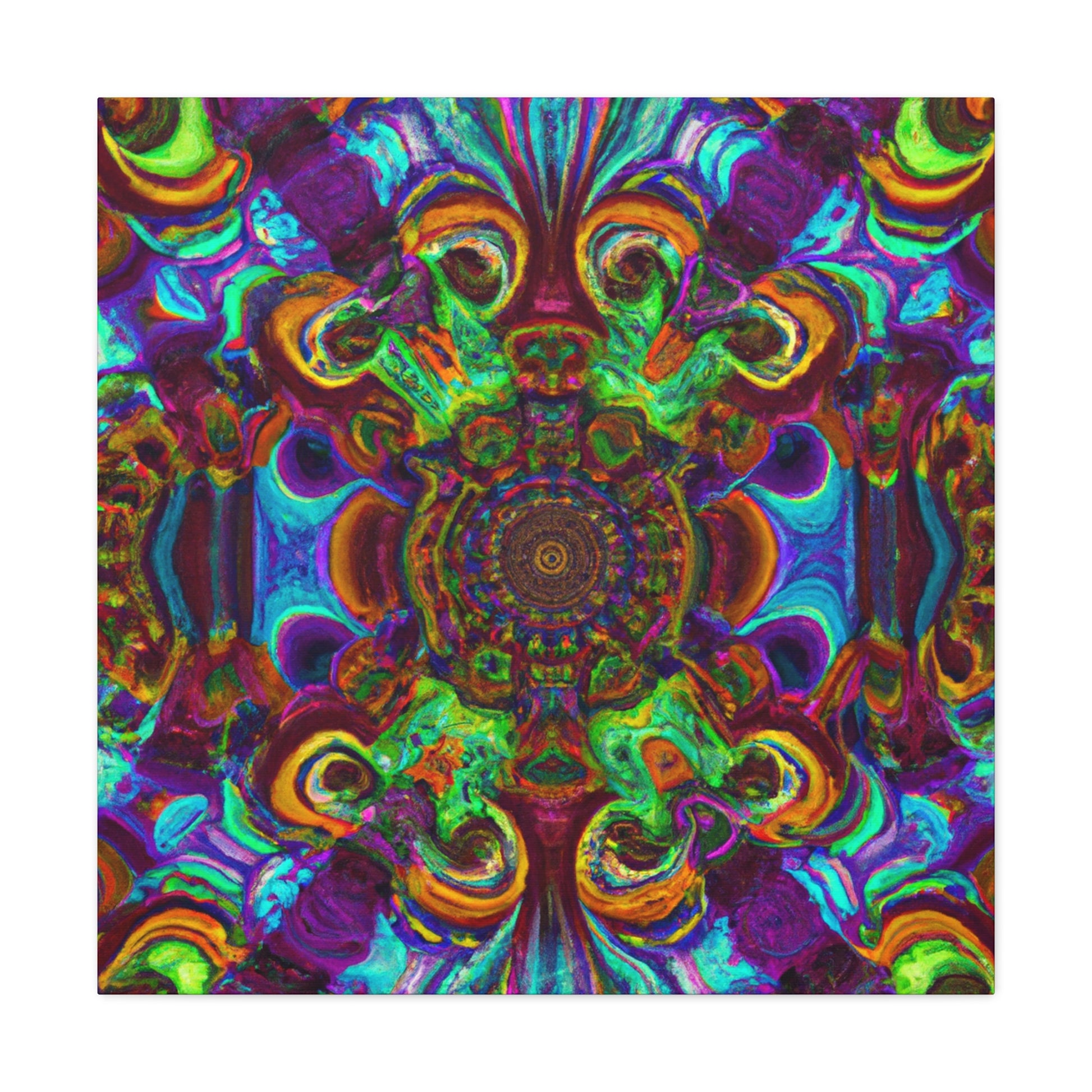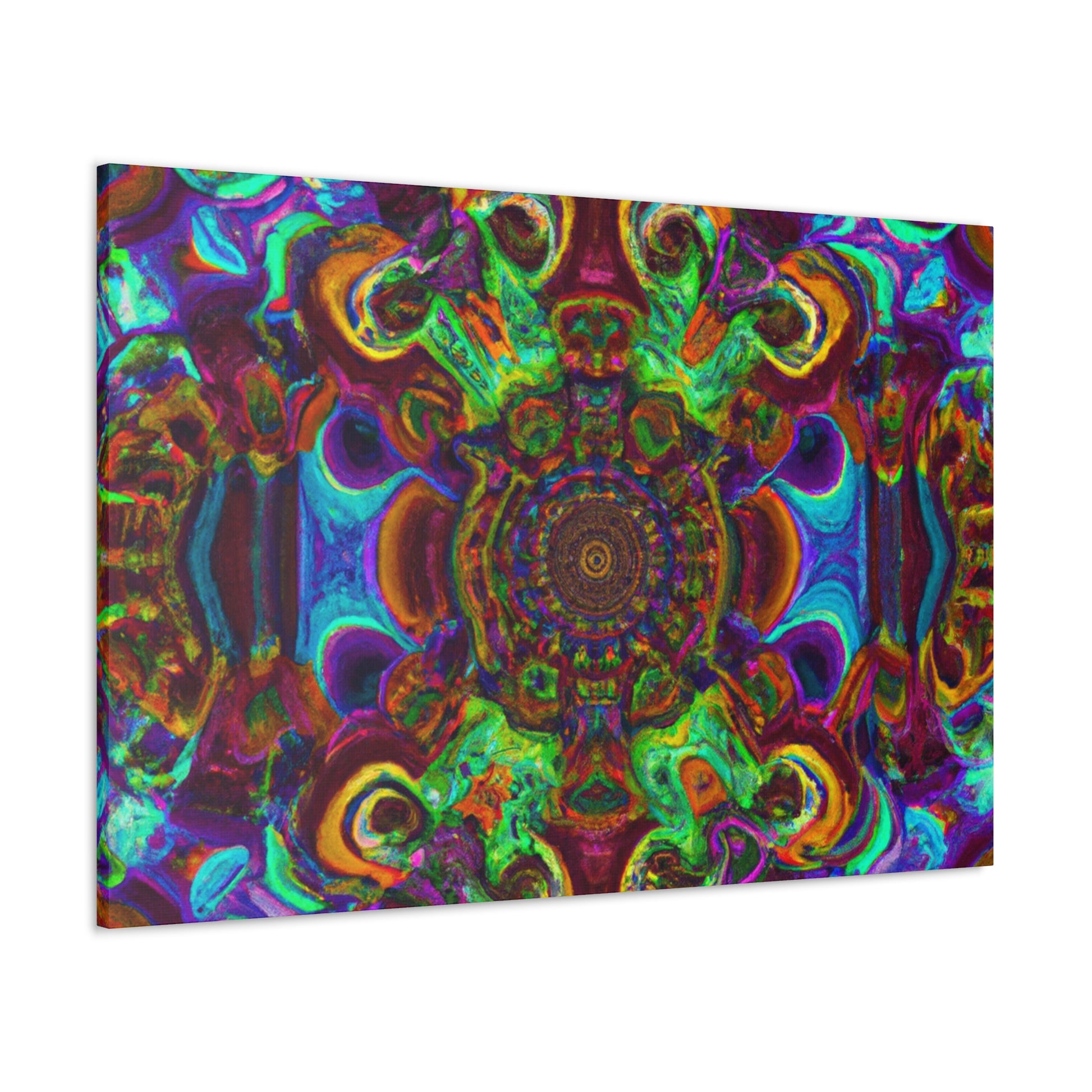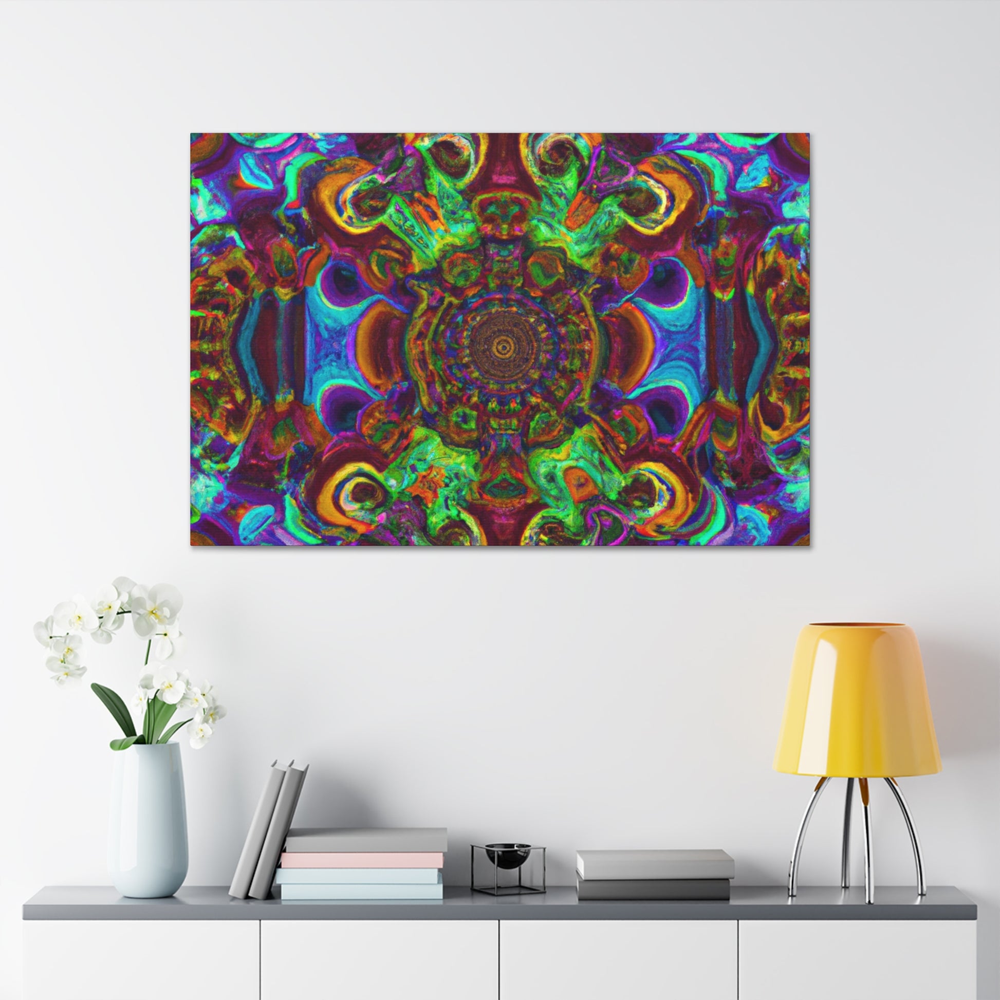 This vibrant and unique canvas art creates a trippy kaleidoscope of abstract digital art with 3D lines and a mix of psychedelic colors. Dazzle your guests with this one of a kind artwork, and bring a dynamic energy to your walls. #trippy #mushrooms #kaleidoscope #abstractart #digitalart #3Dlines #canvasart #psychedelic #vibrantcolors #abstract #uniqueart