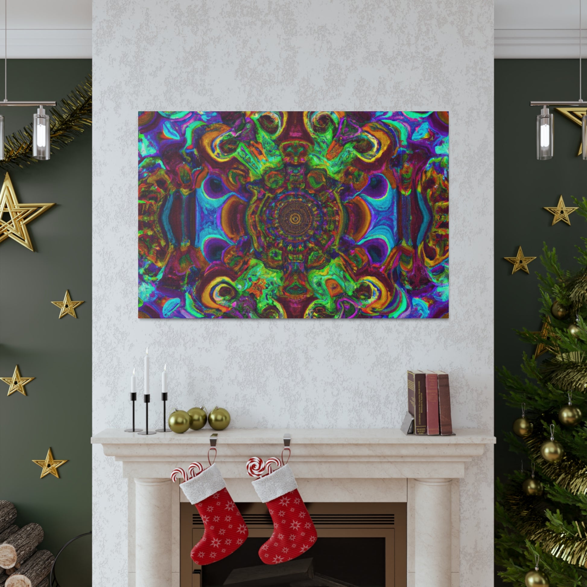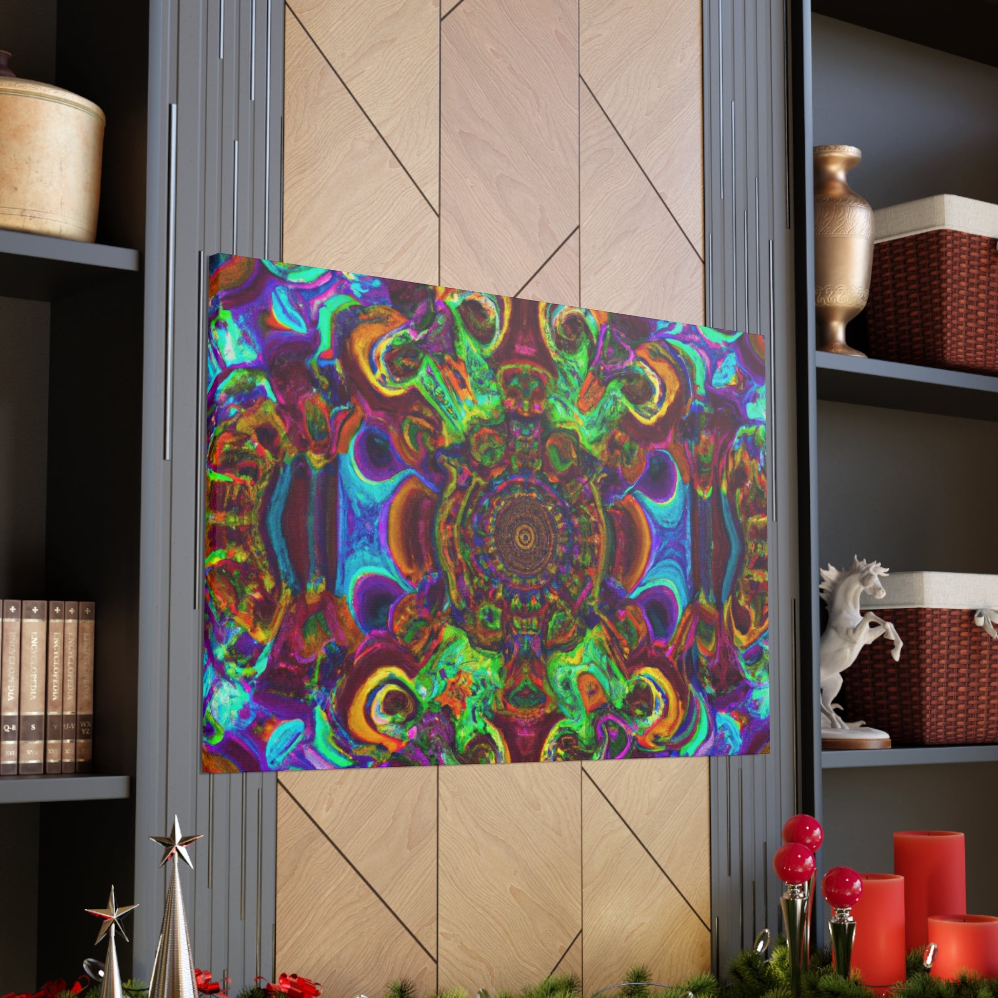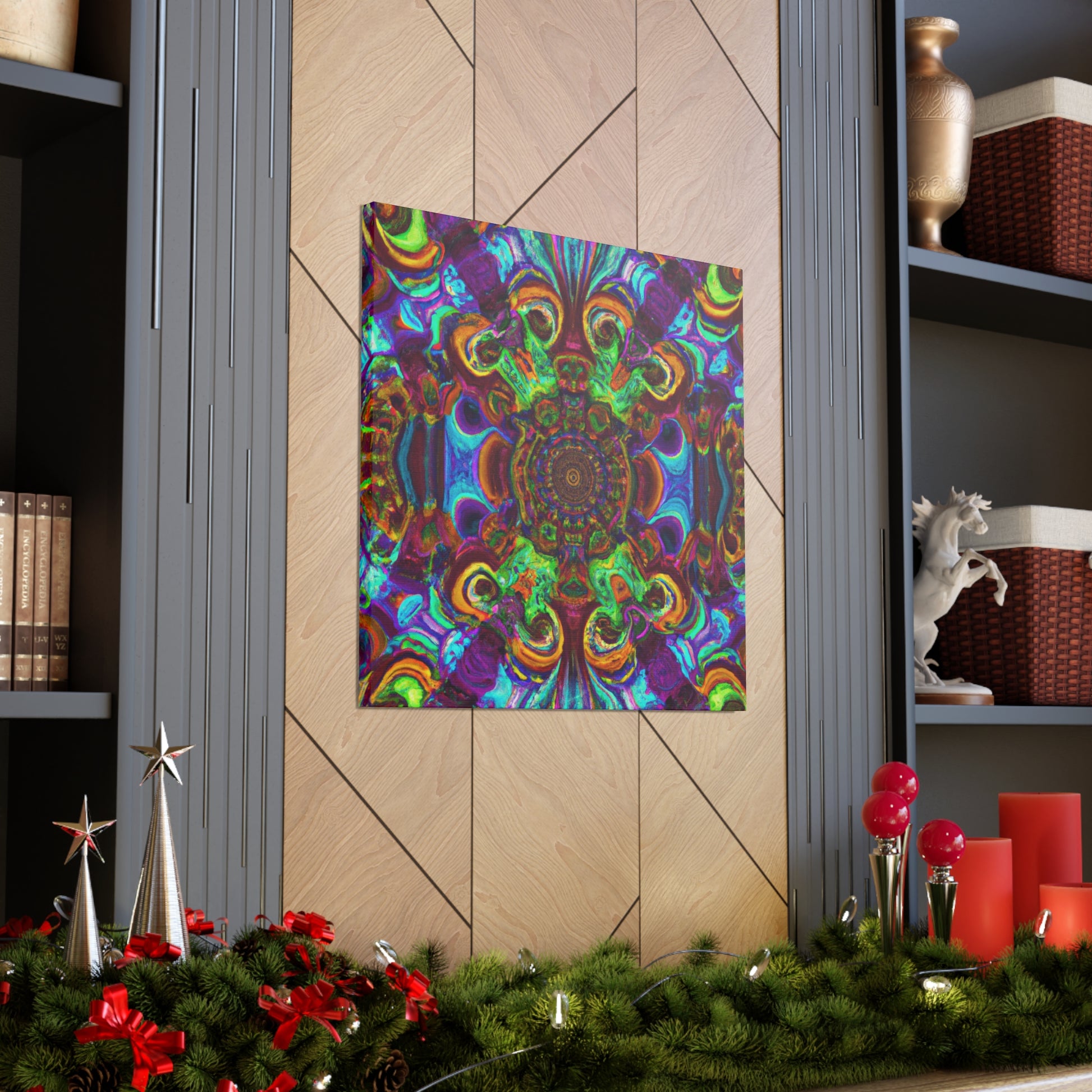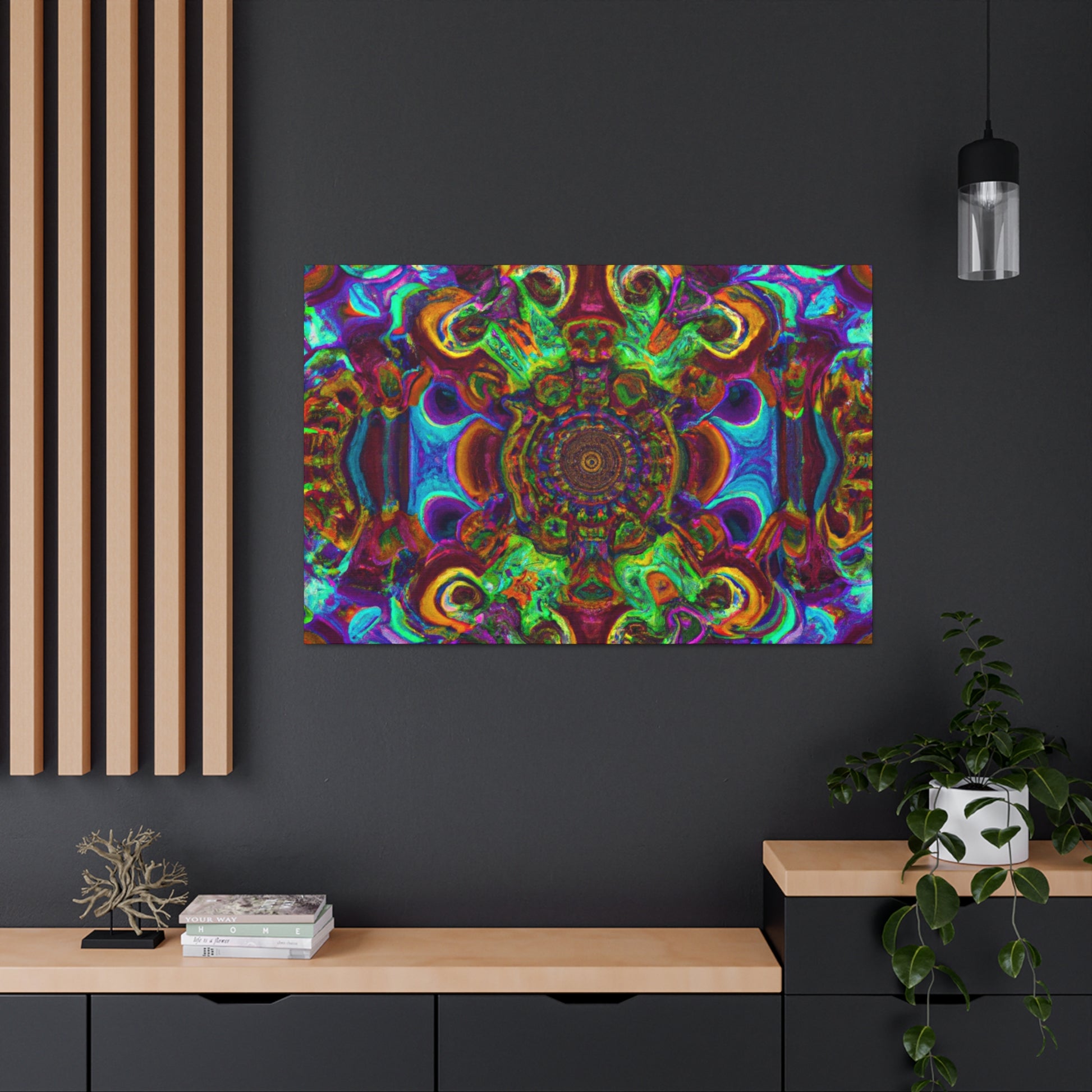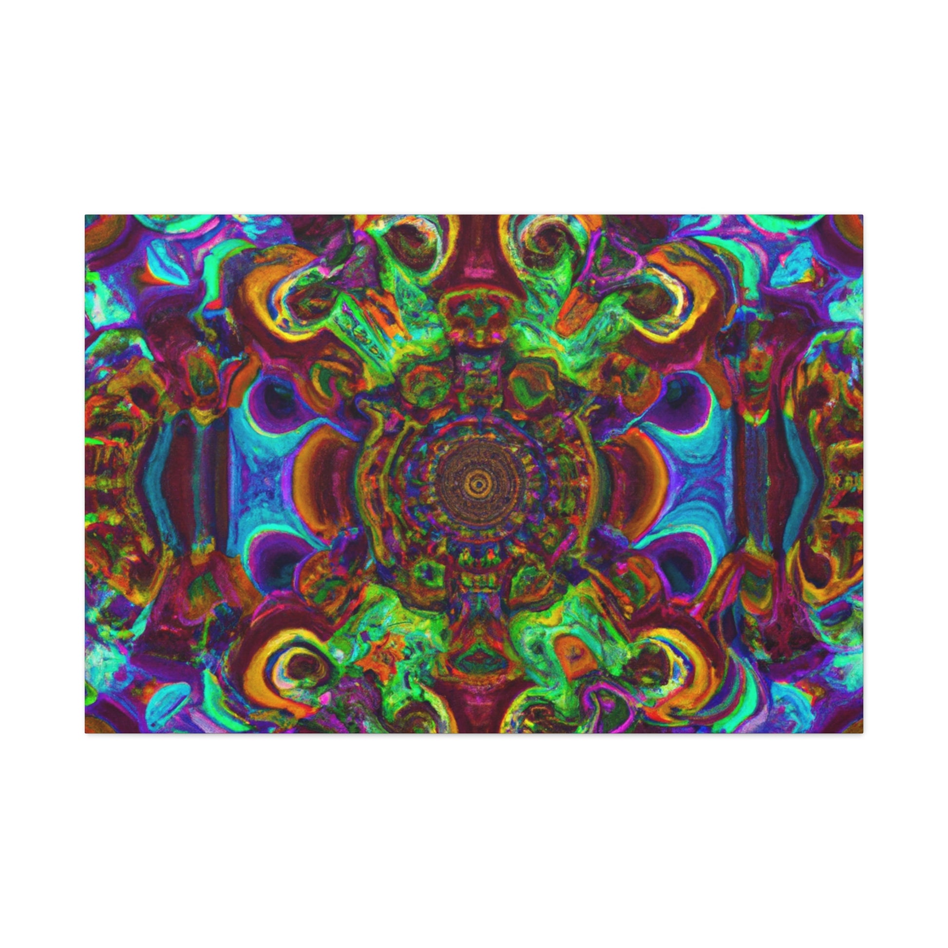 This vibrant and unique canvas art creates a trippy kaleidoscope of abstract digital art with 3D lines and a mix of psychedelic colors. Dazzle your guests with this one of a kind artwork, and bring a dynamic energy to your walls. #trippy #mushrooms #kaleidoscope #abstractart #digitalart #3Dlines #canvasart #psychedelic #vibrantcolors #abstract #uniqueart