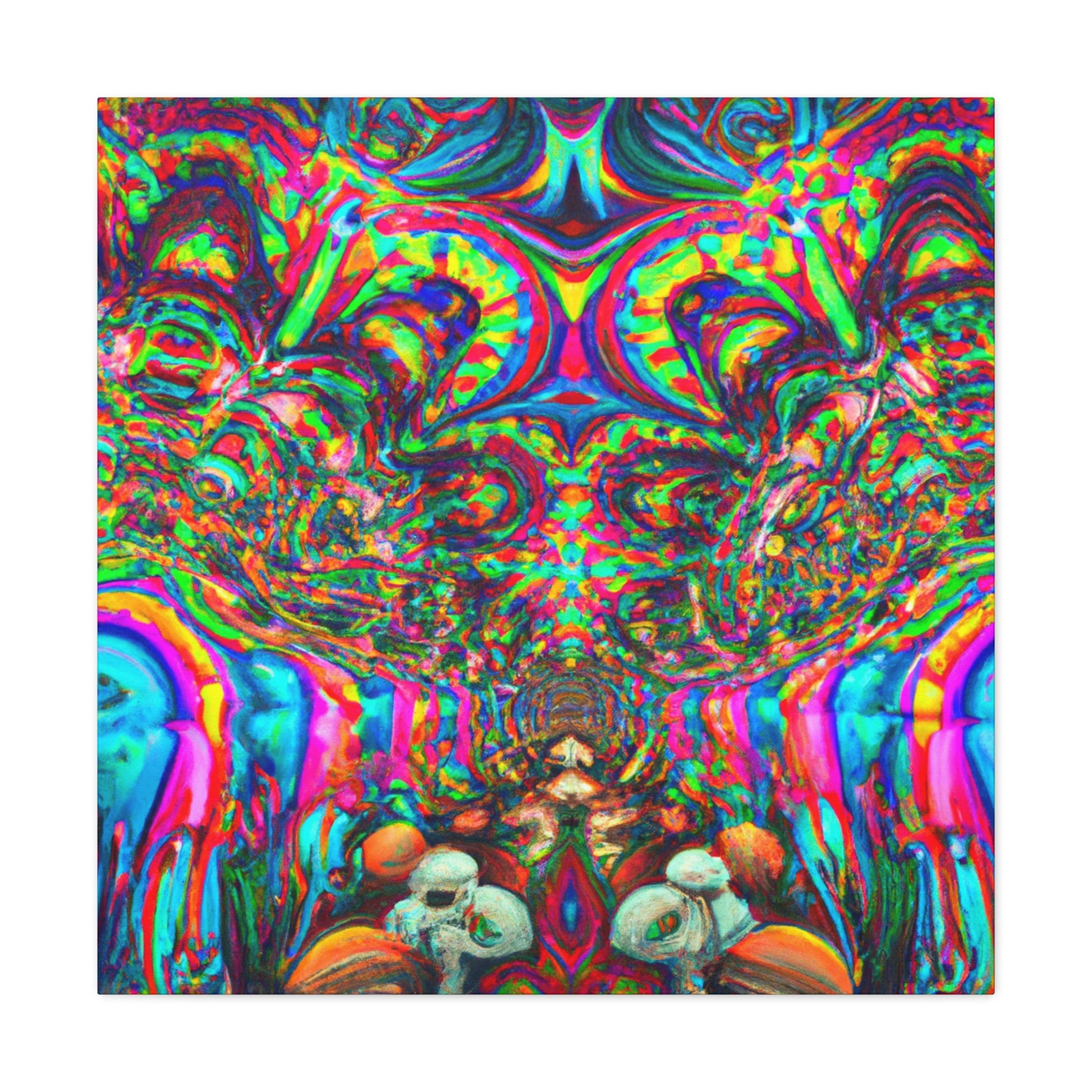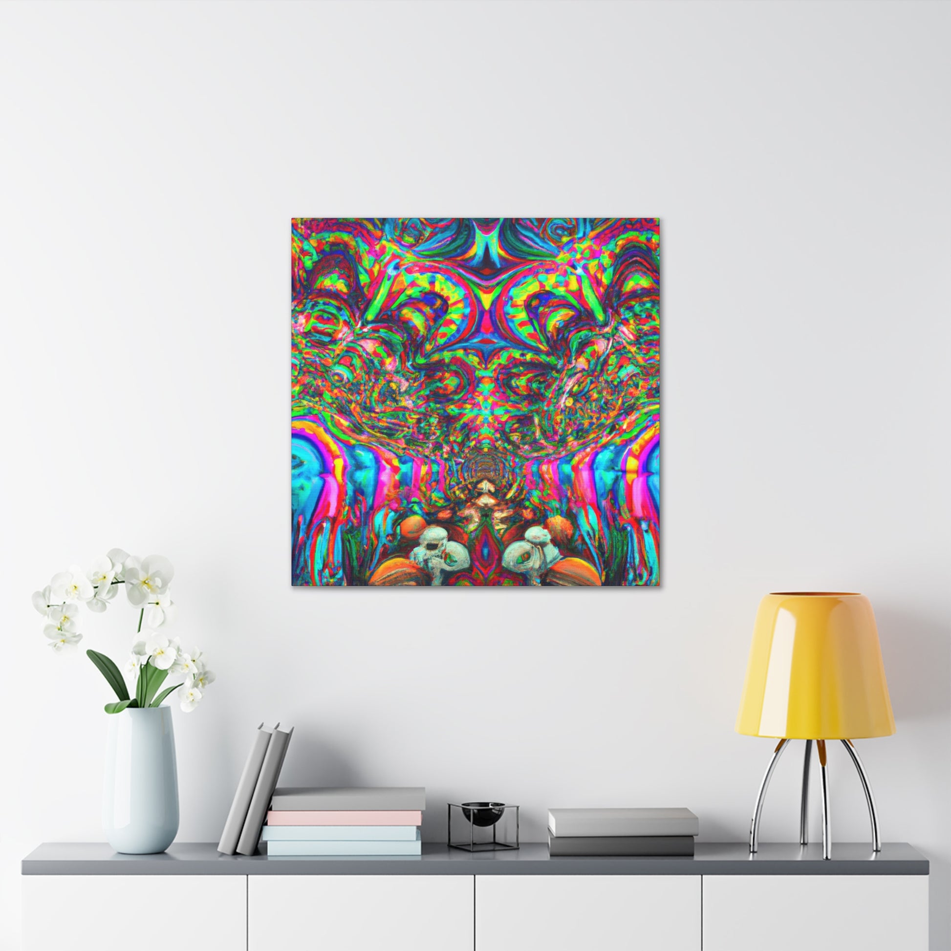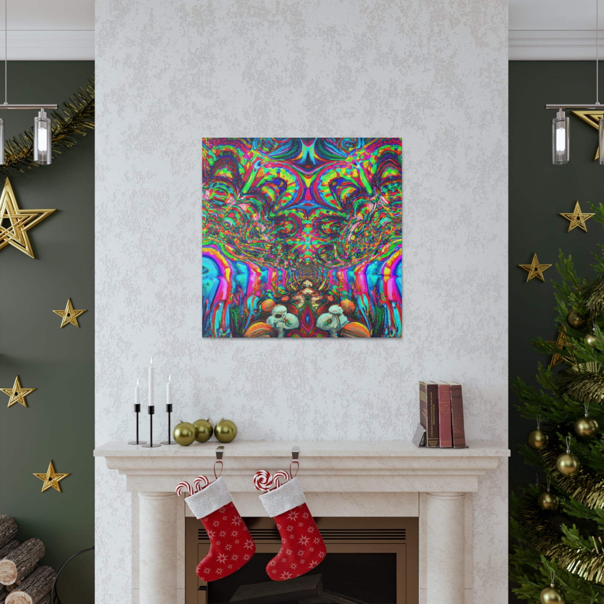 This digital art canvas creates a captivating scene of trippy mushrooms in psychedelic colors. Bold 3D lines offer an amplified perspective to the kaleidoscope-like design, while abstract shapes wrap together to create a vivid splattering of vibrant hues and shapes. Vibrant and mesmerizing, this piece of art makes a bold statement and is sure to draw the attention of all who gaze upon it. #art #canvas #3Dlines #mushrooms #vibrant #abstract #psychedelic #digitalart #kaleidoscope #trippy #colorful