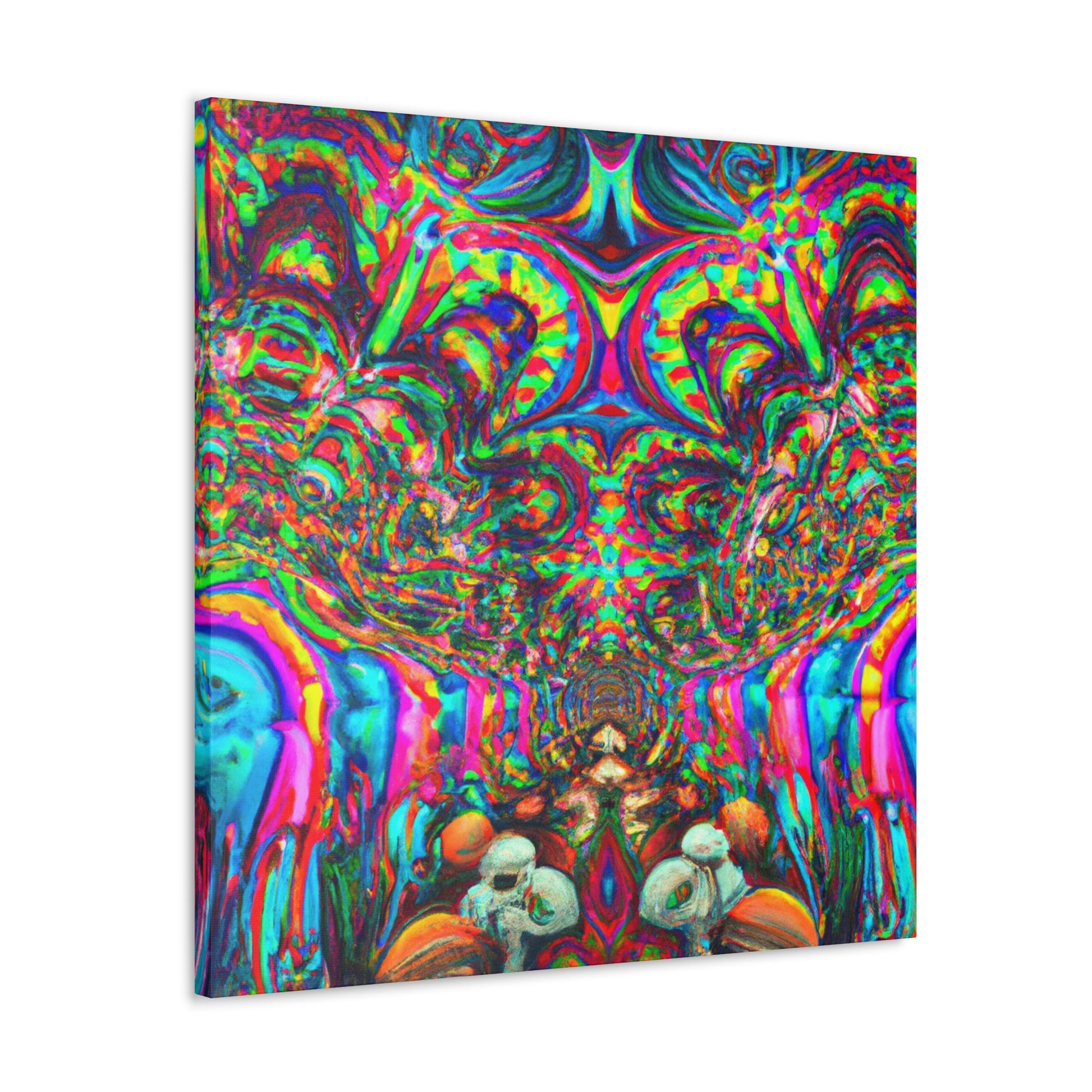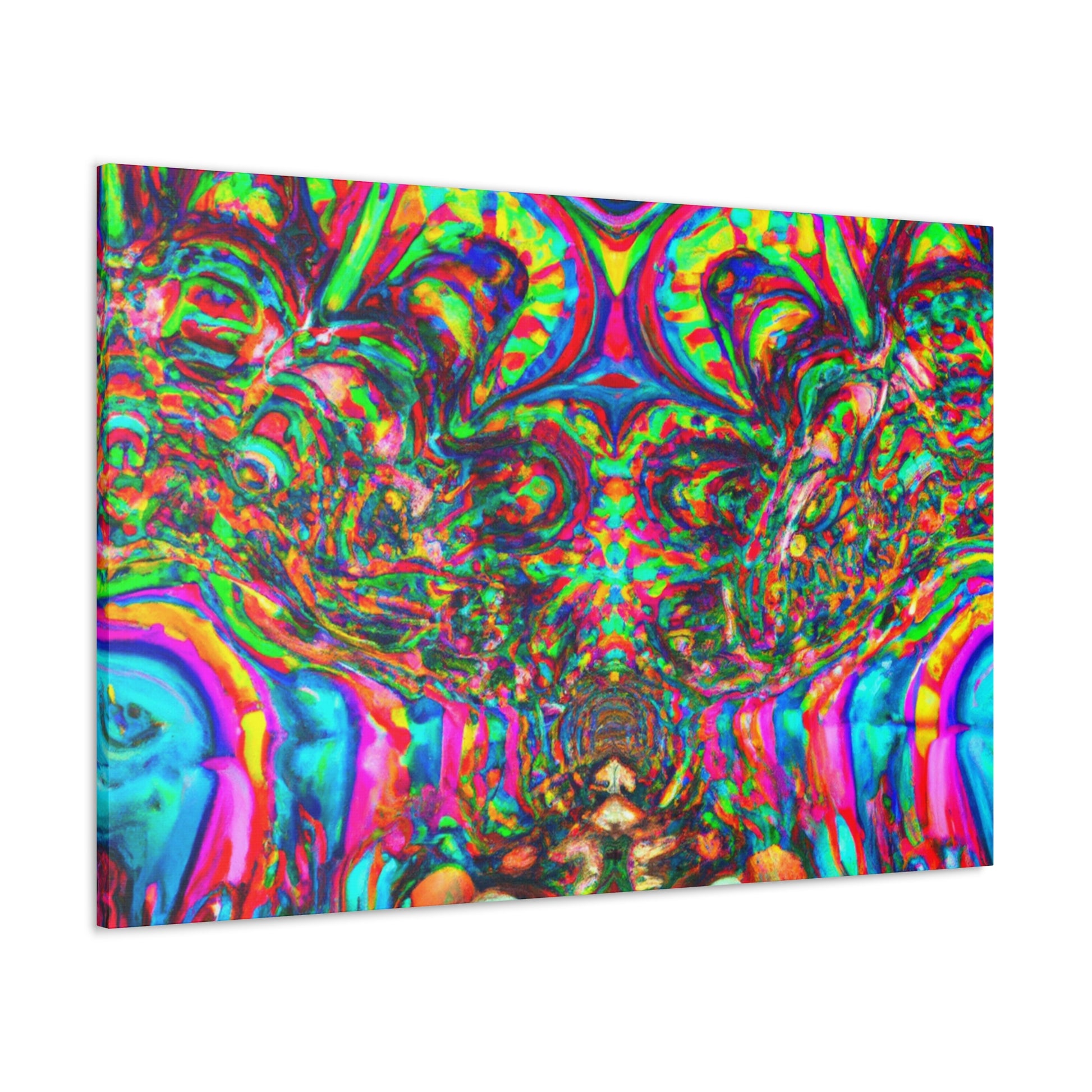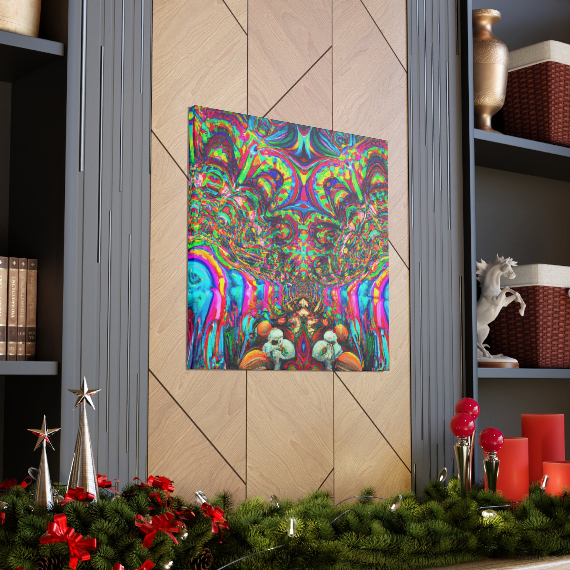 This digital art canvas creates a captivating scene of trippy mushrooms in psychedelic colors. Bold 3D lines offer an amplified perspective to the kaleidoscope-like design, while abstract shapes wrap together to create a vivid splattering of vibrant hues and shapes. Vibrant and mesmerizing, this piece of art makes a bold statement and is sure to draw the attention of all who gaze upon it. #art #canvas #3Dlines #mushrooms #vibrant #abstract #psychedelic #digitalart #kaleidoscope #trippy #colorful