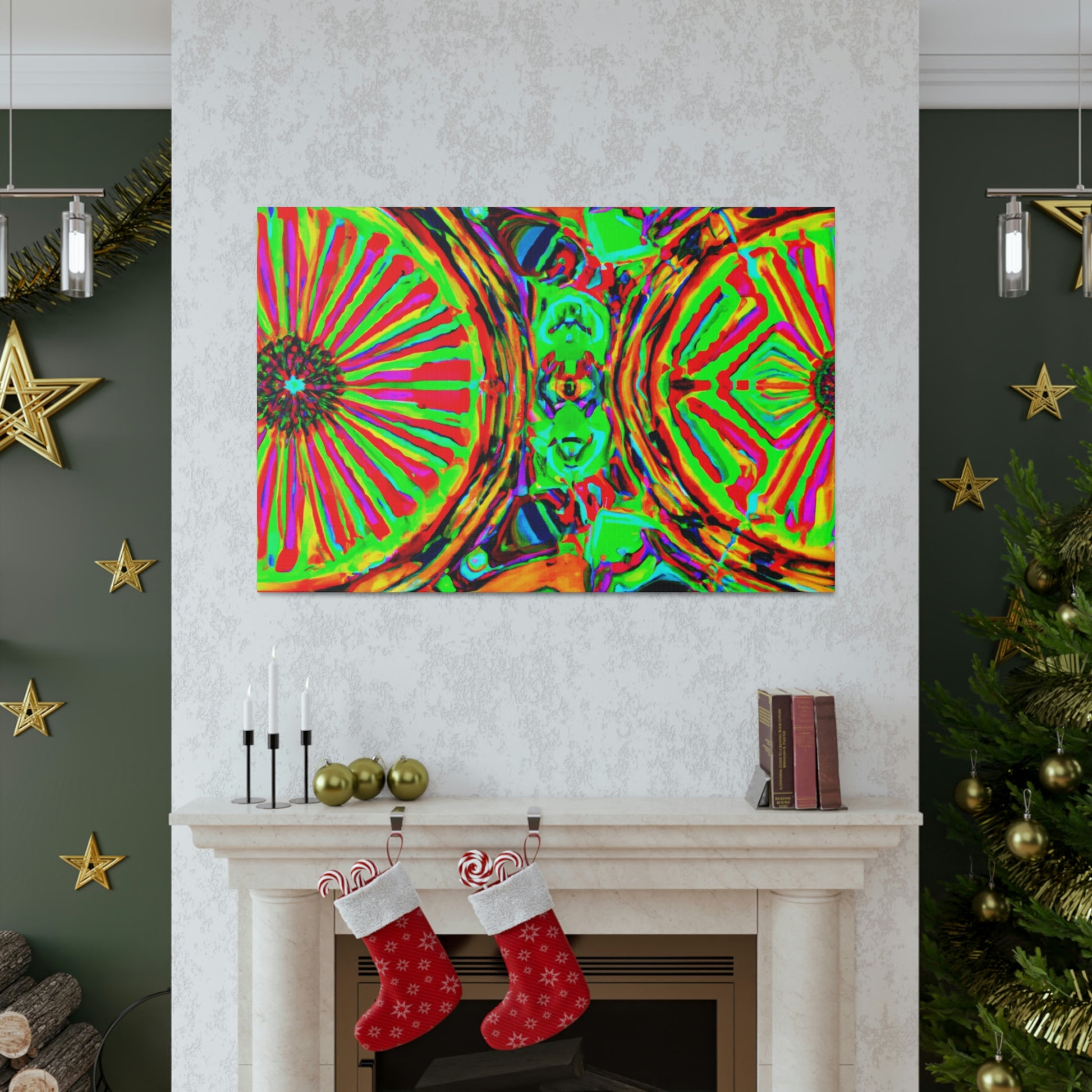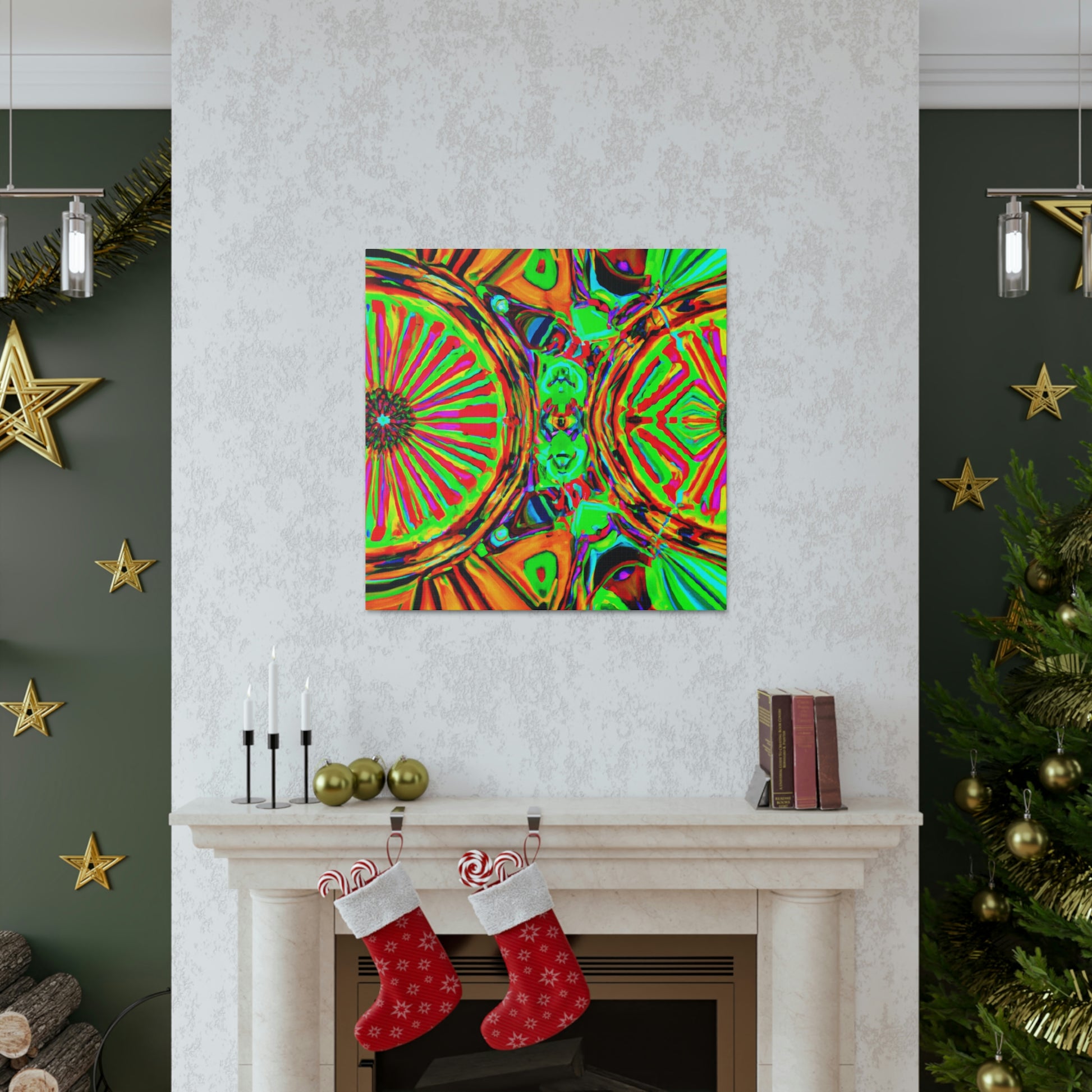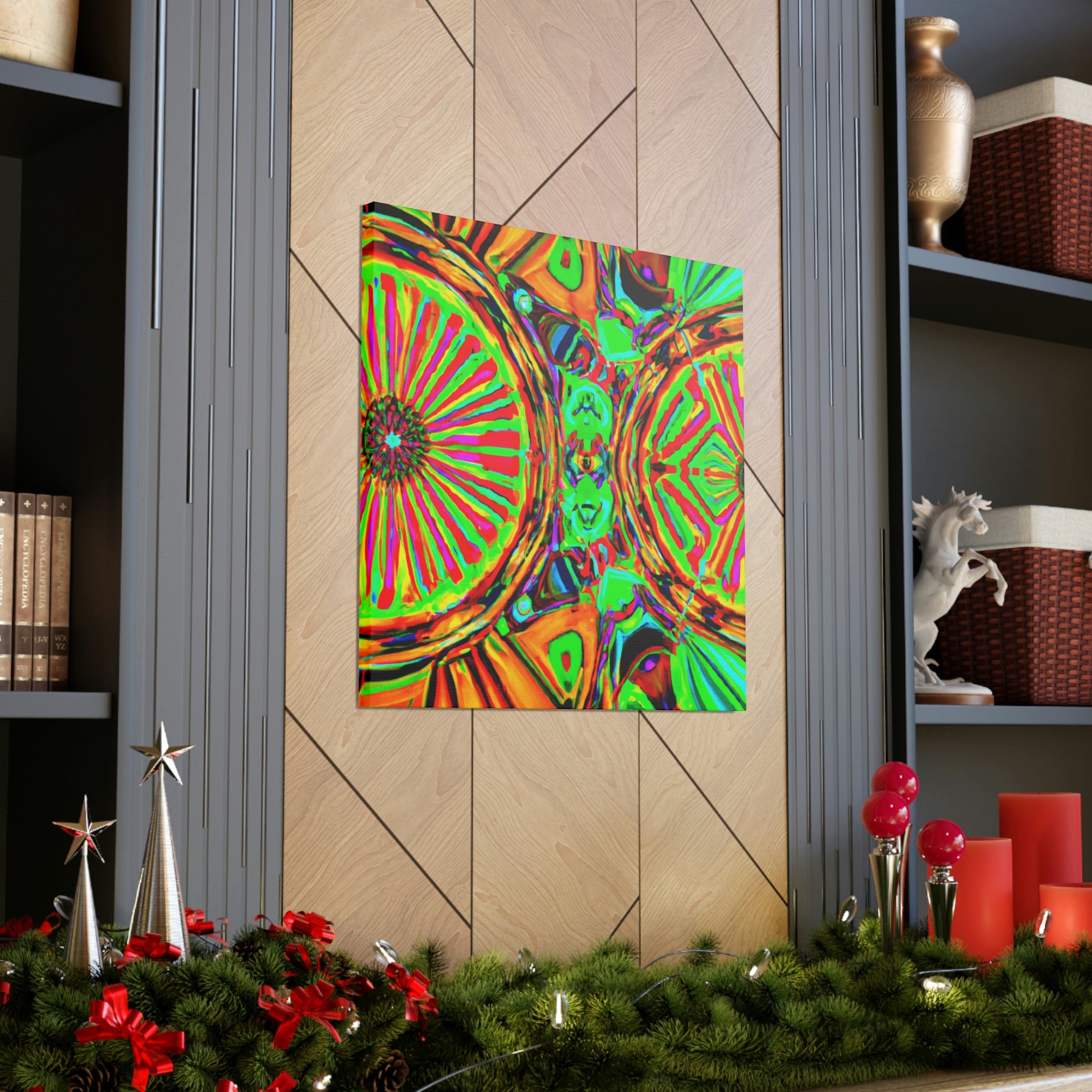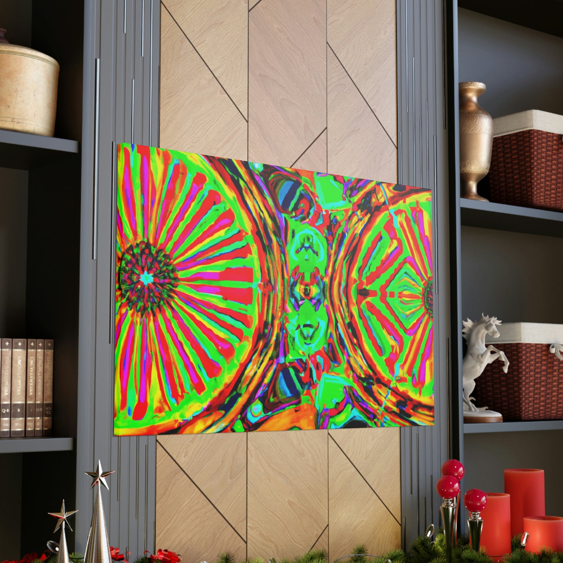 This gorgeous digital artwork features a trippy kaleidoscope of vibrant mushrooms framed on a canvas. The abstract lines form a mesmerizing 3D experience, creating a stunning visual piece for your home. Let this vibrant art invigorate your space with its one-of-a-kind combination of colors and shapes. #mushrooms #kaleidoscope #abstract#digitalart #3Dlines #vibrantcolors #canvasart #homedecor #vividart #AbstractPainting #statementart