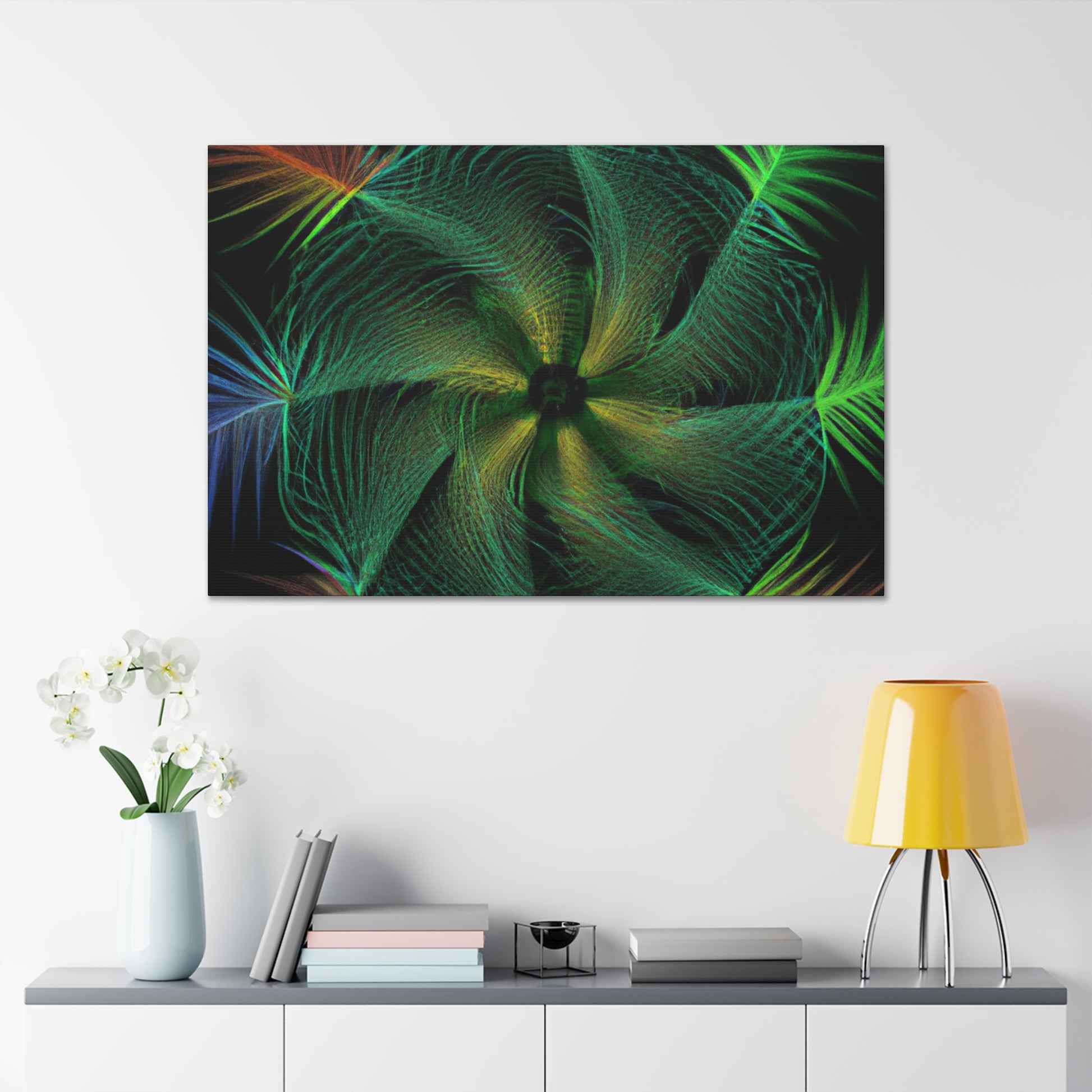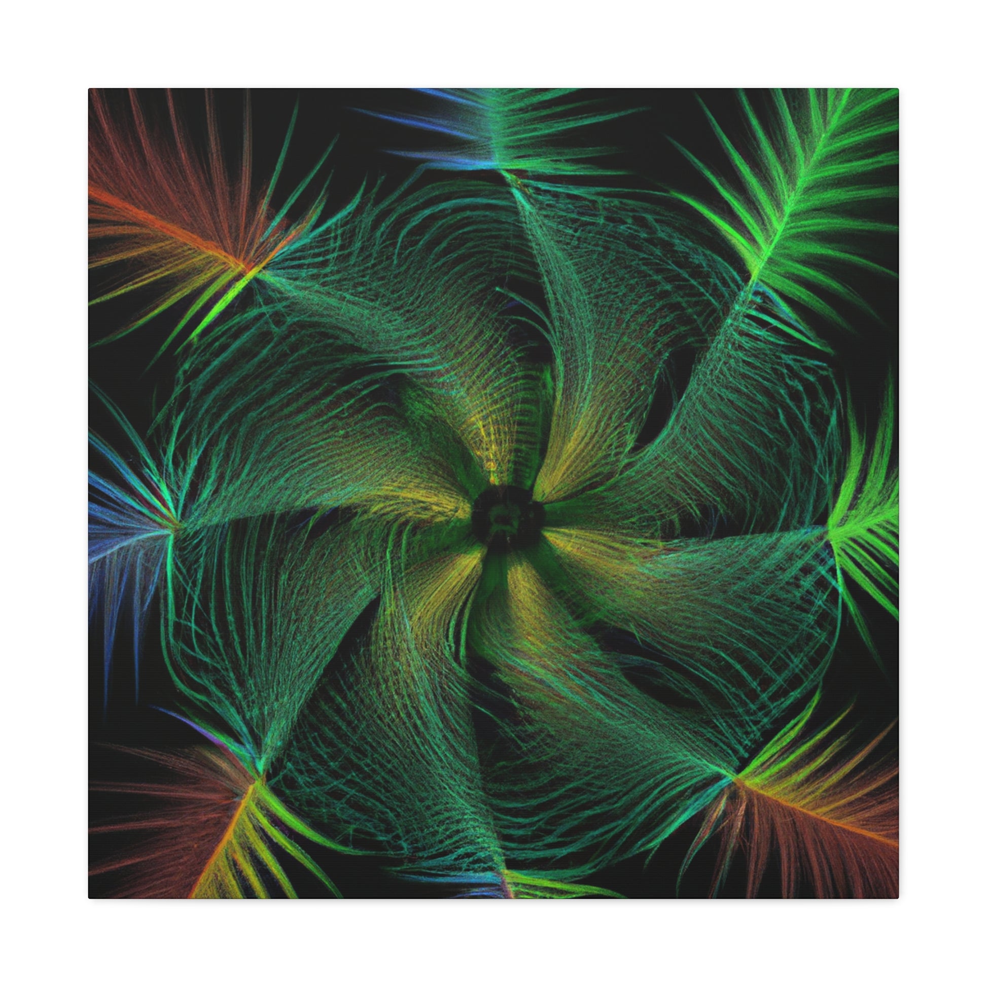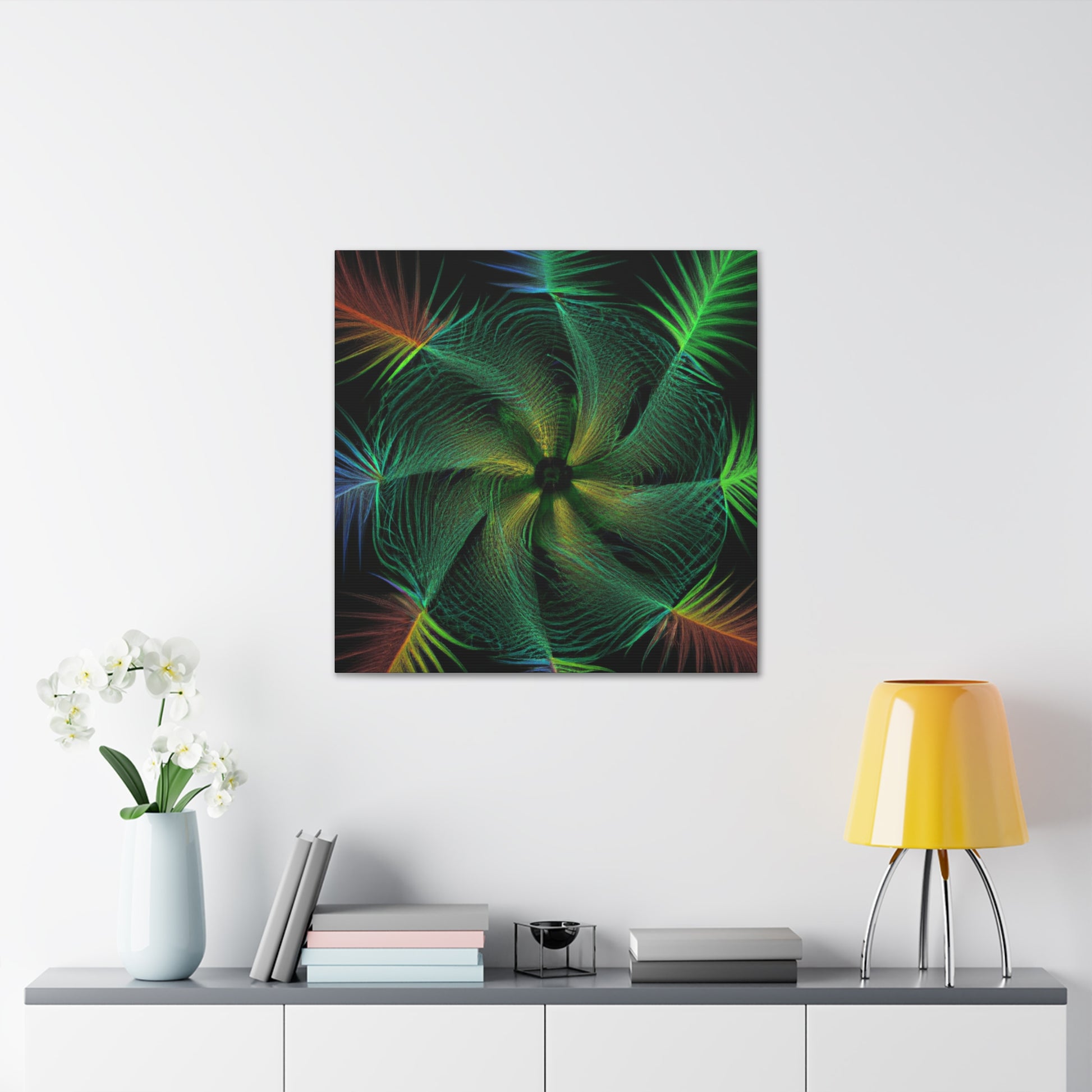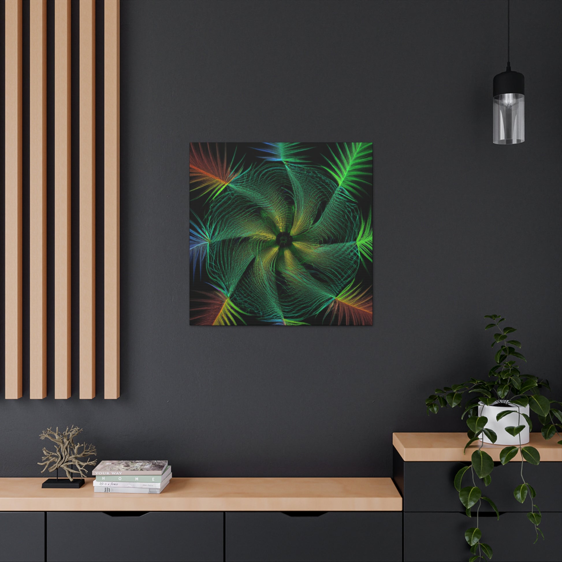 Discover your walls with this vibrant, abstract digital art on canvas. Trippy geometric palm leaves, kaleidoscope, 3D lines, and fractal patterns are brought to life with a kaleidoscope of colors. Even when viewed from different angles, 3D lines are displayed in an array of shapes and hues. Instantly transform your living space with its unique blend of modern and classic art. #vibrantcolors #abstractart #modernart #digitalart #trippyart #kaleidoscope #fractal #geometricelements #canvasart #interiorart #3dlines