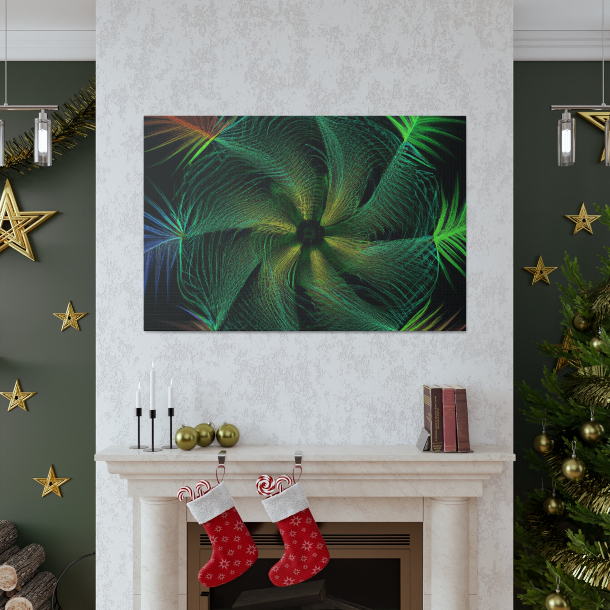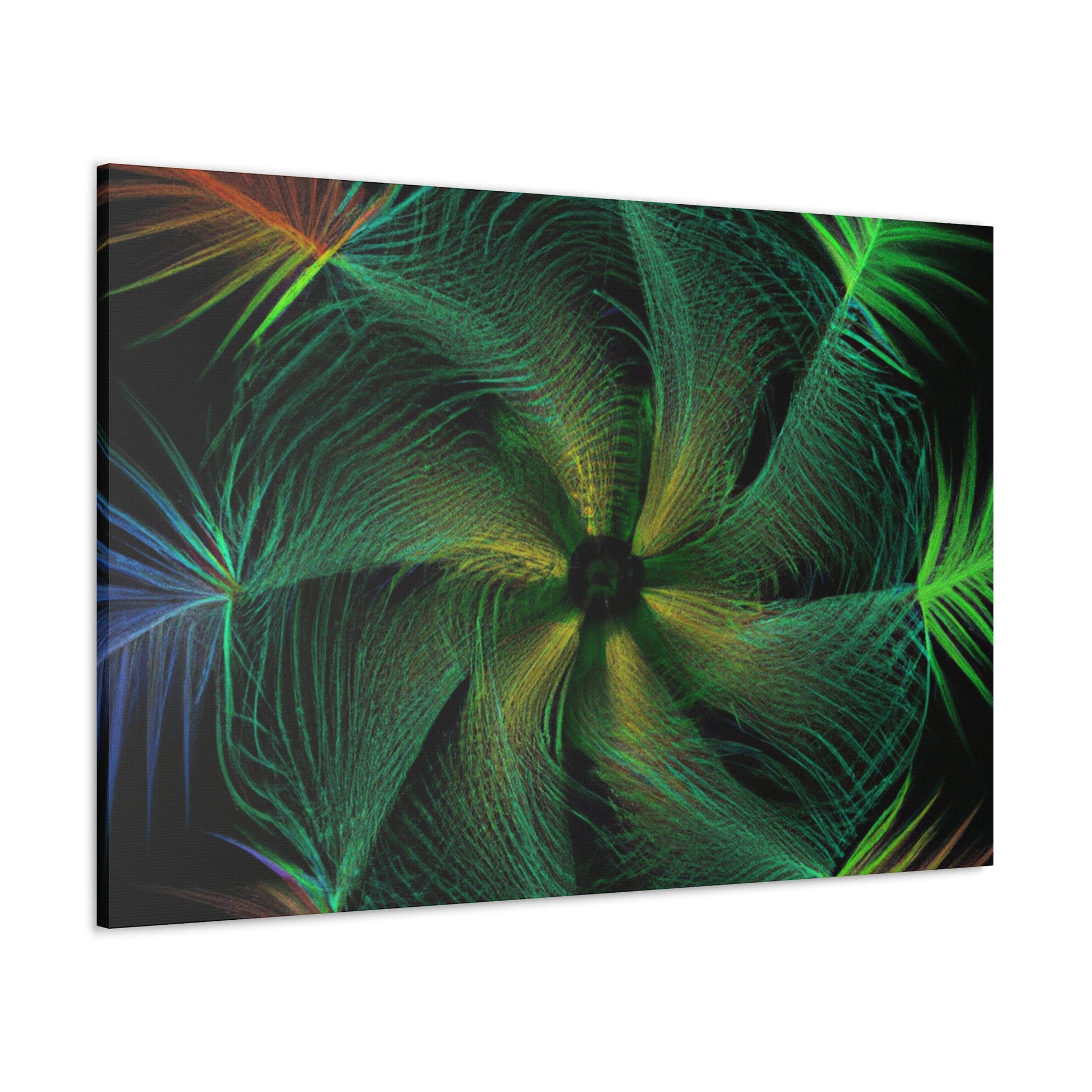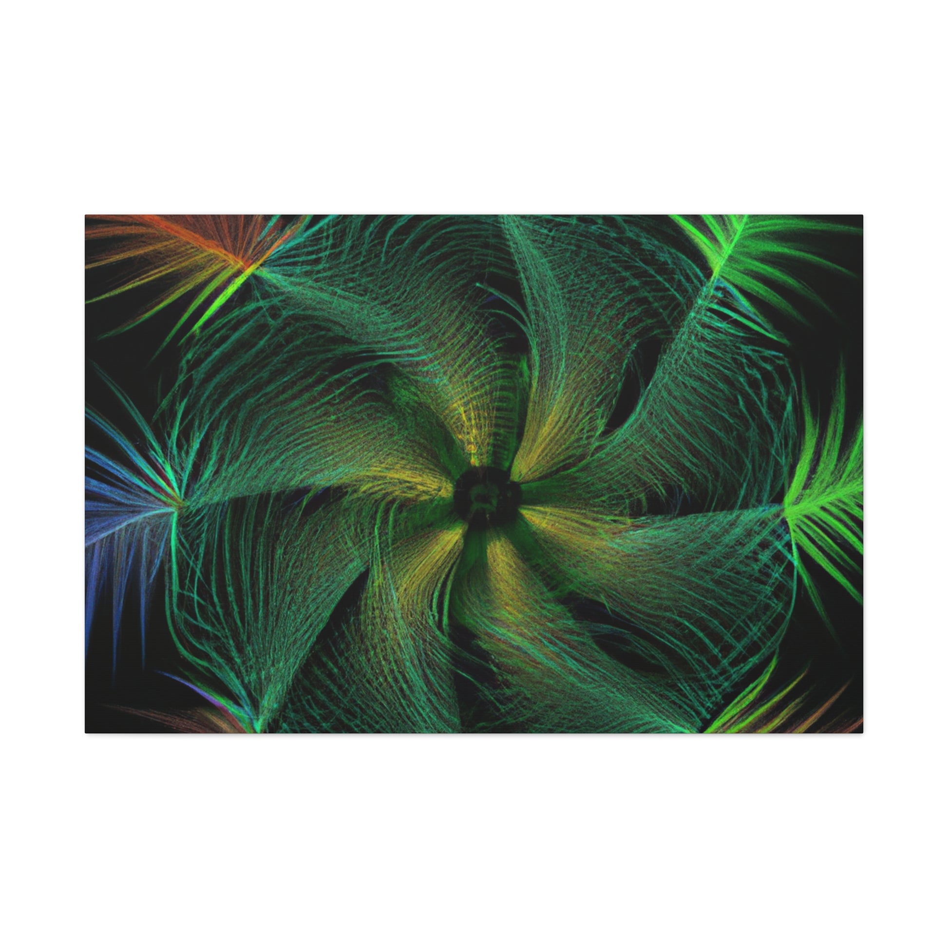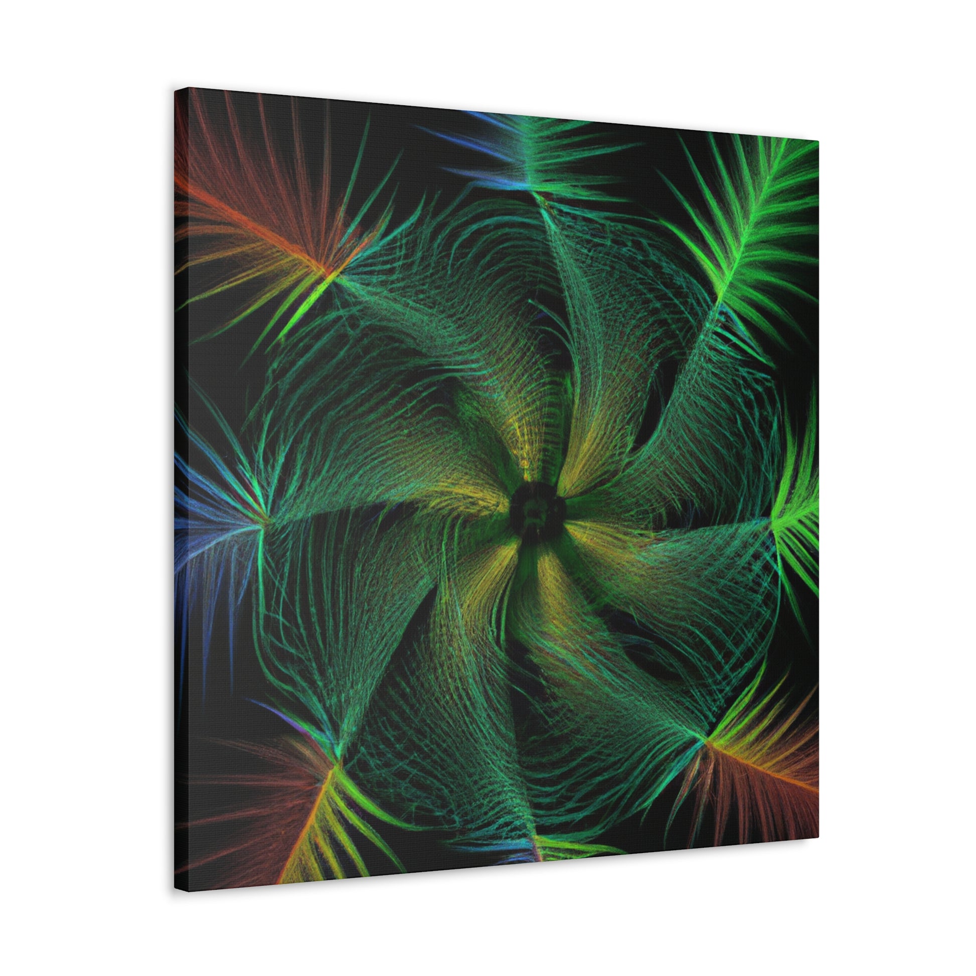 Discover your walls with this vibrant, abstract digital art on canvas. Trippy geometric palm leaves, kaleidoscope, 3D lines, and fractal patterns are brought to life with a kaleidoscope of colors. Even when viewed from different angles, 3D lines are displayed in an array of shapes and hues. Instantly transform your living space with its unique blend of modern and classic art. #vibrantcolors #abstractart #modernart #digitalart #trippyart #kaleidoscope #fractal #geometricelements #canvasart #interiorart #3dlines
